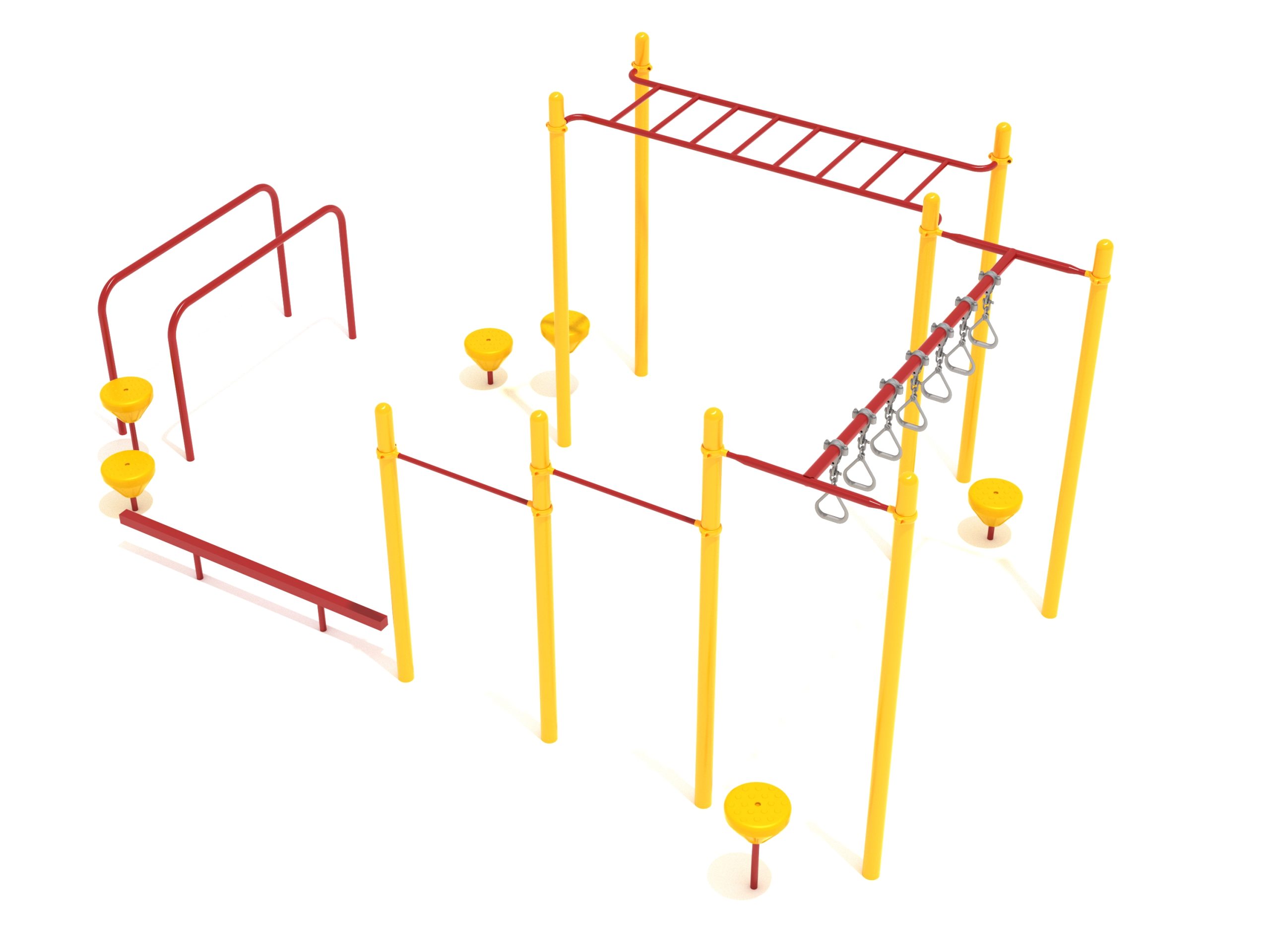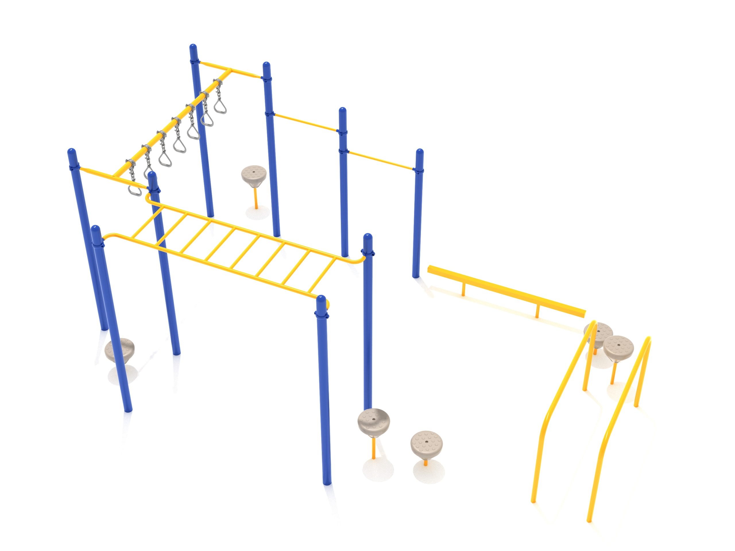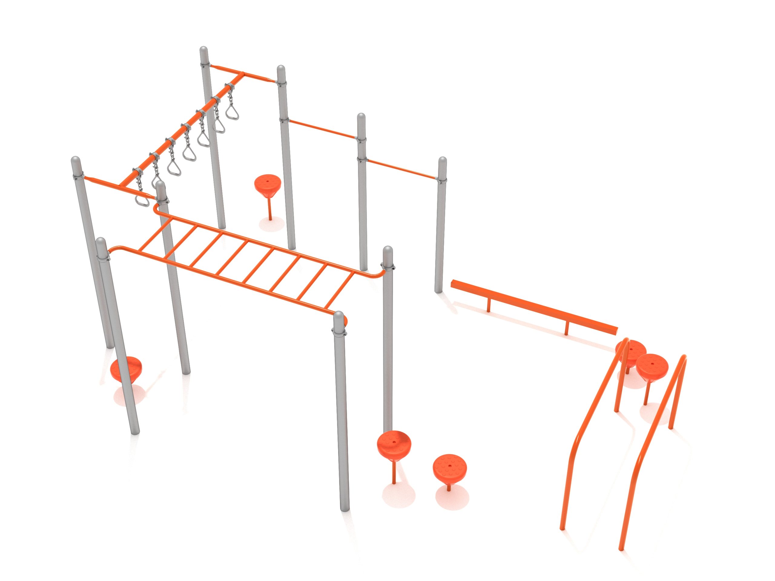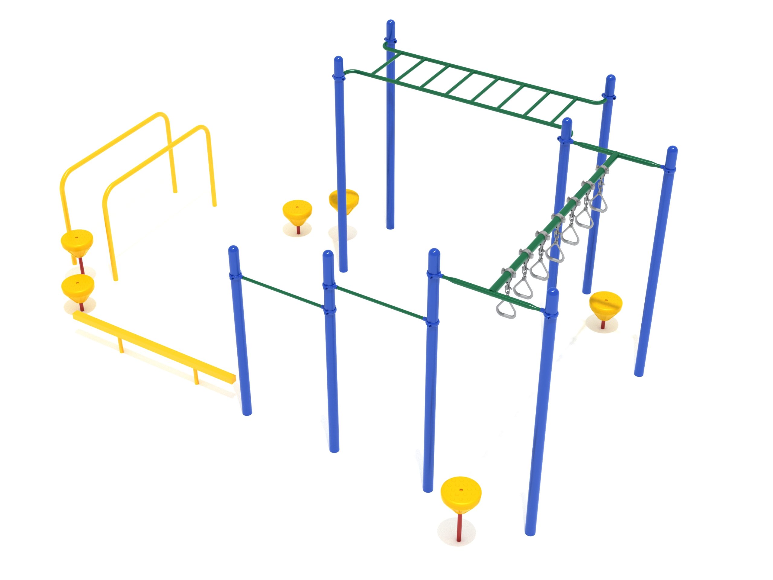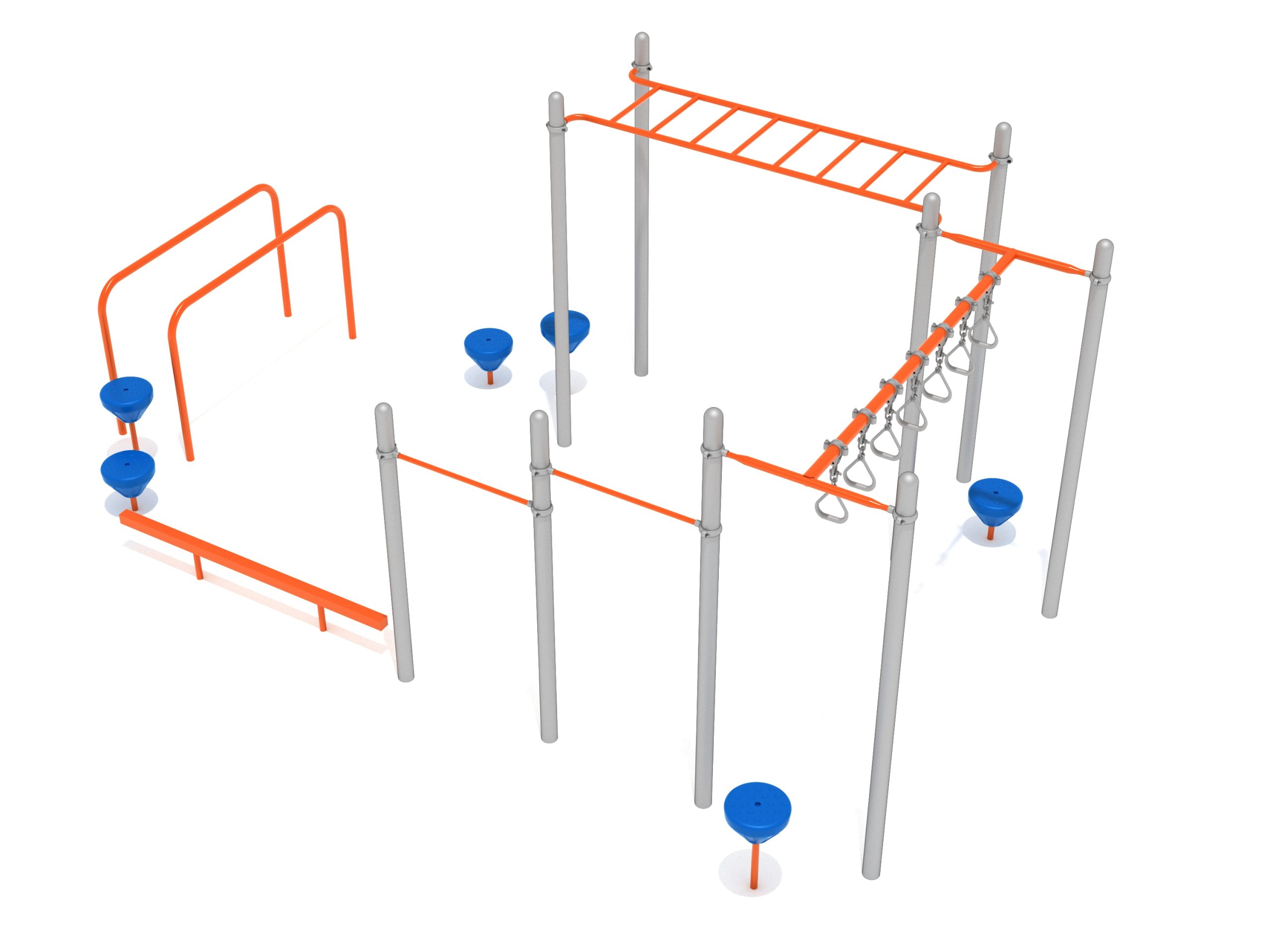 Alpharetta is less of a play system and more of a calisthenics course but for kids, of course. It has almost everything a kid needs to build their upper body strength. The course starts with two Parallel Bars that kids can use to practice headstands or work on their balance and coordination. Towards the end of the bars, kids can step on the Pebble Climber to reach the Balance beam. They can walk over it while maintaining their balance and eventually lead towards 2 Pull Up Bars of different heights. Kids can choose which Pull Up bar to use based on their height. Then comes the most challenging part of this course, the Overhead Staright Swinging Ring Ladder. Kids can think of themselves as commandos and swing their way across it to the Overhead Horizontal Ladder. They can rest for a little while and re-gather their energy to conquer this ladder and complete the course.
