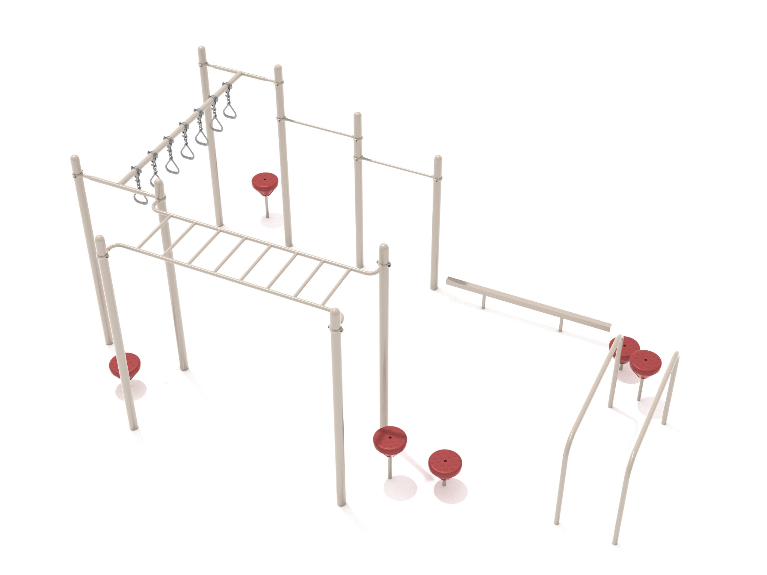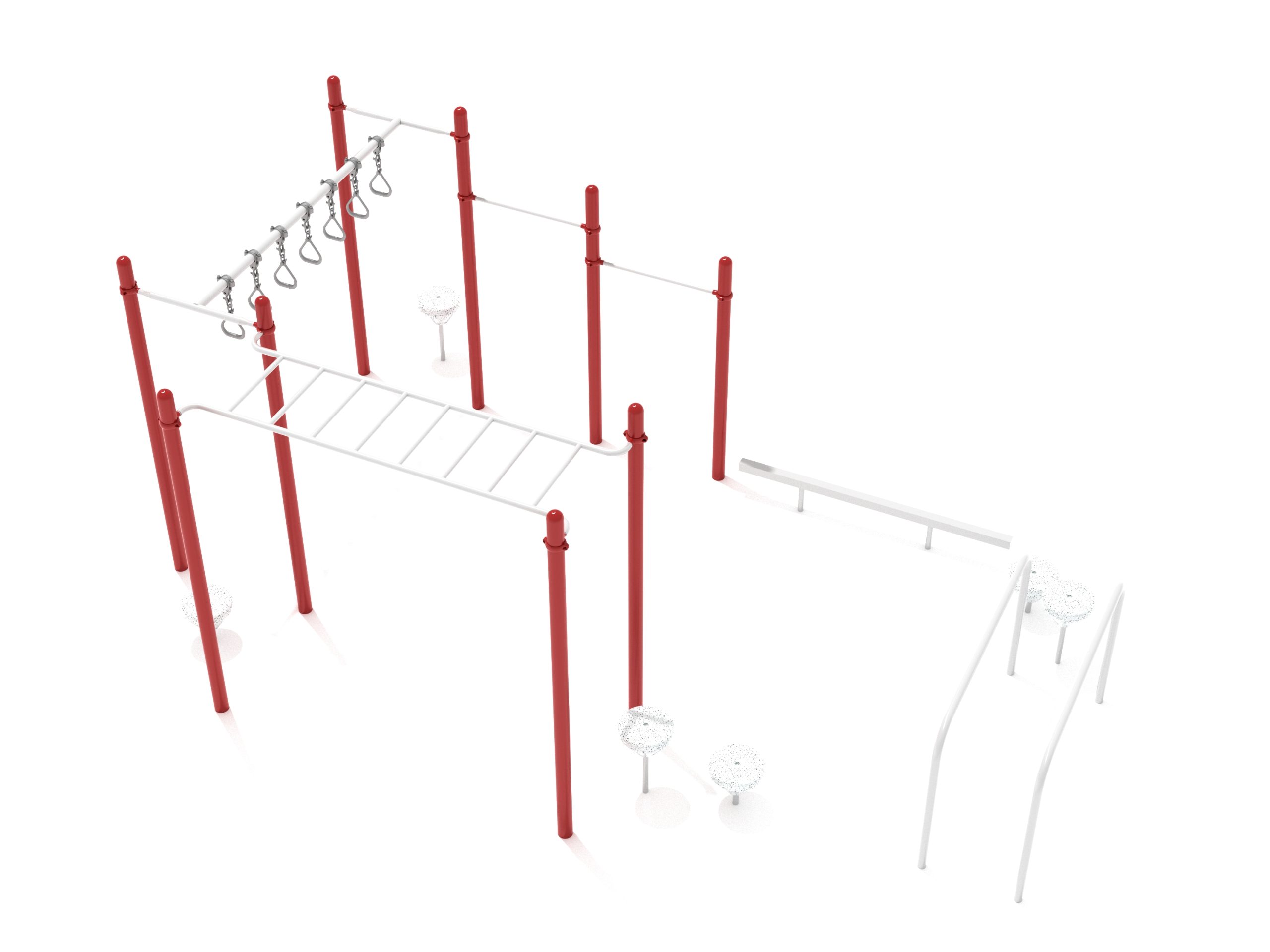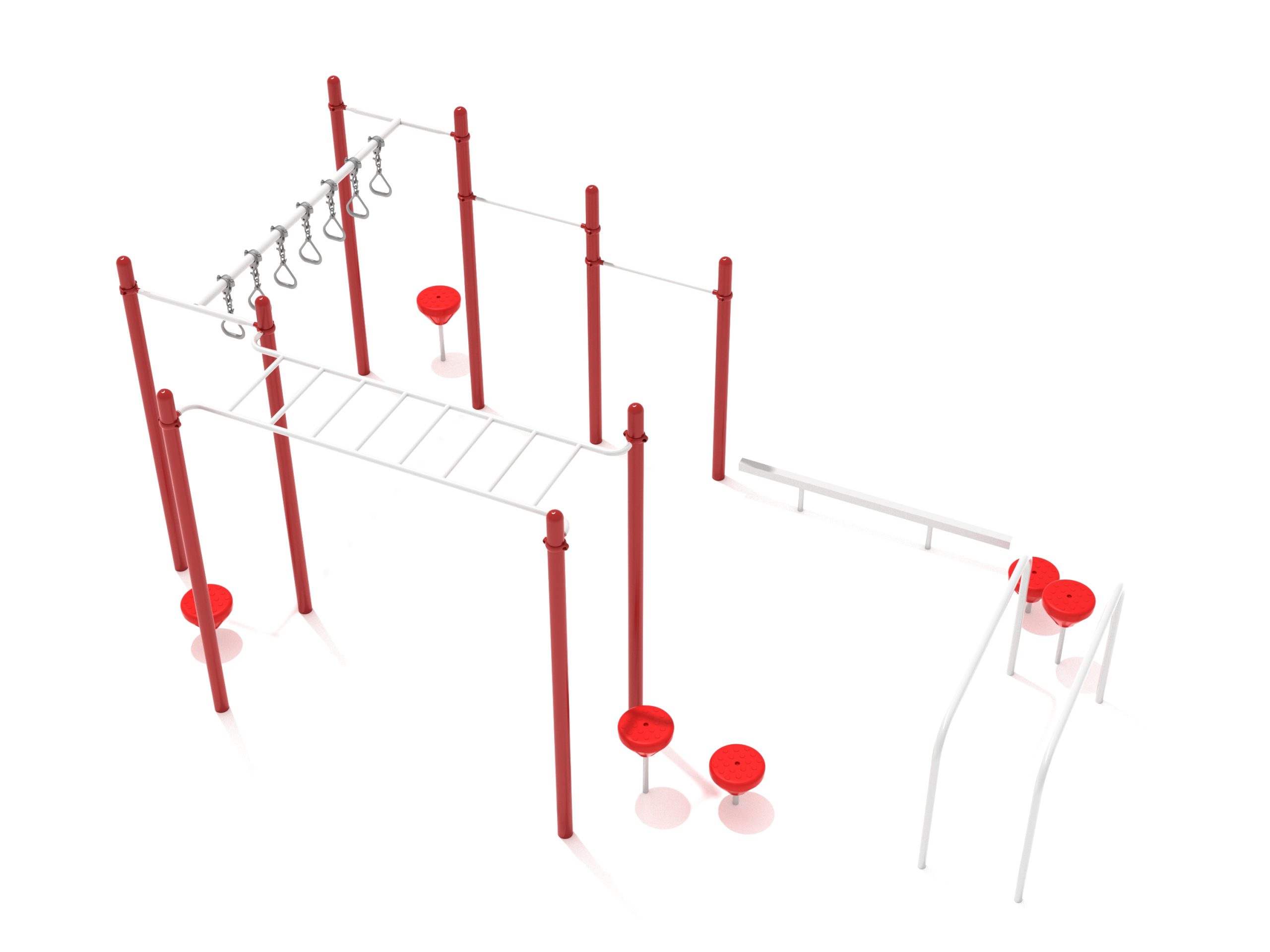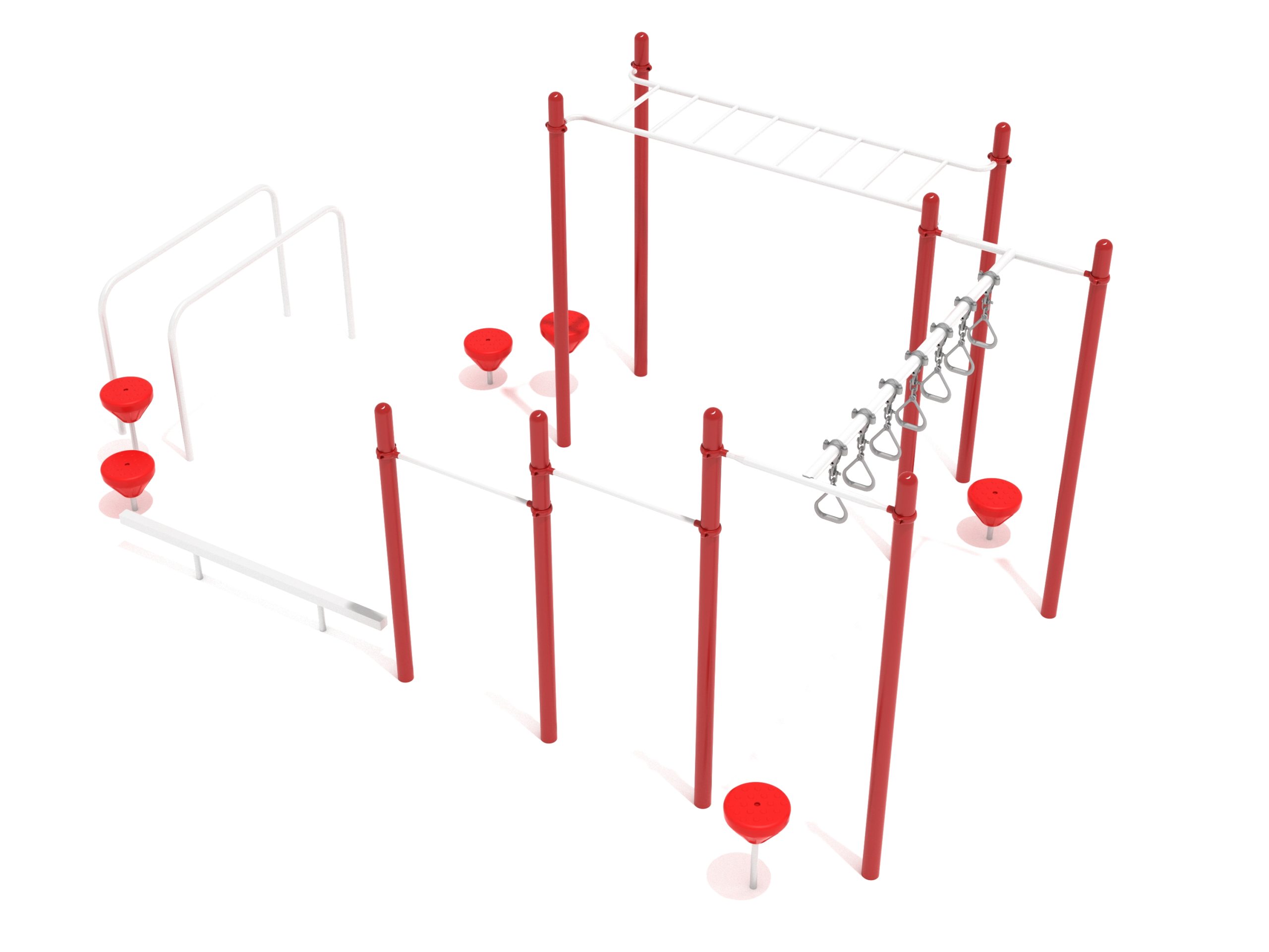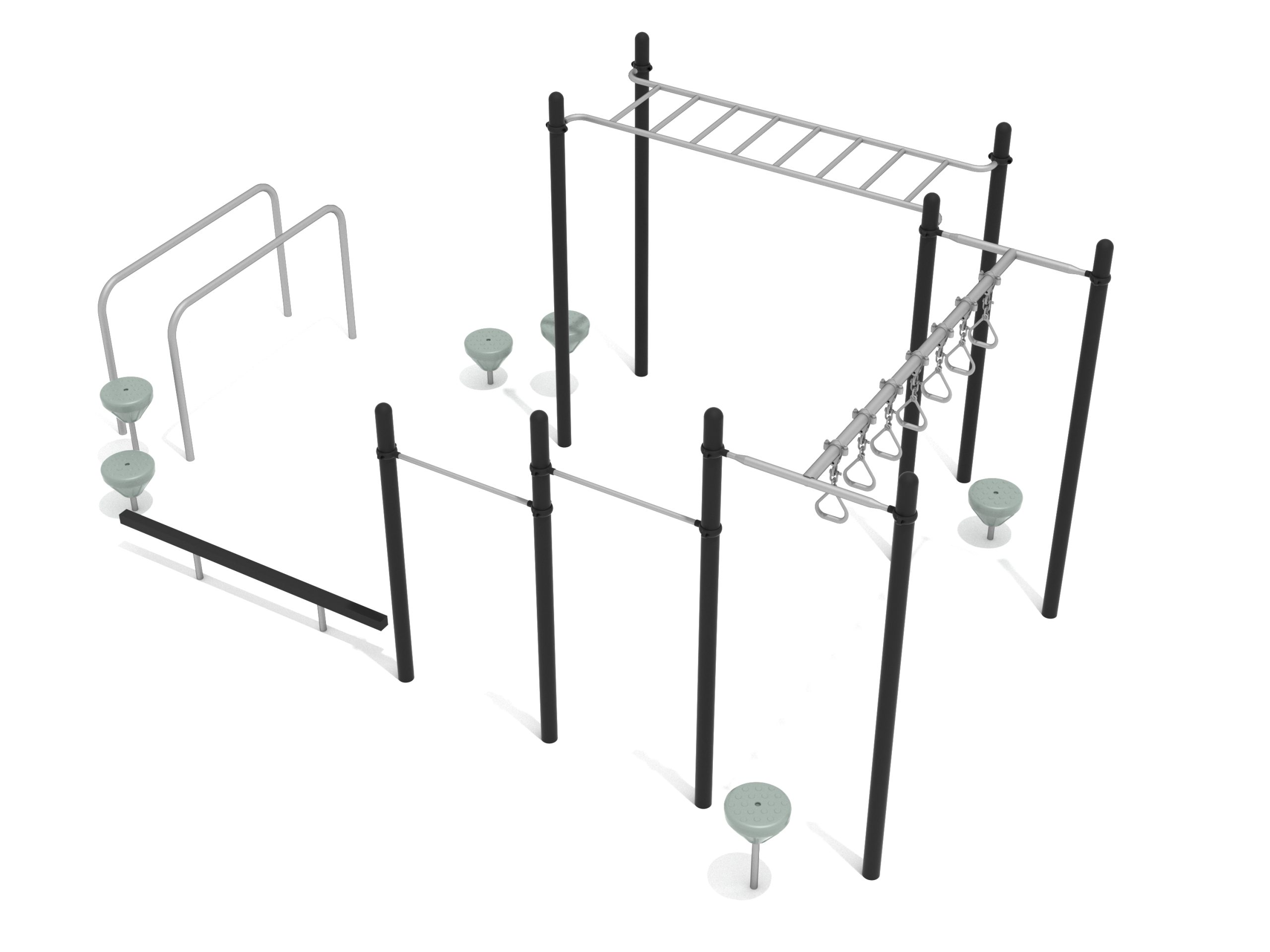 Alpharetta is less of a play system and more of a calisthenics course but for kids, of course. It has almost everything a kid needs to build their upper body strength. The course starts with two Parallel Bars that kids can use to practice headstands or work on their balance and coordination. Towards the end of the bars, kids can step on the Pebble Climber to reach the Balance beam. They can walk over it while maintaining their balance and eventually lead towards 2 Pull Up Bars of different heights. Kids can choose which Pull Up bar to use based on their height. Then comes the most challenging part of this course, the Overhead Staright Swinging Ring Ladder. Kids can think of themselves as commandos and swing their way across it to the Overhead Horizontal Ladder. They can rest for a little while and re-gather their energy to conquer this ladder and complete the course.