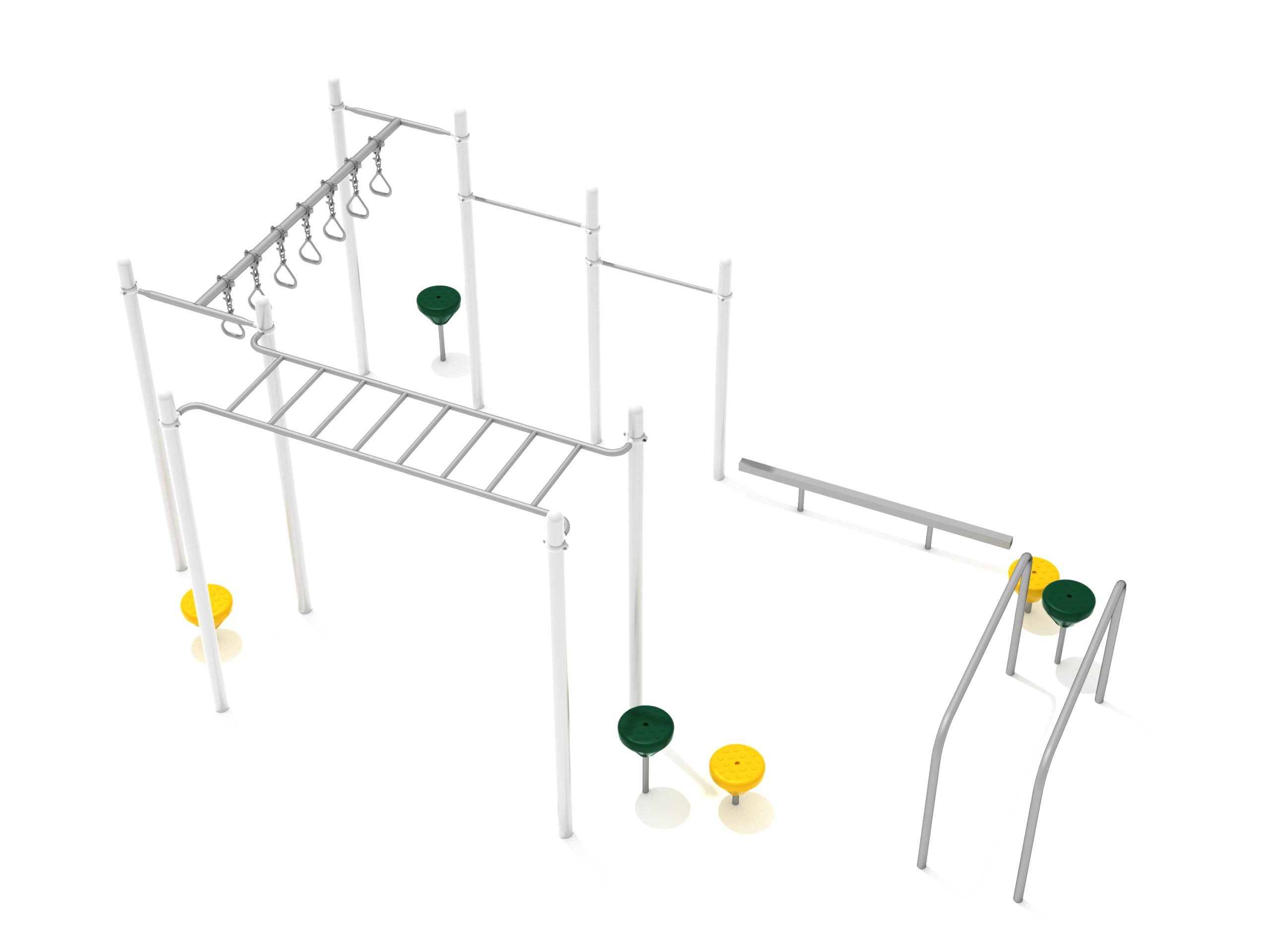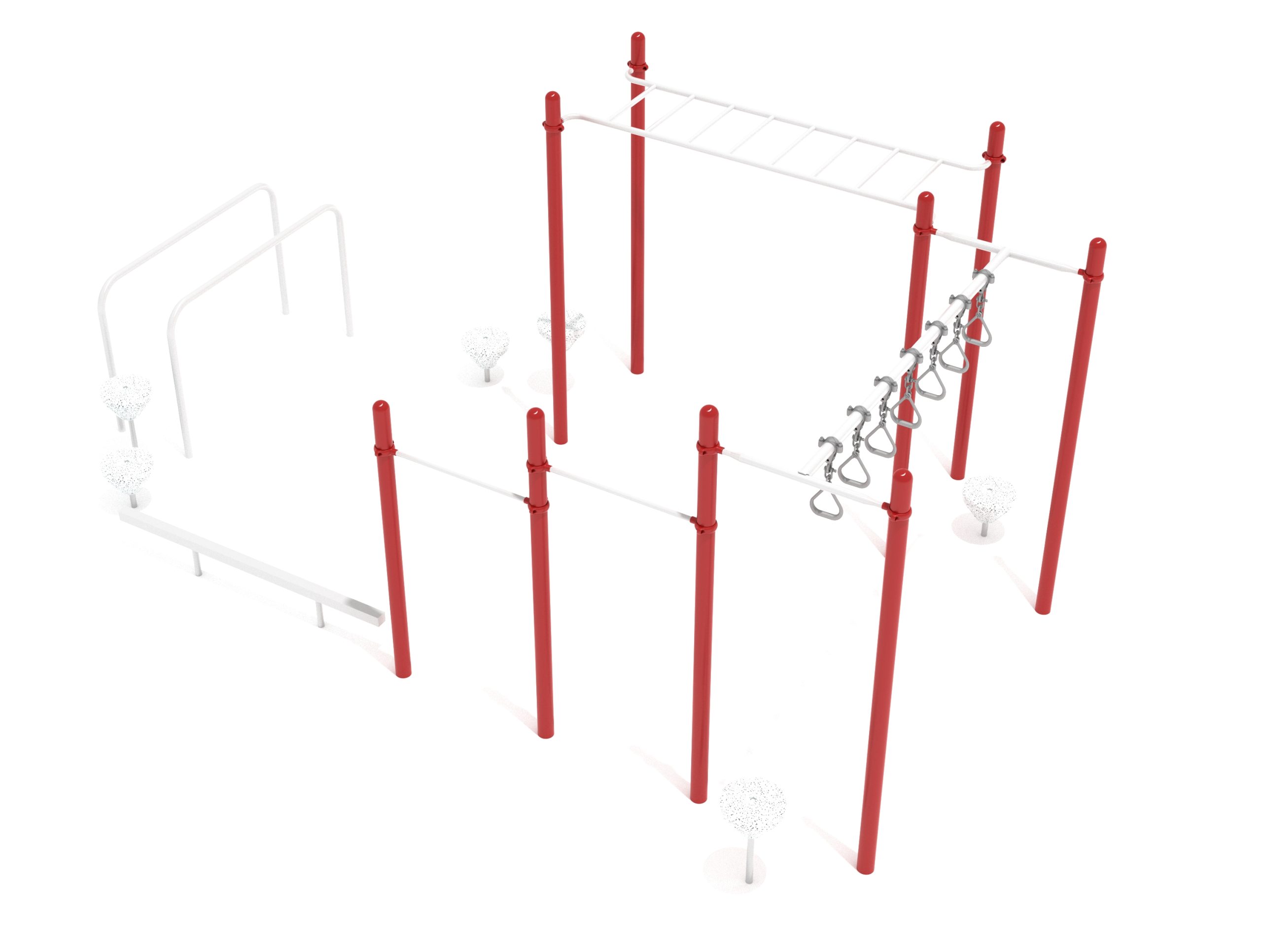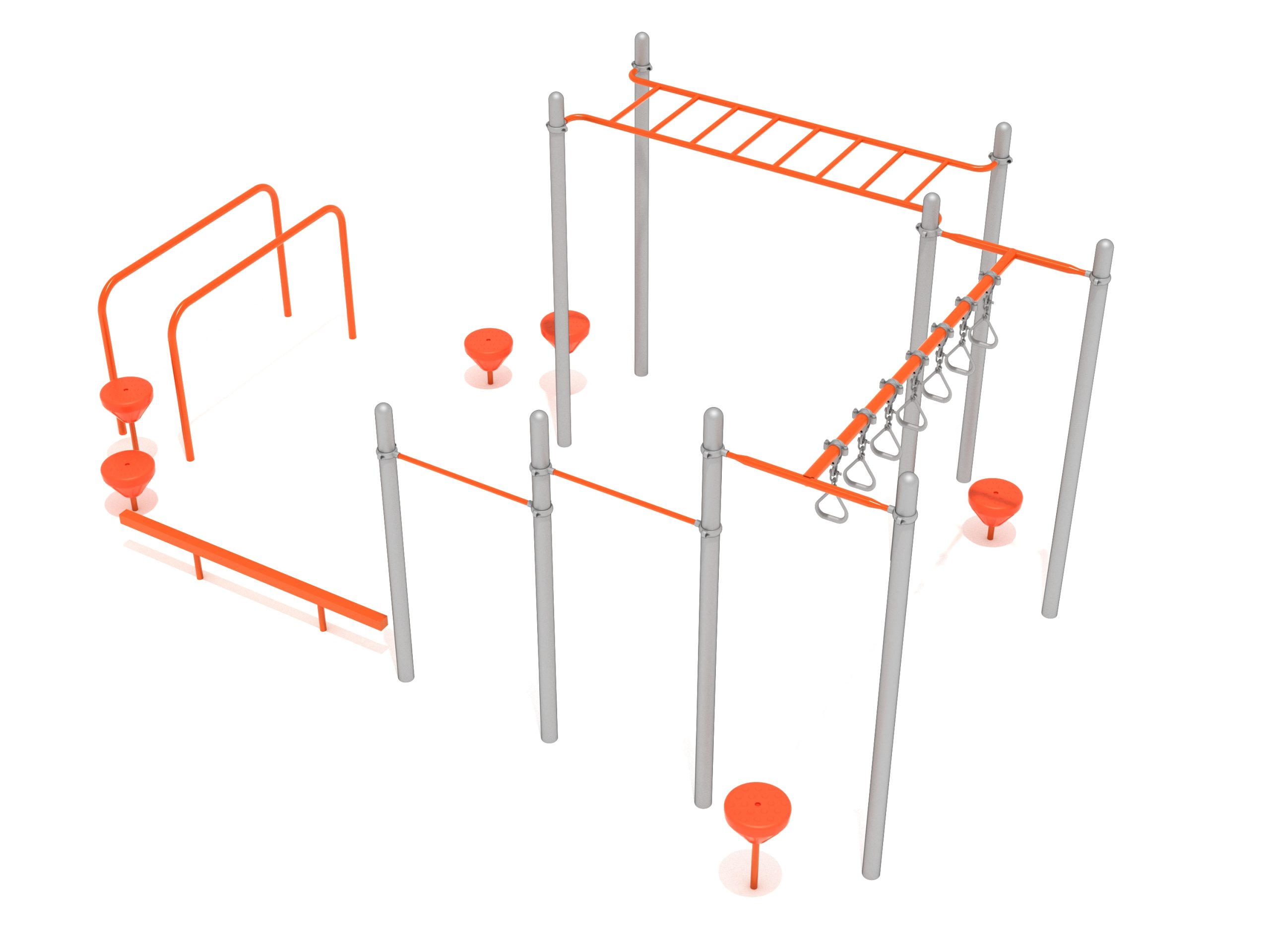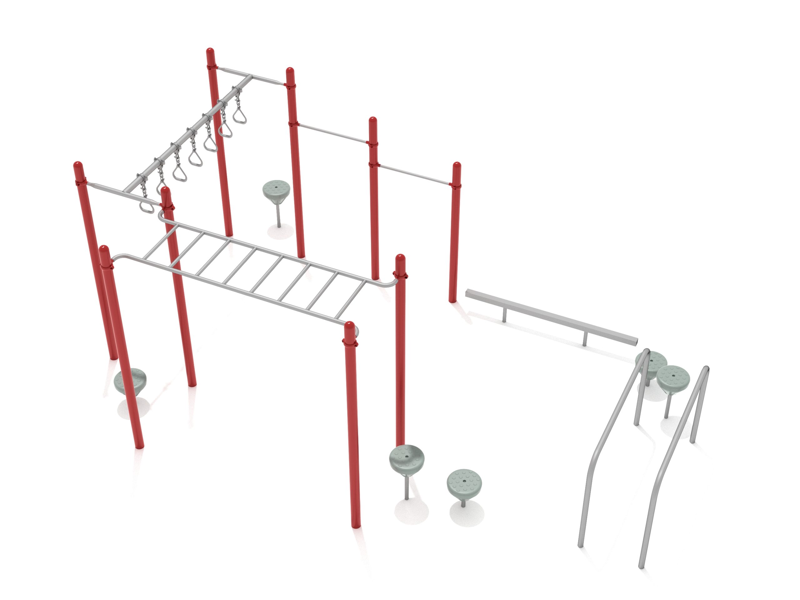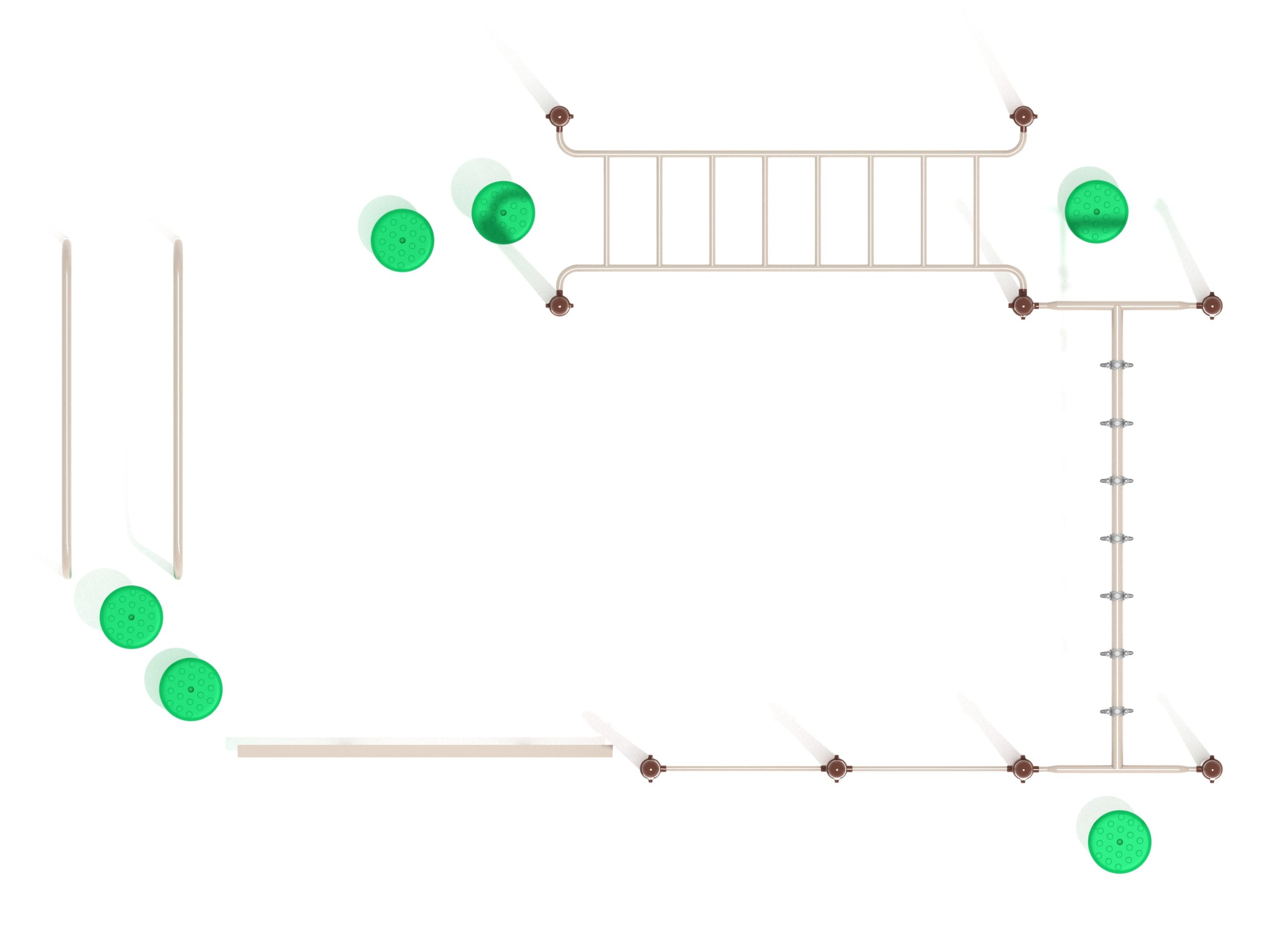 Alpharetta is less of a play system and more of a calisthenics course but for kids, of course. It has almost everything a kid needs to build their upper body strength. The course starts with two Parallel Bars that kids can use to practice headstands or work on their balance and coordination. Towards the end of the bars, kids can step on the Pebble Climber to reach the Balance beam. They can walk over it while maintaining their balance and eventually lead towards 2 Pull Up Bars of different heights. Kids can choose which Pull Up bar to use based on their height. Then comes the most challenging part of this course, the Overhead Staright Swinging Ring Ladder. Kids can think of themselves as commandos and swing their way across it to the Overhead Horizontal Ladder. They can rest for a little while and re-gather their energy to conquer this ladder and complete the course.