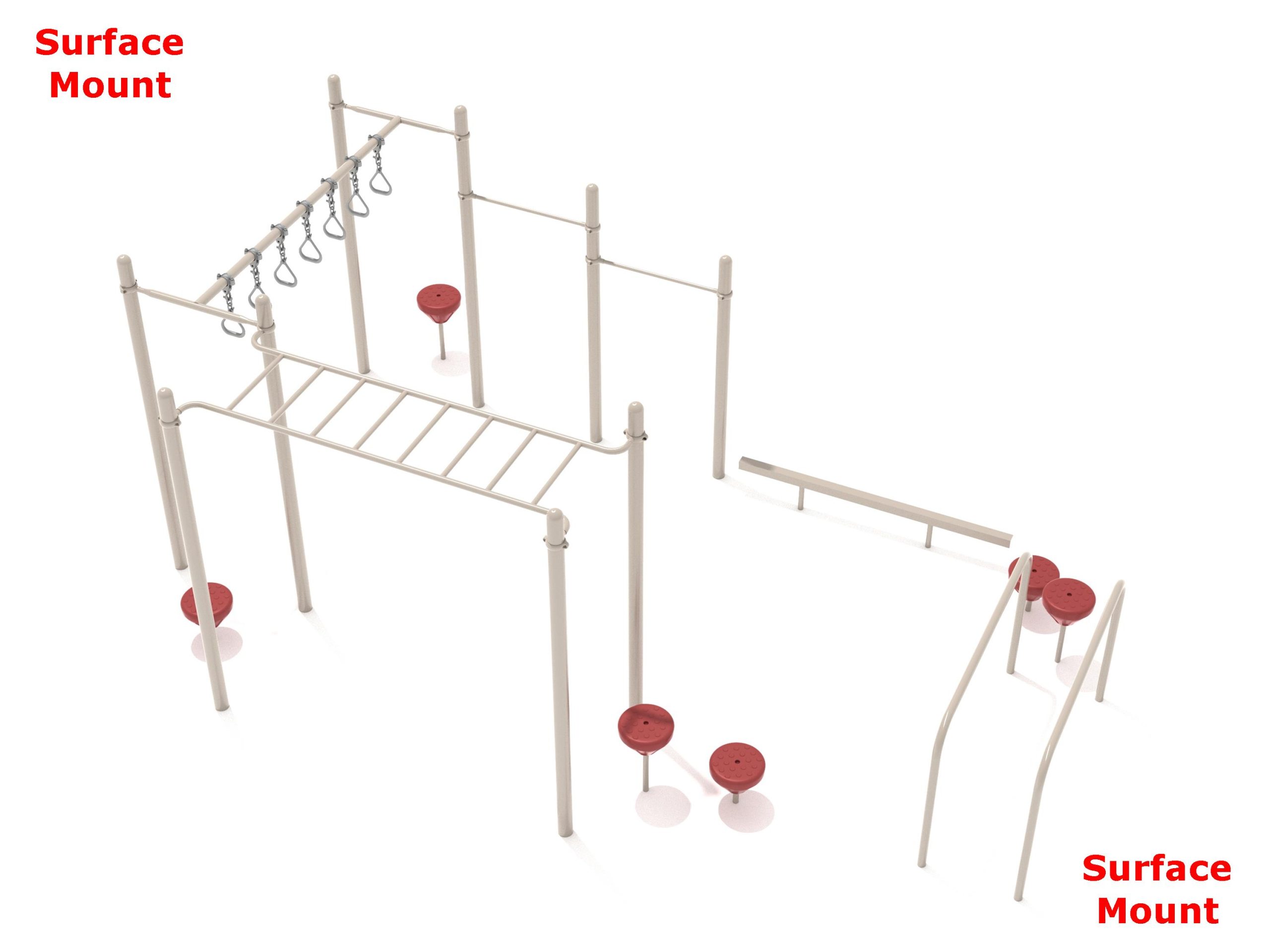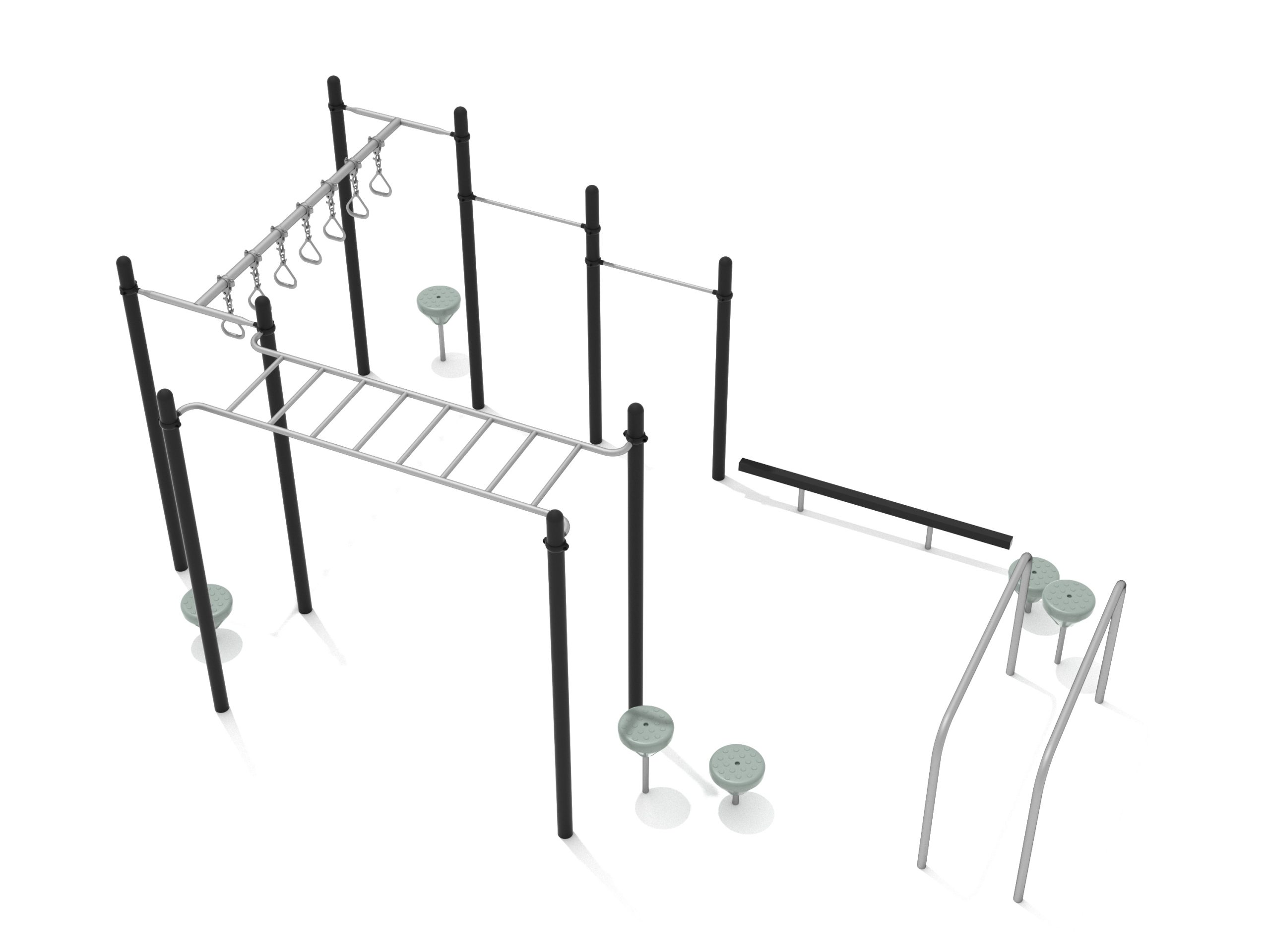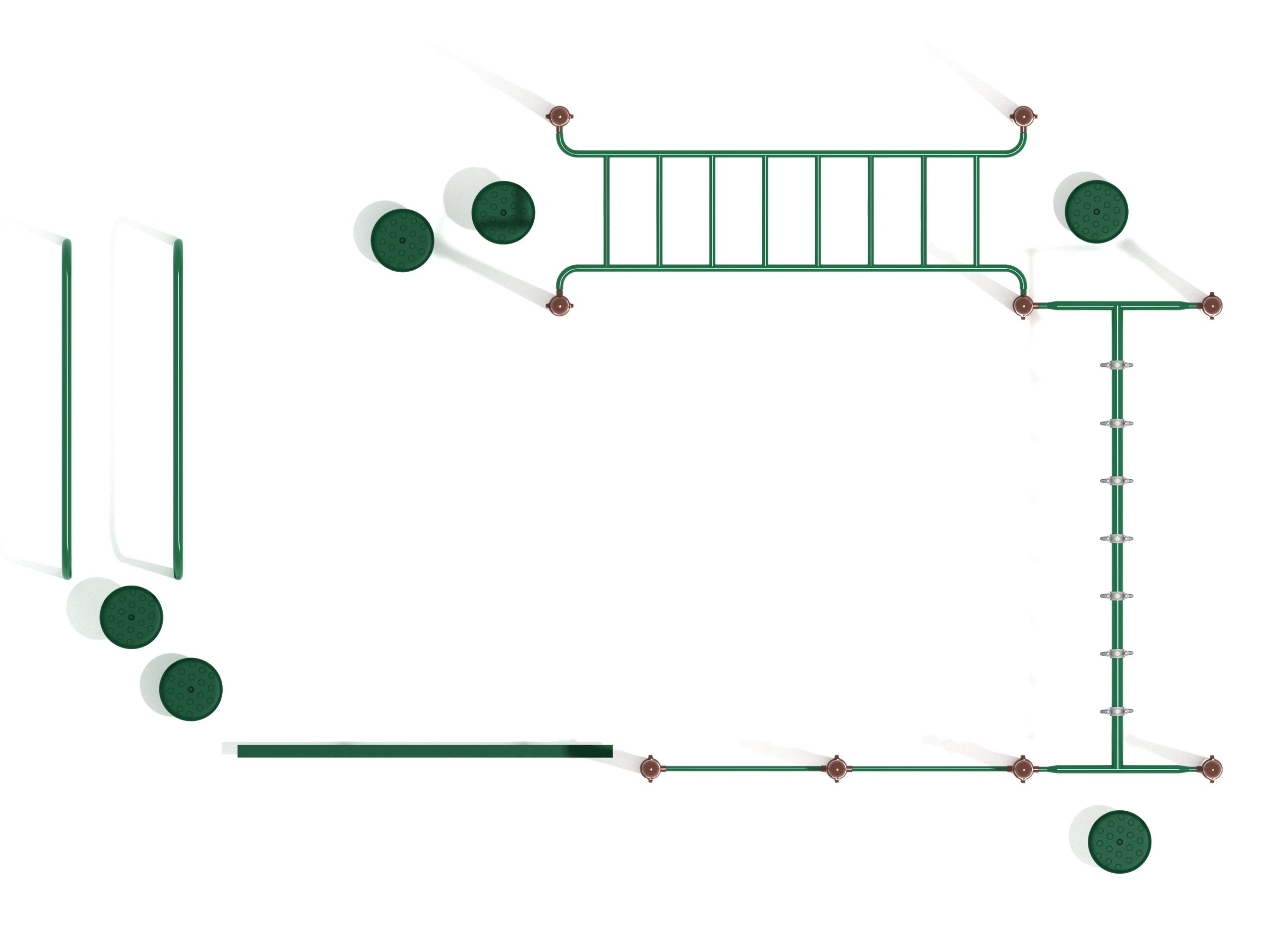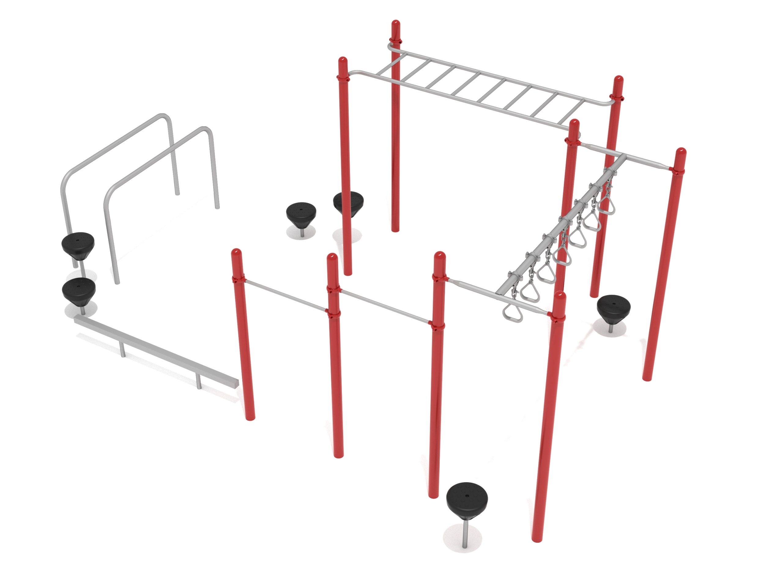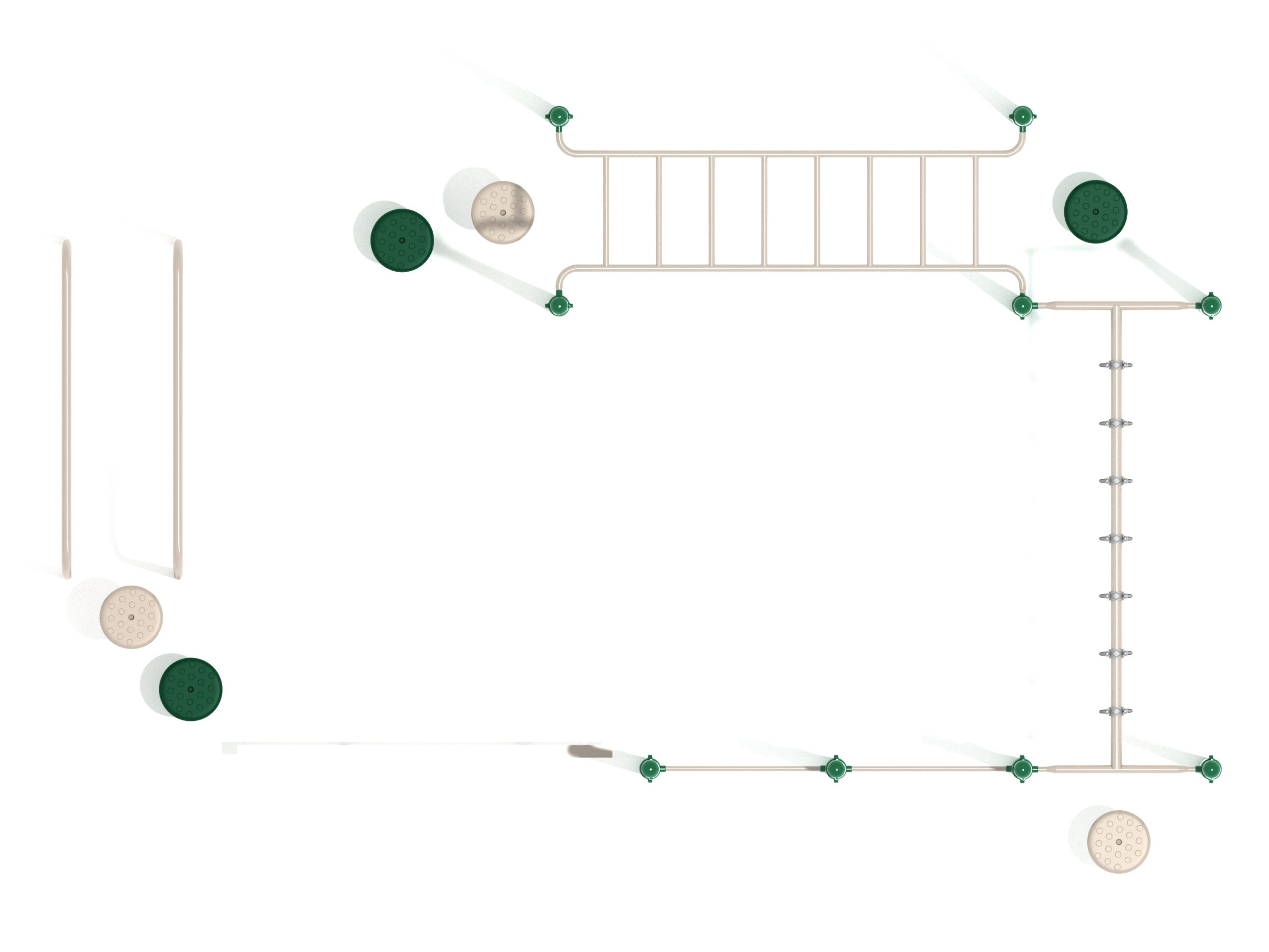Alpharetta is less of a play system and more of a calisthenics course but for kids, of course. It has almost everything a kid needs to build their upper body strength. The course starts with two Parallel Bars that kids can use to practice headstands or work on their balance and coordination. Towards the end of the bars, kids can step on the Pebble Climber to reach the Balance beam. They can walk over it while maintaining their balance and eventually lead towards 2 Pull Up Bars of different heights. Kids can choose which Pull Up bar to use based on their height. Then comes the most challenging part of this course, the Overhead Staright Swinging Ring Ladder. Kids can think of themselves as commandos and swing their way across it to the Overhead Horizontal Ladder. They can rest for a little while and re-gather their energy to conquer this ladder and complete the course.