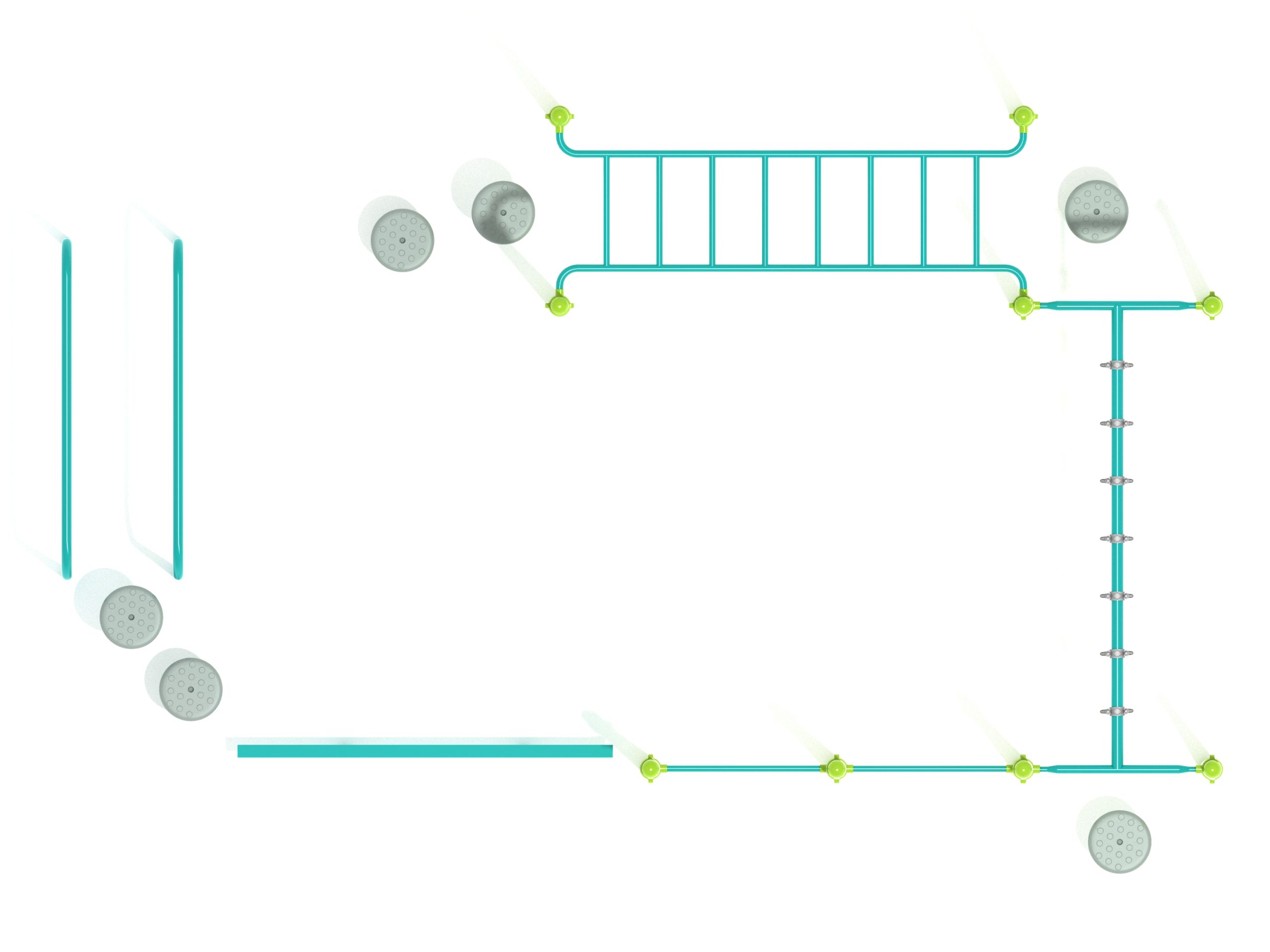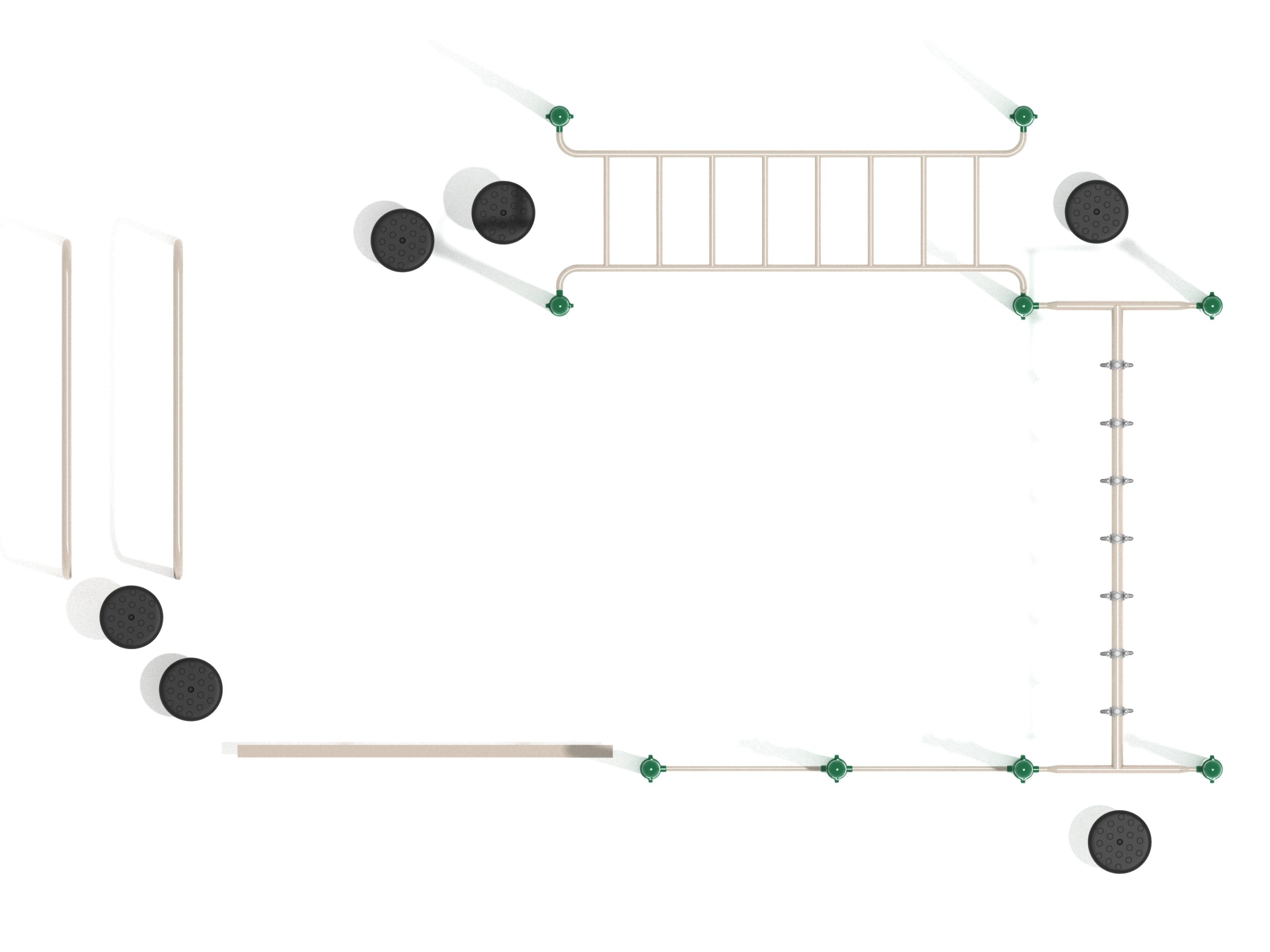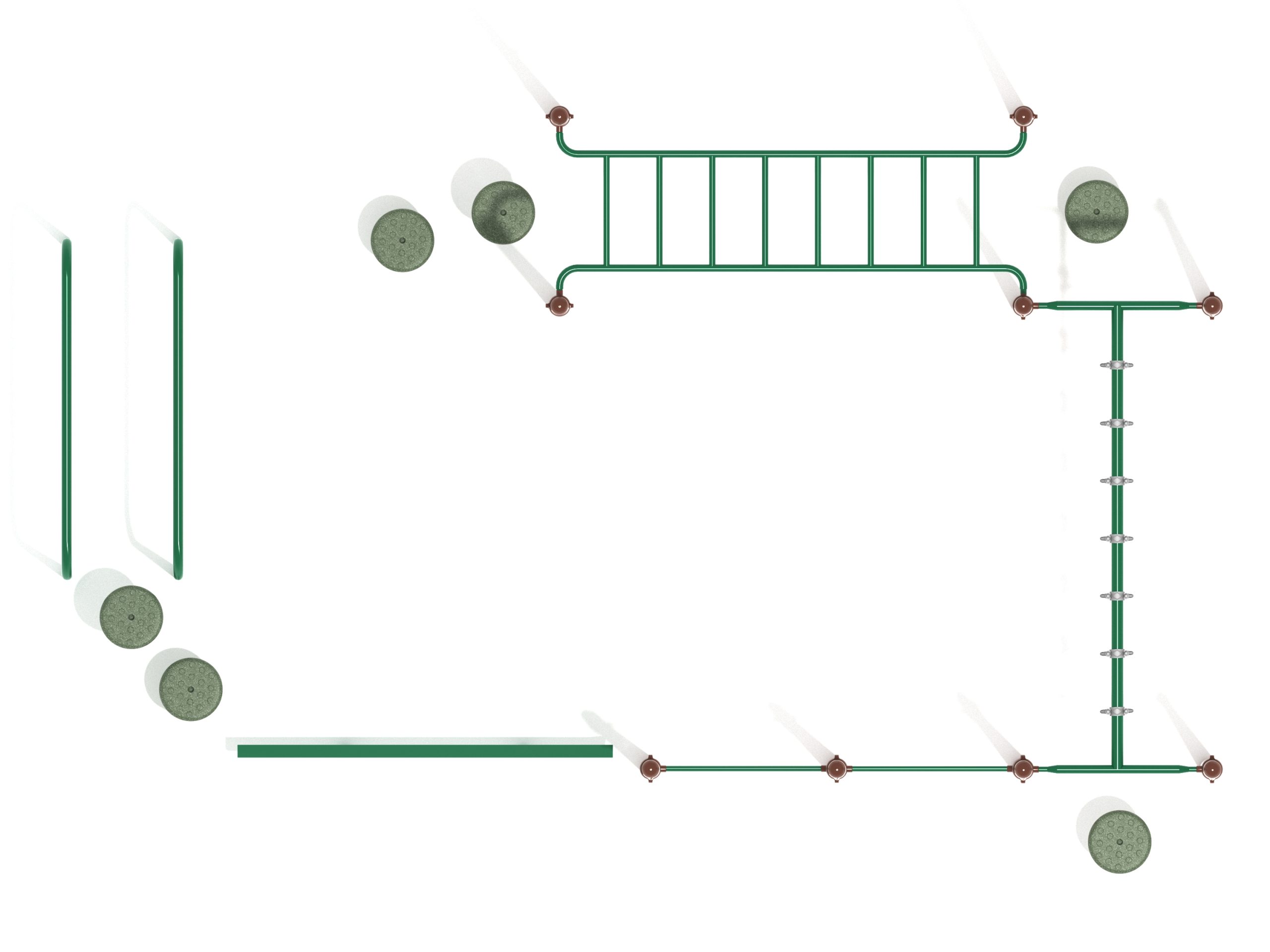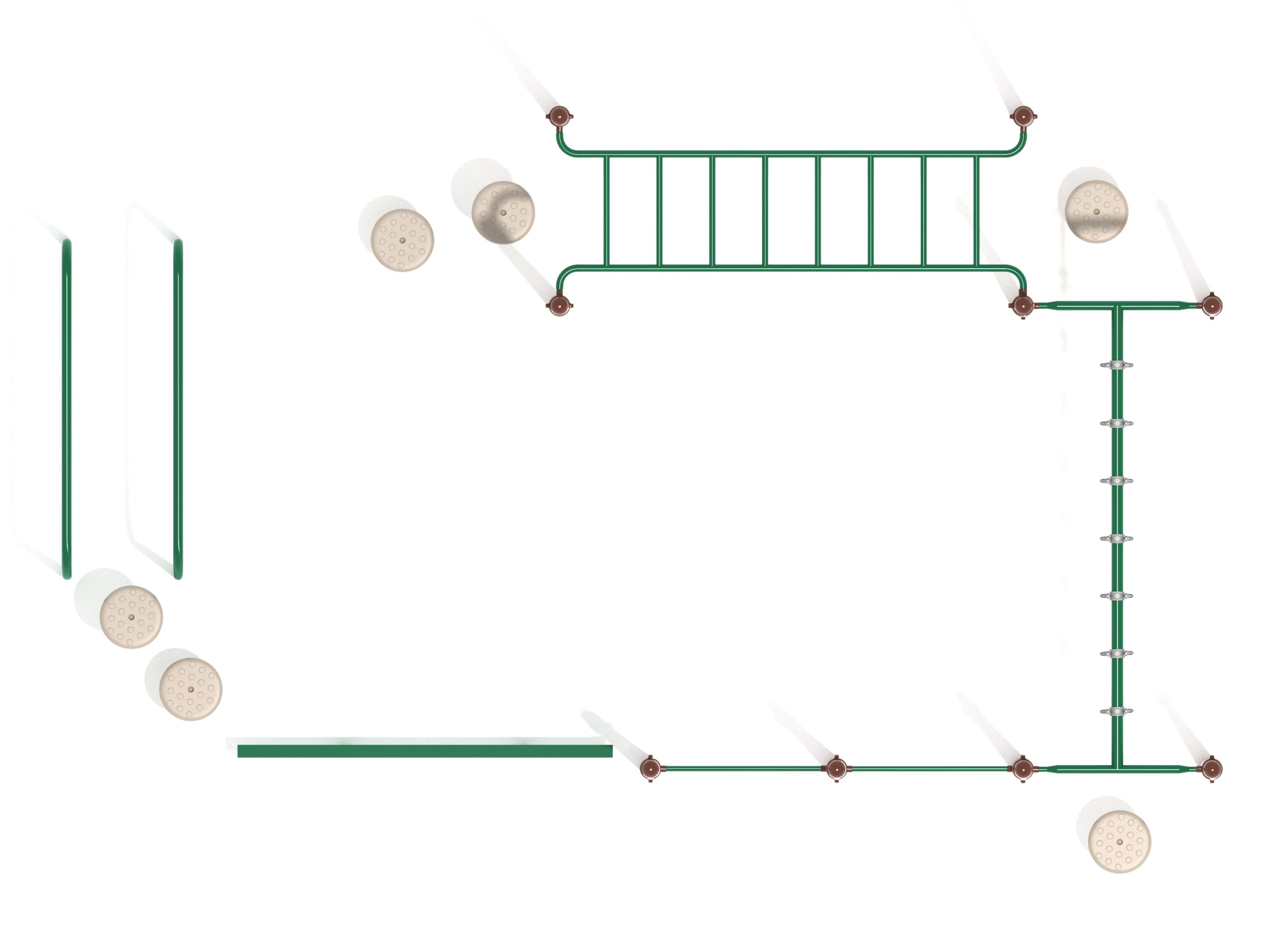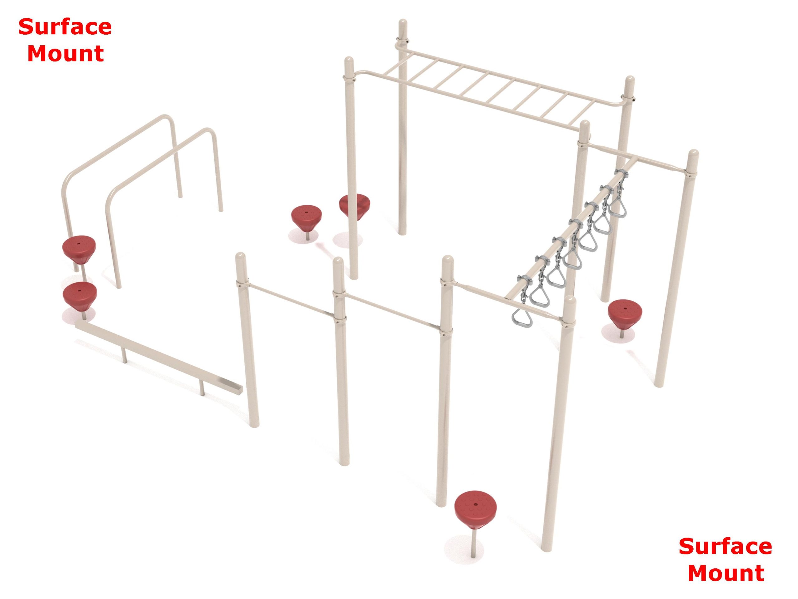 Alpharetta is less of a play system and more of a calisthenics course but for kids, of course. It has almost everything a kid needs to build their upper body strength. The course starts with two Parallel Bars that kids can use to practice headstands or work on their balance and coordination. Towards the end of the bars, kids can step on the Pebble Climber to reach the Balance beam. They can walk over it while maintaining their balance and eventually lead towards 2 Pull Up Bars of different heights. Kids can choose which Pull Up bar to use based on their height. Then comes the most challenging part of this course, the Overhead Staright Swinging Ring Ladder. Kids can think of themselves as commandos and swing their way across it to the Overhead Horizontal Ladder. They can rest for a little while and re-gather their energy to conquer this ladder and complete the course.