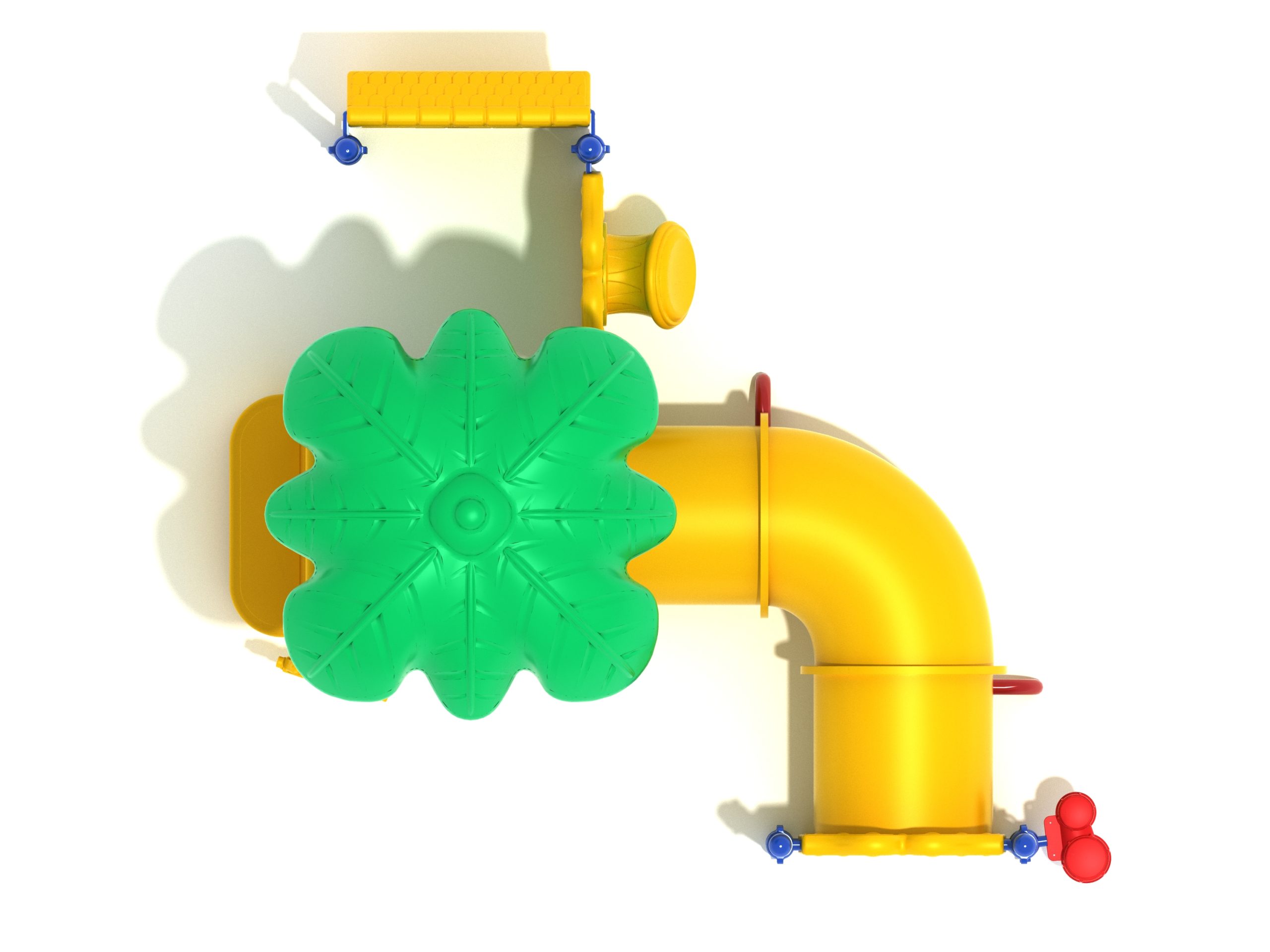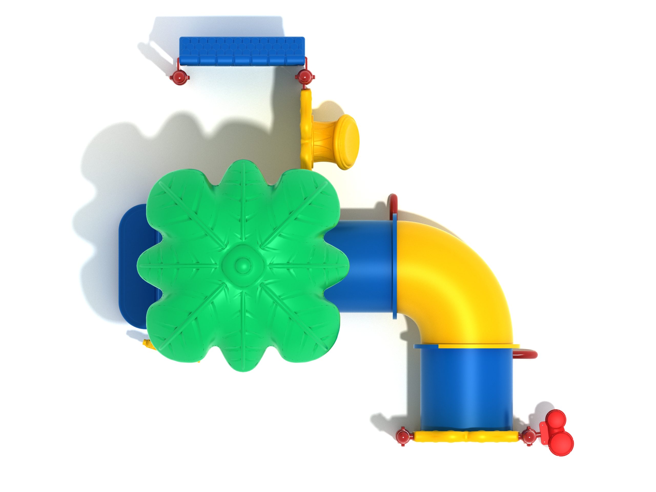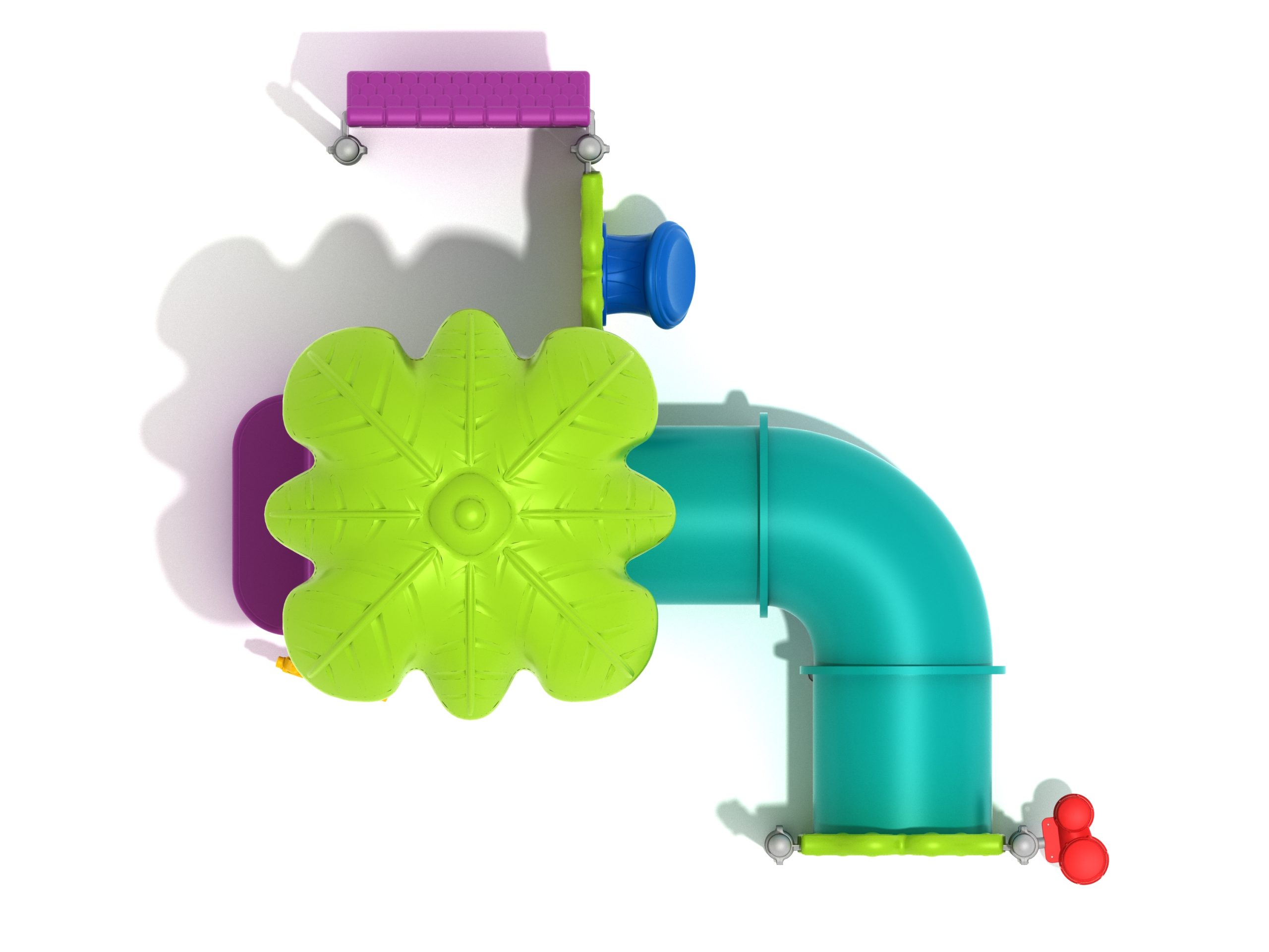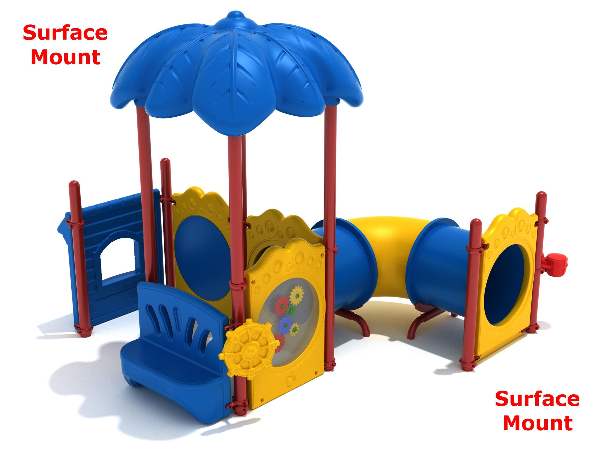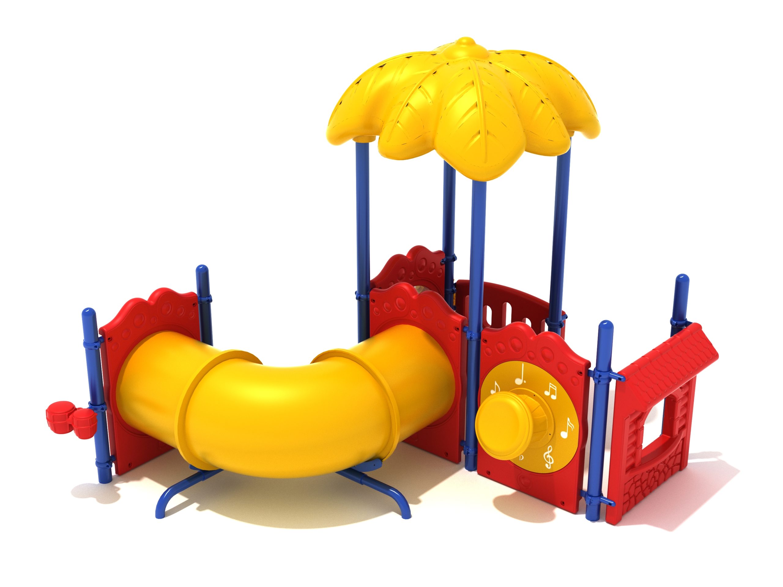 Ideal for daycare centers, preschool environments or even a public park for infants, Asheville has a small footprint with a variety of things to experience. All of the fun takes place beneath a quirky Leaf Roof which not only adds a playful aesthetic but also protects little ones from both sun and rain. There’s a Bench Panel which can be used for reading or just sitting with a friend and developing communication skills, and a Gear Panel to get young minds thinking about mechanisms and problem-solving. The Curved Crawl Tube stirs creative thought as children can crawl through into a cave of treasures or an unexplored wilderness. There are many tactile features to enjoy on the Asheville play set including a set of Bongos which make a distinctive sound and a large Drum Panel which they’ll enjoy banging with their hands. By using the Store Panel children can develop creativity as they buy and sell products, and a Ship’s Wheel carries on the adventure for young and adventurous sailors.