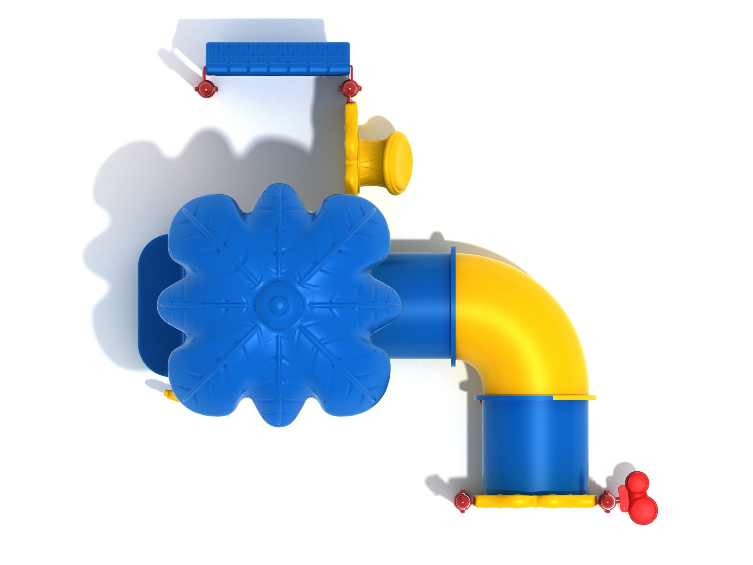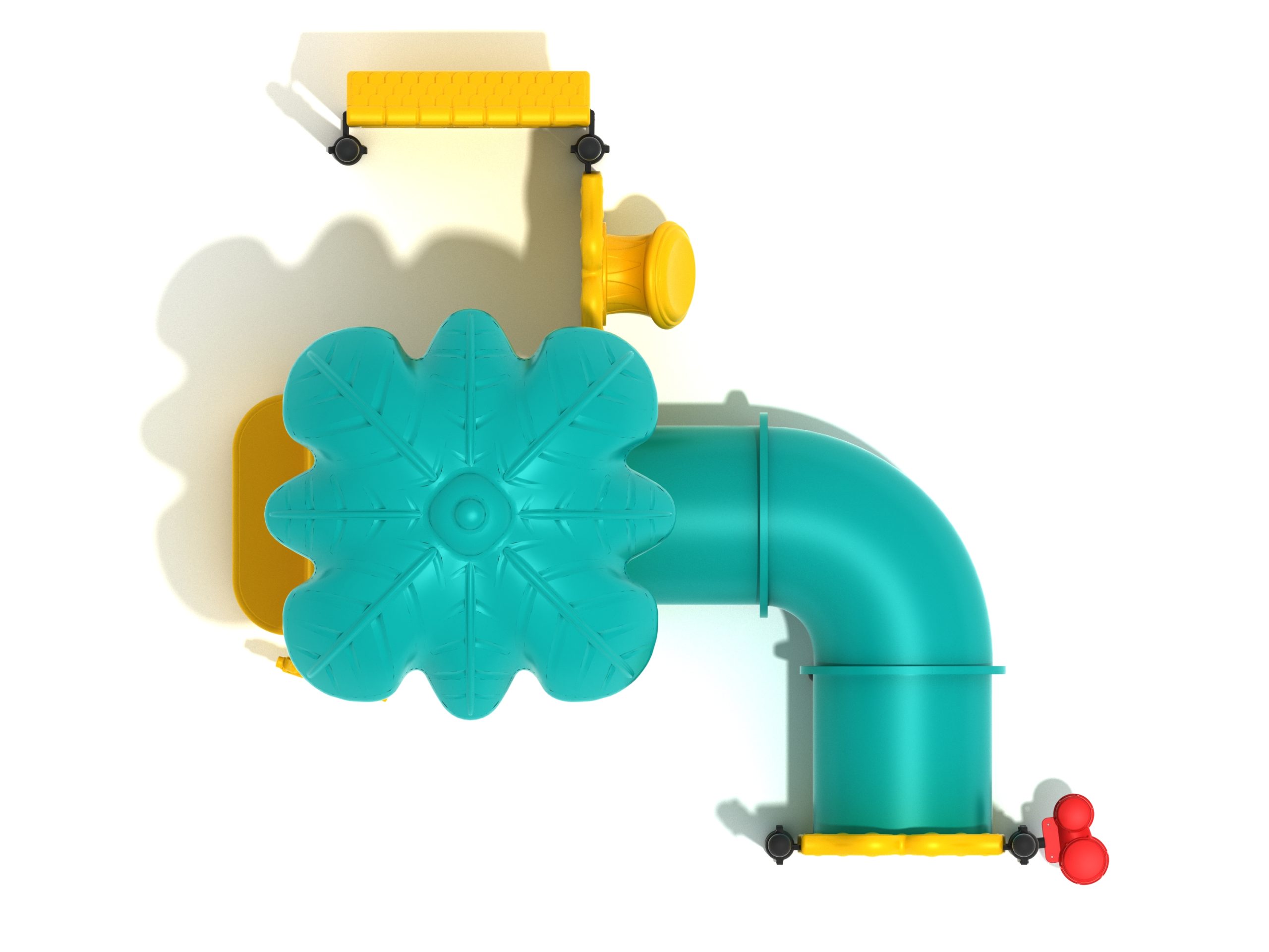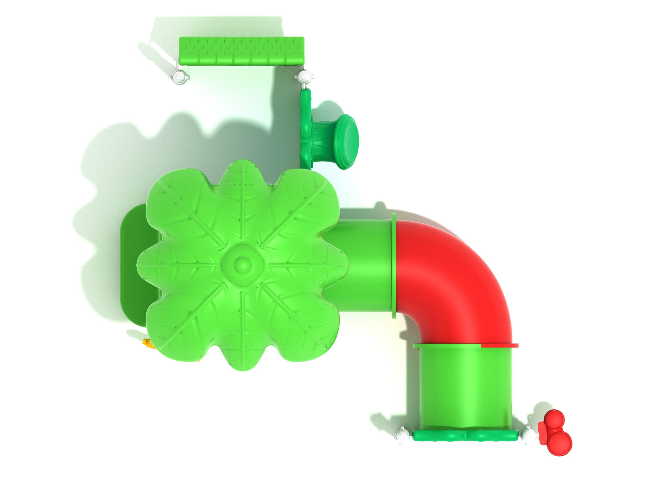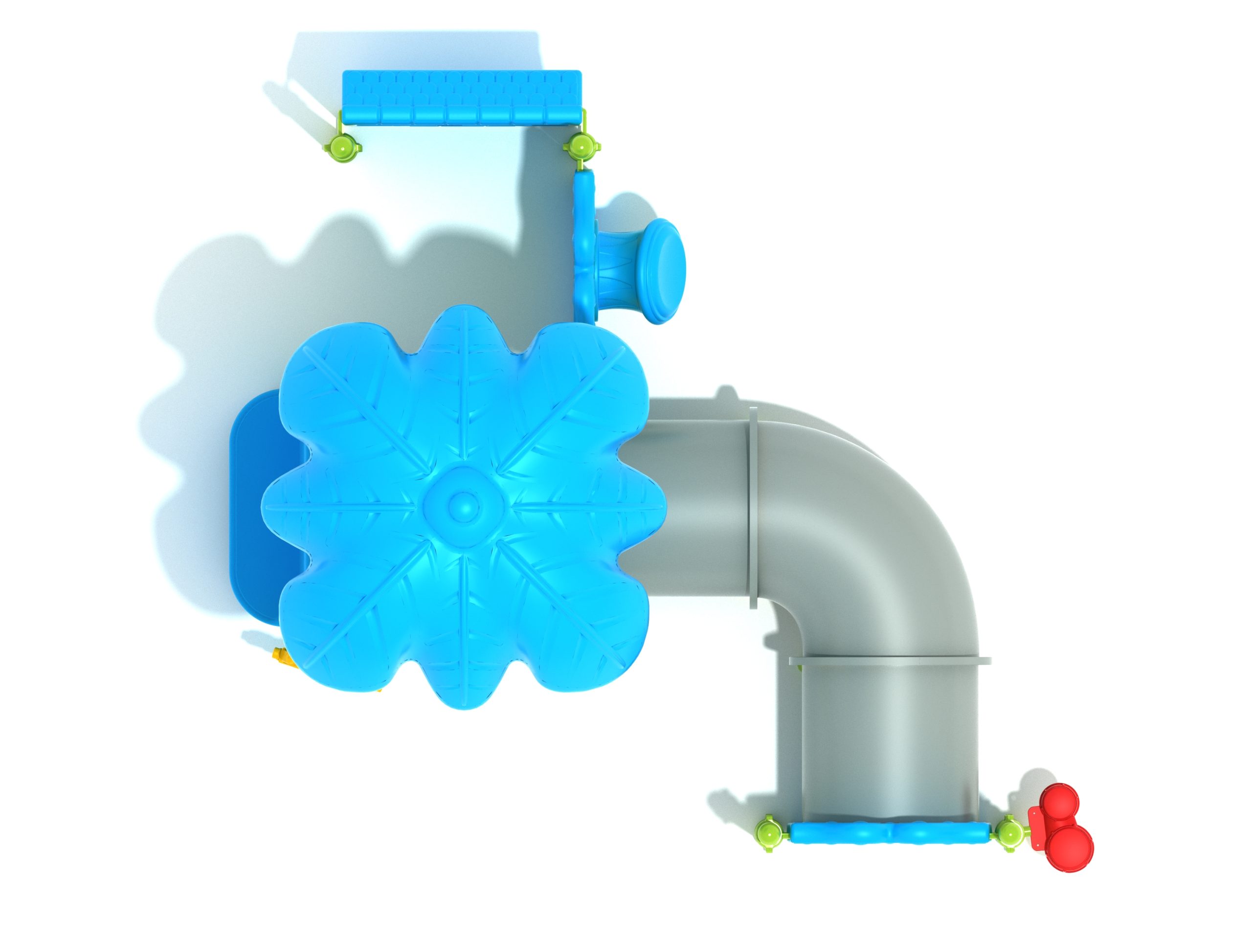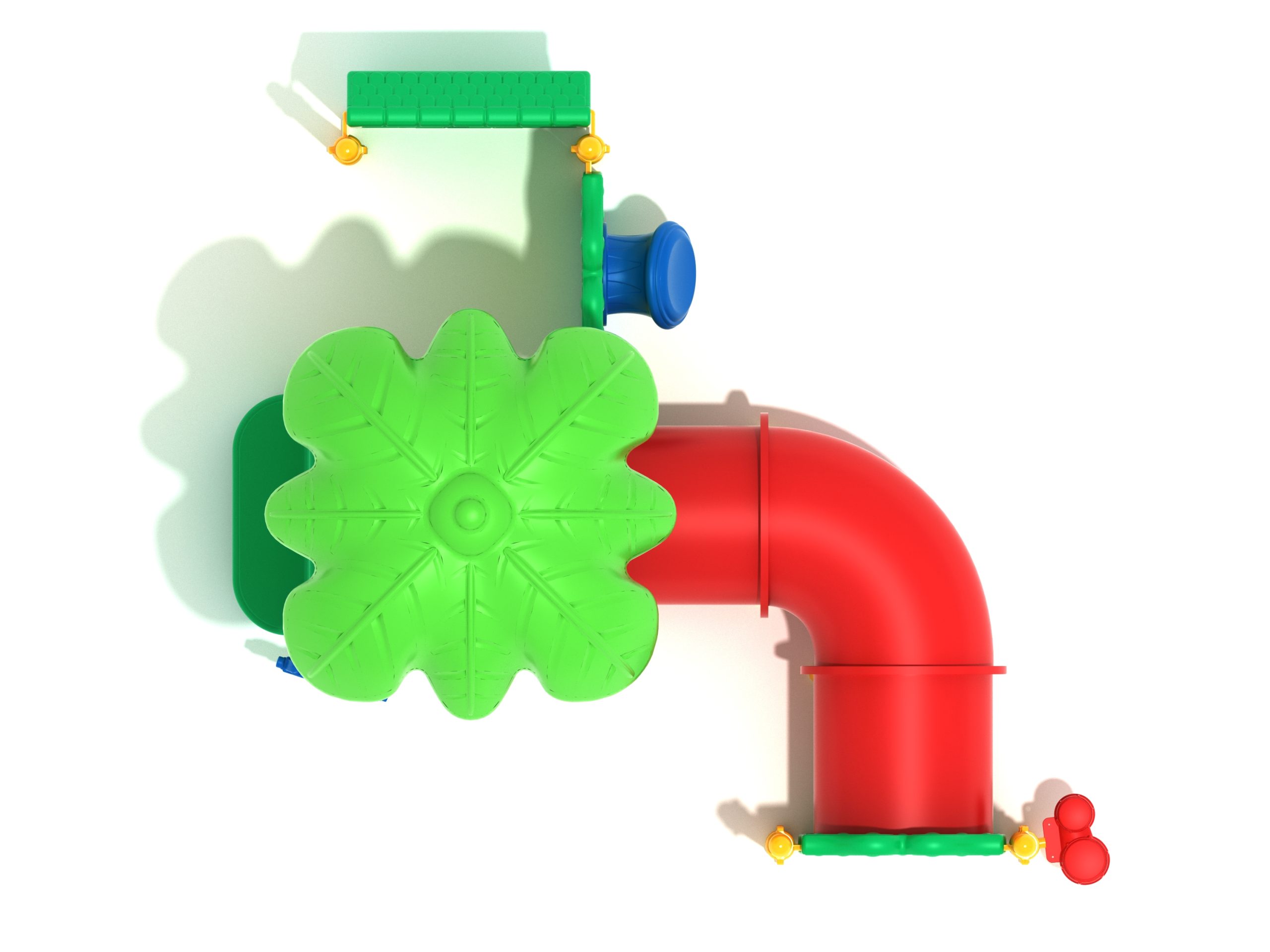 Ideal for daycare centers, preschool environments or even a public park for infants, Asheville has a small footprint with a variety of things to experience. All of the fun takes place beneath a quirky Leaf Roof which not only adds a playful aesthetic but also protects little ones from both sun and rain. There’s a Bench Panel which can be used for reading or just sitting with a friend and developing communication skills, and a Gear Panel to get young minds thinking about mechanisms and problem-solving. The Curved Crawl Tube stirs creative thought as children can crawl through into a cave of treasures or an unexplored wilderness. There are many tactile features to enjoy on the Asheville play set including a set of Bongos which make a distinctive sound and a large Drum Panel which they’ll enjoy banging with their hands. By using the Store Panel children can develop creativity as they buy and sell products, and a Ship’s Wheel carries on the adventure for young and adventurous sailors.