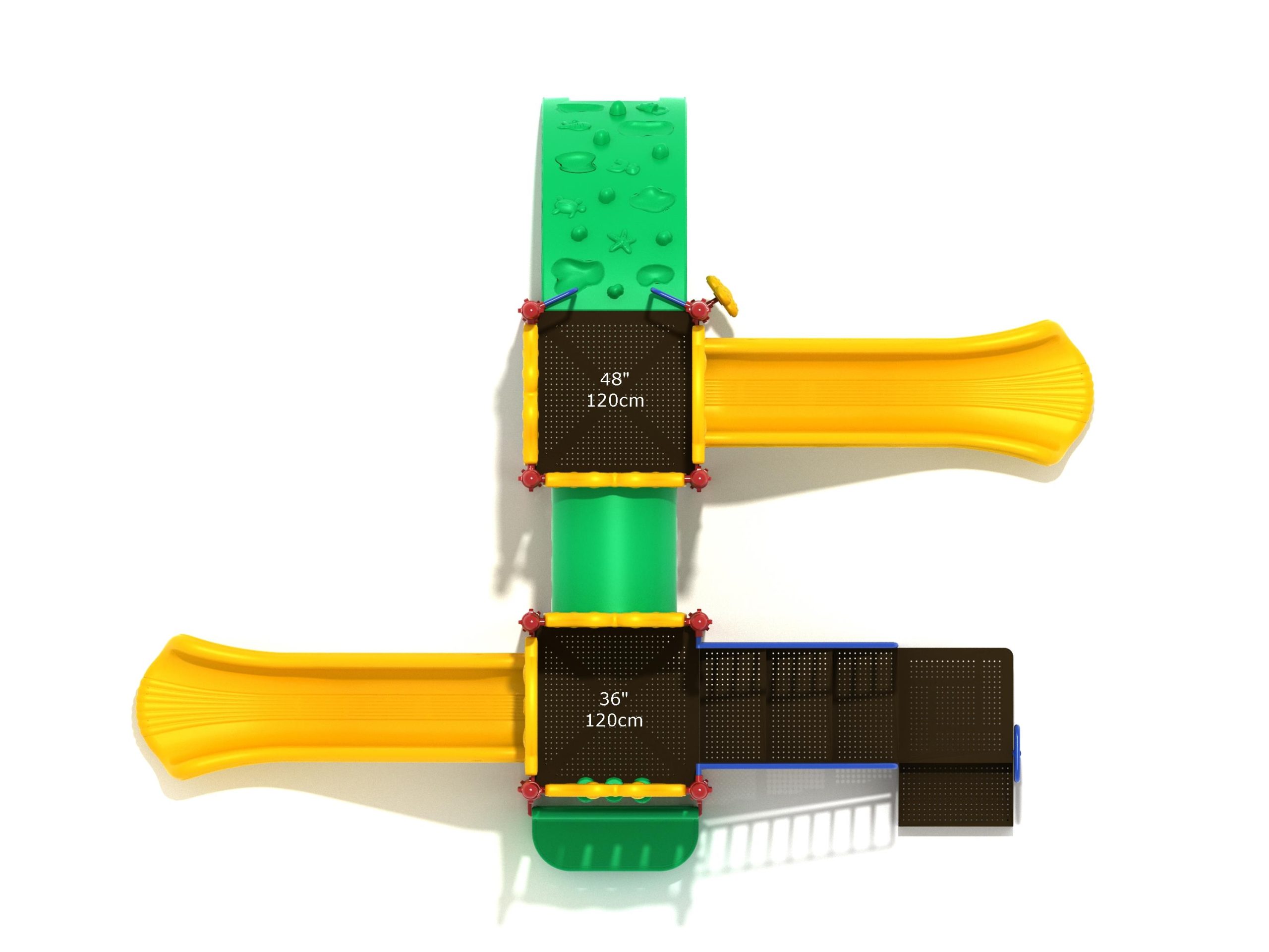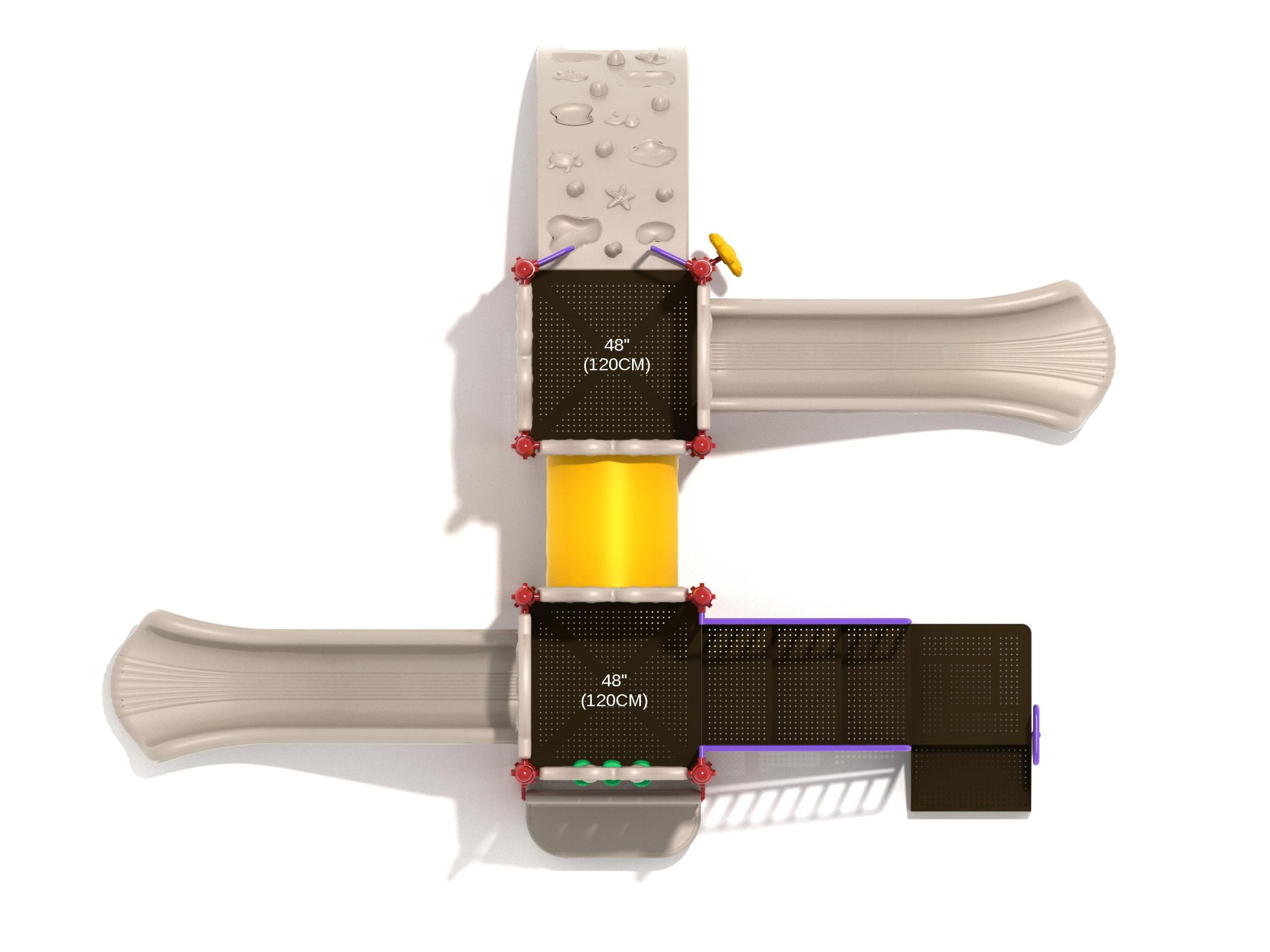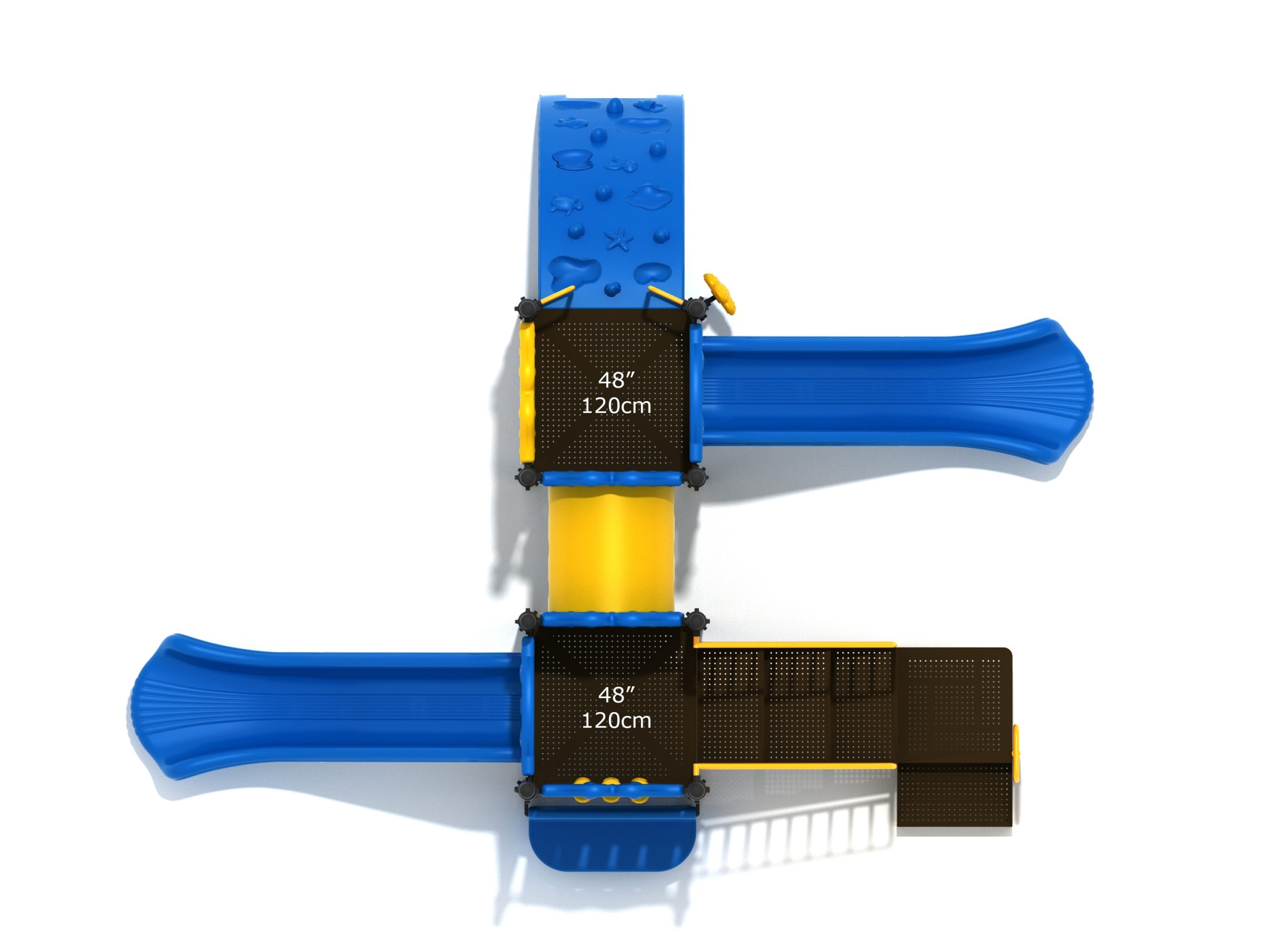 With so many features extending from the structure children are spoiled for choice when deciding what to do first. They can opt to climb straight up and whizz down either of the Straight Slides or have a friendly game of Tic Tac Toe with a friend to develop important problem-solving skills. There’s nothing more adventurous than climbing through the Tube Bridge which is lifted off the ground to connect the two upper platforms. It’s a fun structure to climb through but children will also like to hang out there pretending it’s a cave or secret passageway. For children who need a challenge, the Sea Creature Climber is sure to be a favorite way to climb aboard the Berkeley structure, using jellyfish and turtles to work their way up and over the curve. A Gear Panel adds interest and displays basic mechanisms for children and there’s a Rain Wheel that makes a sound like rain pouring down. For children who just want to sit quietly with a friend or enjoy a story, there’s an end Bench Panel too.