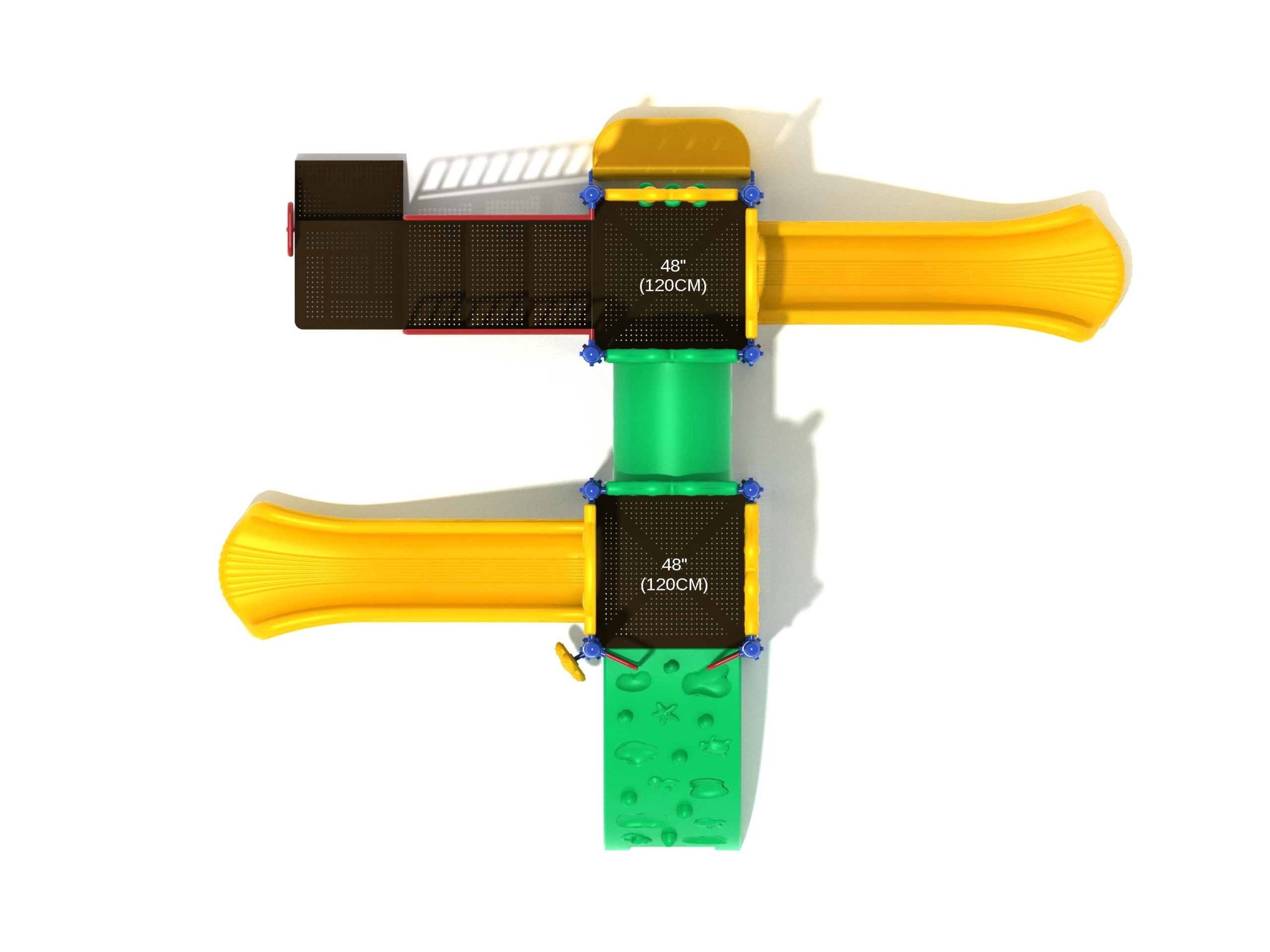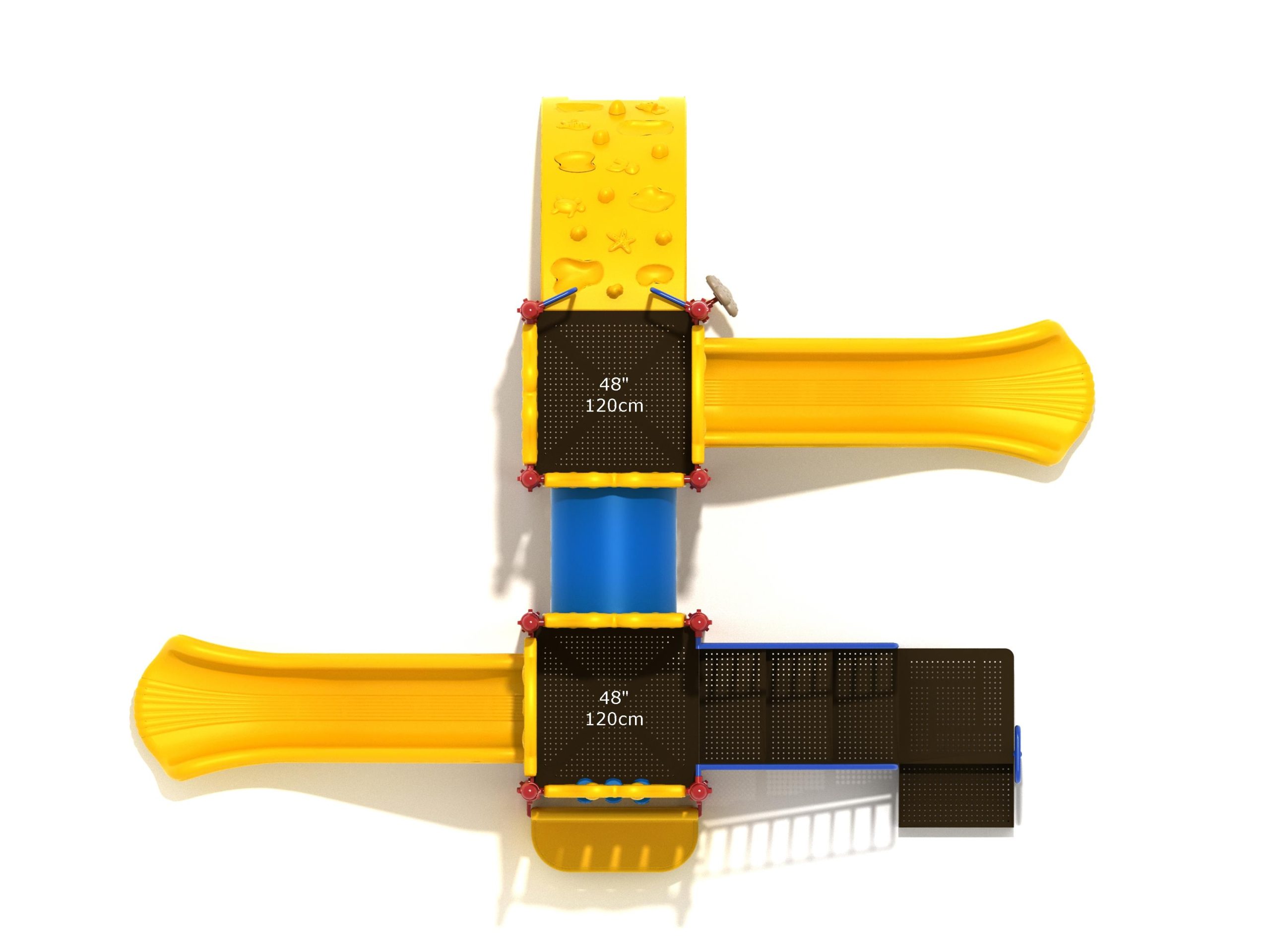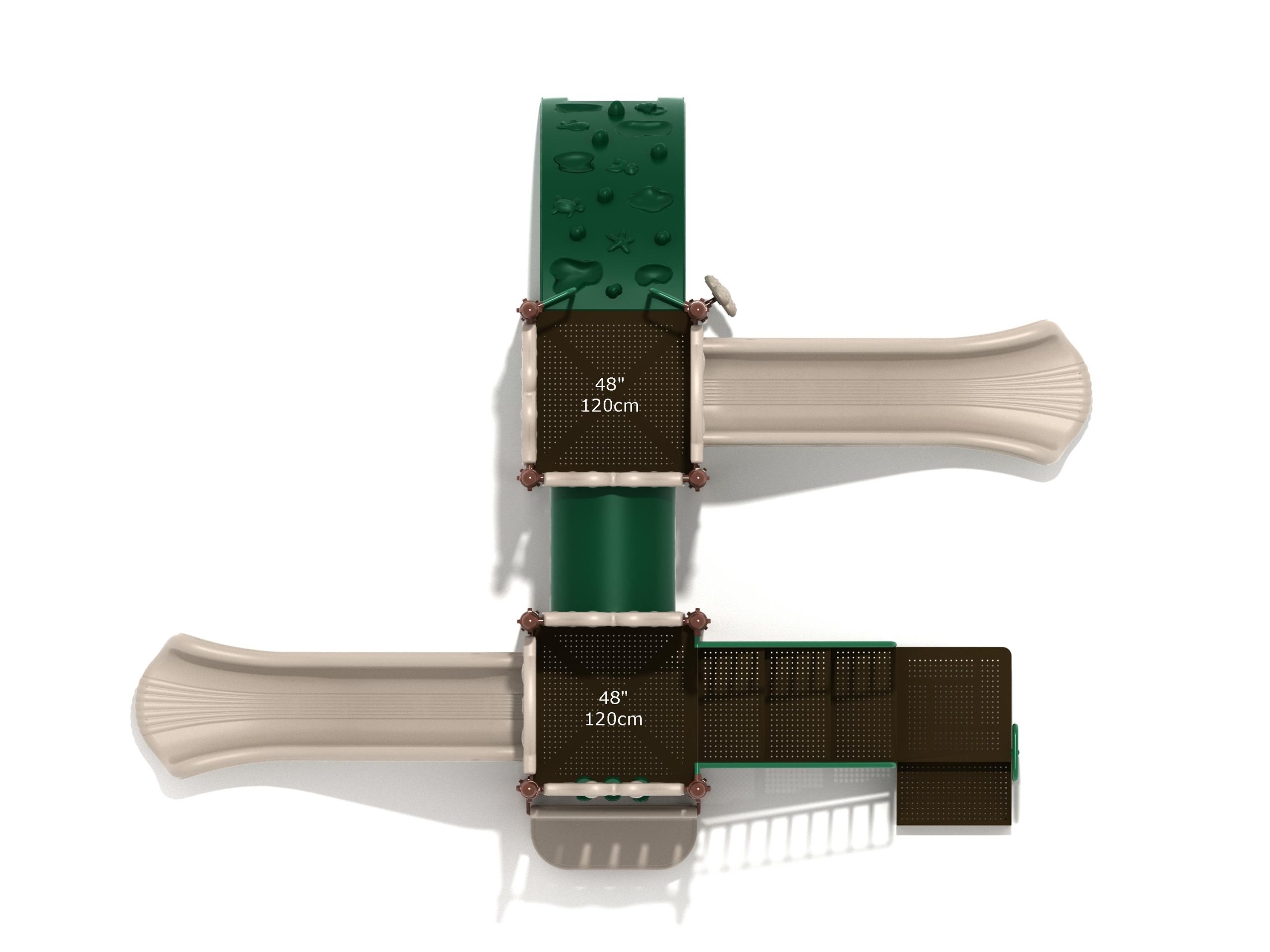 With so many features extending from the structure children are spoiled for choice when deciding what to do first. They can opt to climb straight up and whizz down either of the Straight Slides or have a friendly game of Tic Tac Toe with a friend to develop important problem-solving skills. There’s nothing more adventurous than climbing through the Tube Bridge which is lifted off the ground to connect the two upper platforms. It’s a fun structure to climb through but children will also like to hang out there pretending it’s a cave or secret passageway. For children who need a challenge, the Sea Creature Climber is sure to be a favorite way to climb aboard the Berkeley structure, using jellyfish and turtles to work their way up and over the curve. A Gear Panel adds interest and displays basic mechanisms for children and there’s a Rain Wheel that makes a sound like rain pouring down. For children who just want to sit quietly with a friend or enjoy a story, there’s an end Bench Panel too.
