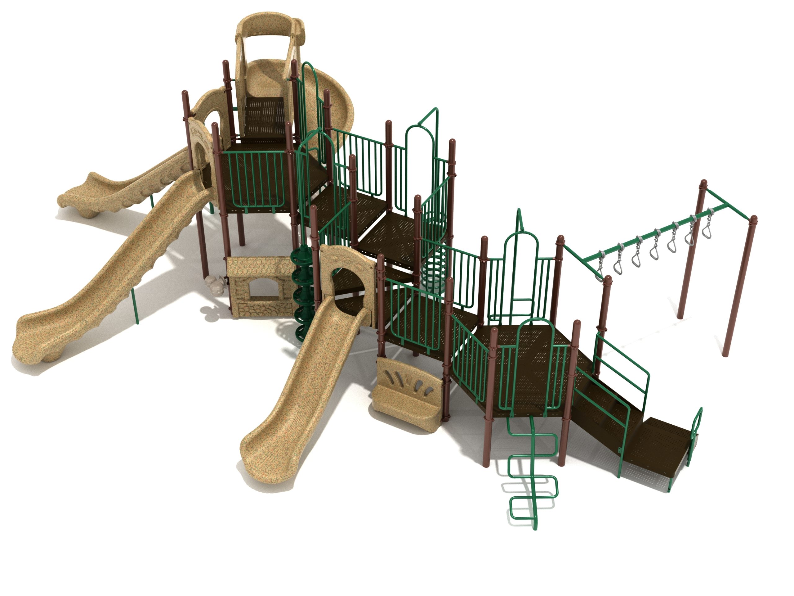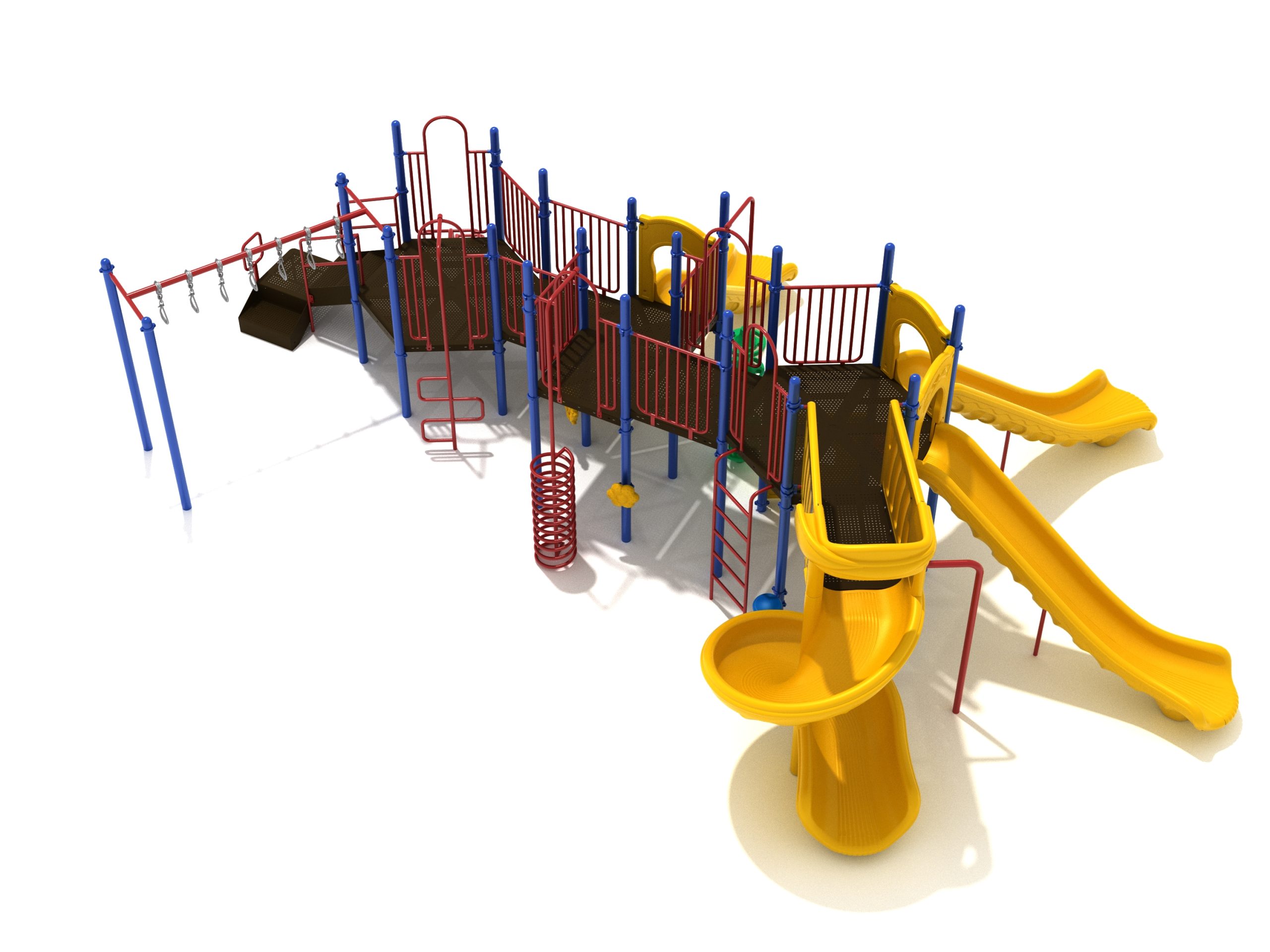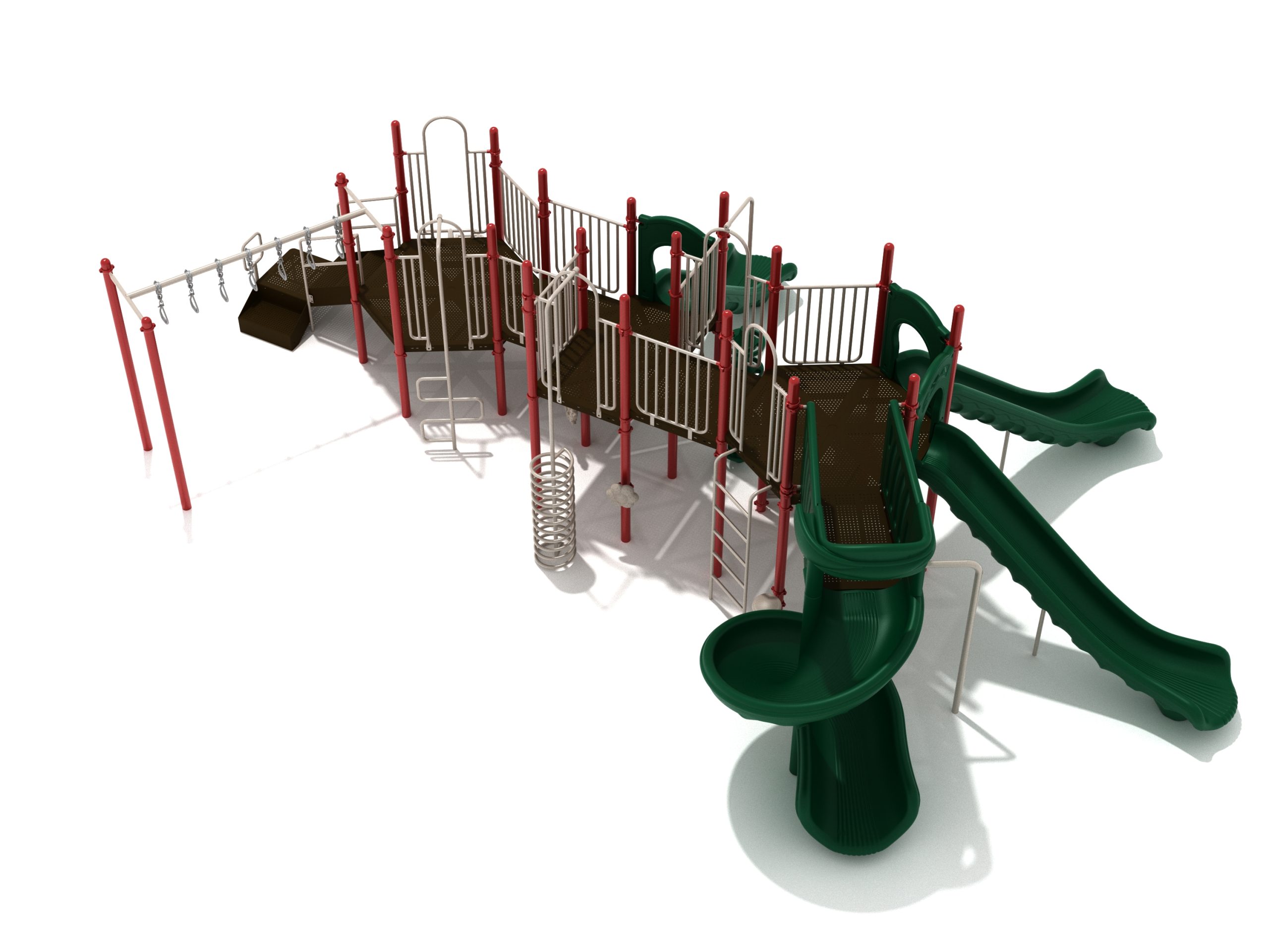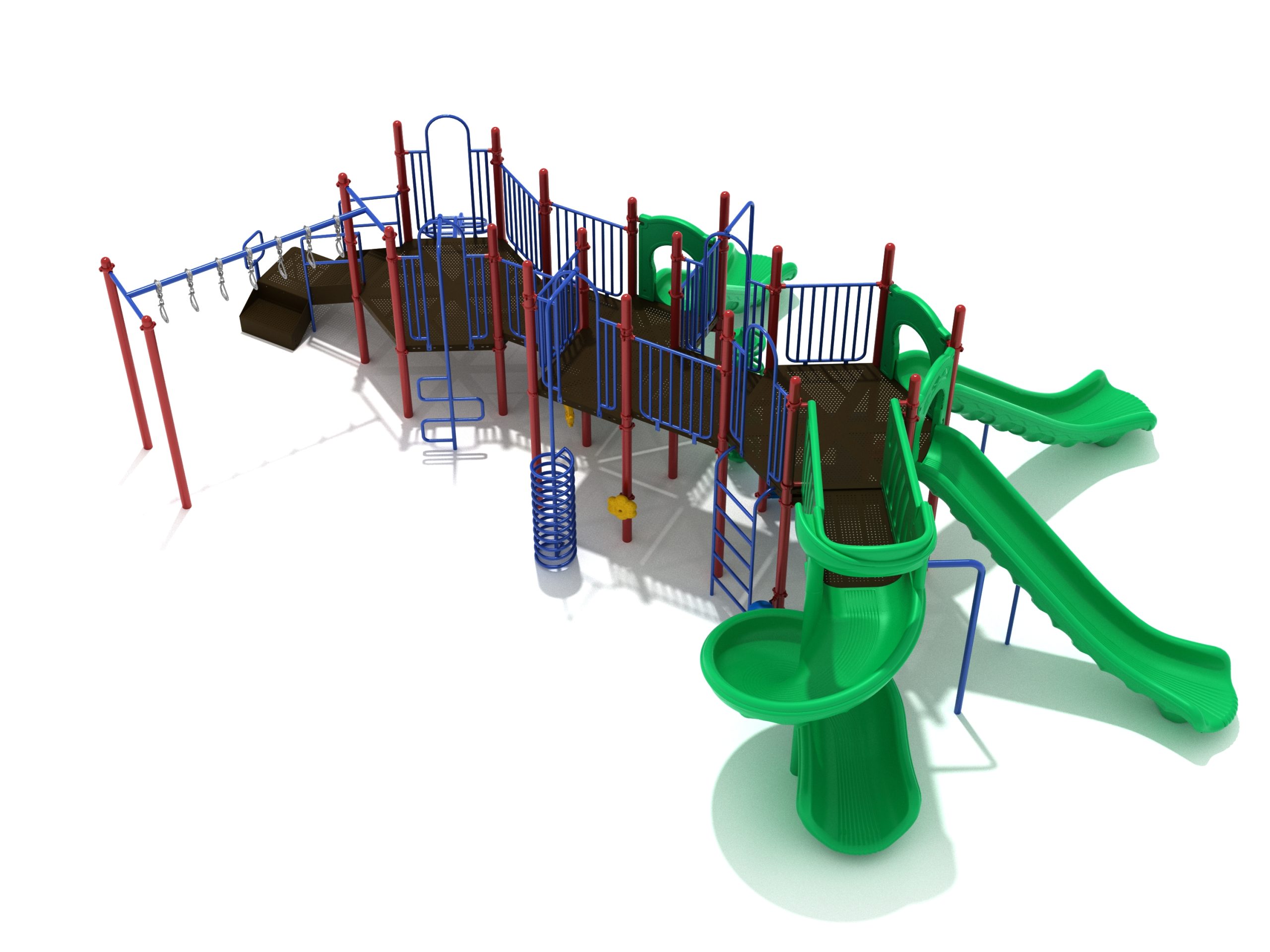 This massive play structure has multiple slides, activities, and amenities that’ll attract kids from afar! It is like a castle with mazes consisting of eye-pleasing surprises for young explorers. It can easily support huge crowds of kids, as many as 87 kids at once. It features two Snake Climbers and a Swinging Ring Ladder for entry. There are 2 hub areas for kids to be kids and have the time of their lives! Safe dismount areas reduce the risk of collisions. Also, Broken Arrow has ground-level features like the Store and Bench Panels for kids to chill, relax, and do a little socializing. There are 2 hub areas that lead to friendly competition that may take the shape of kids recreating Robin Hood-like adventures. The Spiral Slide and two Straight Slides offer thrilling sliding fun that kids might want to try over and over. The overall layout & variety of games support active play. Broken Arrow helps kids develop their motor skills while enjoying themselves in a safe environment.