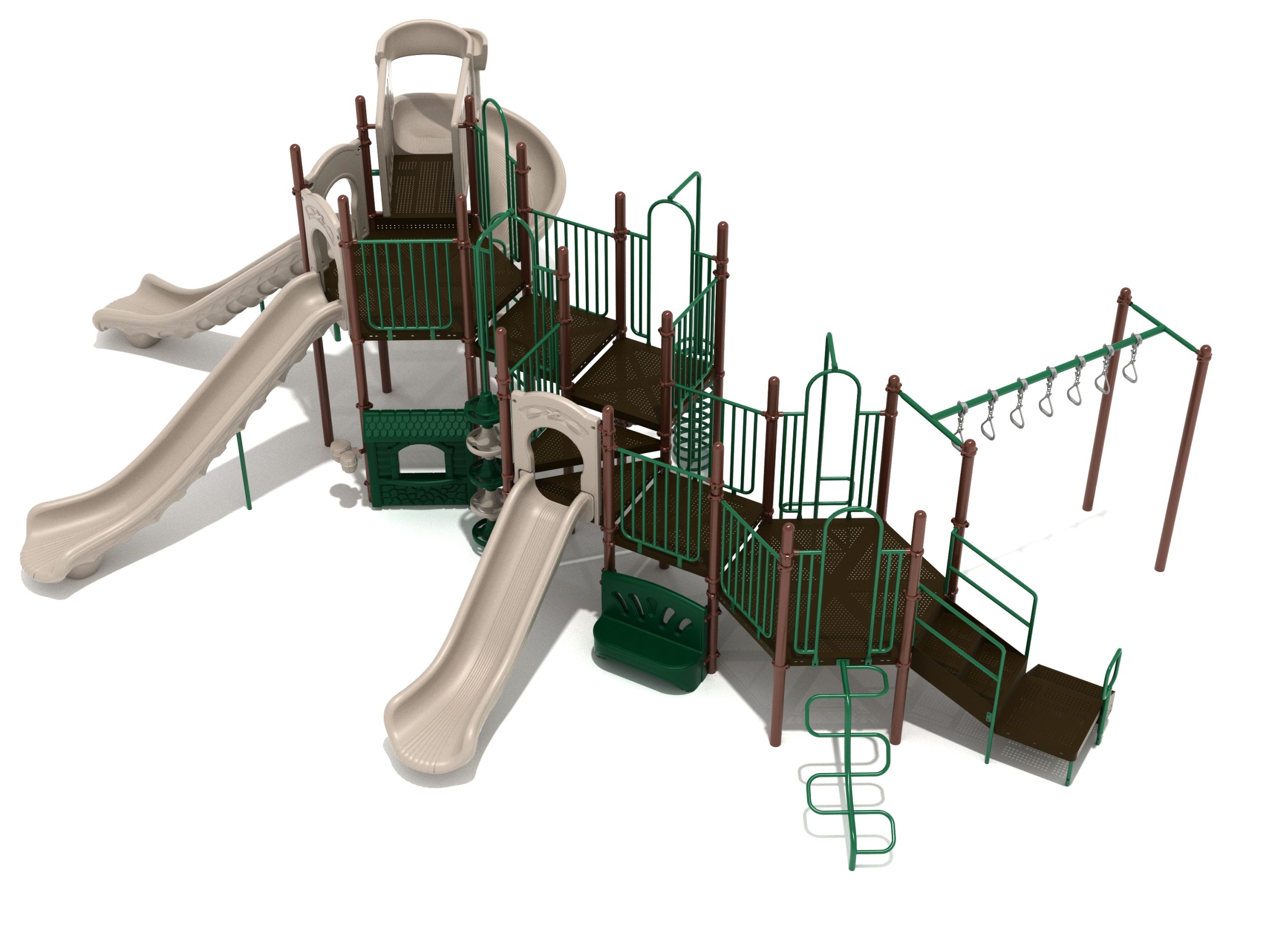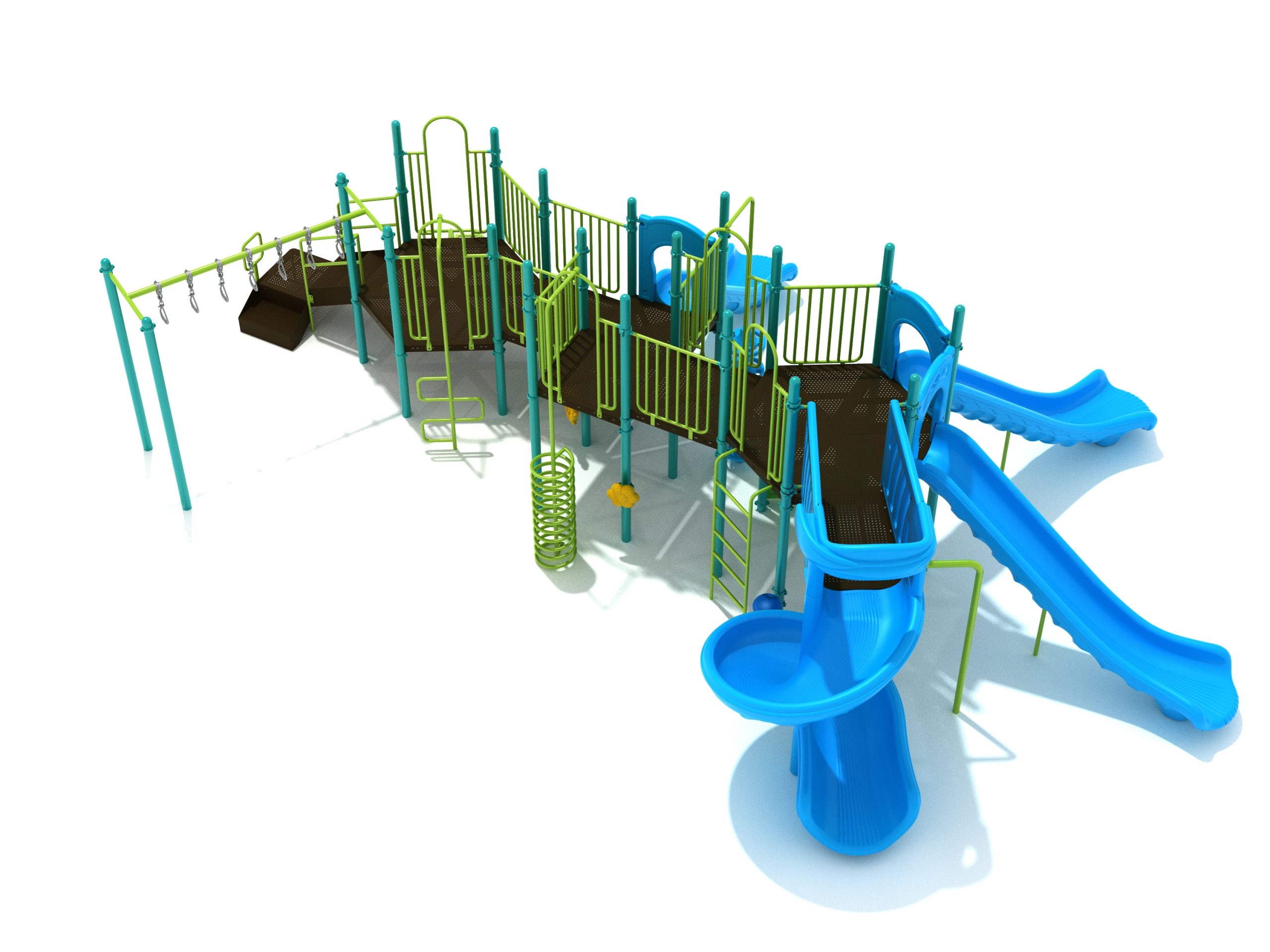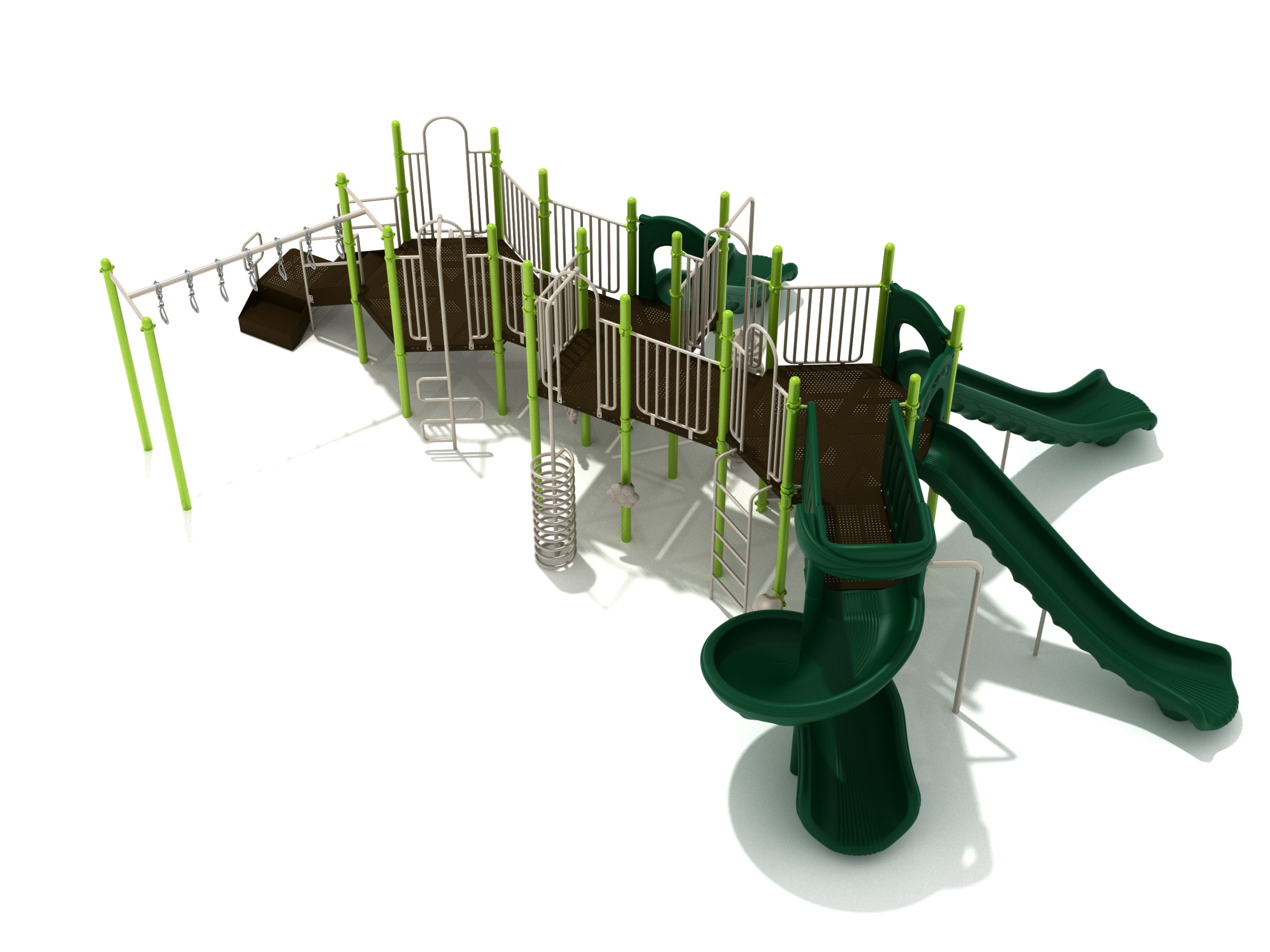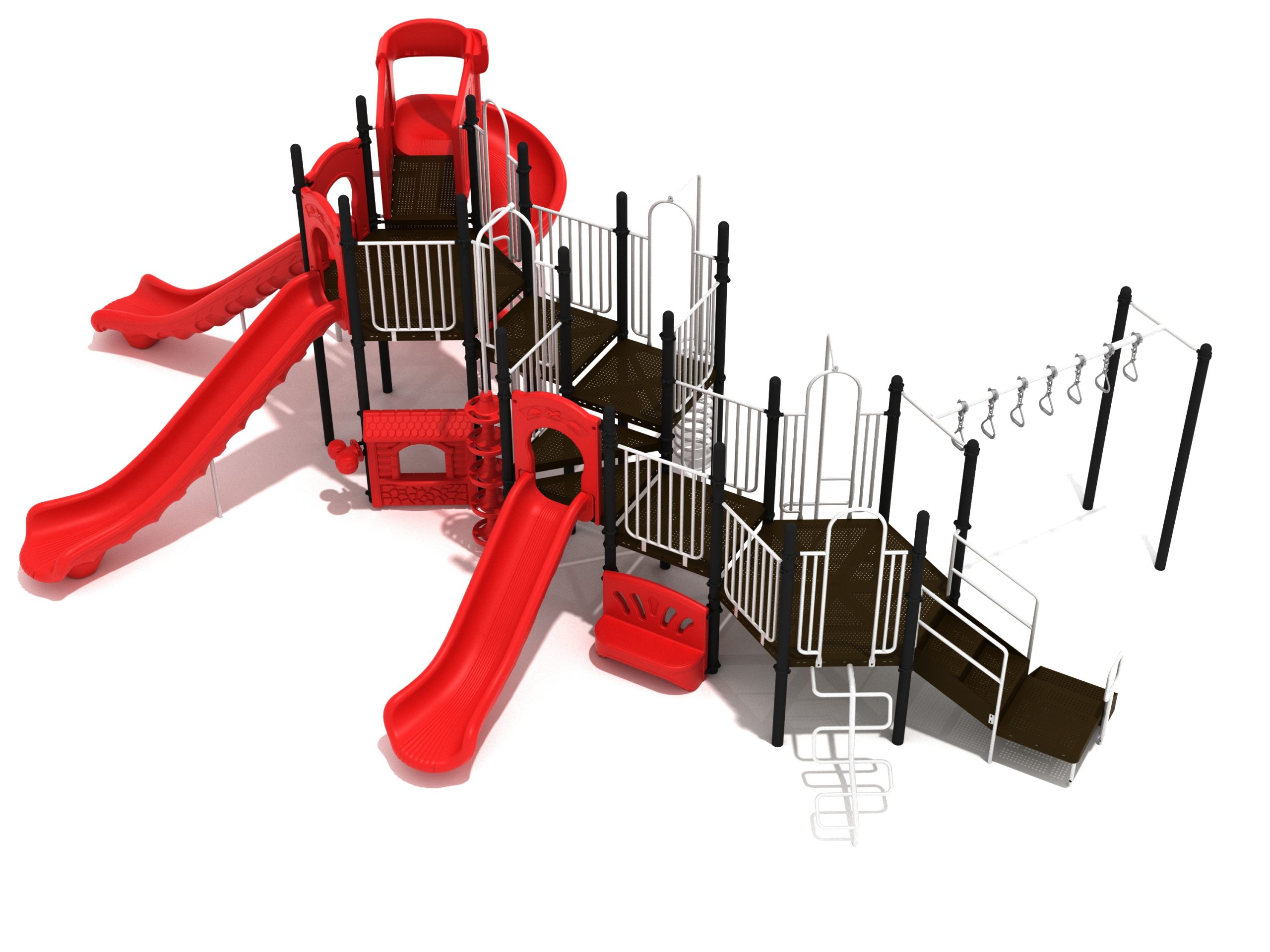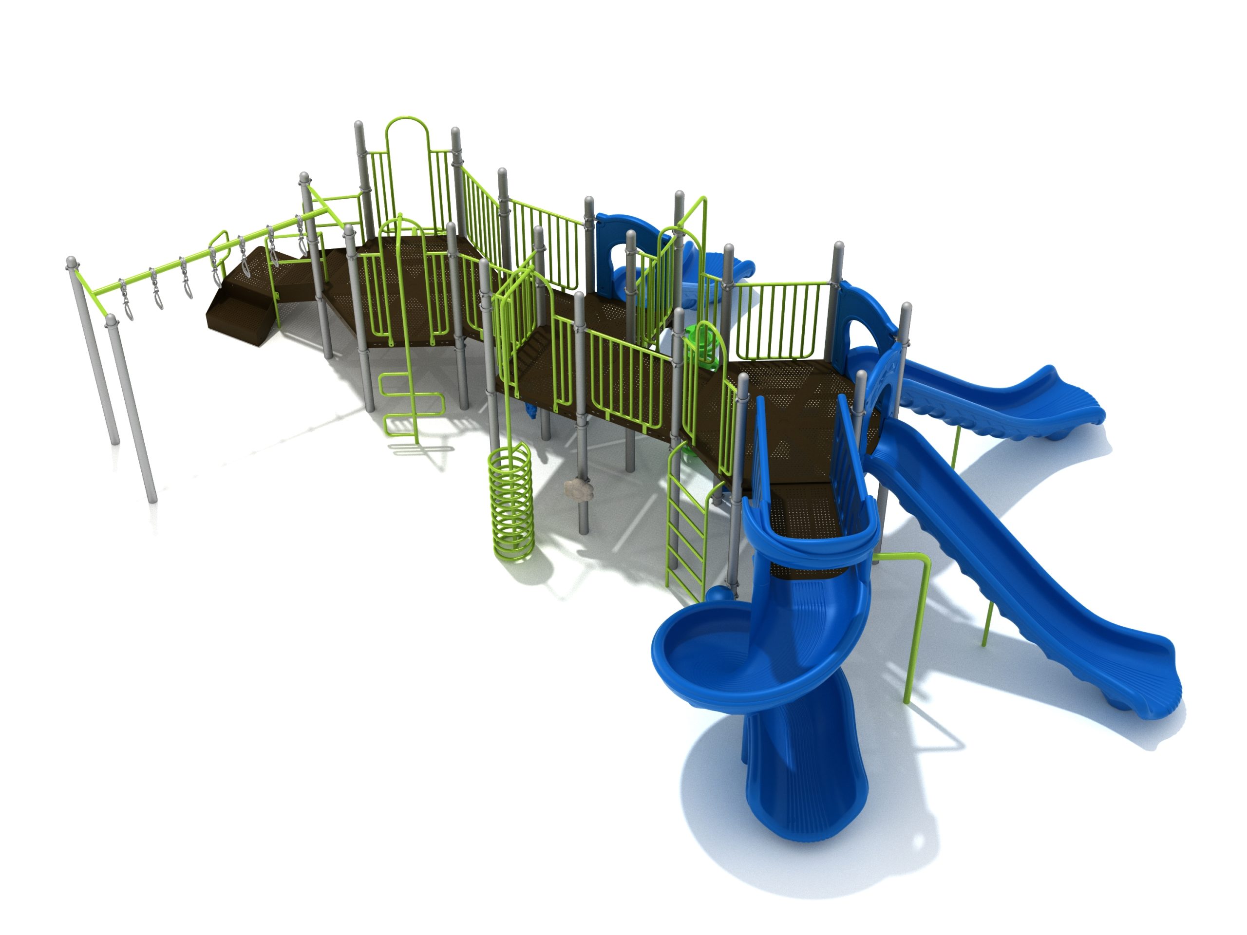 This massive play structure has multiple slides, activities, and amenities that’ll attract kids from afar! It is like a castle with mazes consisting of eye-pleasing surprises for young explorers. It can easily support huge crowds of kids, as many as 87 kids at once. It features two Snake Climbers and a Swinging Ring Ladder for entry. There are 2 hub areas for kids to be kids and have the time of their lives! Safe dismount areas reduce the risk of collisions. Also, Broken Arrow has ground-level features like the Store and Bench Panels for kids to chill, relax, and do a little socializing. There are 2 hub areas that lead to friendly competition that may take the shape of kids recreating Robin Hood-like adventures. The Spiral Slide and two Straight Slides offer thrilling sliding fun that kids might want to try over and over. The overall layout & variety of games support active play. Broken Arrow helps kids develop their motor skills while enjoying themselves in a safe environment.