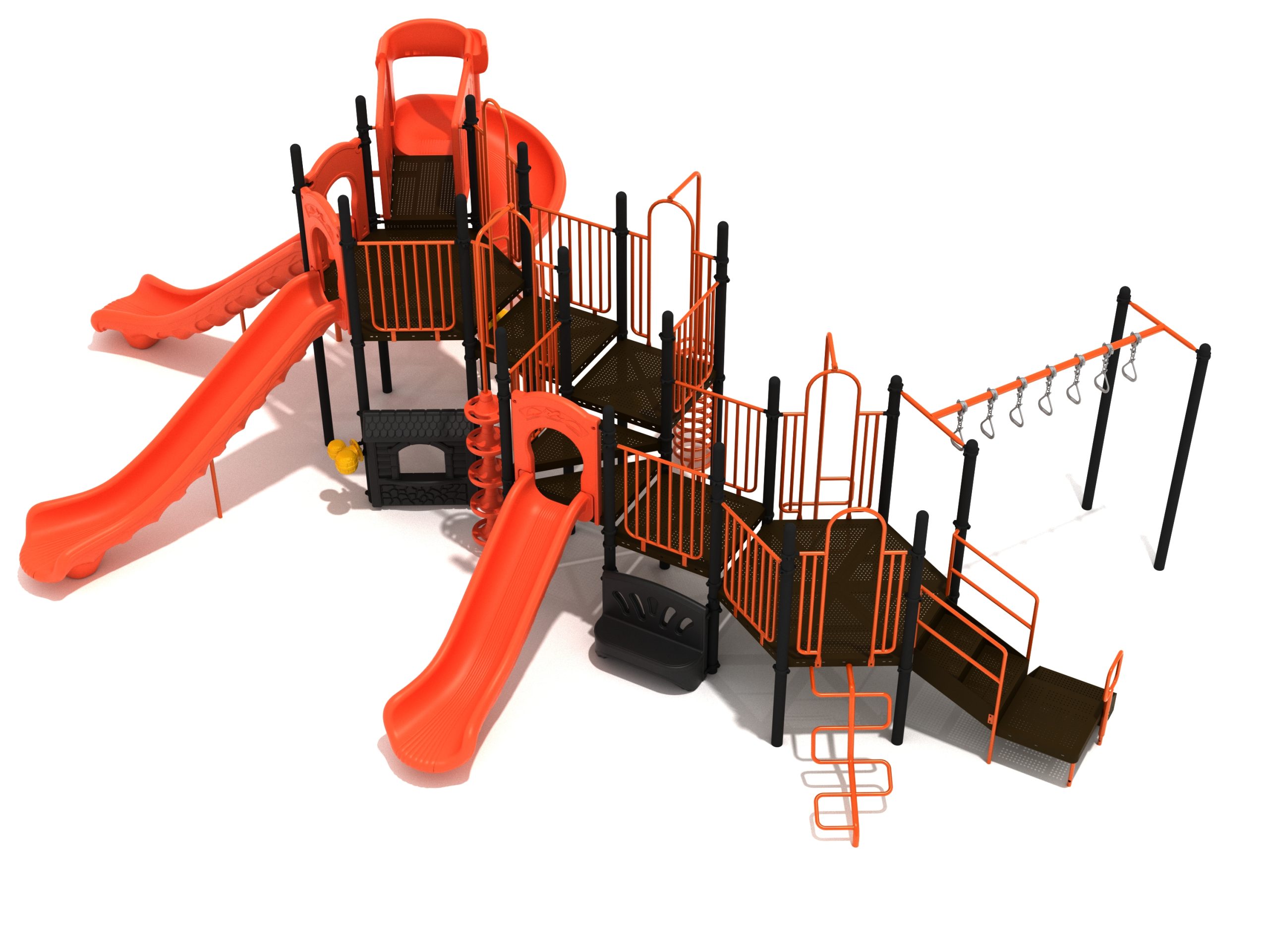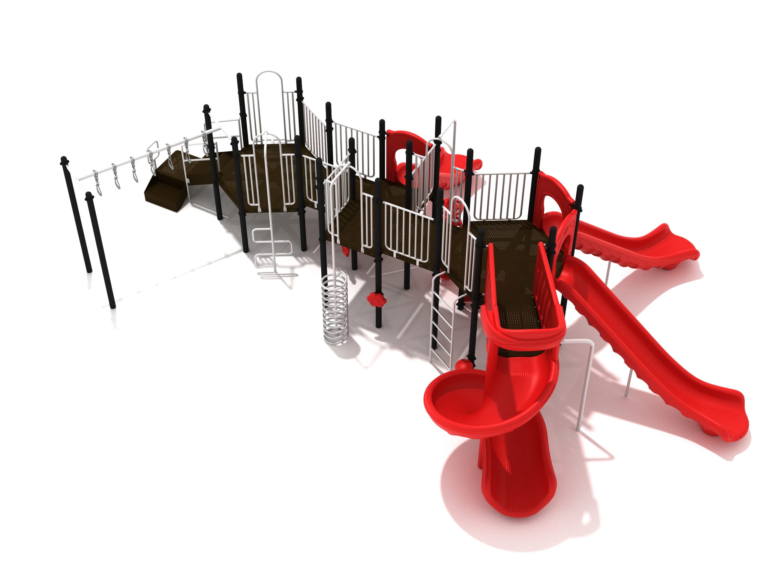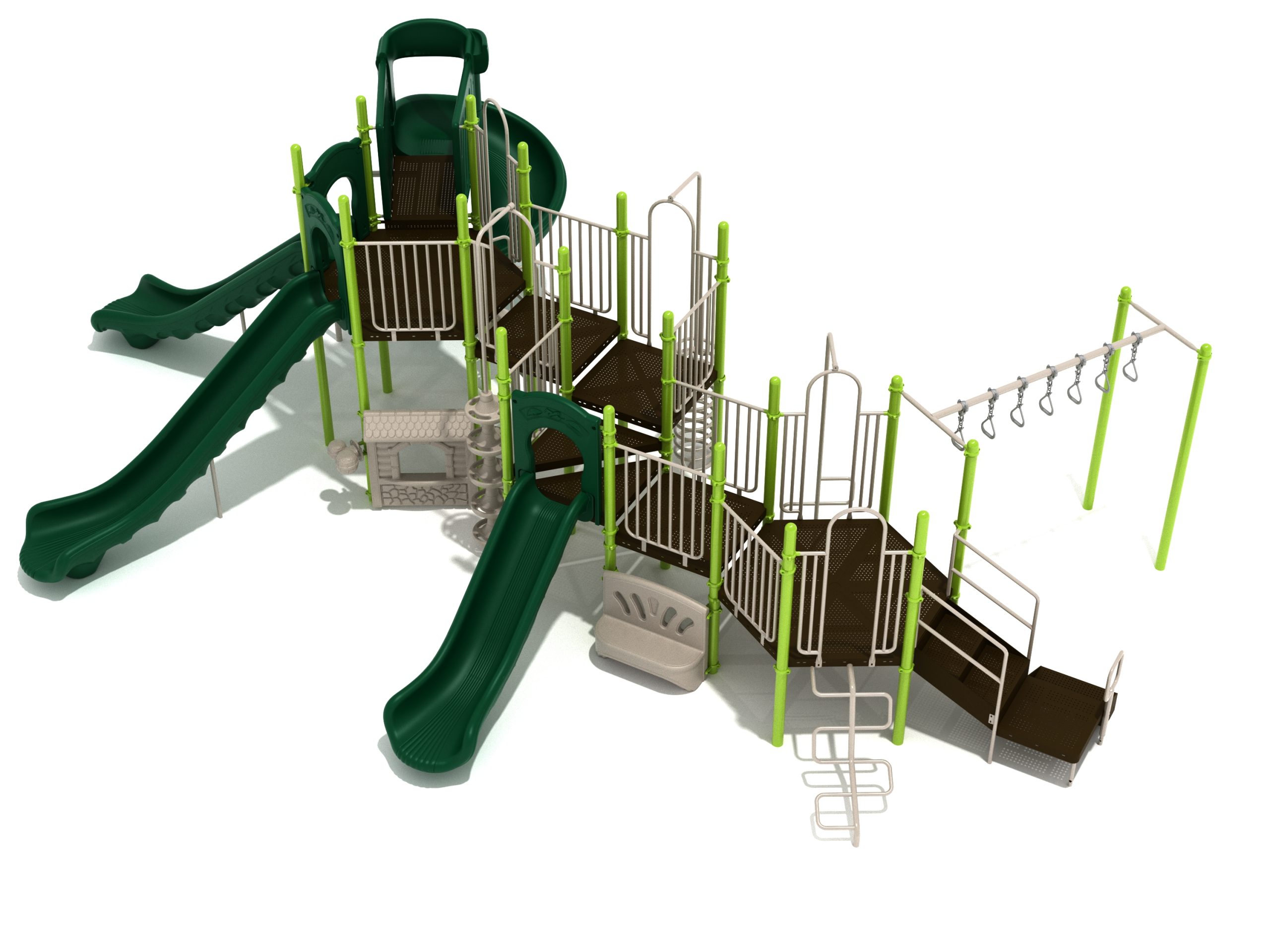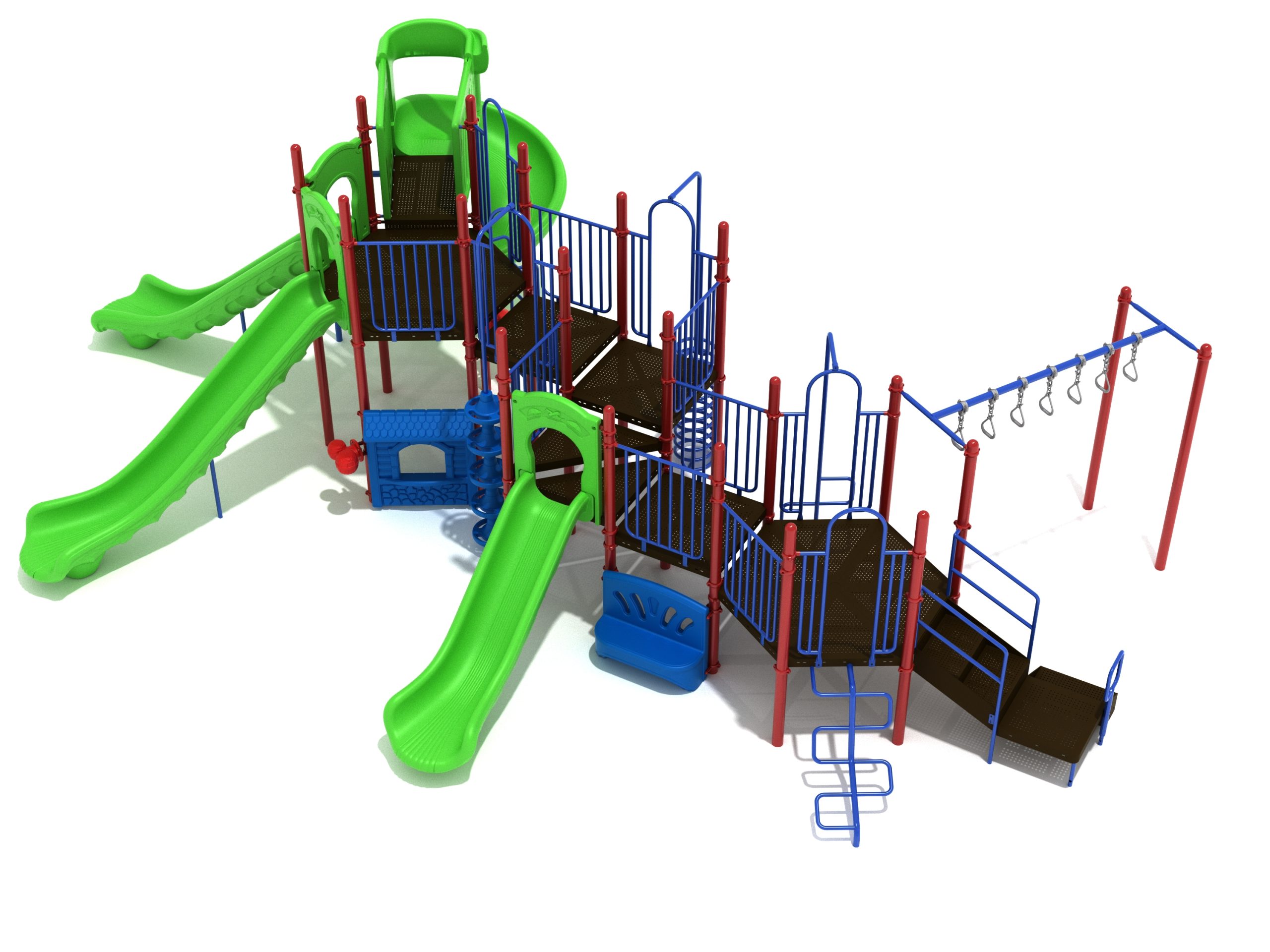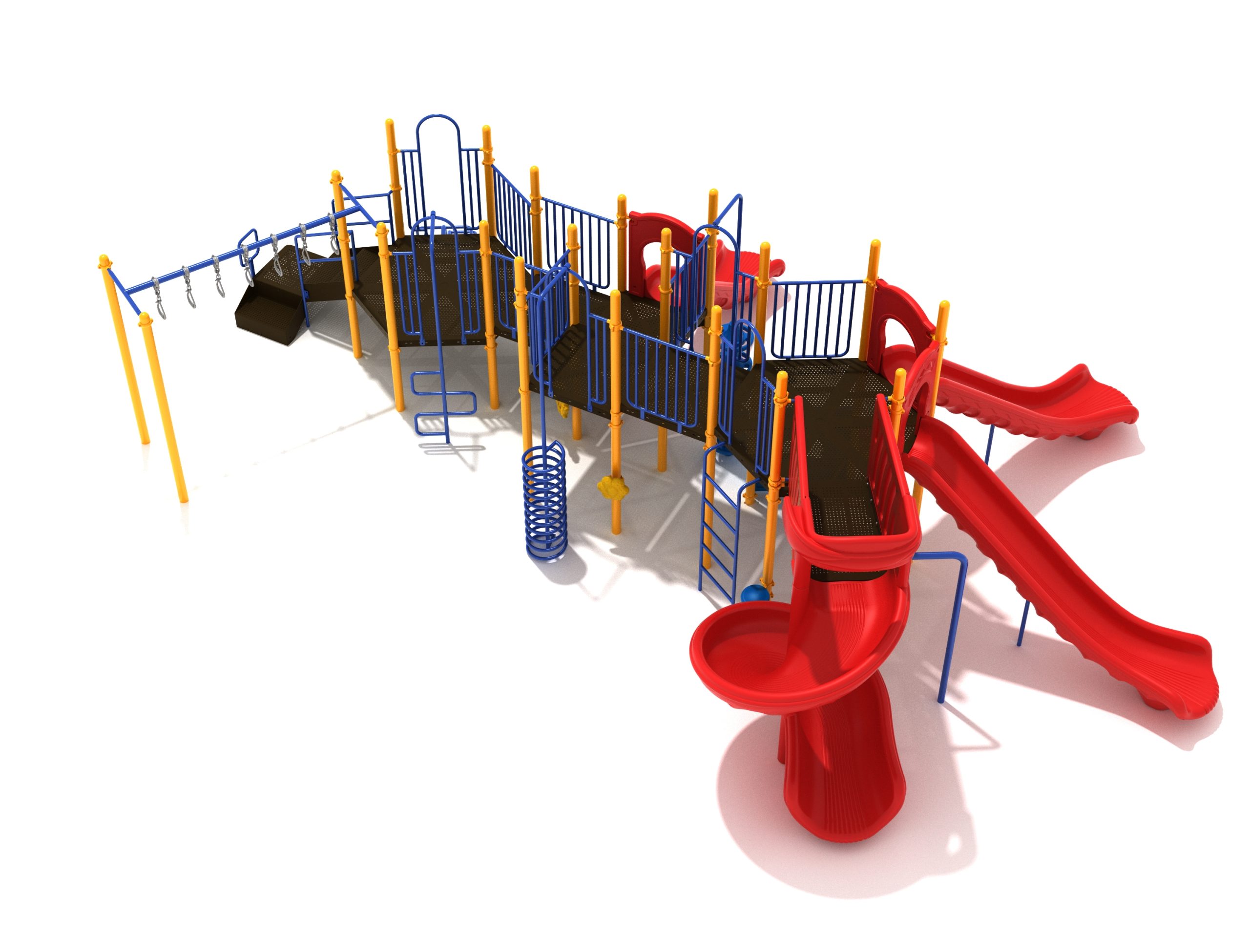 This massive play structure has multiple slides, activities, and amenities that’ll attract kids from afar! It is like a castle with mazes consisting of eye-pleasing surprises for young explorers. It can easily support huge crowds of kids, as many as 87 kids at once. It features two Snake Climbers and a Swinging Ring Ladder for entry. There are 2 hub areas for kids to be kids and have the time of their lives! Safe dismount areas reduce the risk of collisions. Also, Broken Arrow has ground-level features like the Store and Bench Panels for kids to chill, relax, and do a little socializing. There are 2 hub areas that lead to friendly competition that may take the shape of kids recreating Robin Hood-like adventures. The Spiral Slide and two Straight Slides offer thrilling sliding fun that kids might want to try over and over. The overall layout & variety of games support active play. Broken Arrow helps kids develop their motor skills while enjoying themselves in a safe environment.