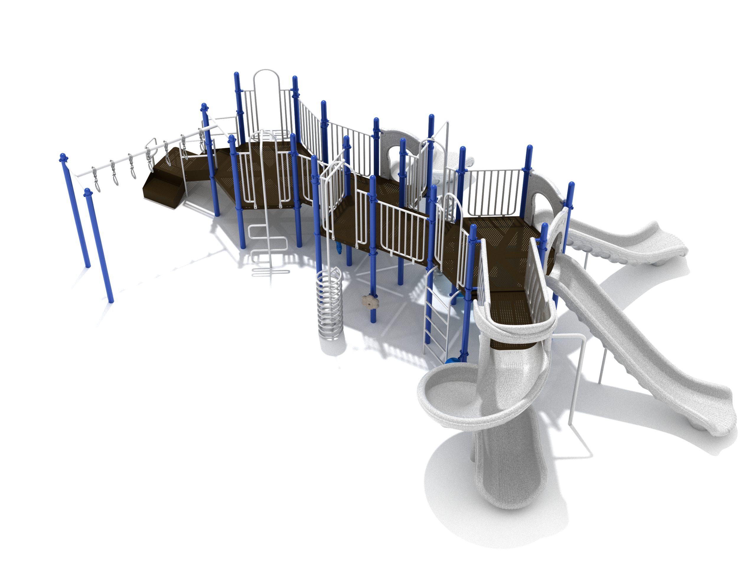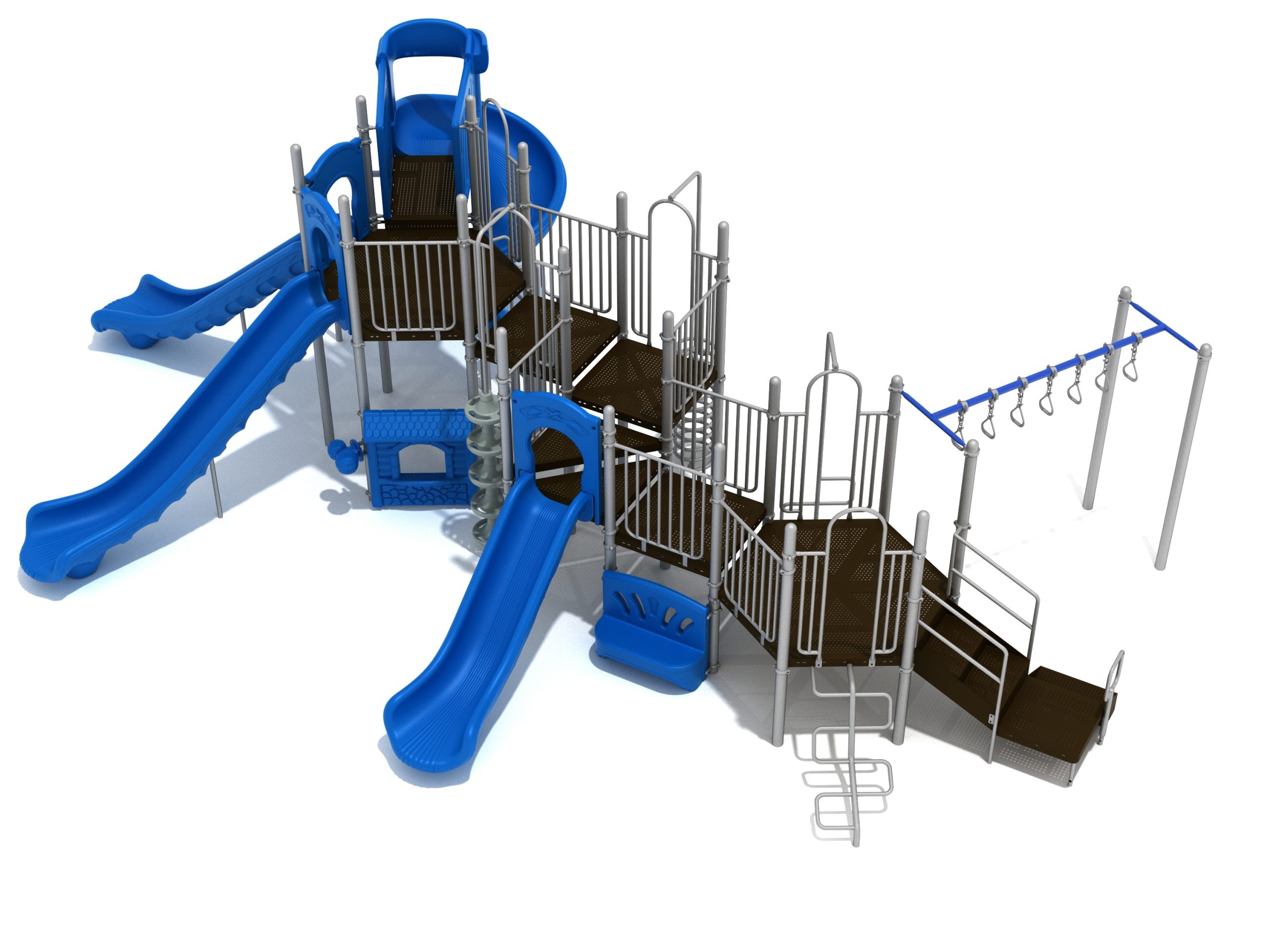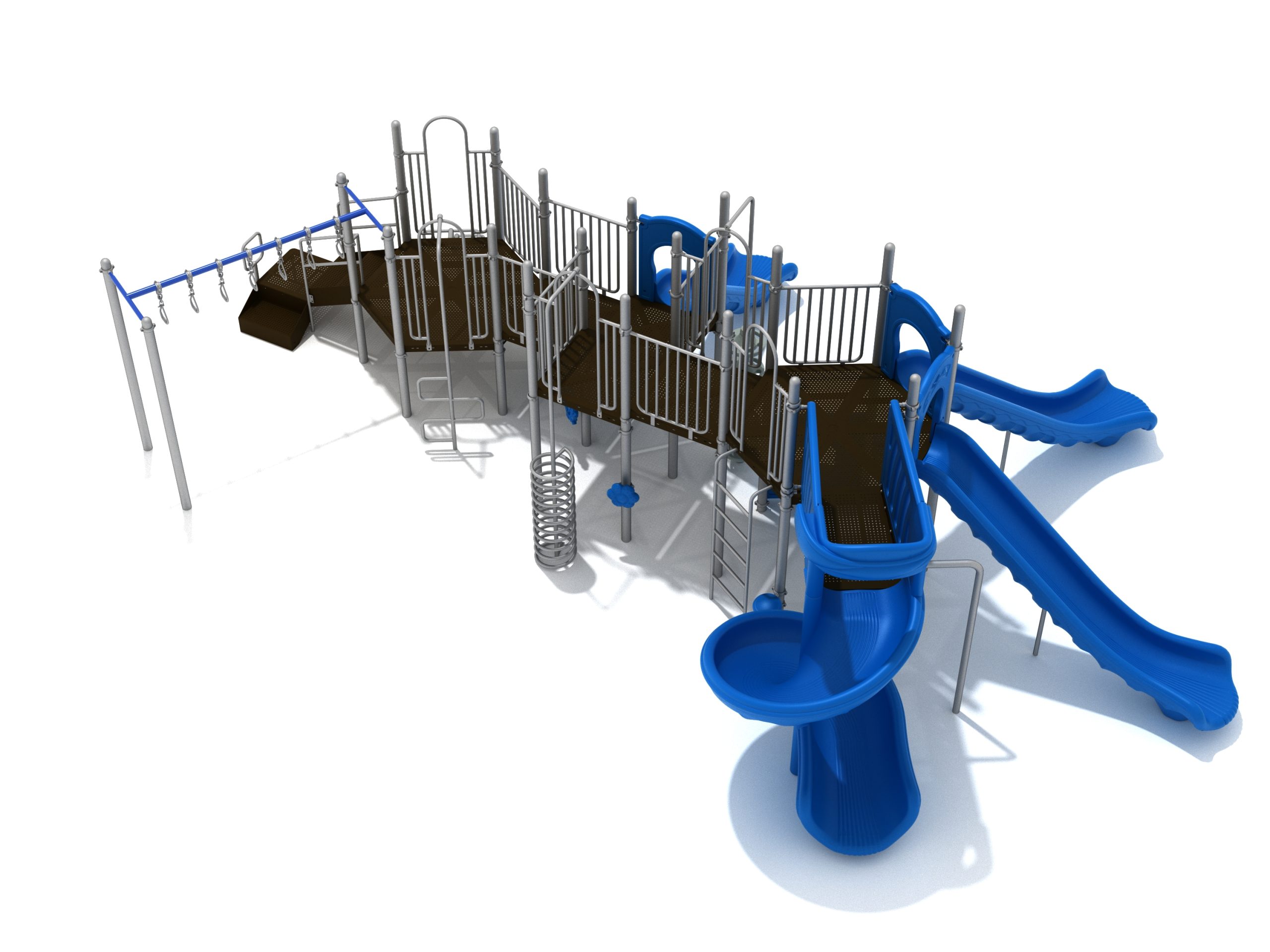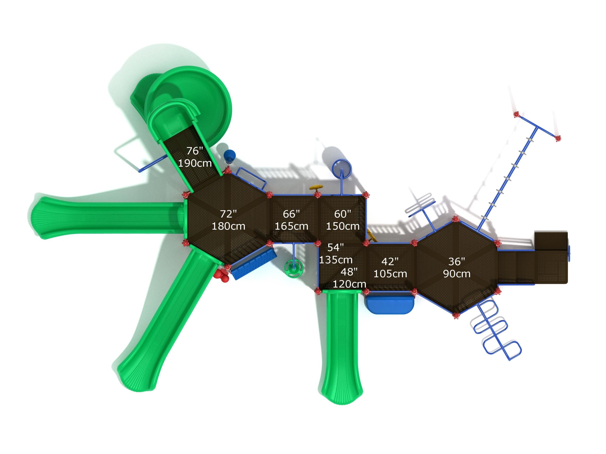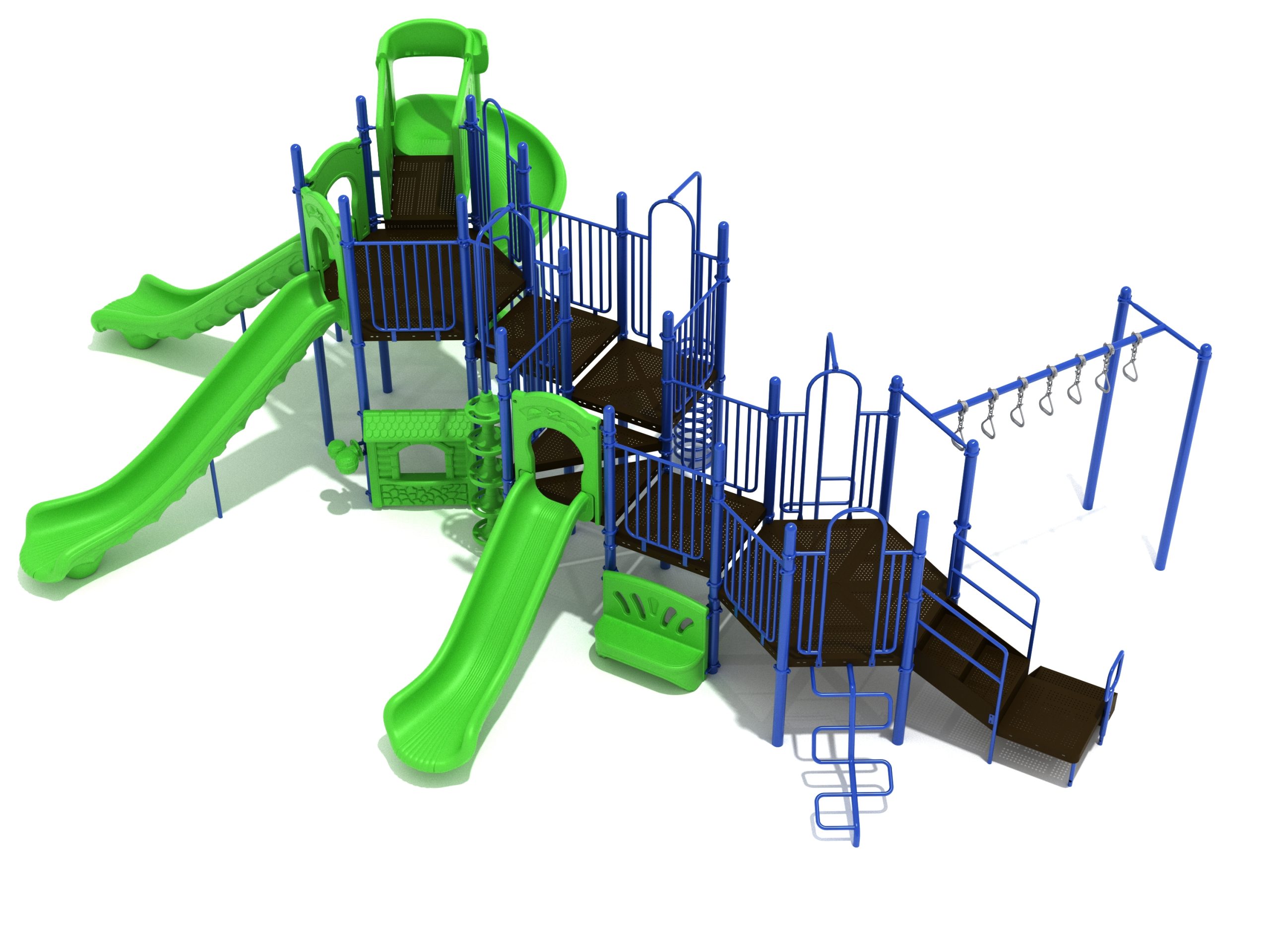 This massive play structure has multiple slides, activities, and amenities that’ll attract kids from afar! It is like a castle with mazes consisting of eye-pleasing surprises for young explorers. It can easily support huge crowds of kids, as many as 87 kids at once. It features two Snake Climbers and a Swinging Ring Ladder for entry. There are 2 hub areas for kids to be kids and have the time of their lives! Safe dismount areas reduce the risk of collisions. Also, Broken Arrow has ground-level features like the Store and Bench Panels for kids to chill, relax, and do a little socializing. There are 2 hub areas that lead to friendly competition that may take the shape of kids recreating Robin Hood-like adventures. The Spiral Slide and two Straight Slides offer thrilling sliding fun that kids might want to try over and over. The overall layout & variety of games support active play. Broken Arrow helps kids develop their motor skills while enjoying themselves in a safe environment.