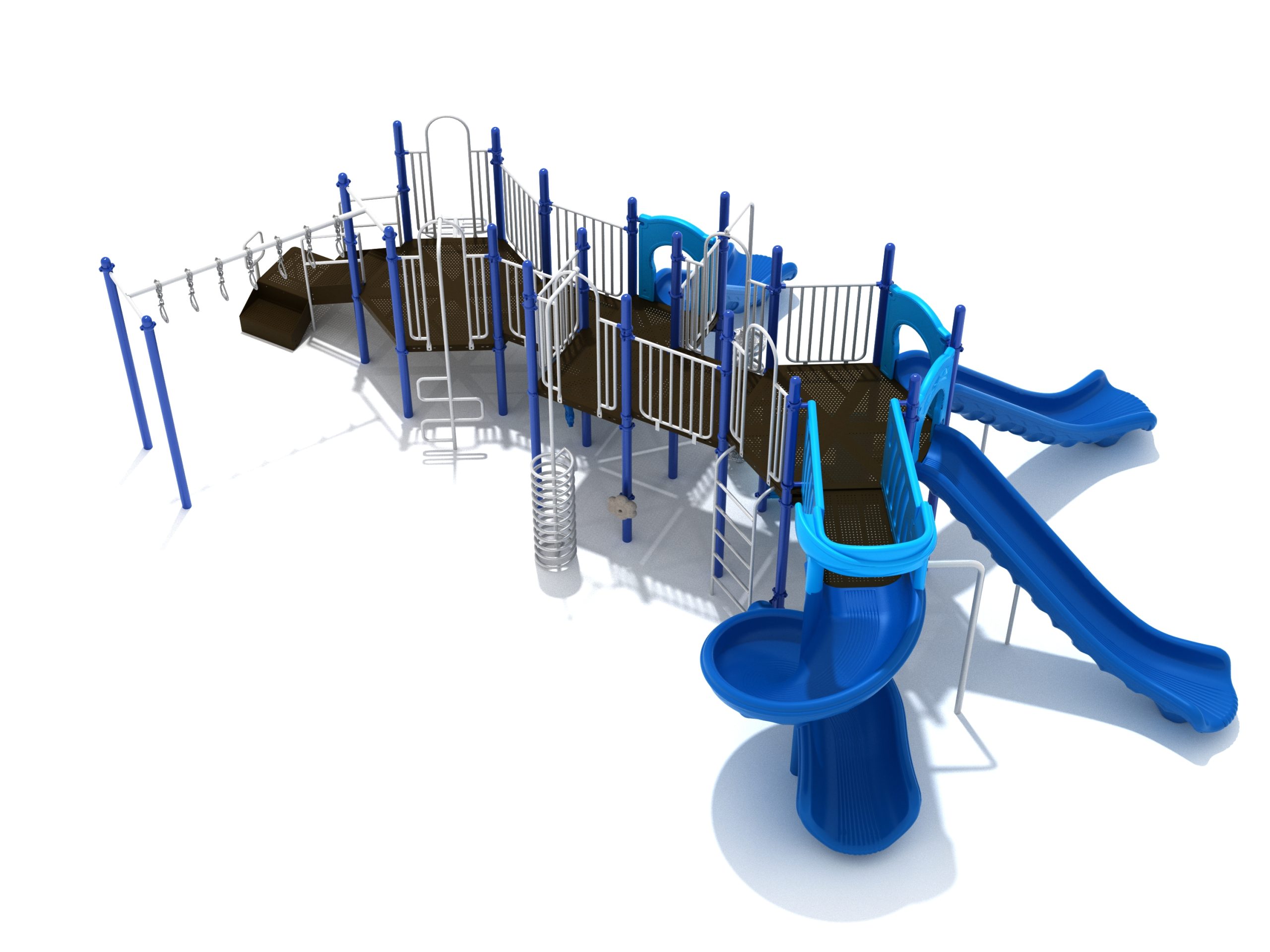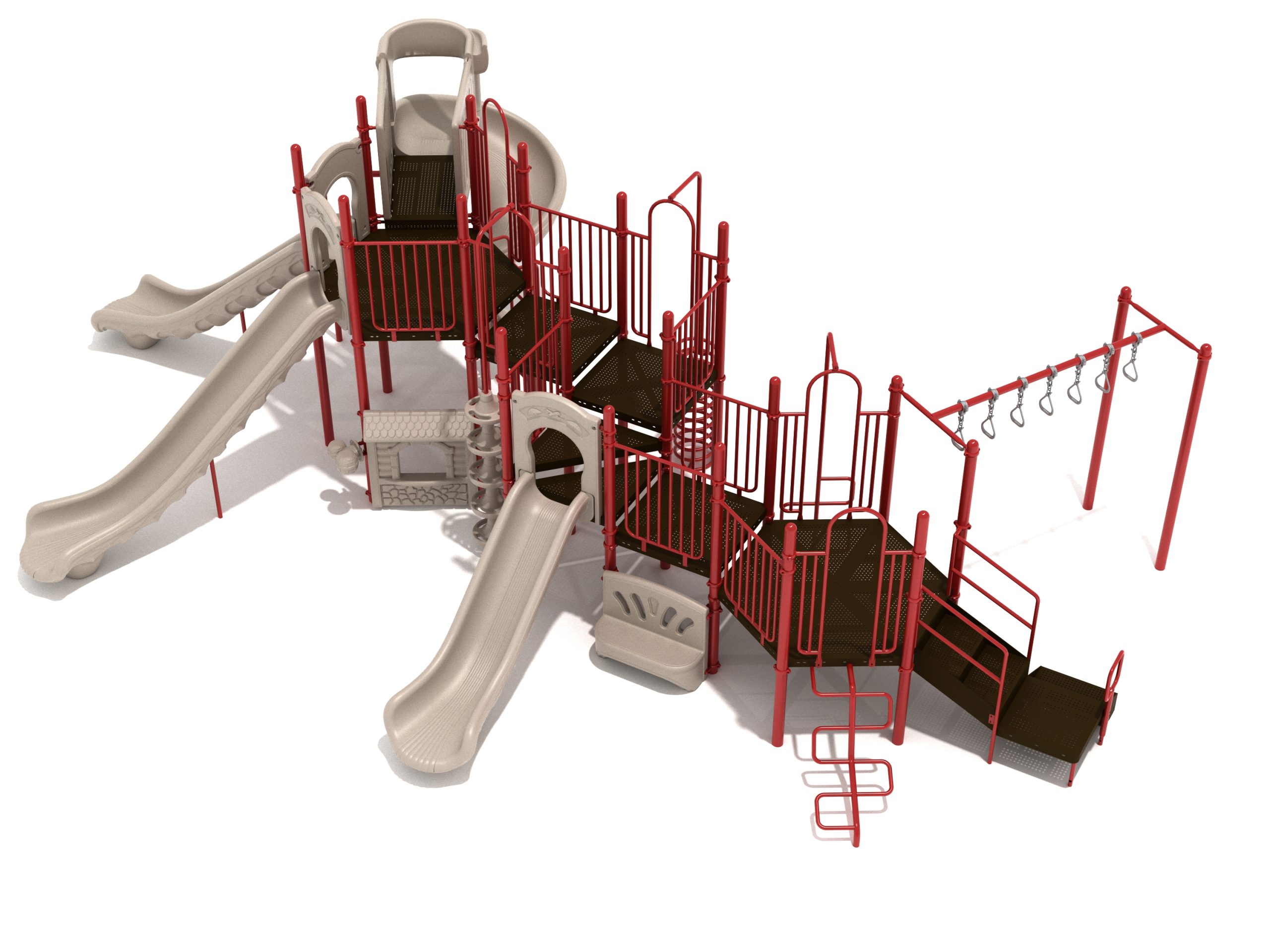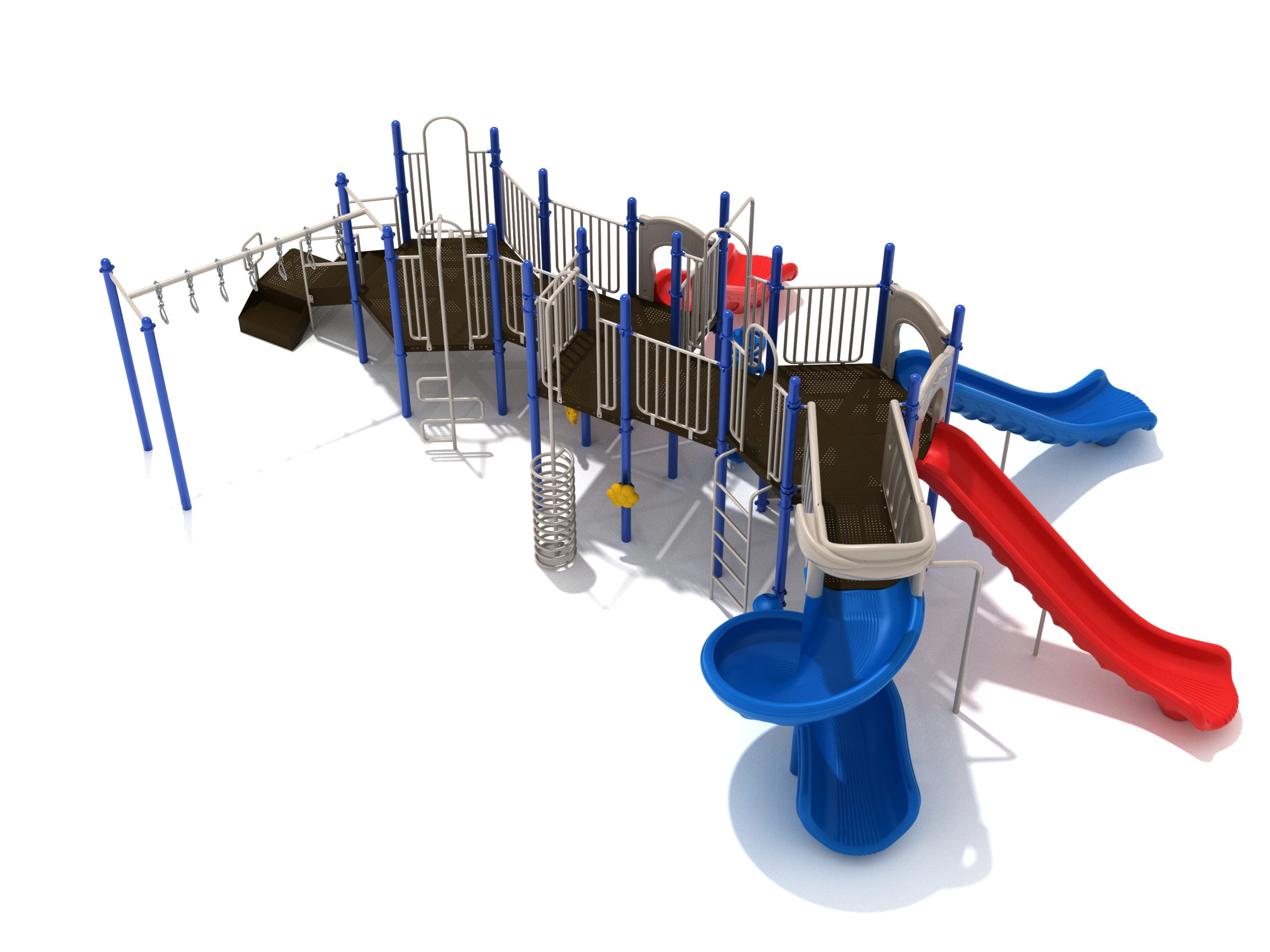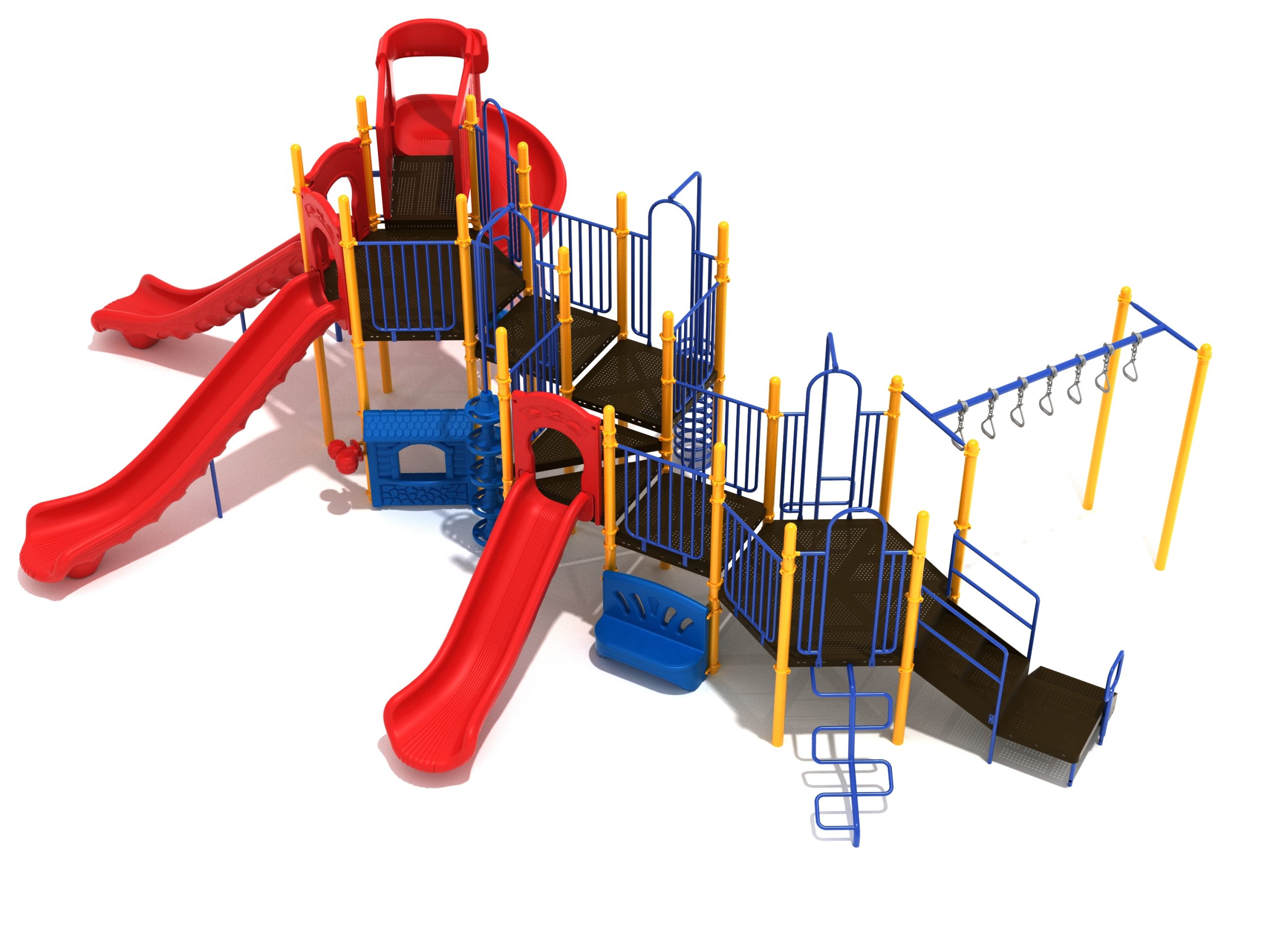 This massive play structure has multiple slides, activities, and amenities that’ll attract kids from afar! It is like a castle with mazes consisting of eye-pleasing surprises for young explorers. It can easily support huge crowds of kids, as many as 87 kids at once. It features two Snake Climbers and a Swinging Ring Ladder for entry. There are 2 hub areas for kids to be kids and have the time of their lives! Safe dismount areas reduce the risk of collisions. Also, Broken Arrow has ground-level features like the Store and Bench Panels for kids to chill, relax, and do a little socializing. There are 2 hub areas that lead to friendly competition that may take the shape of kids recreating Robin Hood-like adventures. The Spiral Slide and two Straight Slides offer thrilling sliding fun that kids might want to try over and over. The overall layout & variety of games support active play. Broken Arrow helps kids develop their motor skills while enjoying themselves in a safe environment.