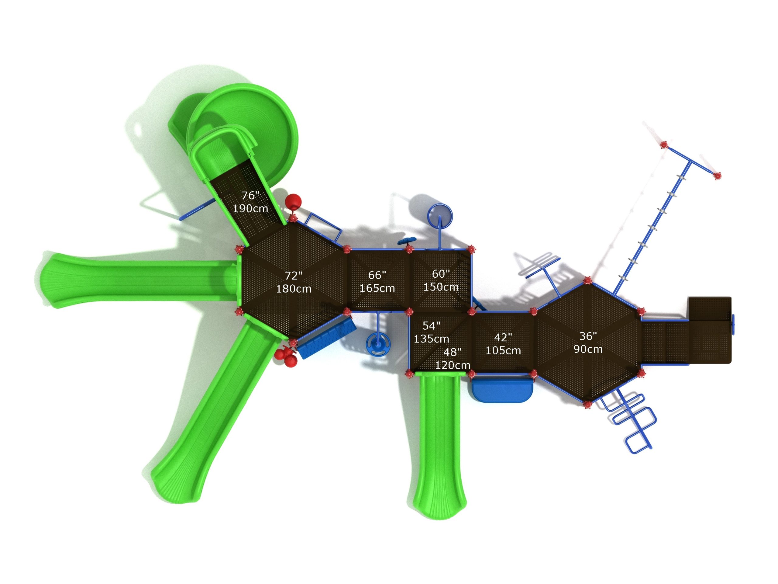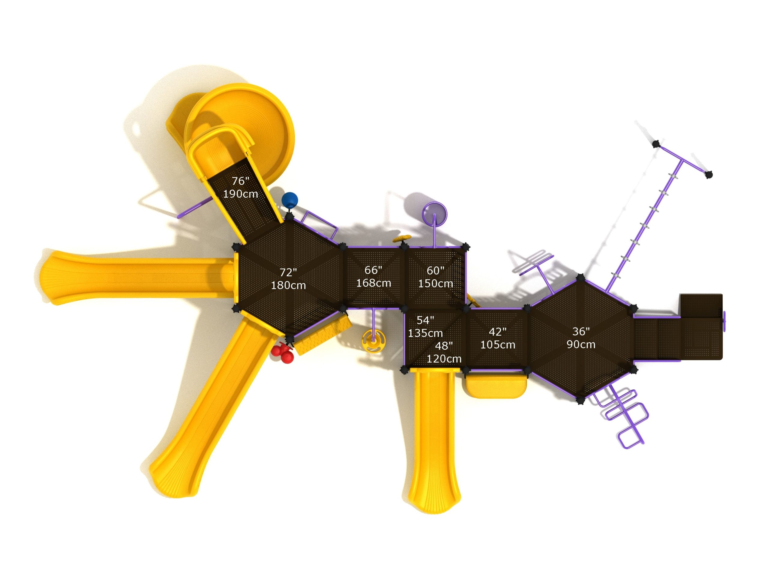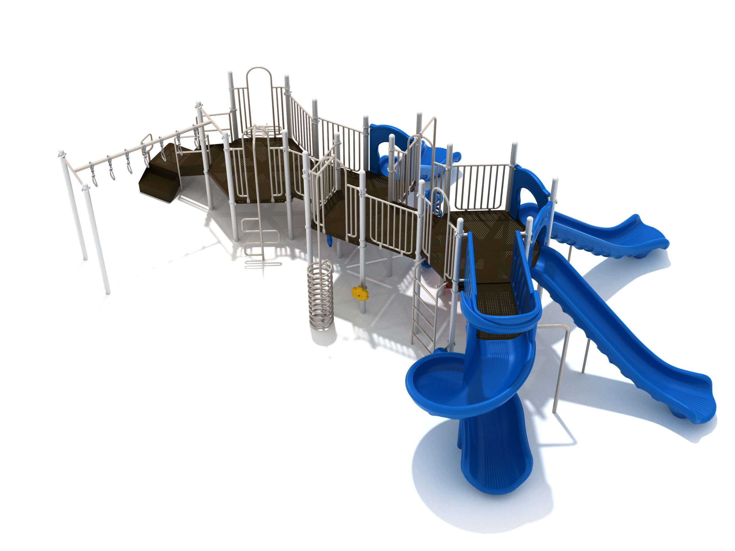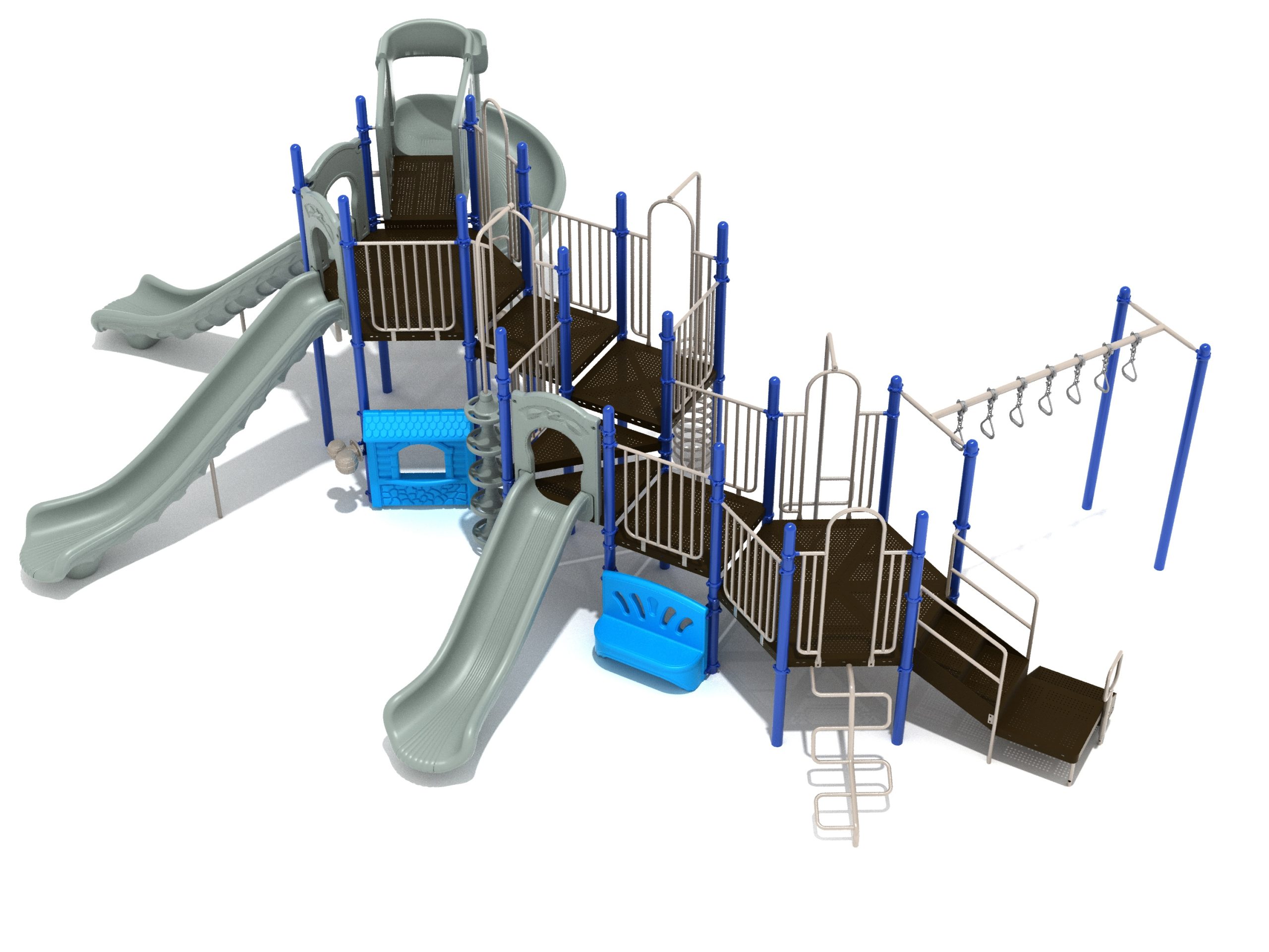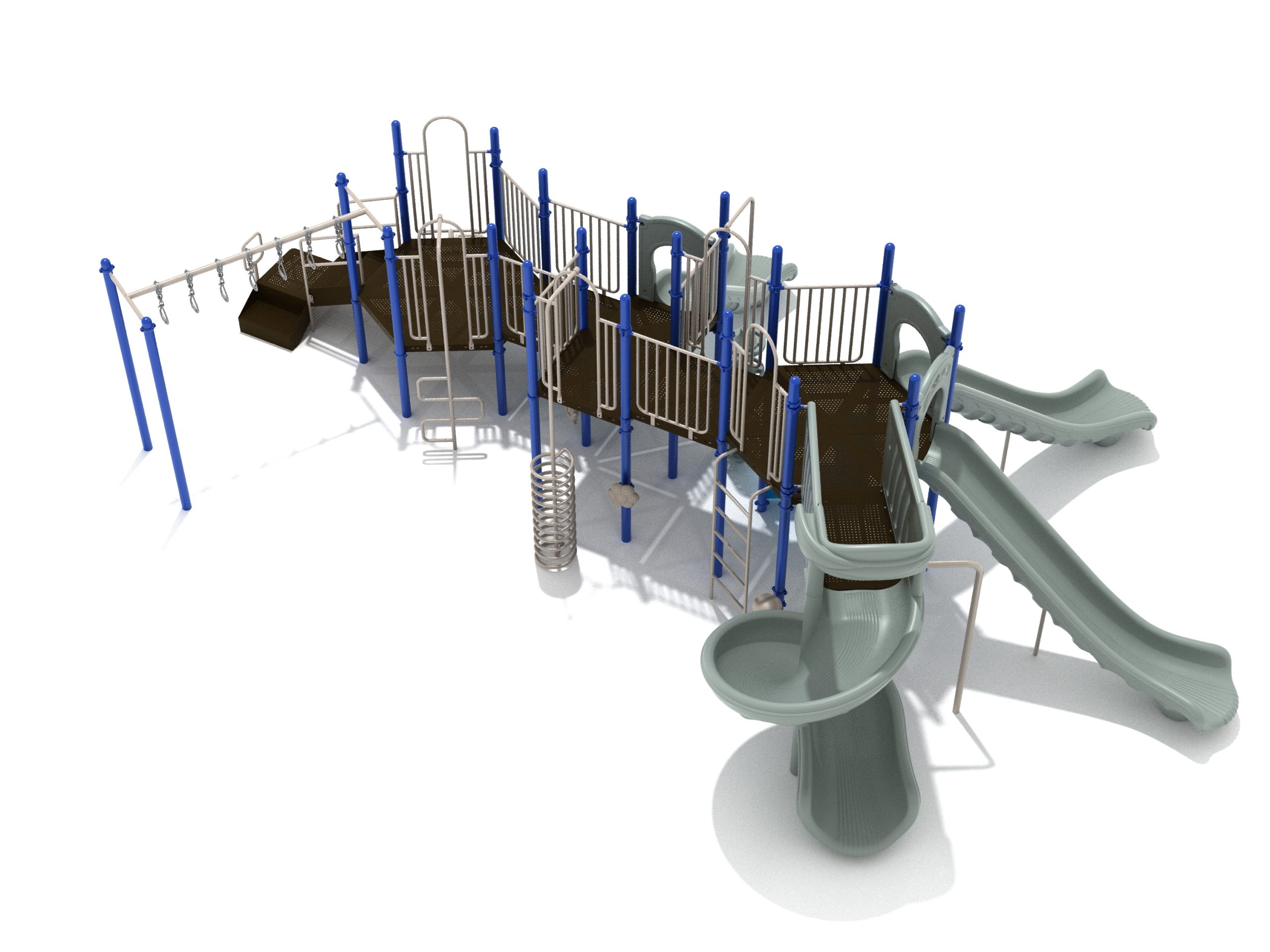 This massive play structure has multiple slides, activities, and amenities that’ll attract kids from afar! It is like a castle with mazes consisting of eye-pleasing surprises for young explorers. It can easily support huge crowds of kids, as many as 87 kids at once. It features two Snake Climbers and a Swinging Ring Ladder for entry. There are 2 hub areas for kids to be kids and have the time of their lives! Safe dismount areas reduce the risk of collisions. Also, Broken Arrow has ground-level features like the Store and Bench Panels for kids to chill, relax, and do a little socializing. There are 2 hub areas that lead to friendly competition that may take the shape of kids recreating Robin Hood-like adventures. The Spiral Slide and two Straight Slides offer thrilling sliding fun that kids might want to try over and over. The overall layout & variety of games support active play. Broken Arrow helps kids develop their motor skills while enjoying themselves in a safe environment.