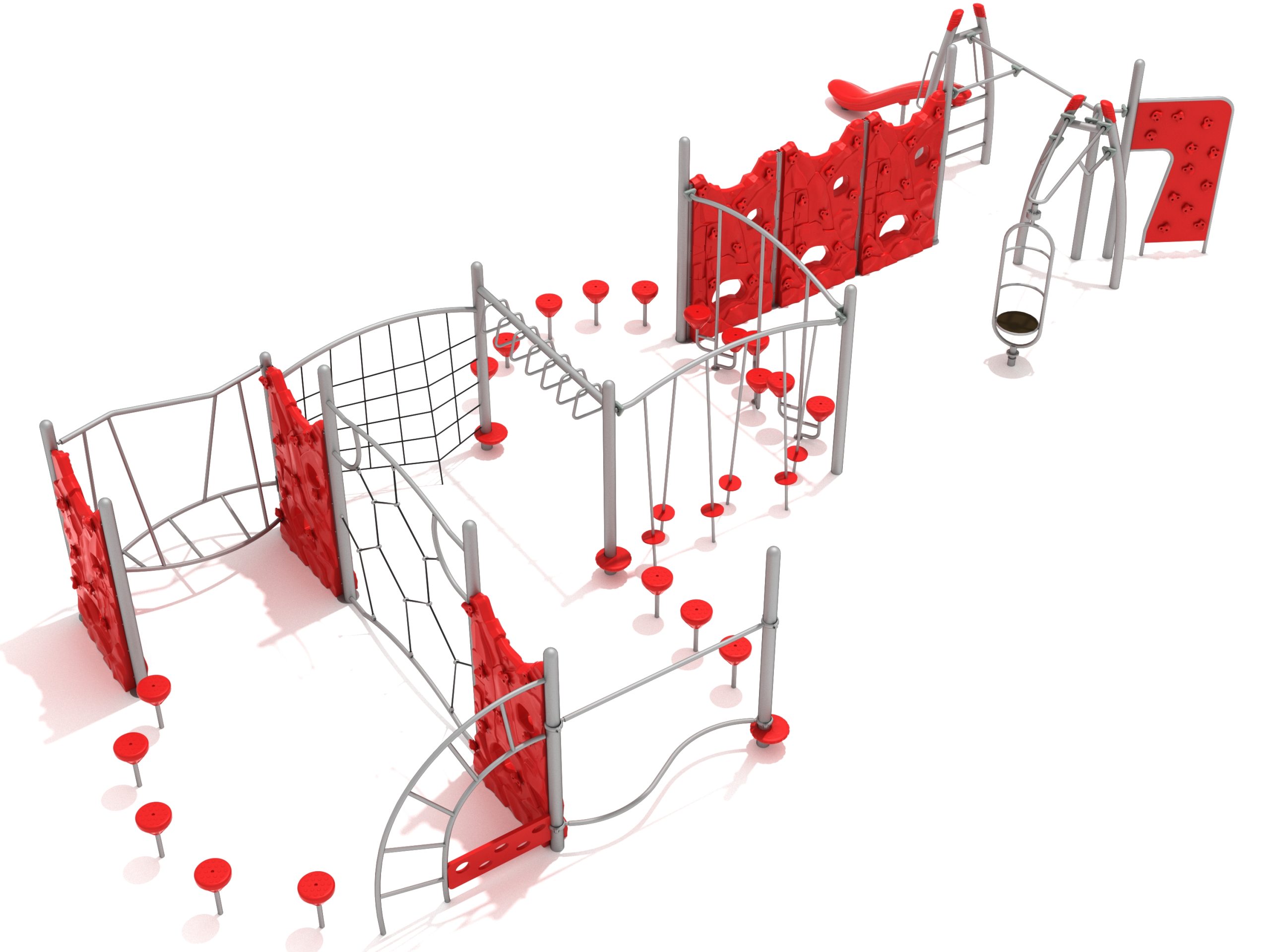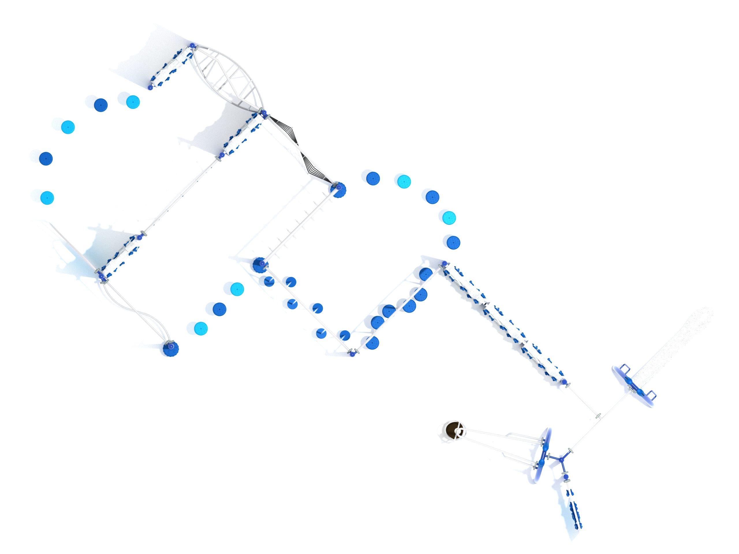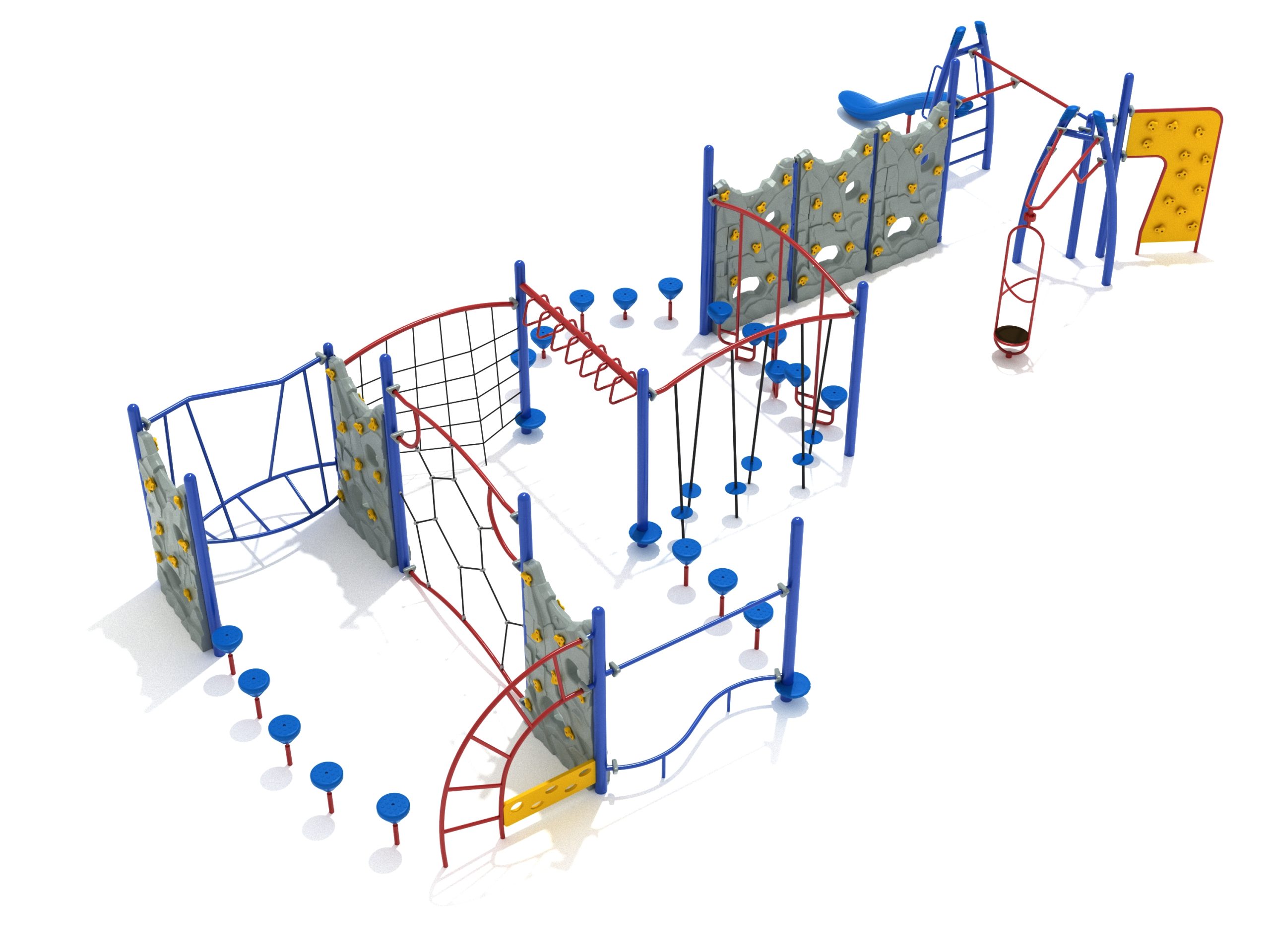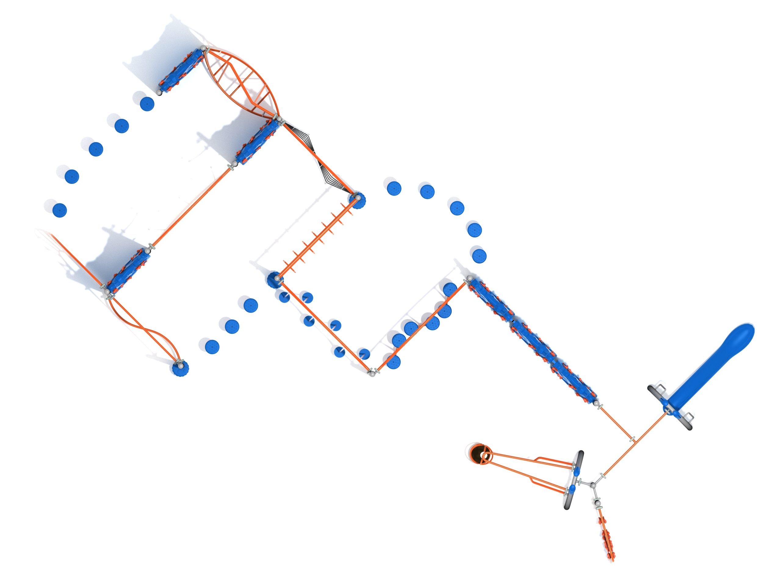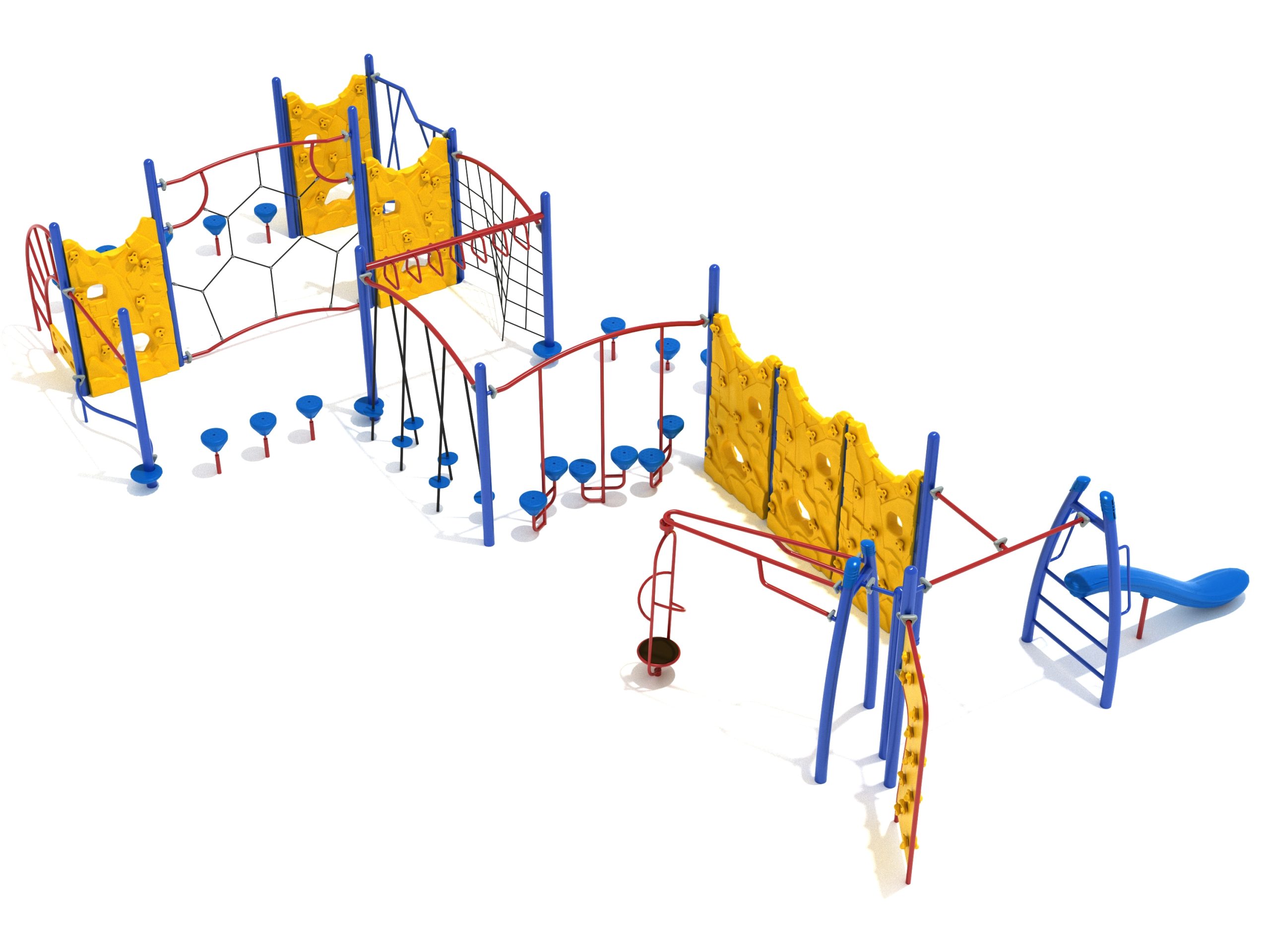 Whether kids like to climb, hop, swing or slide, they’re sure to find something they love about the Cedar Slope play apparatus. 2 sets of 3 Craggy Climber Straight Sections make 12 climbing surfaces in total to test kids to their limit and make them feel like they’re really clinging on to the side of a cliff as they shuffle carefully along. Hands, shoulders and arms are also given a workout on the Overhead Straight Trapezoid Loop Ladder and the Honeycomb Net Climber, both of which require a decent amount of upper body strength and agility. 13 different Pebble Climbers scattered around the structure are complemented by a wavy Pebble Bridge, and there’s even a Tilted Lily Pad Bridge and S Balance Bridge to give a coordination challenge. Before having hours of fun on the Standing Orbital Spinner which rockets kids around in circles, there’s the Zig Zag Net Climber and Zig Zag Challenge Bridge to conquer.