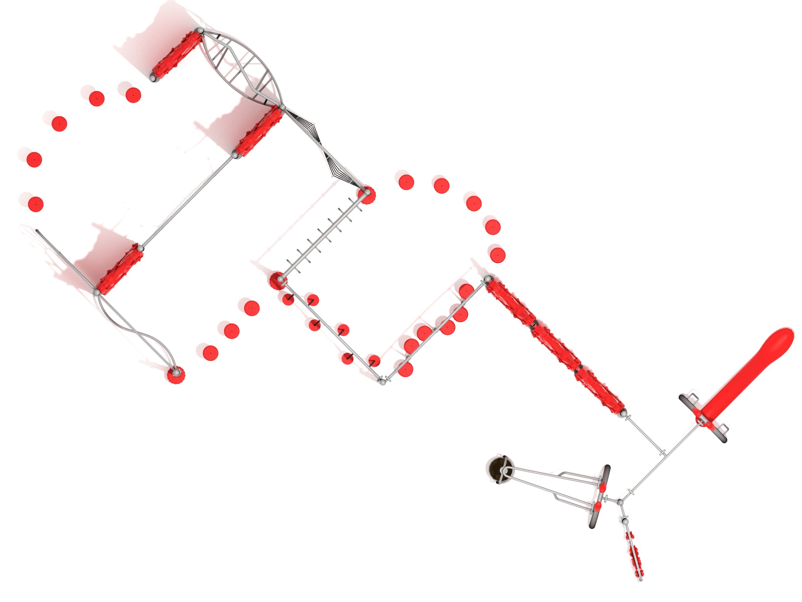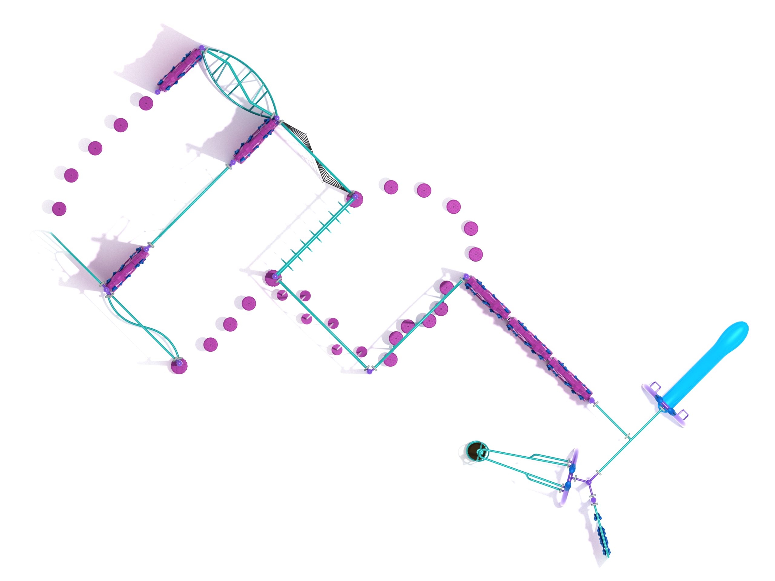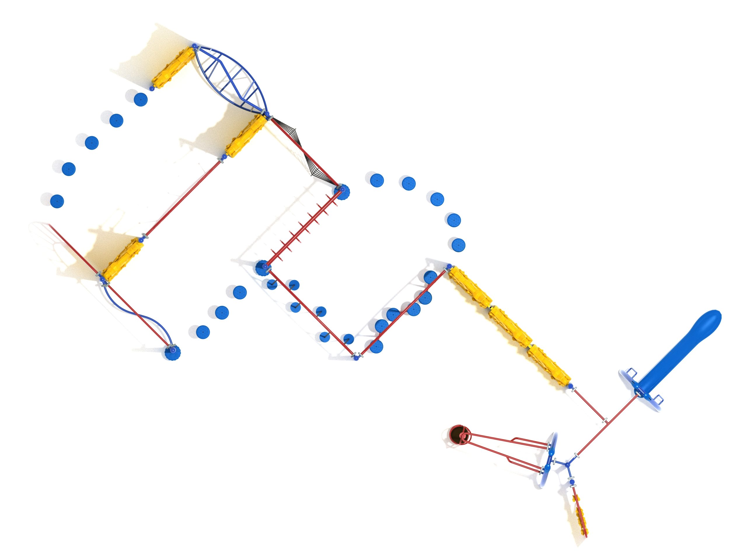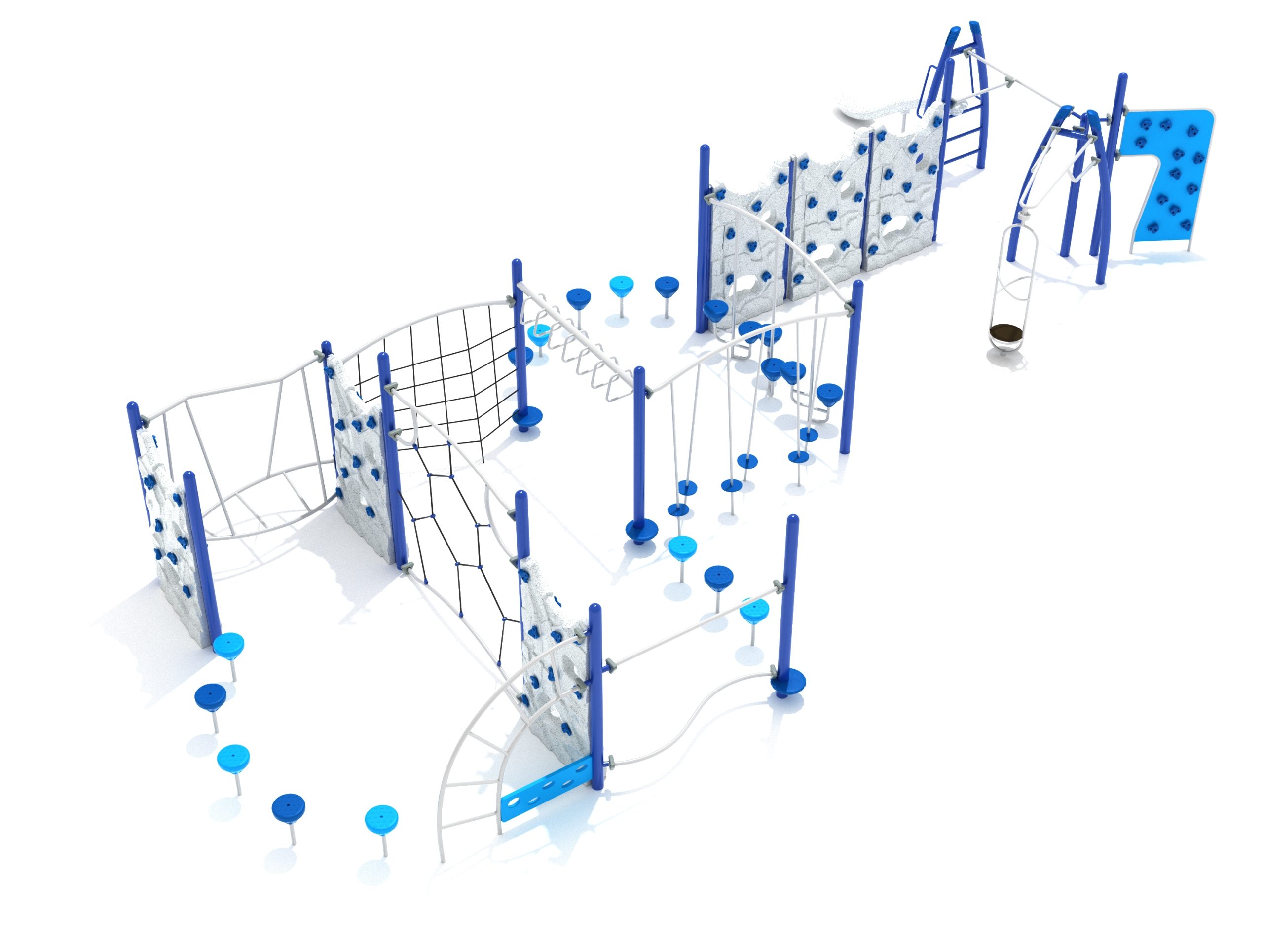 Whether kids like to climb, hop, swing or slide, they’re sure to find something they love about the Cedar Slope play apparatus. 2 sets of 3 Craggy Climber Straight Sections make 12 climbing surfaces in total to test kids to their limit and make them feel like they’re really clinging on to the side of a cliff as they shuffle carefully along. Hands, shoulders and arms are also given a workout on the Overhead Straight Trapezoid Loop Ladder and the Honeycomb Net Climber, both of which require a decent amount of upper body strength and agility. 13 different Pebble Climbers scattered around the structure are complemented by a wavy Pebble Bridge, and there’s even a Tilted Lily Pad Bridge and S Balance Bridge to give a coordination challenge. Before having hours of fun on the Standing Orbital Spinner which rockets kids around in circles, there’s the Zig Zag Net Climber and Zig Zag Challenge Bridge to conquer.