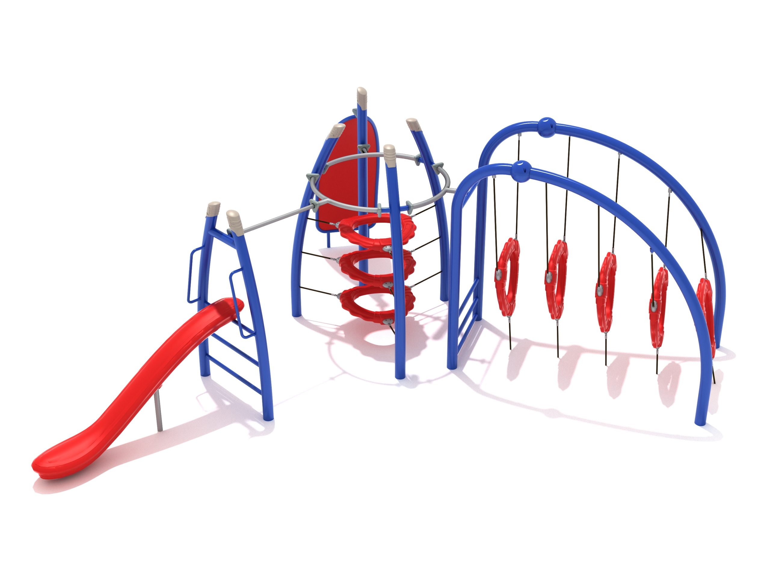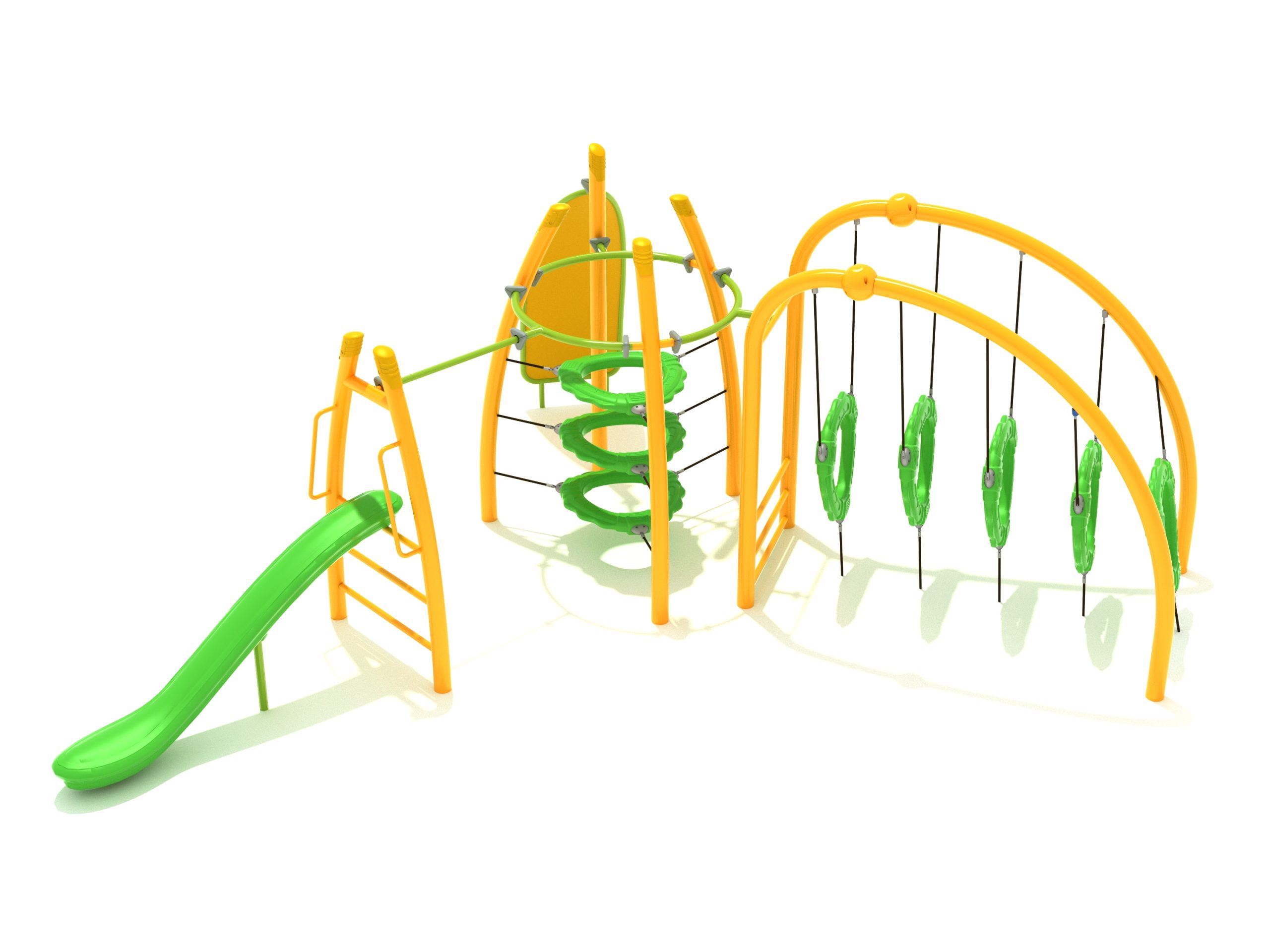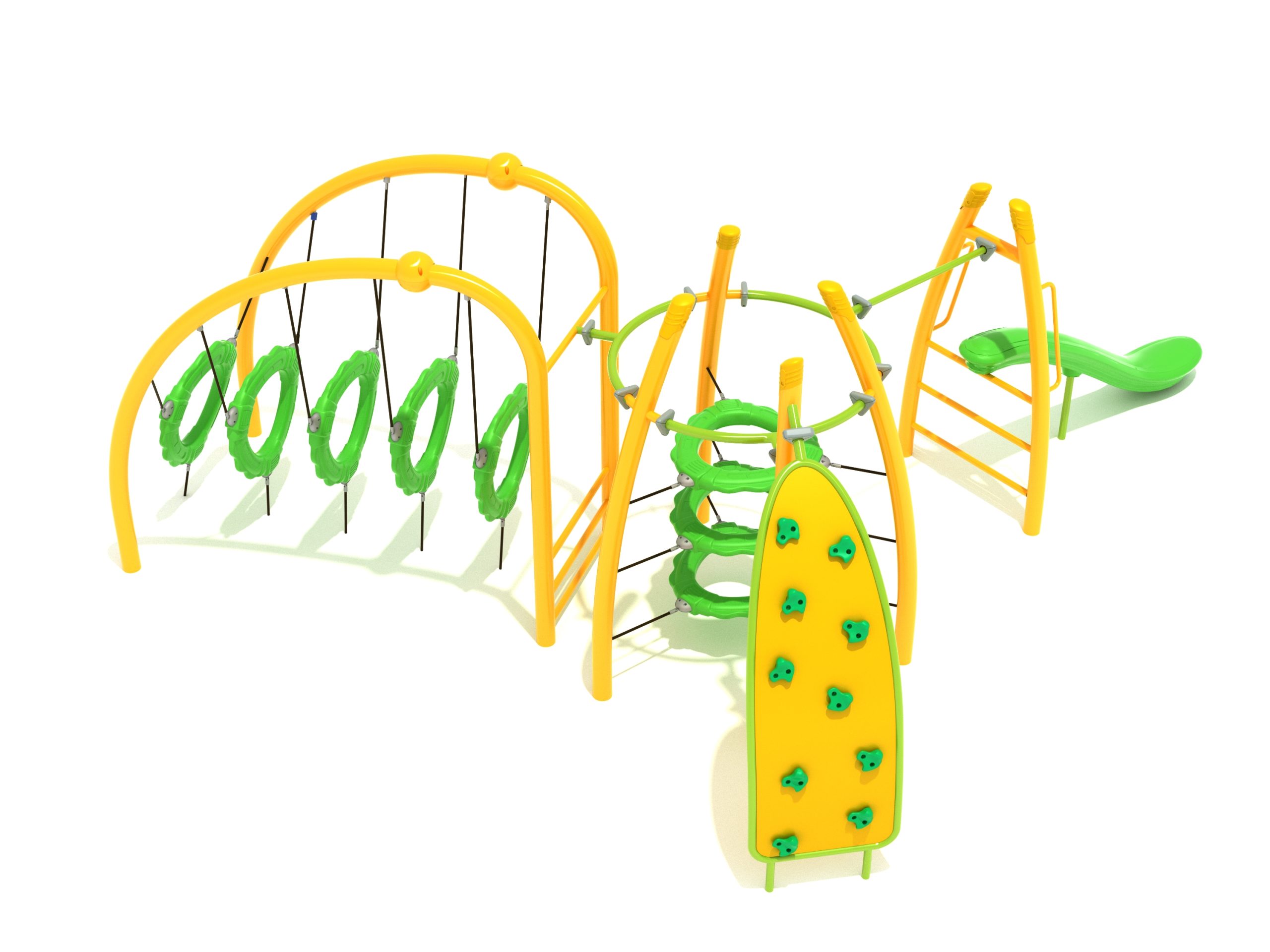 With the Conejos Peak kids will love to propel themselves headfirst through the Floating Tunnel Chamber as they wiggle on their stomachs through the 5 floating rings. The Tower of Rings sits in a central position and allows kids to use it in the same way as the Floating Tunnel Chamber, but this time it’s vertically challenging instead of horizontally. Making their way to the top of this tower kids will get the best view across the whole playground to beckon friends to come and join them. A Saddle Slide is a neat addition and the open design means younger children can be supervised by an adult as they slip down the slide. The final feature is a Leaf Climbing Wall that starts wide but tapers towards the top making the structure more challenging than first appears.