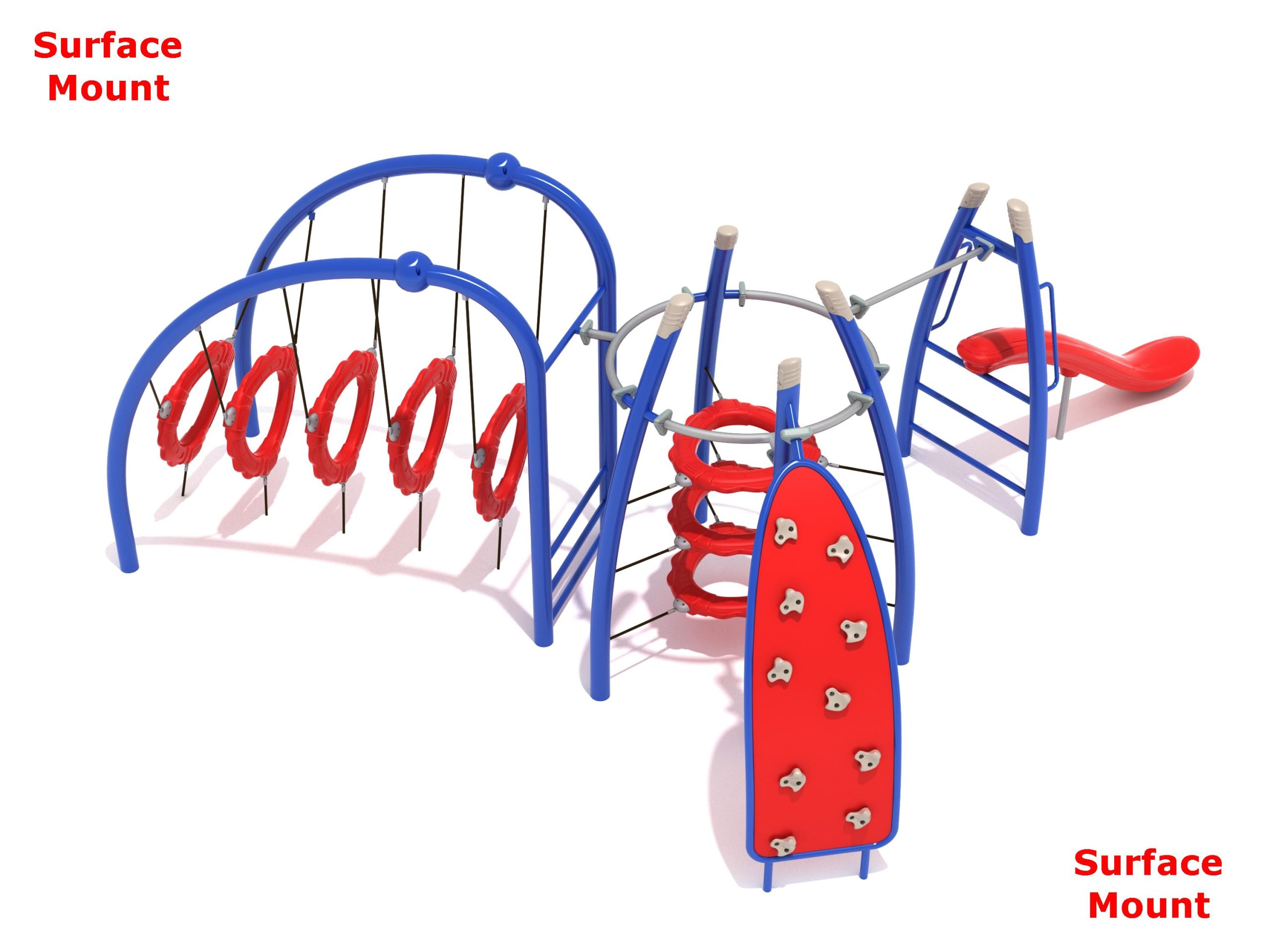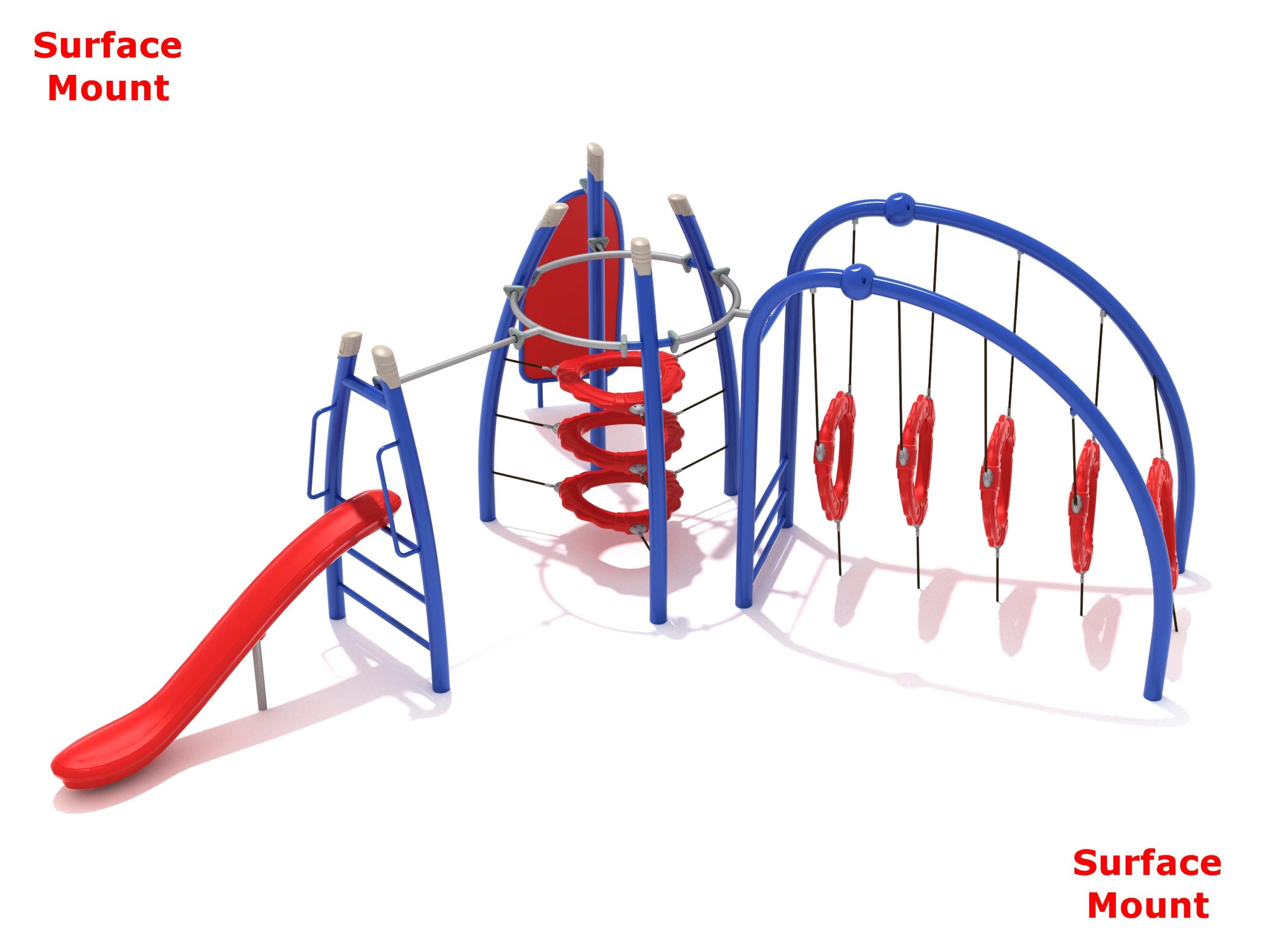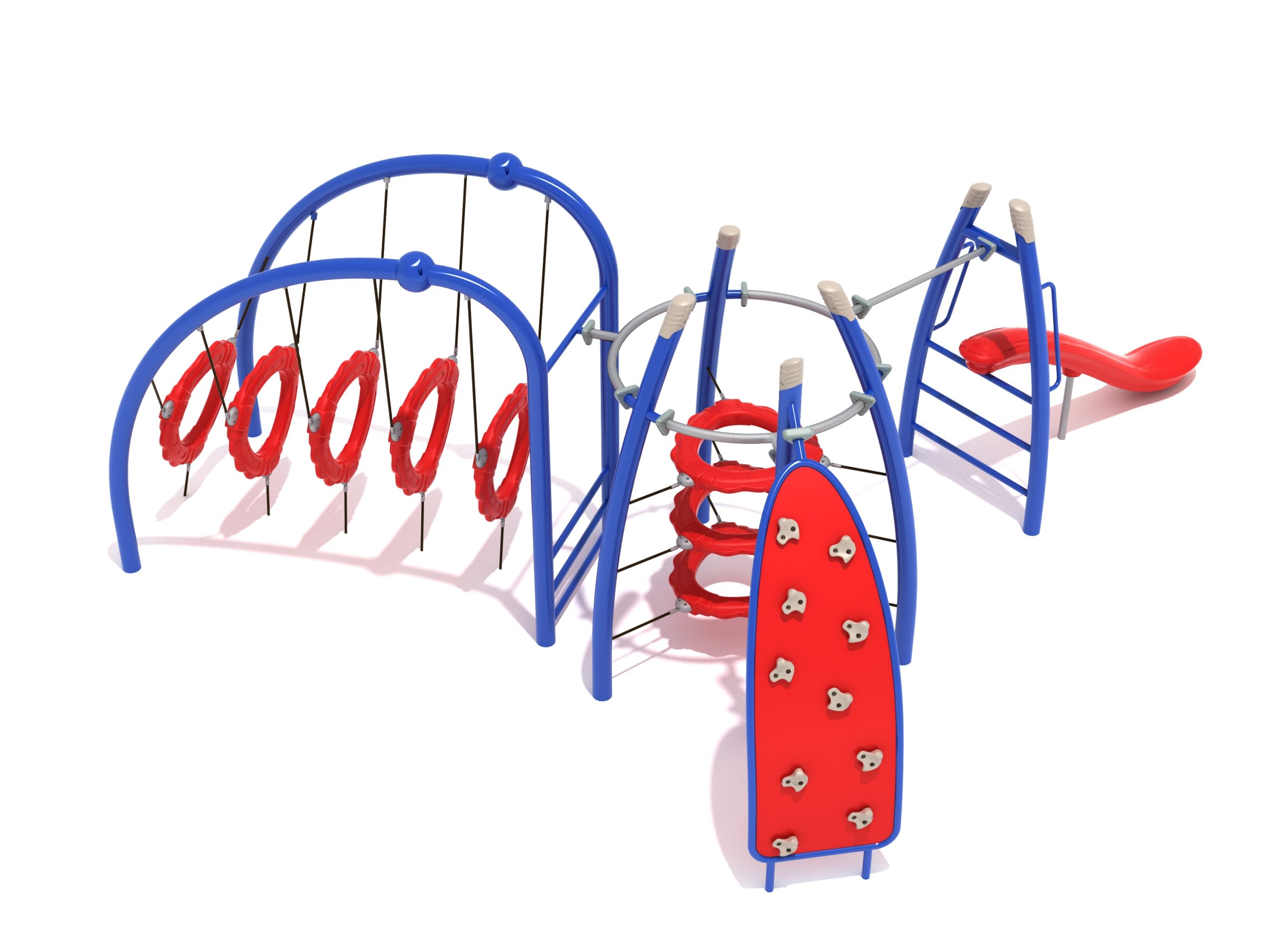 With the Conejos Peak kids will love to propel themselves headfirst through the Floating Tunnel Chamber as they wiggle on their stomachs through the 5 floating rings. The Tower of Rings sits in a central position and allows kids to use it in the same way as the Floating Tunnel Chamber, but this time it’s vertically challenging instead of horizontally. Making their way to the top of this tower kids will get the best view across the whole playground to beckon friends to come and join them. A Saddle Slide is a neat addition and the open design means younger children can be supervised by an adult as they slip down the slide. The final feature is a Leaf Climbing Wall that starts wide but tapers towards the top making the structure more challenging than first appears.
