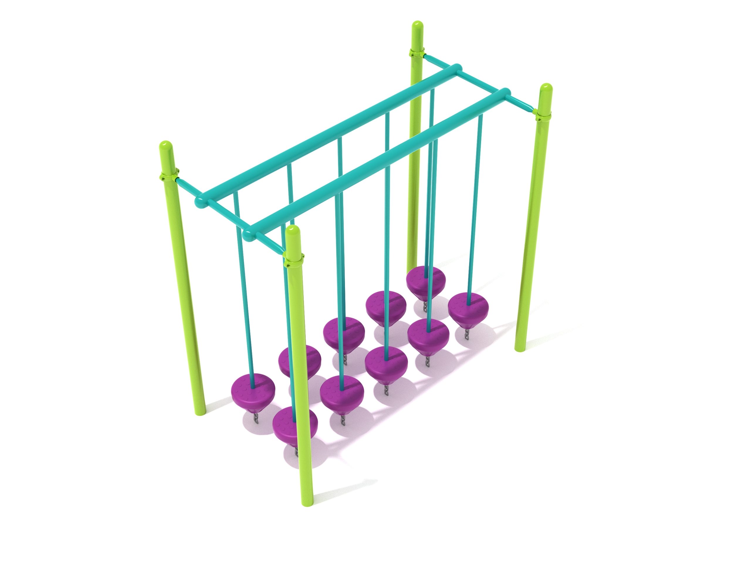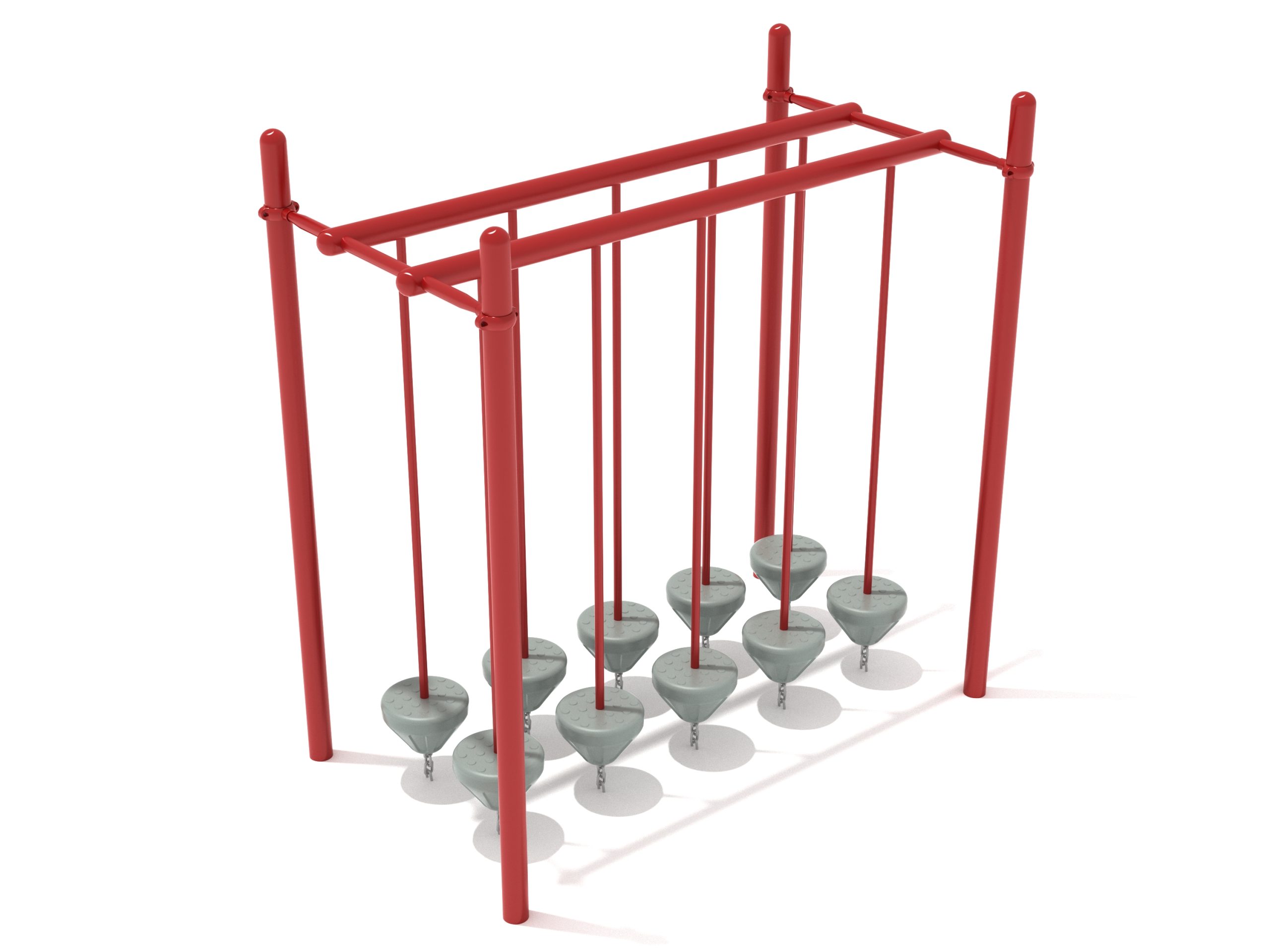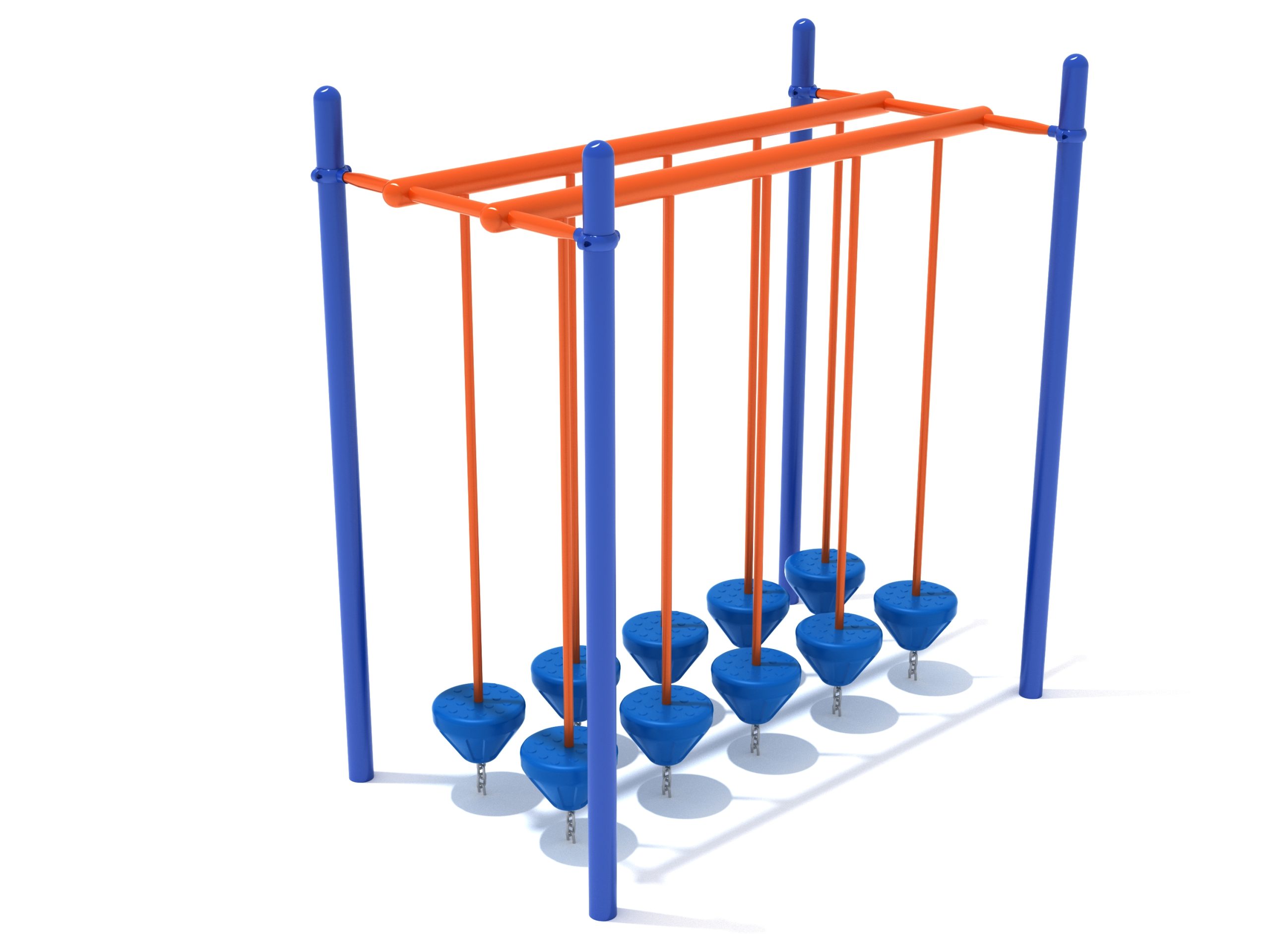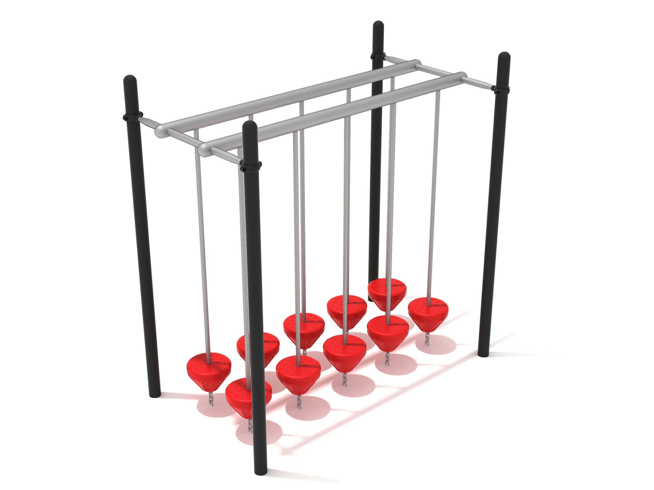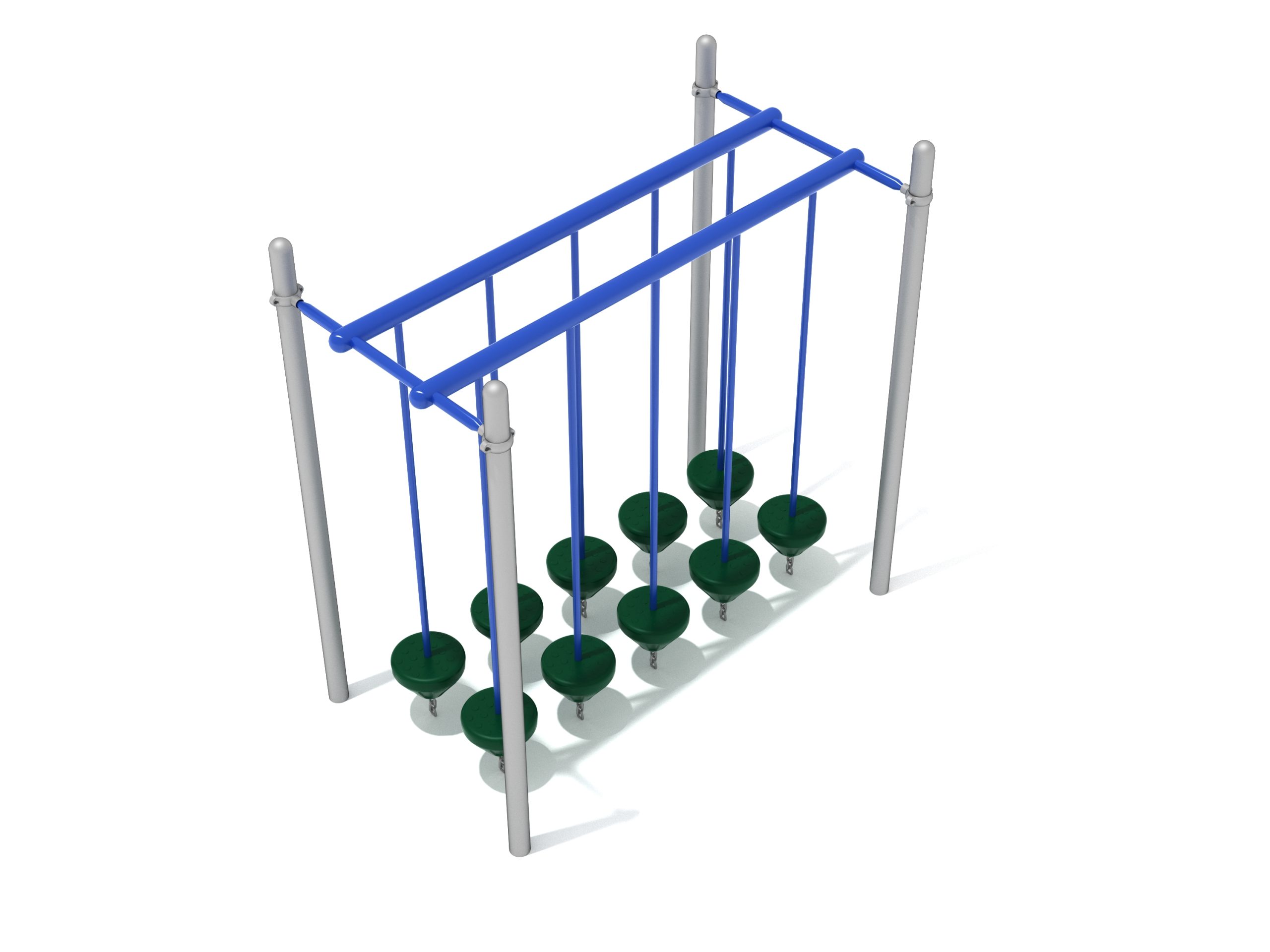 The Double Row Pebble Bridge is a visually appealing recreational set suitable for larger parks and play areas. The double rows of swiveling platforms present a unique challenge for children of all ages and to navigate the equipment they must hold on tight to the bars as the platforms beneath them gyrate when stood on. It’s a treat to watch children try to get across the Double Row Pebble Bridge thanks to this unique feature and you can be sure there’ll be lots of laughter as they attempt to balance themselves. This adventure structure becomes even more fun when there’s more than one child trying to cross as they may have to use the same pebble at times and it will swivel beneath them on the short chains. It helps to develop key coordination skills as the top rail must be gripped confidently and the core muscles must attempt to keep the body upright even as the feet move randomly in all directions. Add some imagination to the mix by pretending they’re crossing a raging river and must not fall in.