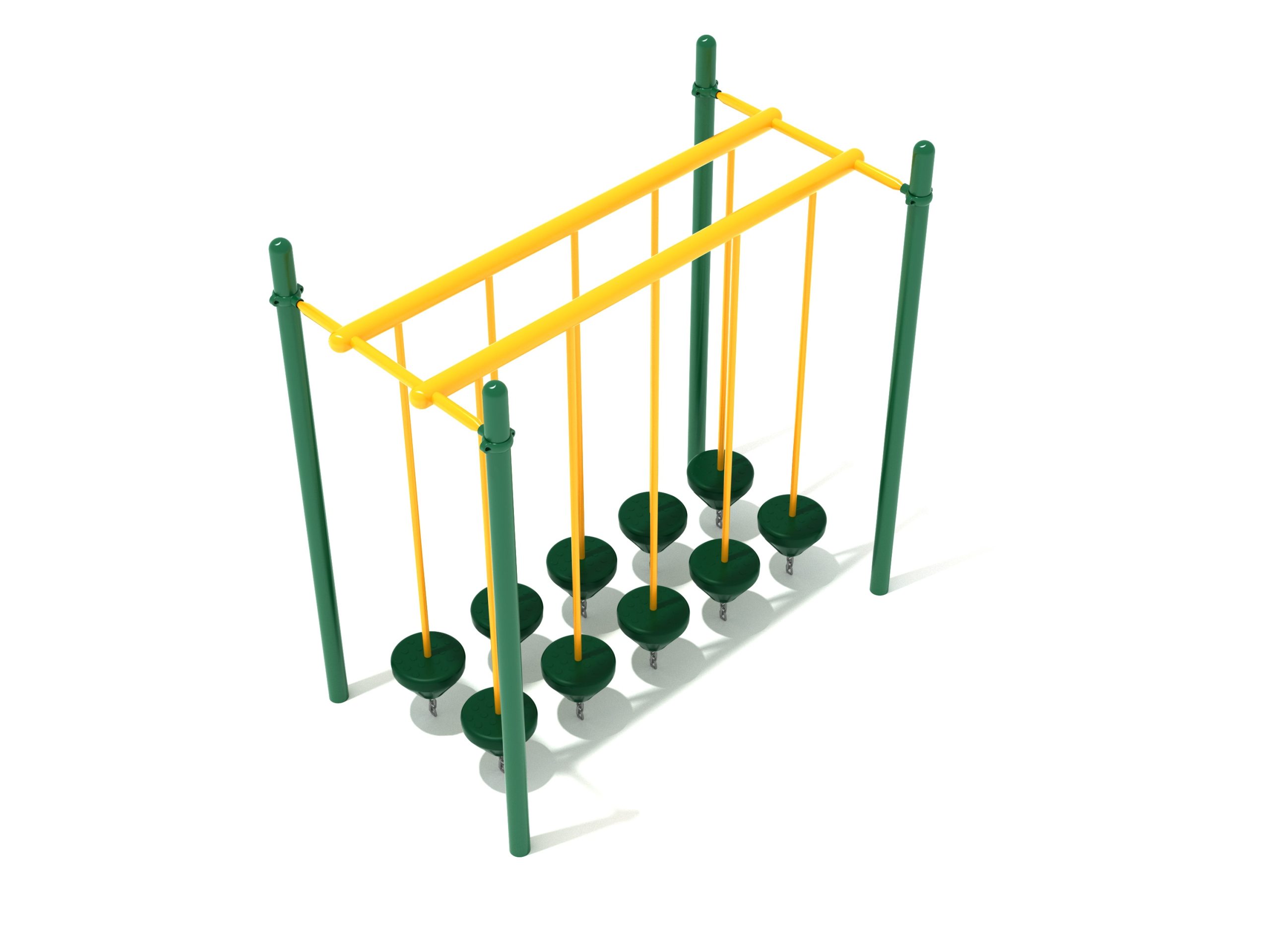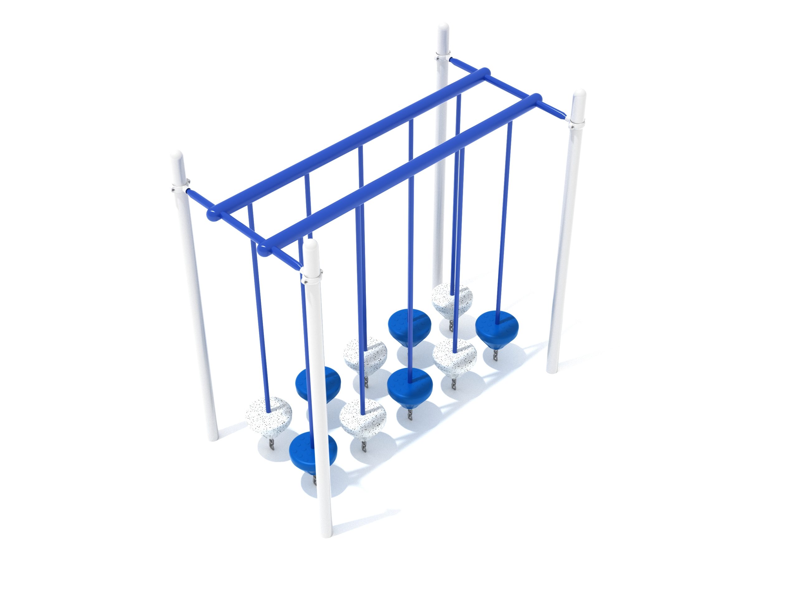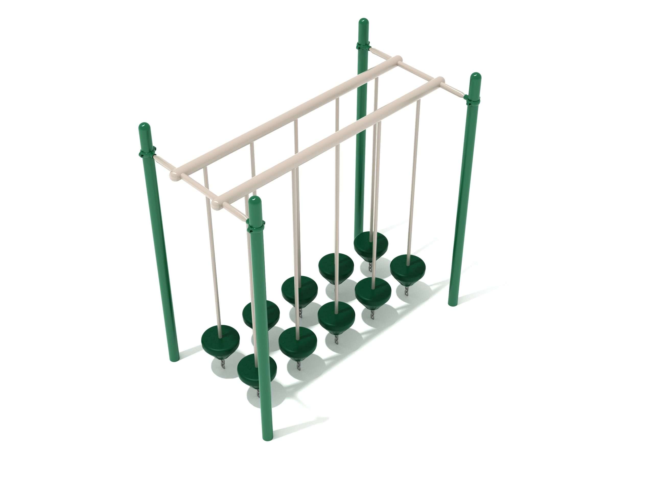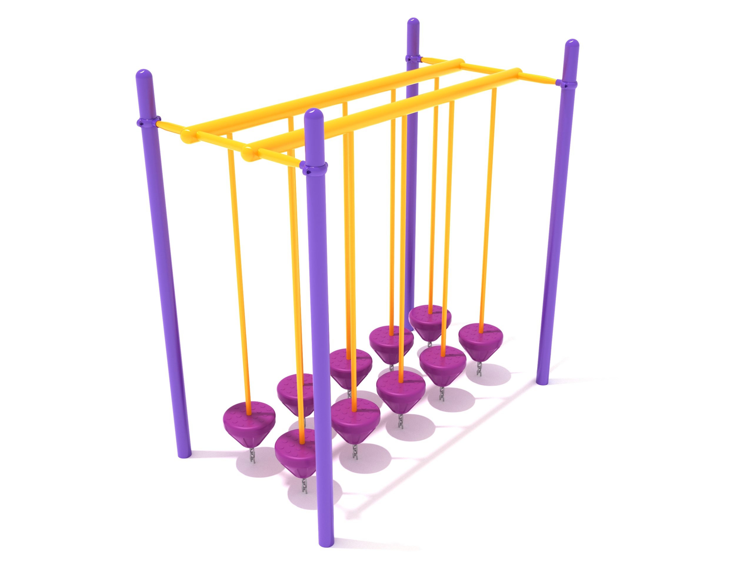 The Double Row Pebble Bridge is a visually appealing recreational set suitable for larger parks and play areas. The double rows of swiveling platforms present a unique challenge for children of all ages and to navigate the equipment they must hold on tight to the bars as the platforms beneath them gyrate when stood on. It’s a treat to watch children try to get across the Double Row Pebble Bridge thanks to this unique feature and you can be sure there’ll be lots of laughter as they attempt to balance themselves. This adventure structure becomes even more fun when there’s more than one child trying to cross as they may have to use the same pebble at times and it will swivel beneath them on the short chains. It helps to develop key coordination skills as the top rail must be gripped confidently and the core muscles must attempt to keep the body upright even as the feet move randomly in all directions. Add some imagination to the mix by pretending they’re crossing a raging river and must not fall in.