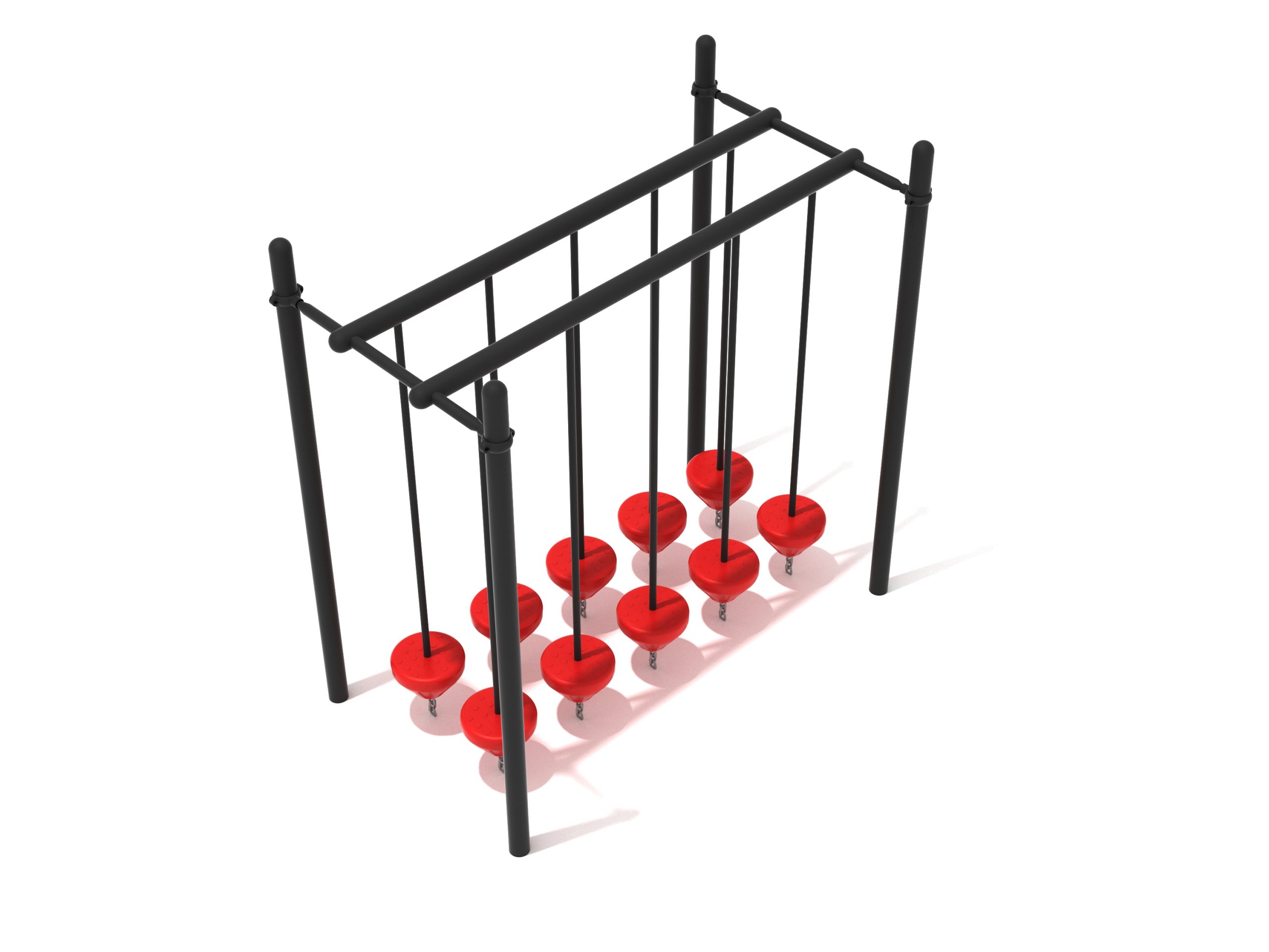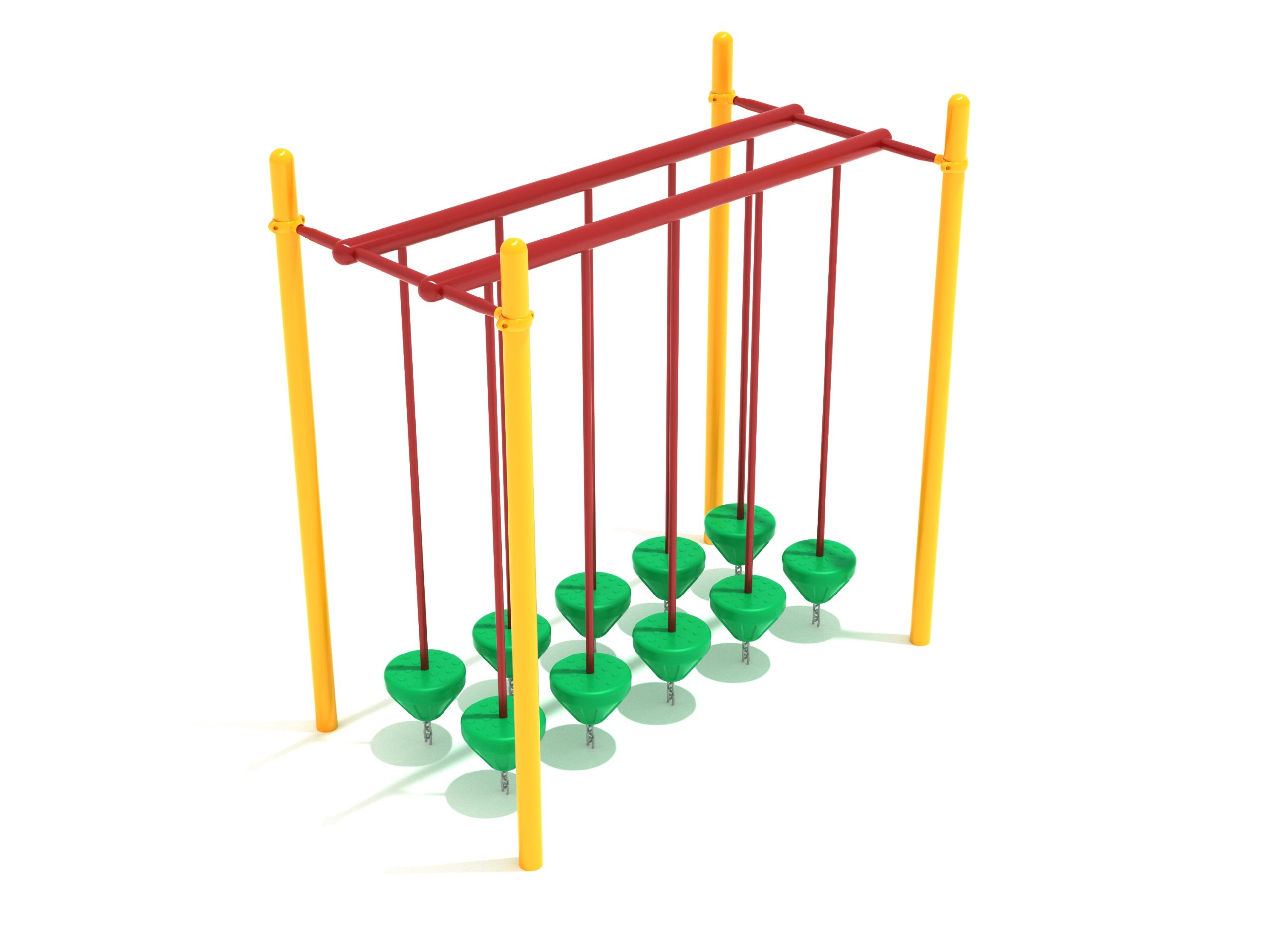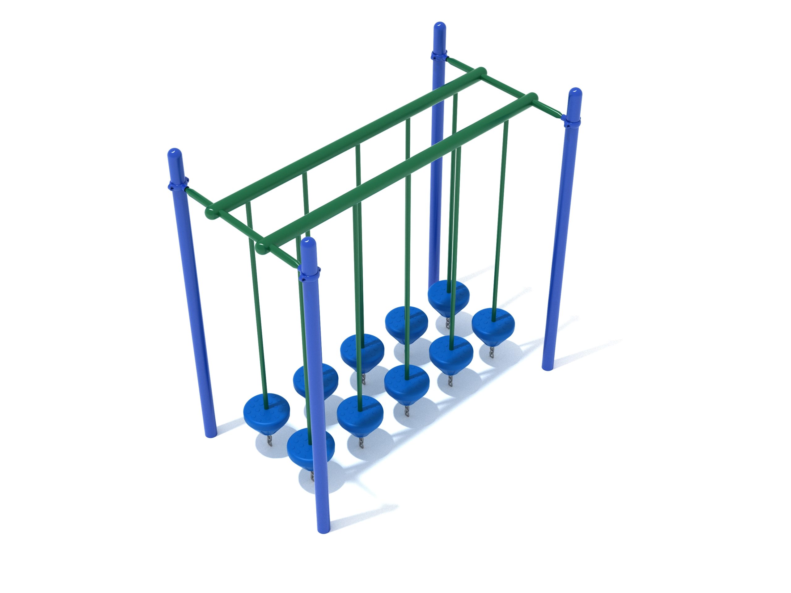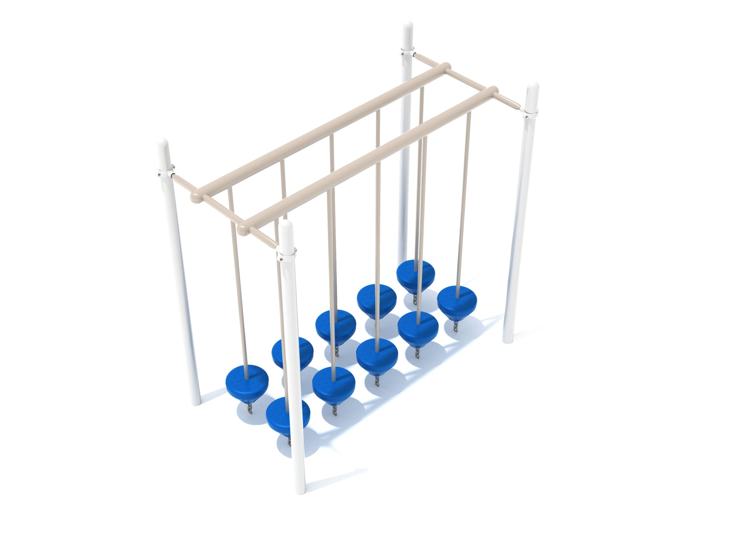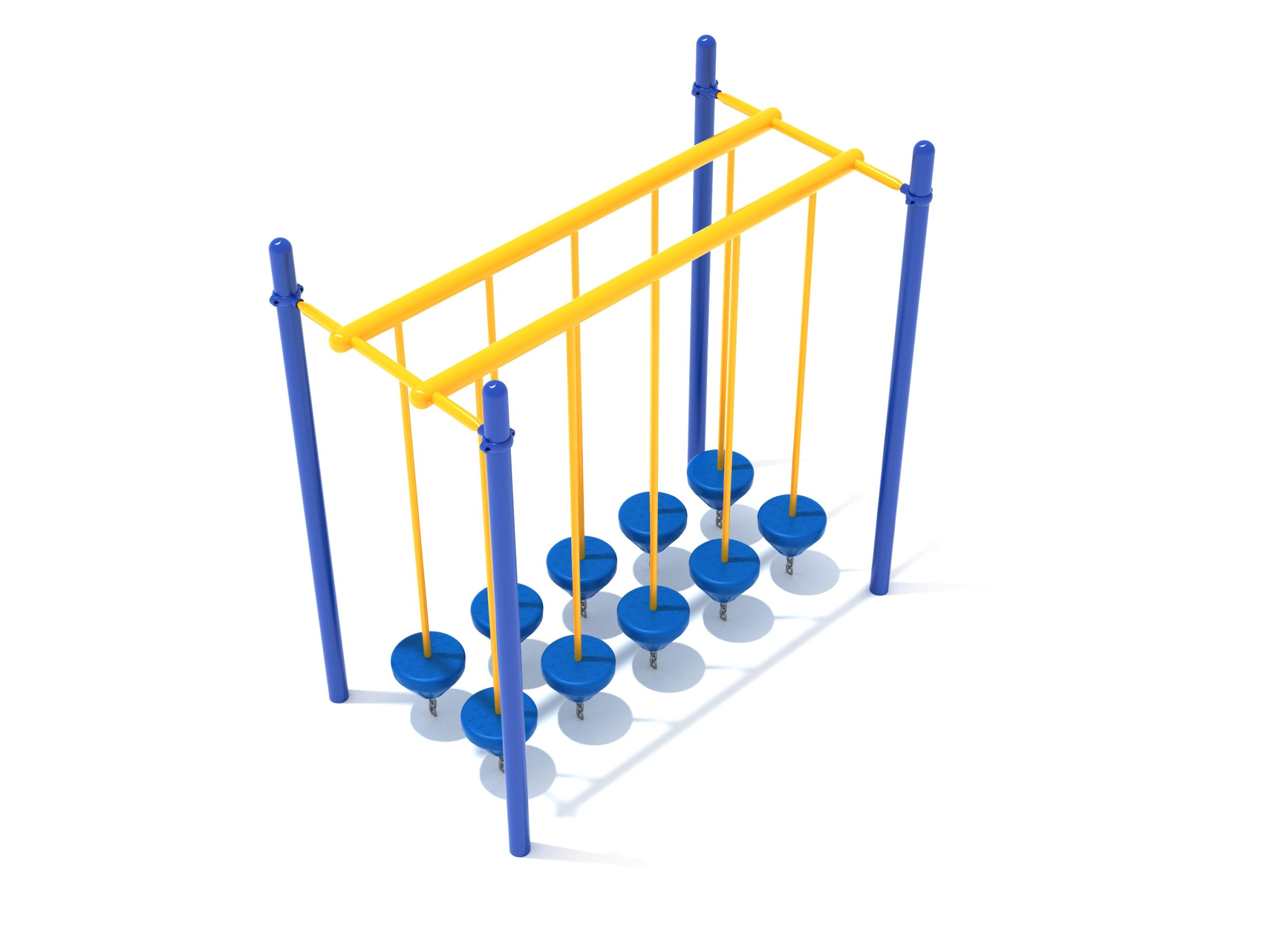 The Double Row Pebble Bridge is a visually appealing recreational set suitable for larger parks and play areas. The double rows of swiveling platforms present a unique challenge for children of all ages and to navigate the equipment they must hold on tight to the bars as the platforms beneath them gyrate when stood on. It’s a treat to watch children try to get across the Double Row Pebble Bridge thanks to this unique feature and you can be sure there’ll be lots of laughter as they attempt to balance themselves. This adventure structure becomes even more fun when there’s more than one child trying to cross as they may have to use the same pebble at times and it will swivel beneath them on the short chains. It helps to develop key coordination skills as the top rail must be gripped confidently and the core muscles must attempt to keep the body upright even as the feet move randomly in all directions. Add some imagination to the mix by pretending they’re crossing a raging river and must not fall in.