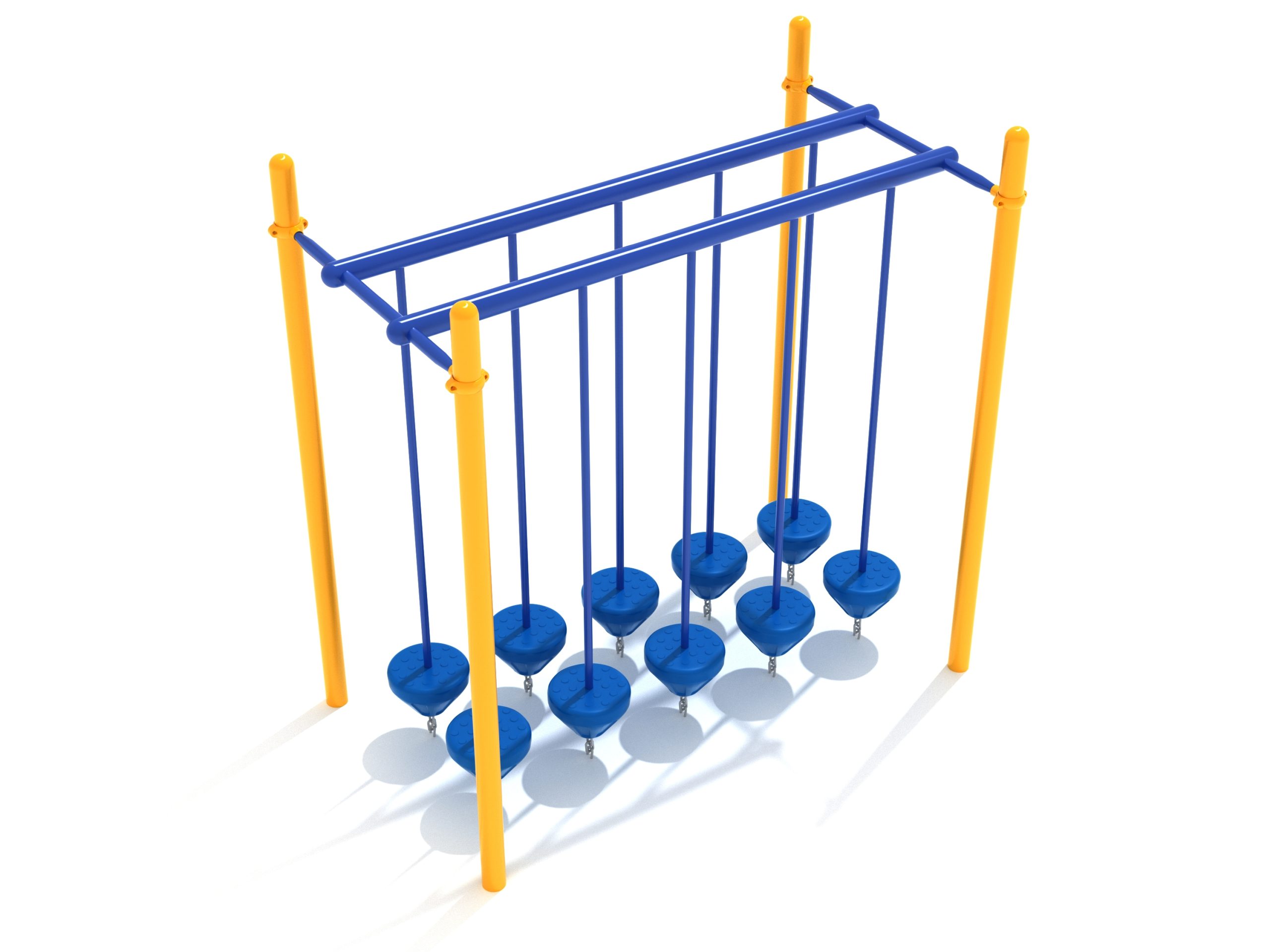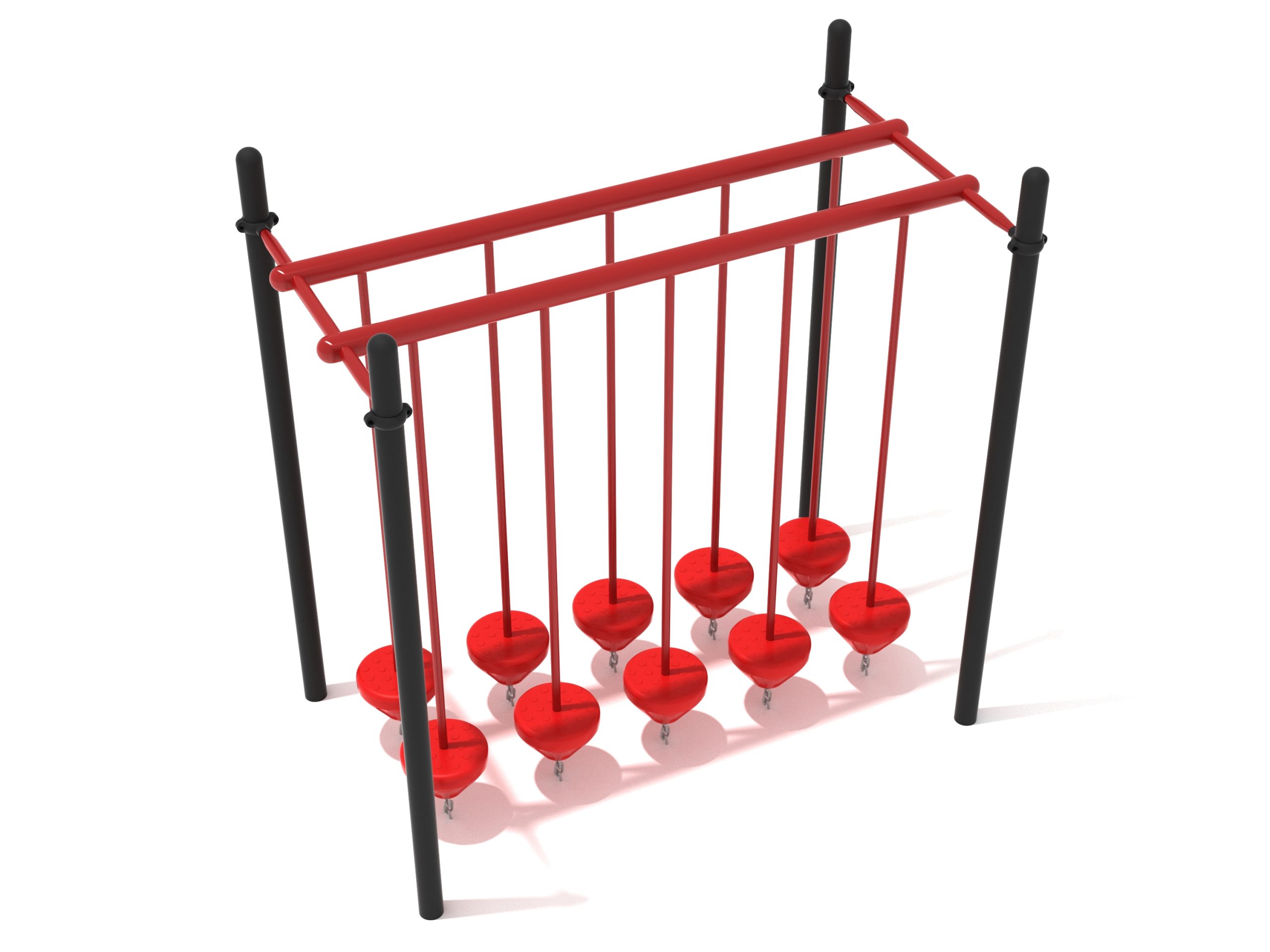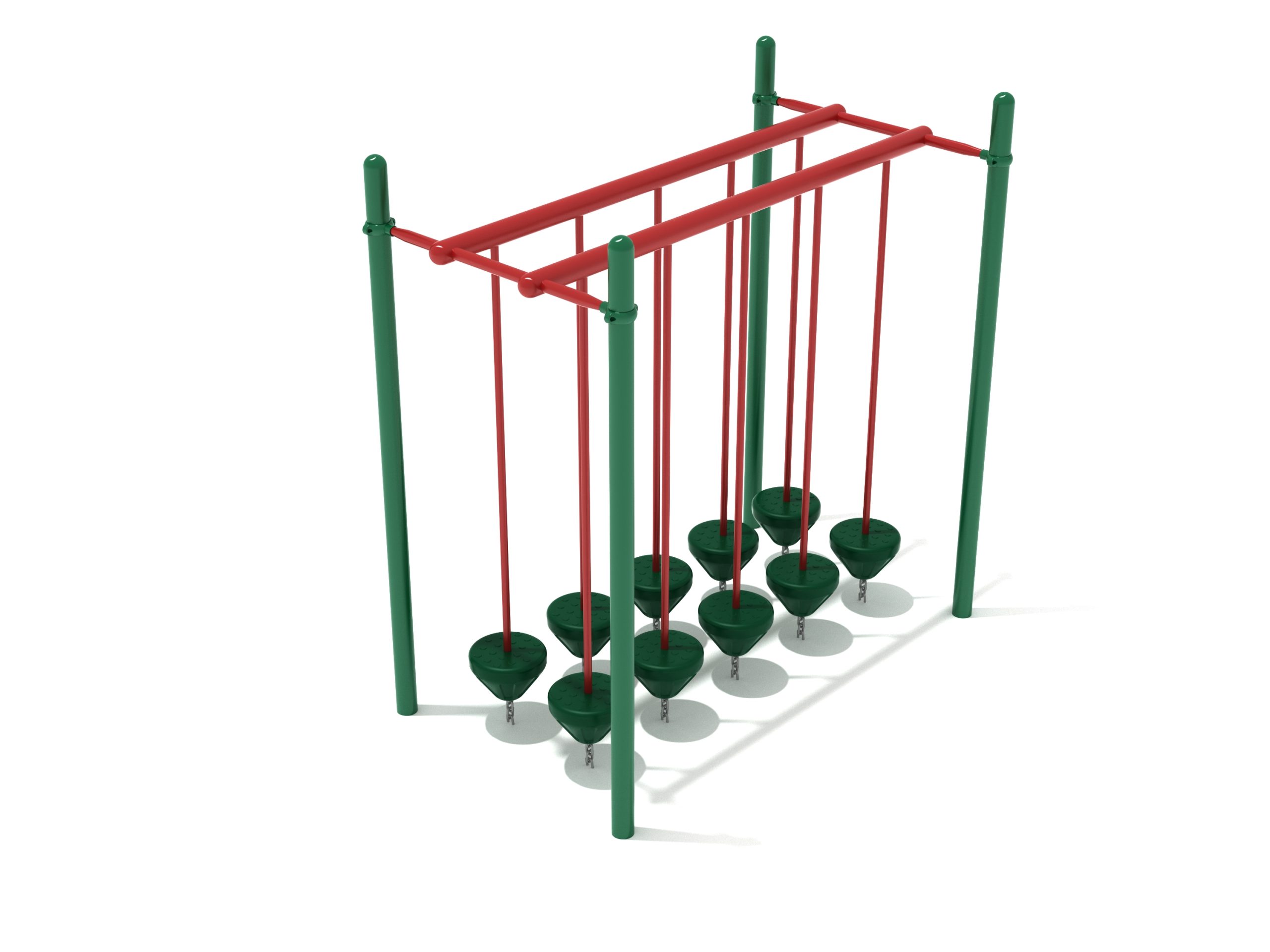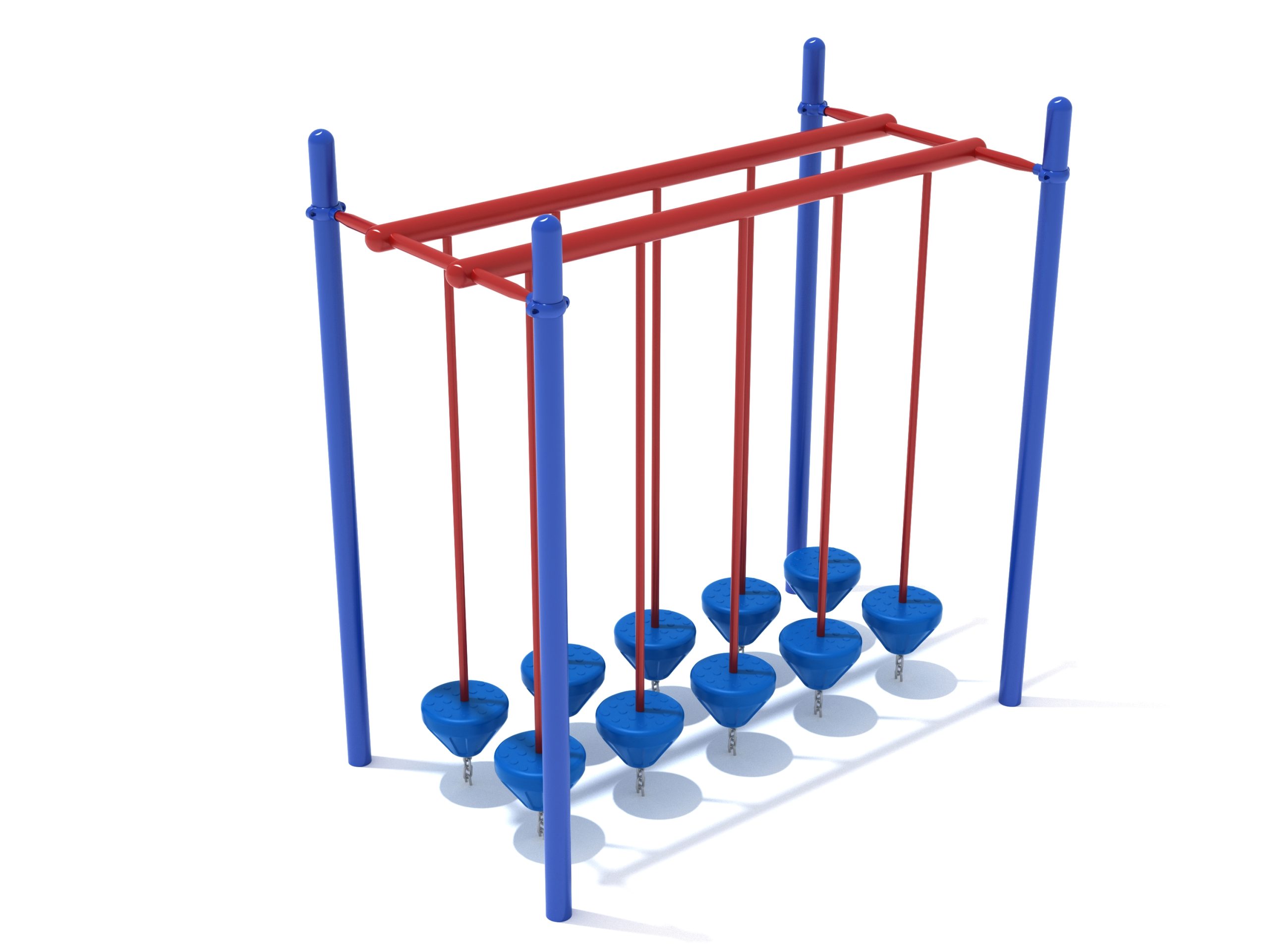 The Double Row Pebble Bridge is a visually appealing recreational set suitable for larger parks and play areas. The double rows of swiveling platforms present a unique challenge for children of all ages and to navigate the equipment they must hold on tight to the bars as the platforms beneath them gyrate when stood on. It’s a treat to watch children try to get across the Double Row Pebble Bridge thanks to this unique feature and you can be sure there’ll be lots of laughter as they attempt to balance themselves. This adventure structure becomes even more fun when there’s more than one child trying to cross as they may have to use the same pebble at times and it will swivel beneath them on the short chains. It helps to develop key coordination skills as the top rail must be gripped confidently and the core muscles must attempt to keep the body upright even as the feet move randomly in all directions. Add some imagination to the mix by pretending they’re crossing a raging river and must not fall in.