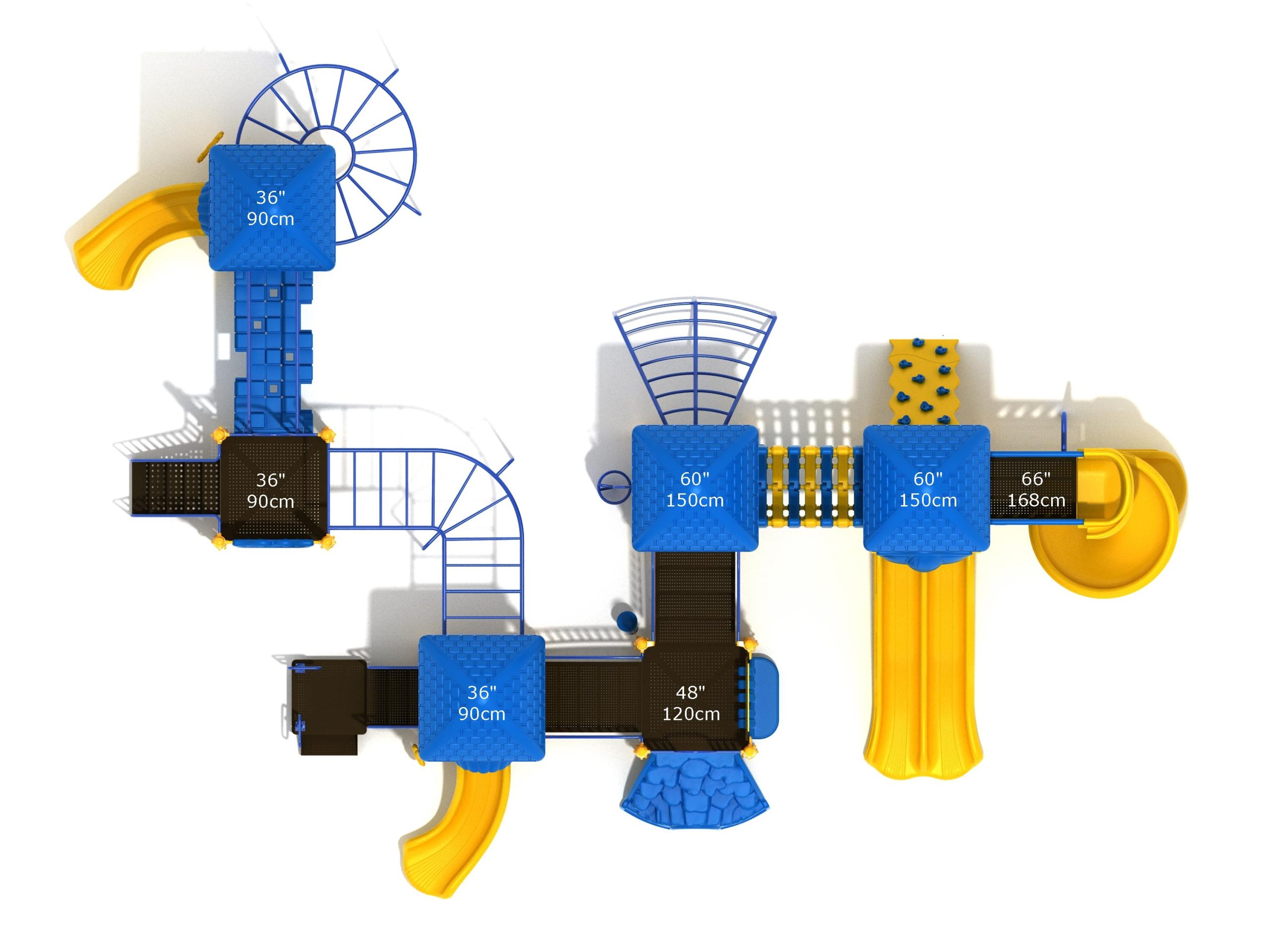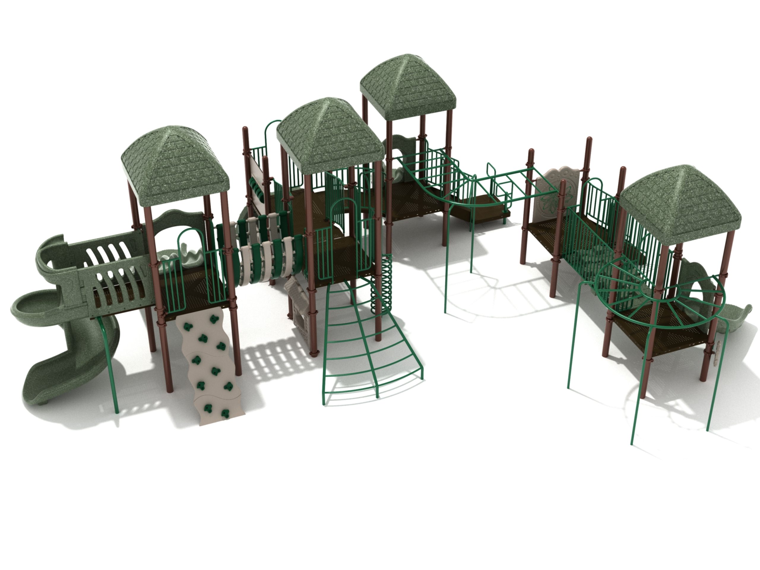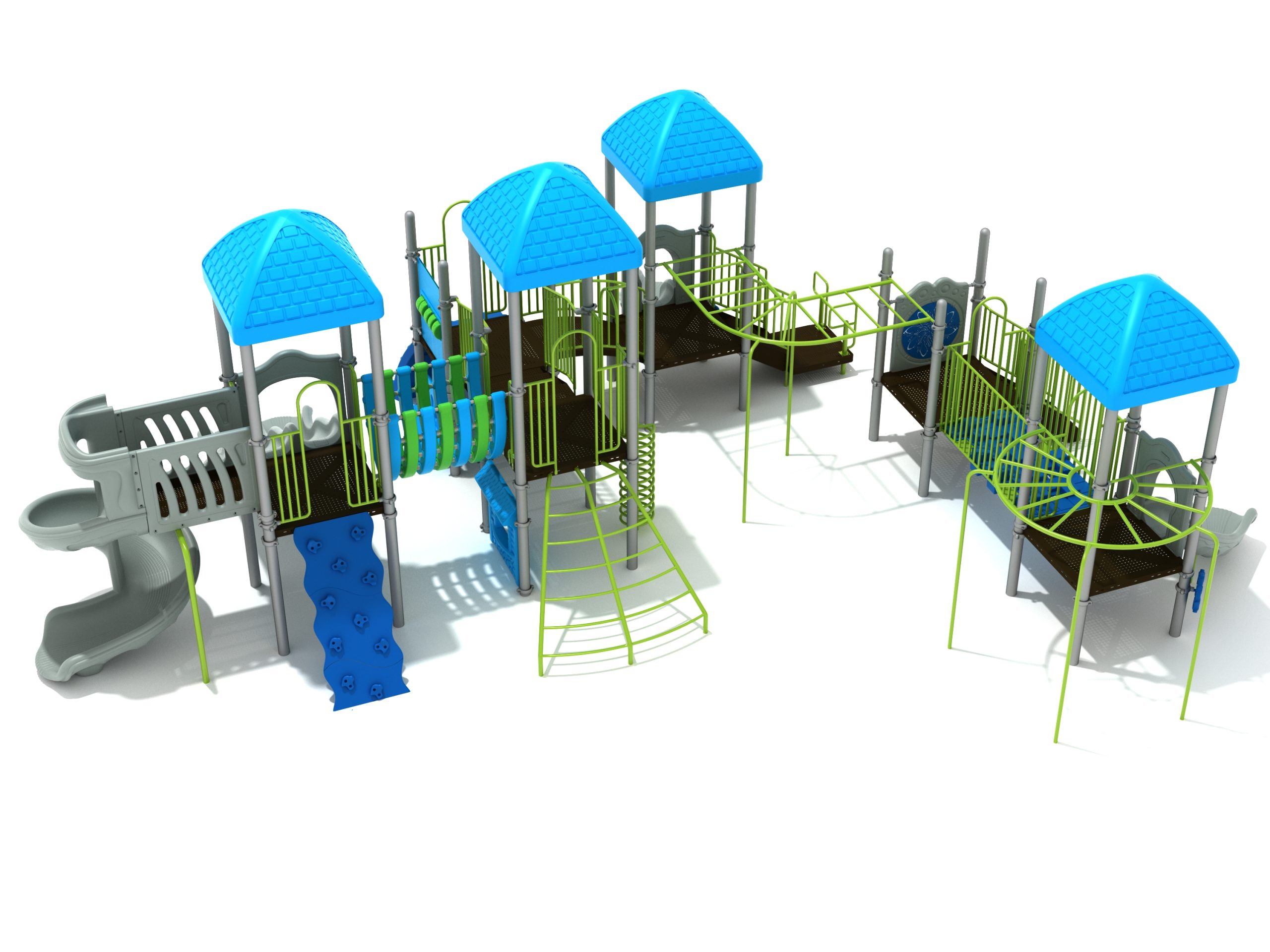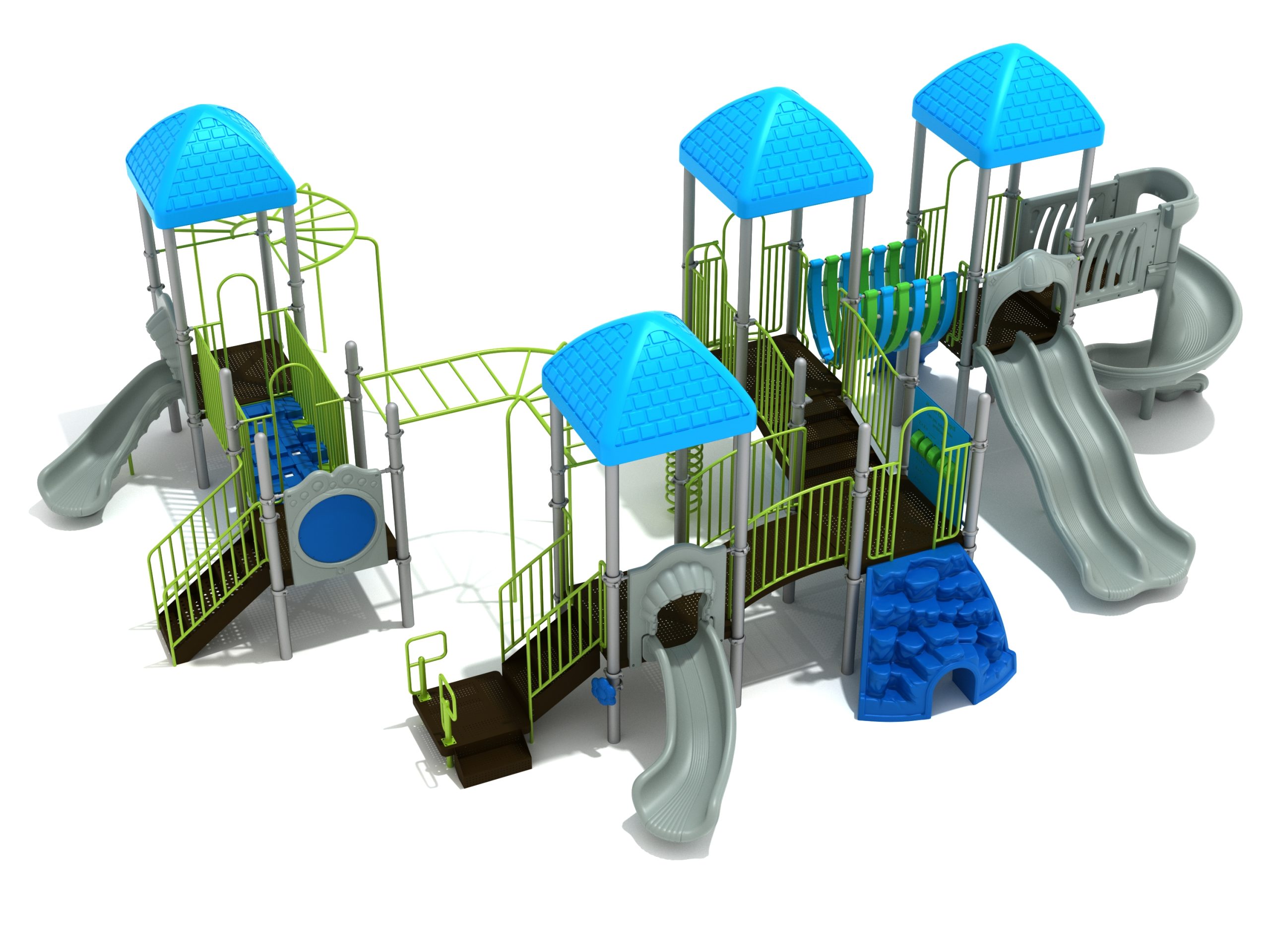 Esplanade Ridge is a play structure that resembles a small city filled with all sorts of adventures. With 5 slides and plenty of amenities, Esplanade Ridge is a must-have in every playground. Its design is of untamed landscape so kids can explore different interactive elements. They can hide beneath the Rock Hole Climber, pretending to camp in a cave. A Spiral Climber & a Wavy PE Rock Climbing Wall offer exciting yet challenging climbing experiences to young adventurers. So, they can make their way to the Bones Bridge, scrambling between climbers. Math, Bench, & Store Panels allow them to have fun with friends at various locations. 4 Square Toofs cover it all, making this play structure perfect for running around. The Finger Maze Panel adds to kids’ curiosity. Esplanade Ridge’s futuristic design invites children to hopscotch and develop their social skills while enjoying themselves. Since it is built with commercial-grade materials, this play structure provides safety and is sure to last for years to come.