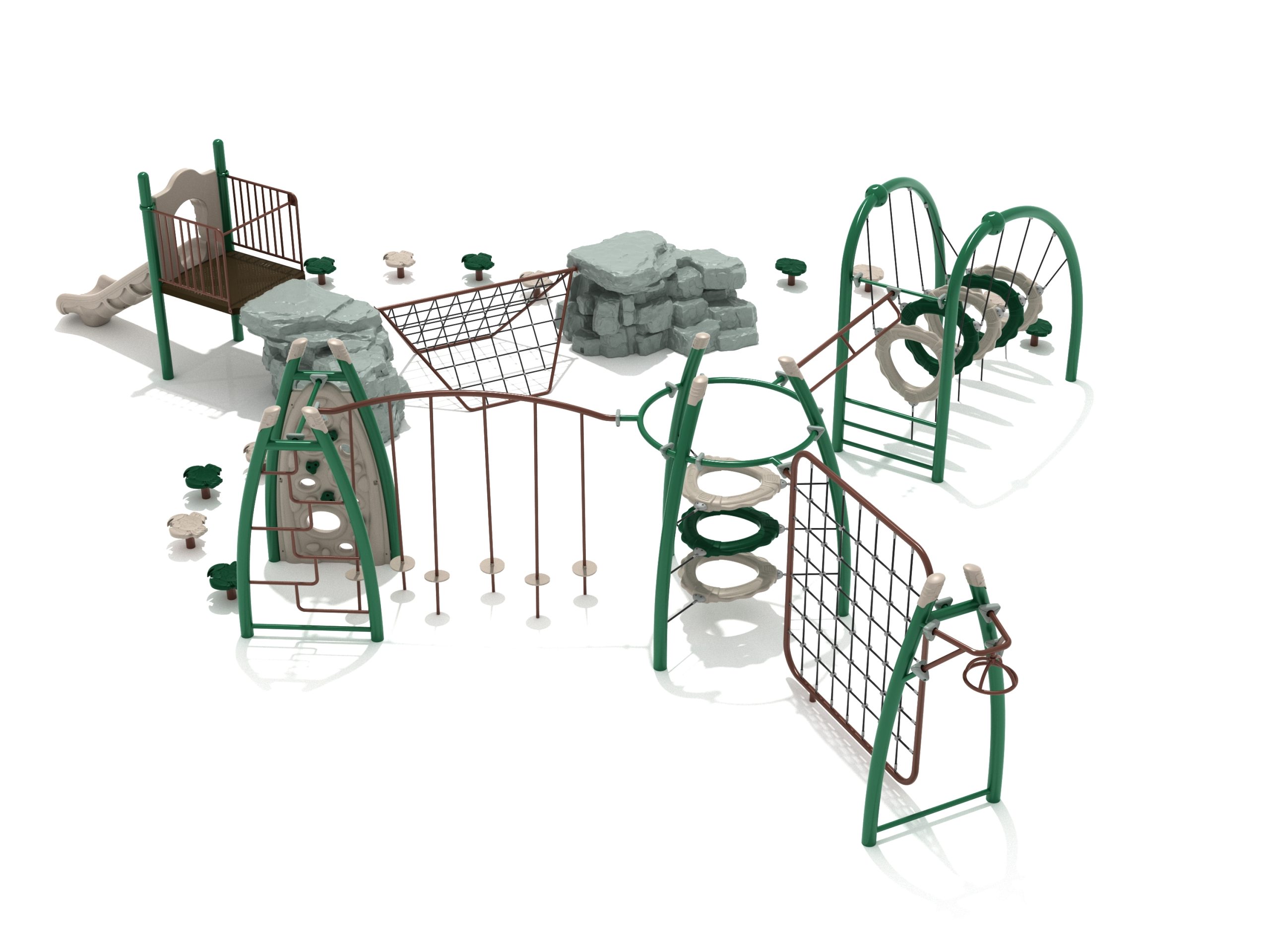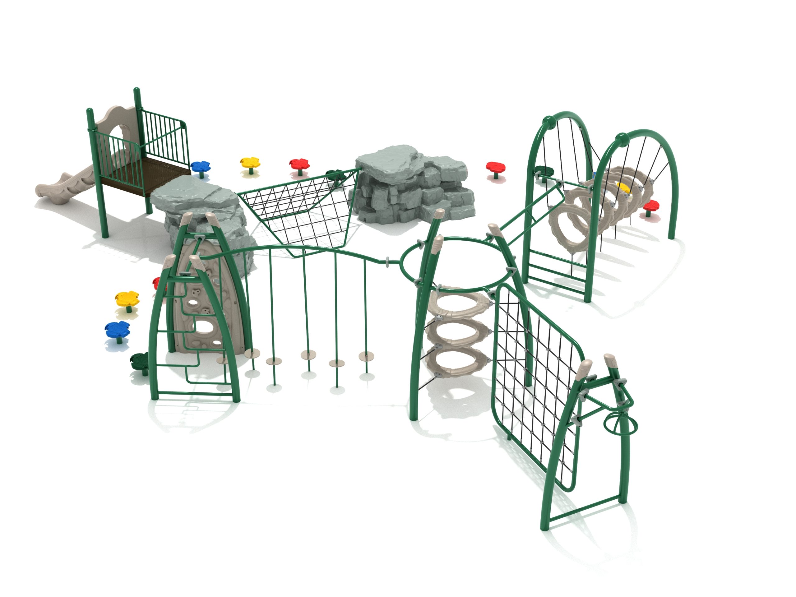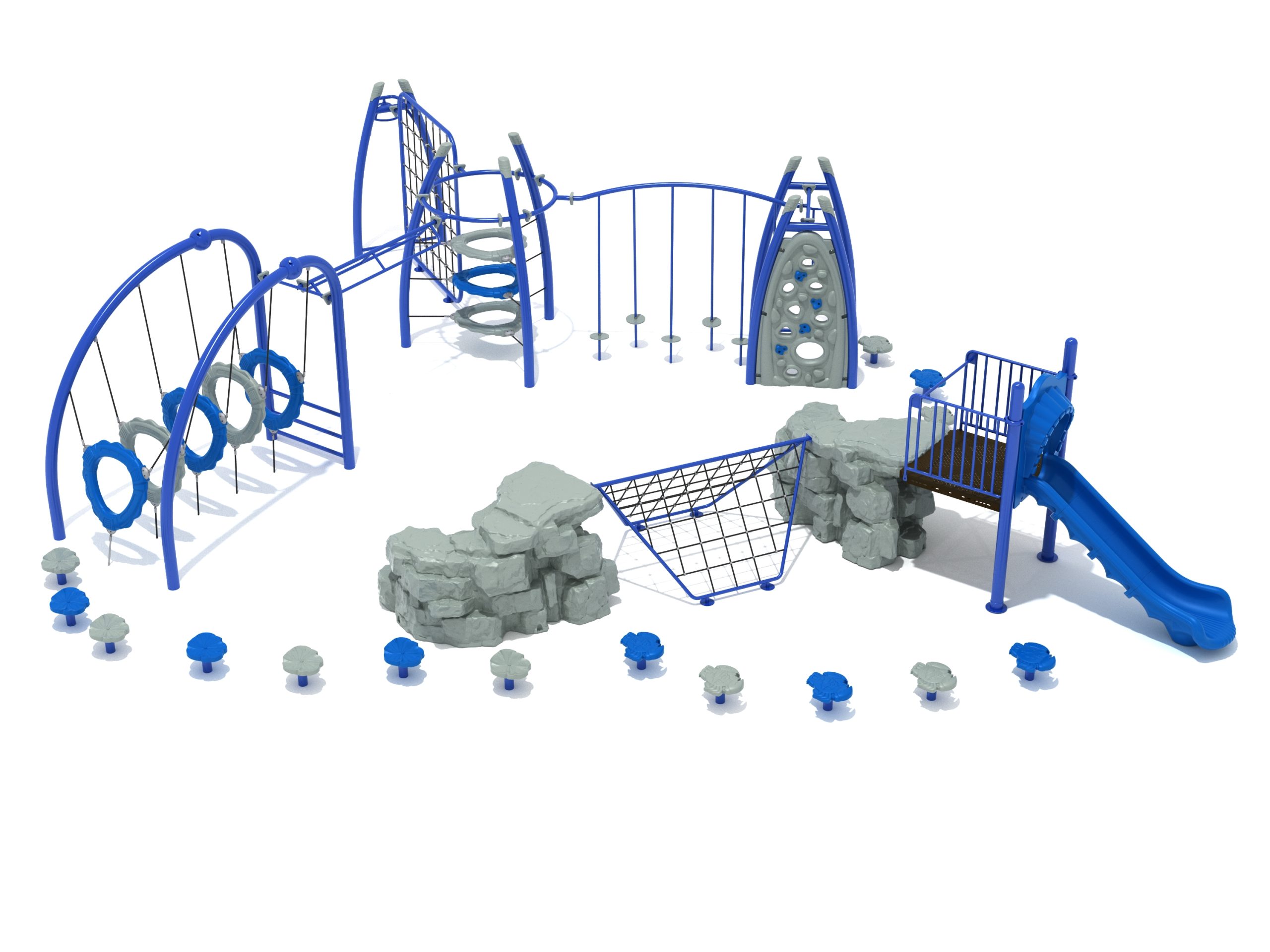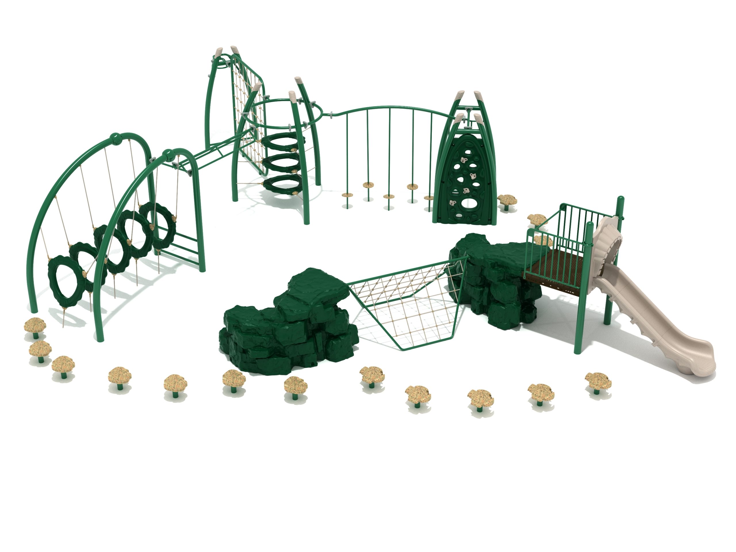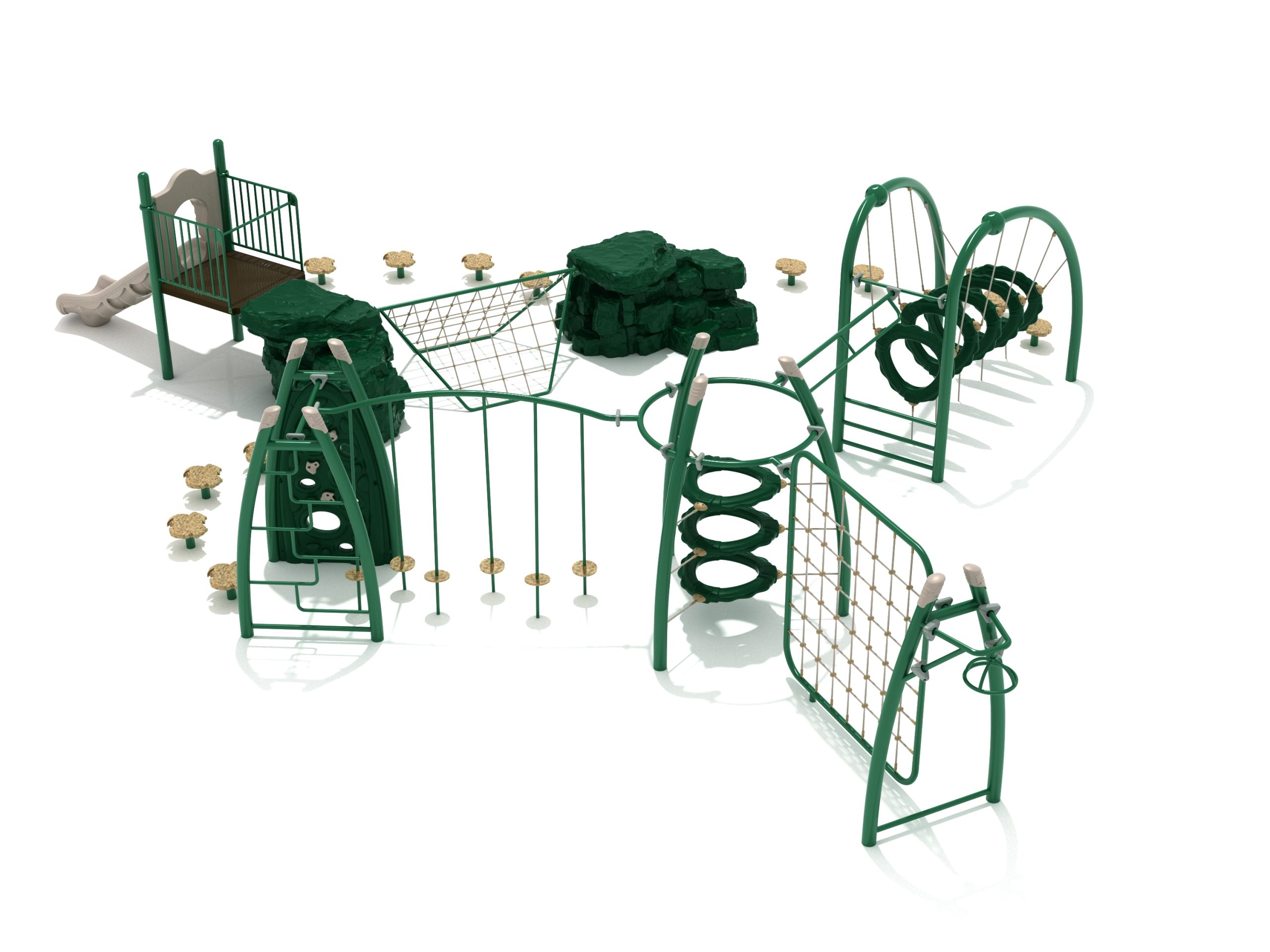 Wherever kids decide to start their adventure on the Gold Coast they’re guaranteed to have a blast with challenges of agility on the many Crab Climbers and Lotus Climbers, balance on the Tilted Lily Pad Bridge, and strength on the Overhead Parallel Bar Ladder. Every feature brings a new level of creativity to the playground and kids will enjoy wiggling their way through a Floating Tunnel of Rings or maneuvering inside of an intriguing Tower of Rings. Themes of mountain climbing are brought to the playset with two large Boulder Climbers which inspire kids to navigate their own path upwards. A Net Climber and Envelope Net Climber are ideal for obstacle courses as children can use both sides and even go up and over it. A Curved Panel Climber and Maze Rung Vertical Ladder provide a way for children to climb to the top of the playground and check out the view, or if they want a spinning experience like nothing else, all they have to do is grab hold tightly of the Overhead Spinner and it will twirl their body round and round.
