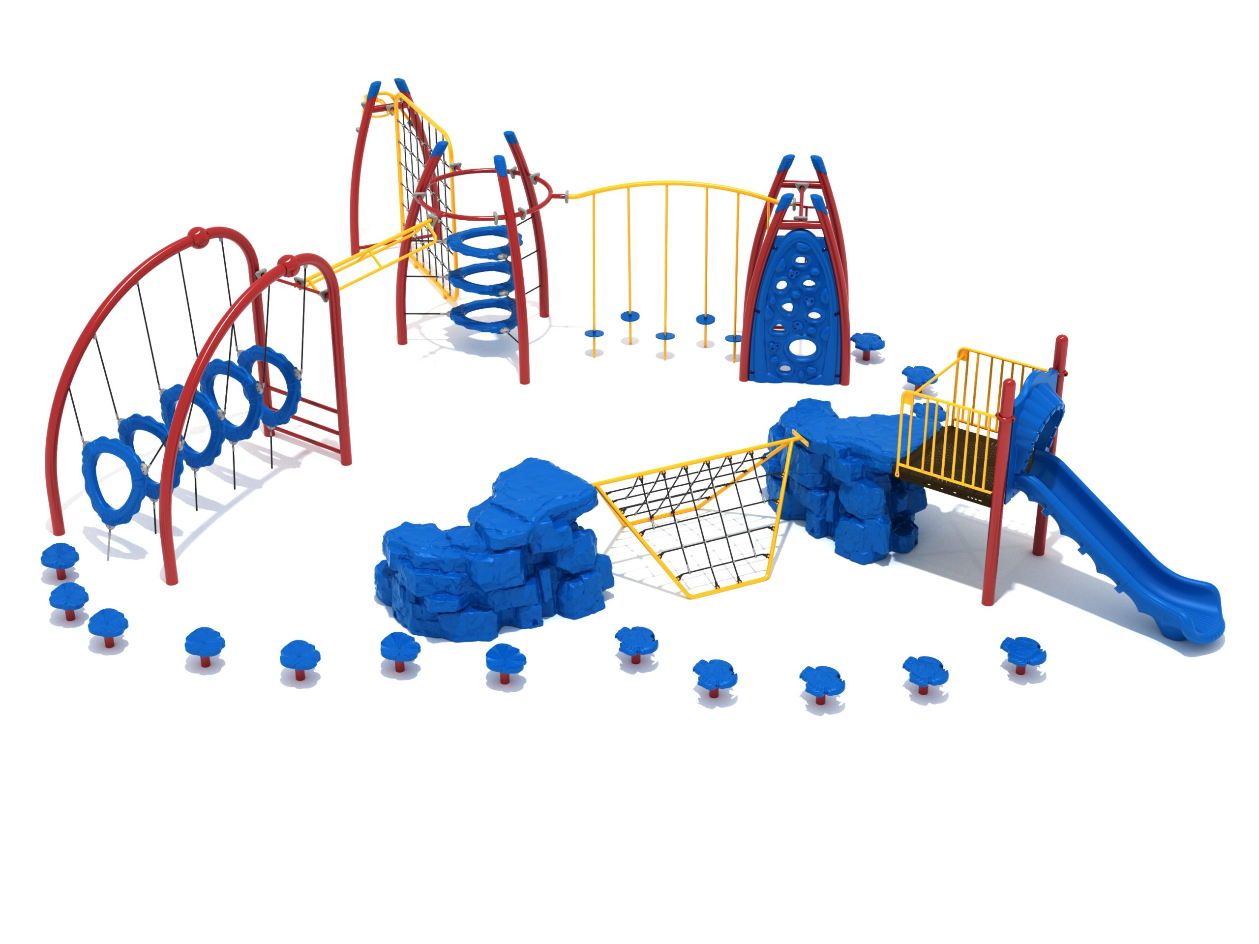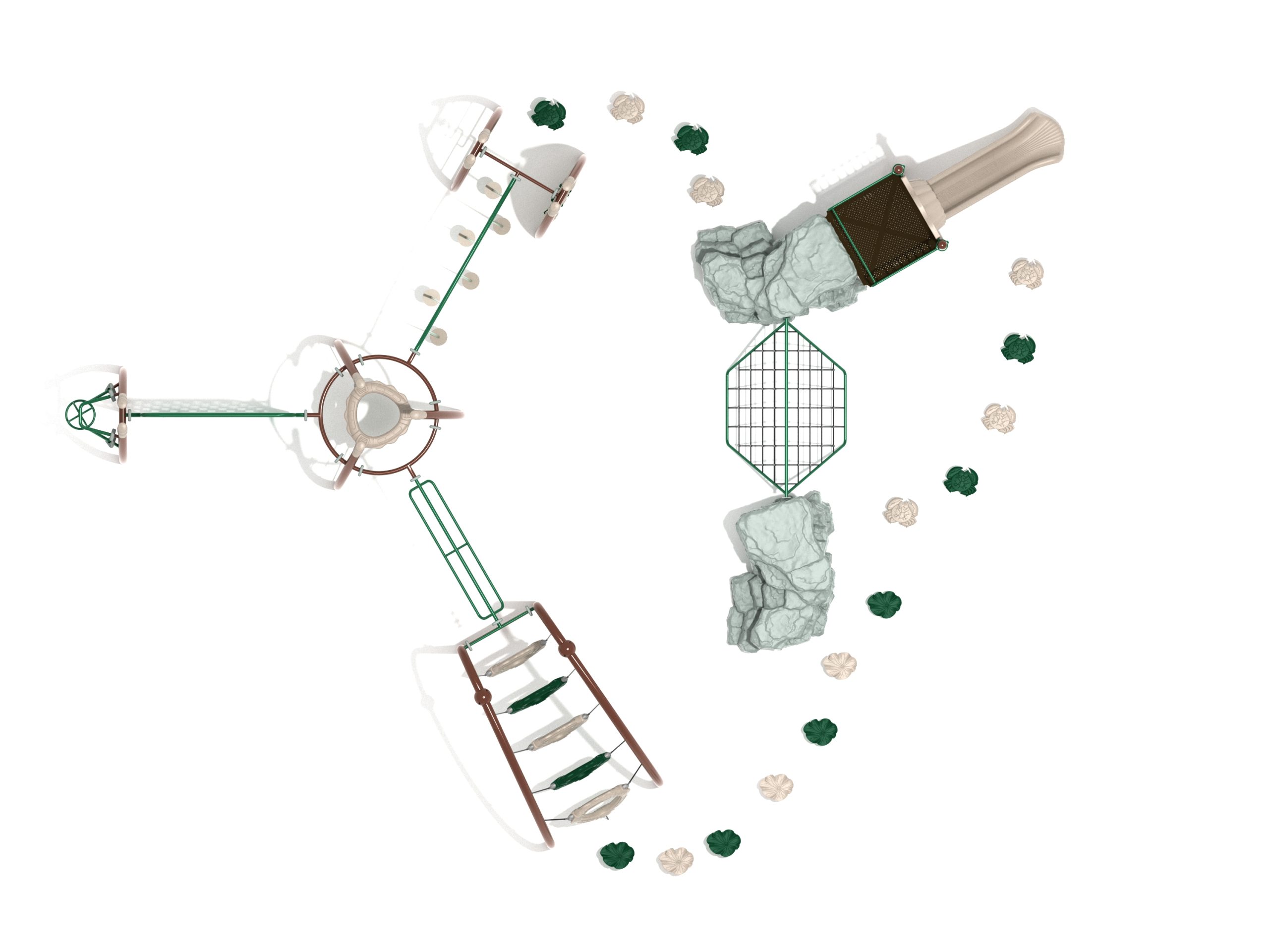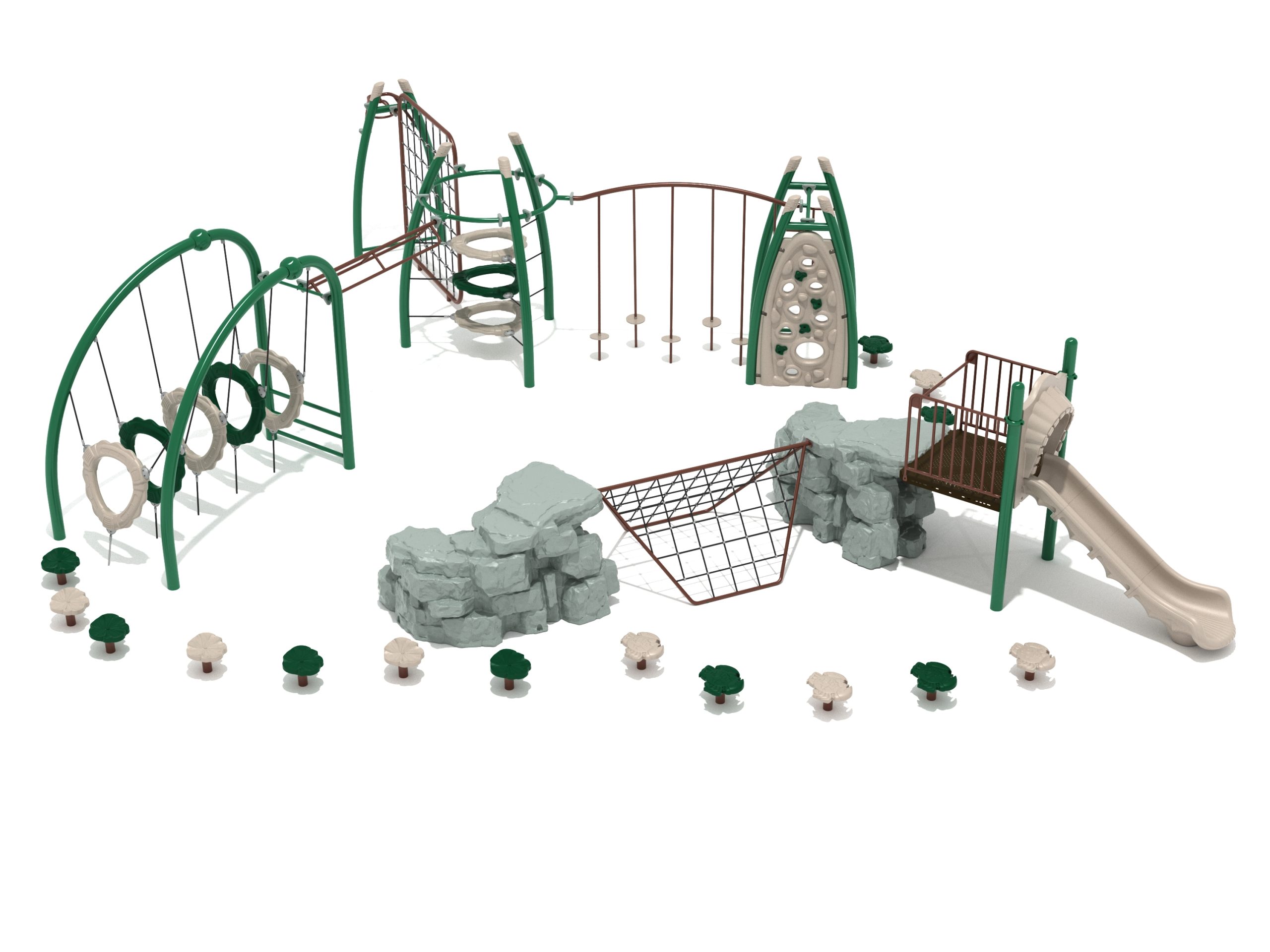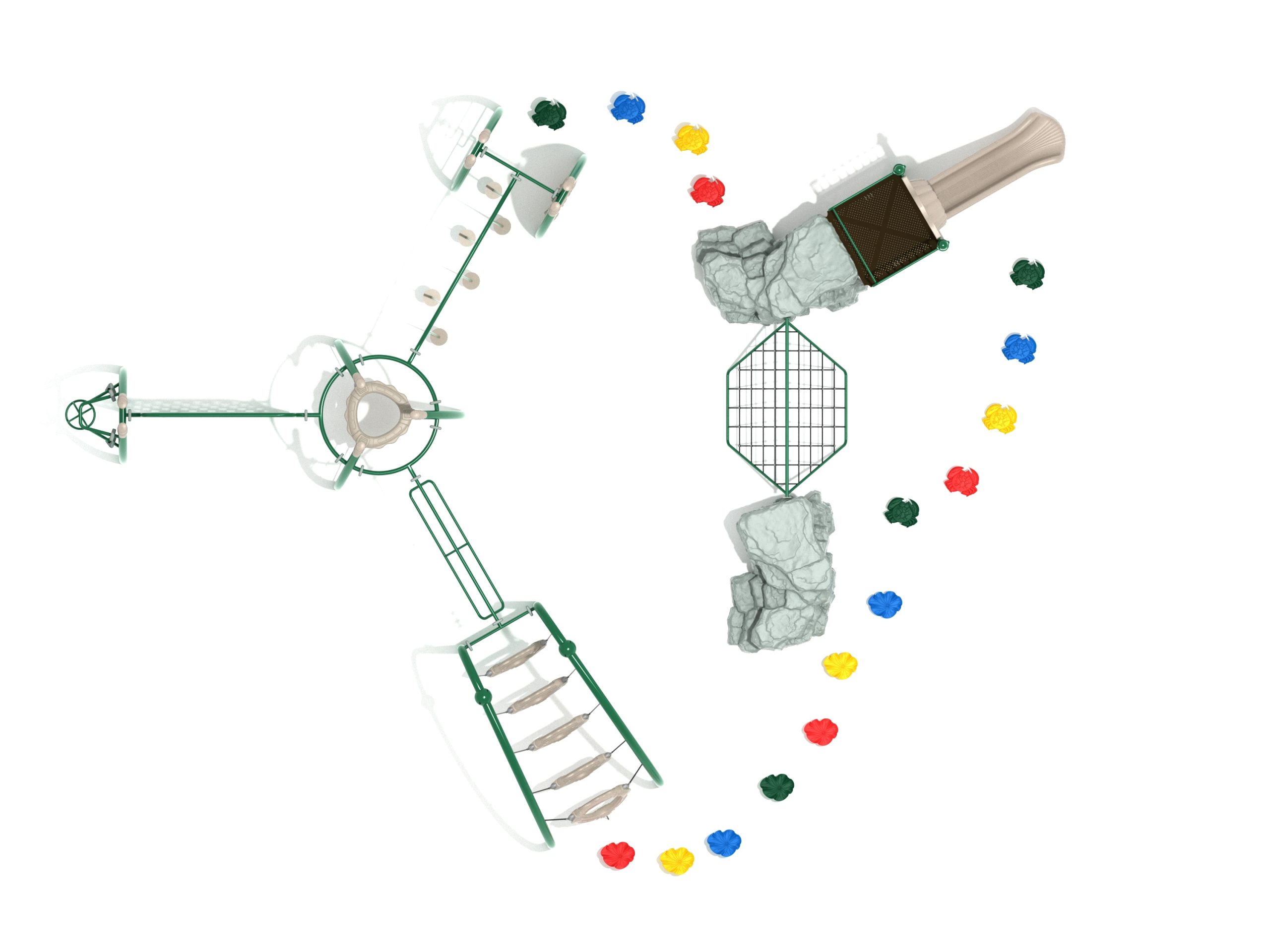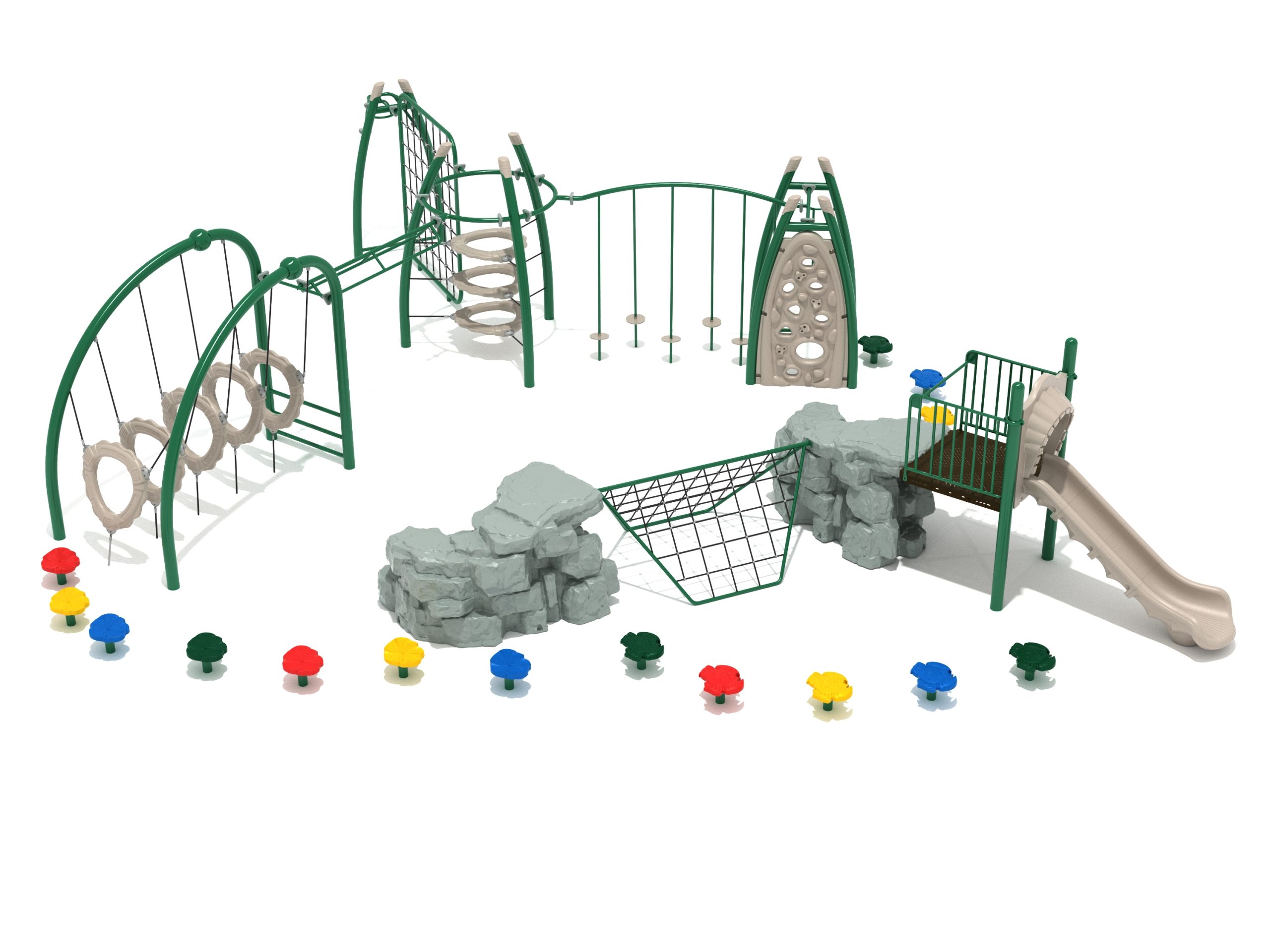 Wherever kids decide to start their adventure on the Gold Coast they’re guaranteed to have a blast with challenges of agility on the many Crab Climbers and Lotus Climbers, balance on the Tilted Lily Pad Bridge, and strength on the Overhead Parallel Bar Ladder. Every feature brings a new level of creativity to the playground and kids will enjoy wiggling their way through a Floating Tunnel of Rings or maneuvering inside of an intriguing Tower of Rings. Themes of mountain climbing are brought to the playset with two large Boulder Climbers which inspire kids to navigate their own path upwards. A Net Climber and Envelope Net Climber are ideal for obstacle courses as children can use both sides and even go up and over it. A Curved Panel Climber and Maze Rung Vertical Ladder provide a way for children to climb to the top of the playground and check out the view, or if they want a spinning experience like nothing else, all they have to do is grab hold tightly of the Overhead Spinner and it will twirl their body round and round.