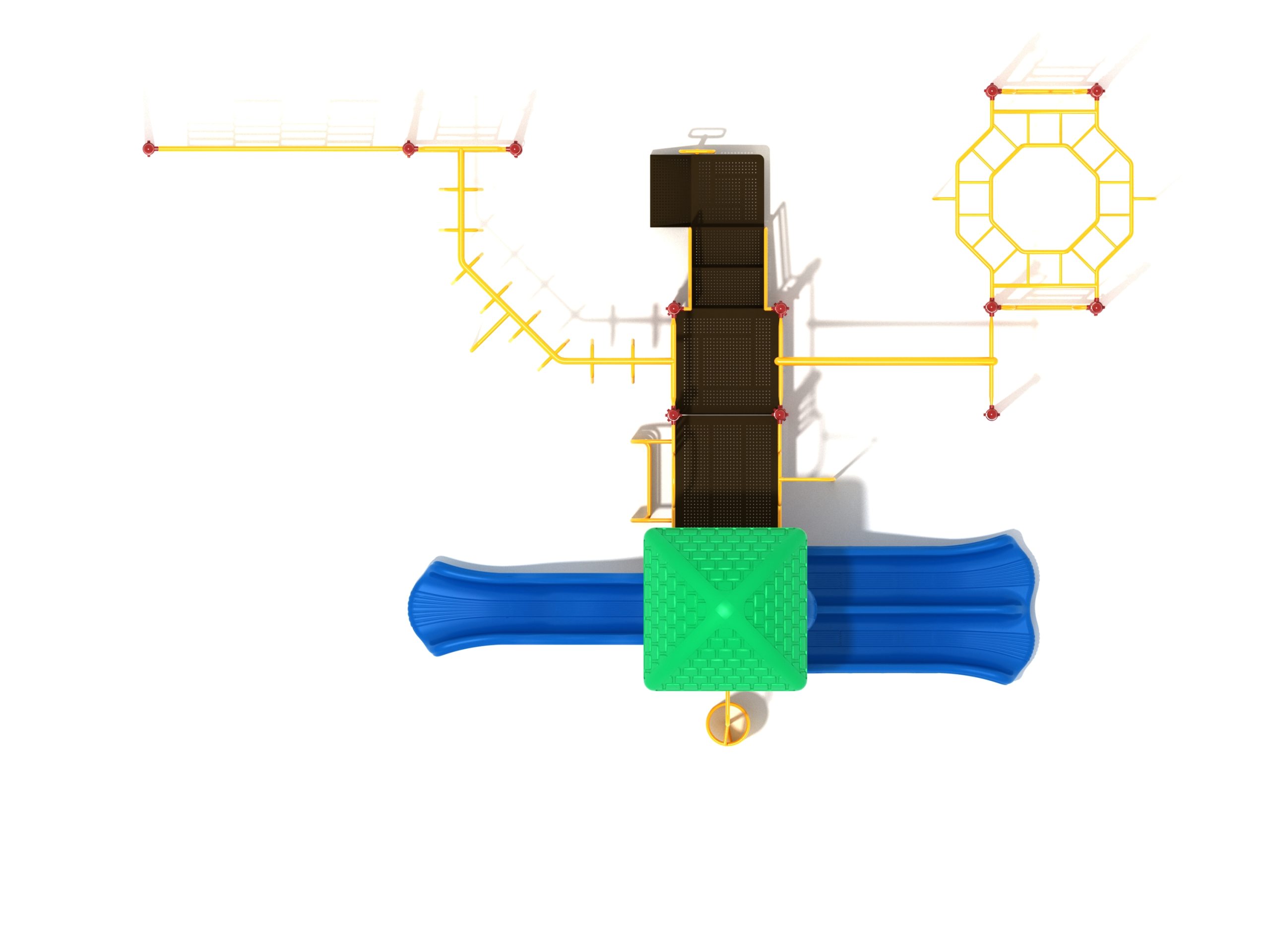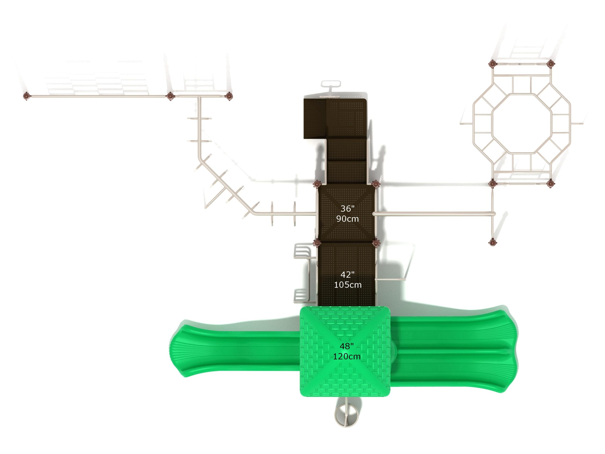 The Grosse Pointe play system has almost everything a kid needs to build their upper body strength and coordination and have fun while at it. While there is a Double Slide and a Single Wave Slide in this structure, they are not the highlight. The highlight is all the Ladders this play system comes with. Kids who just want to enjoy the slides can get up the deck through the Transfer Station and have at the slides. But kids who prefer a challenge can start from either the Chain Climbing Wall or the Octagon Straight Rung Horizontal Ladder. The Climbing Wall leads to the 90-degree Trapoziod Loop Ladder, which ends at the deck, and the Horizontal Ladder leads to the Overhead Single Parallel Bar Ladder, which also ends at the deck. If there is still some energy left, there’s also a Fireman Pole, which kids can enjoy during their playtime.