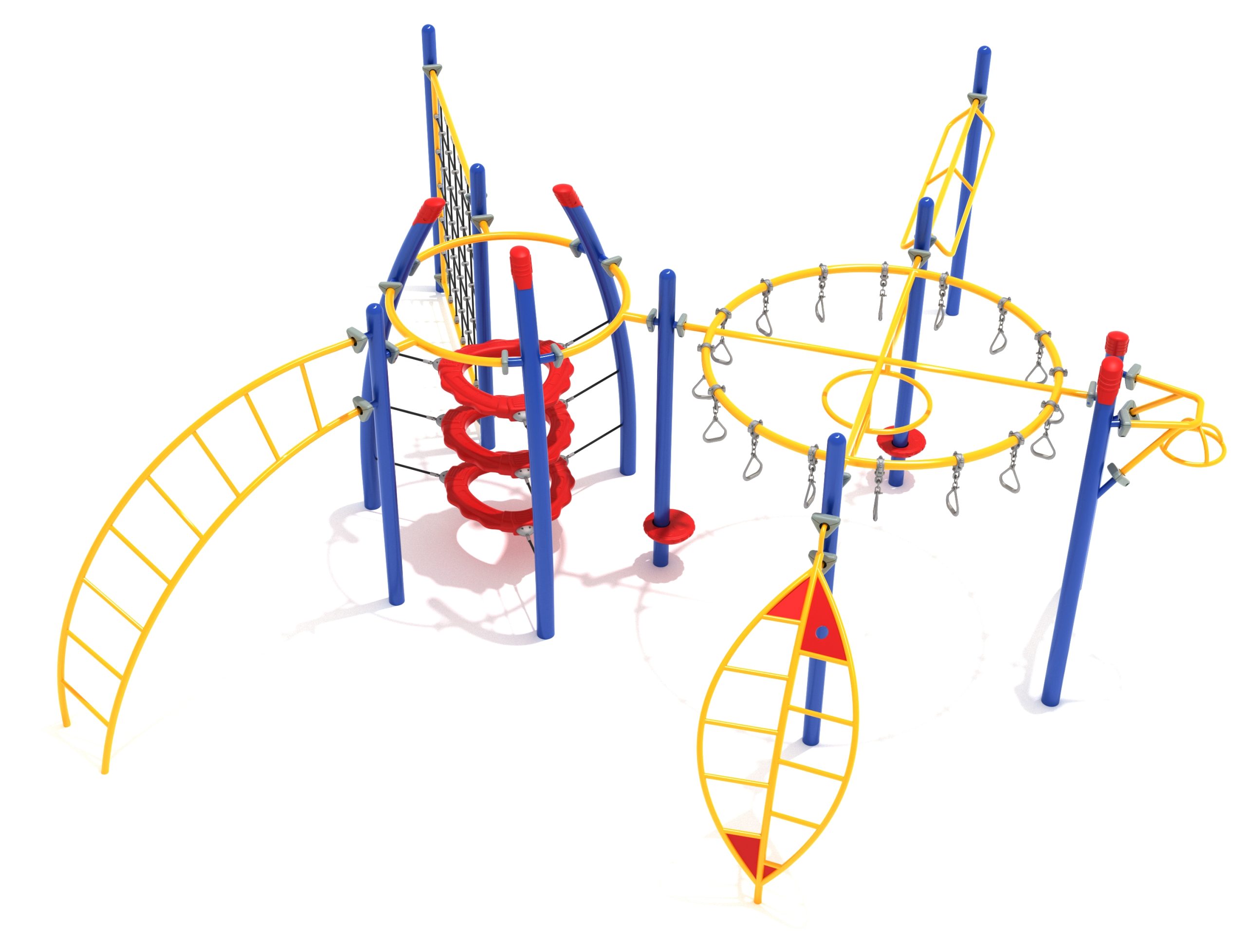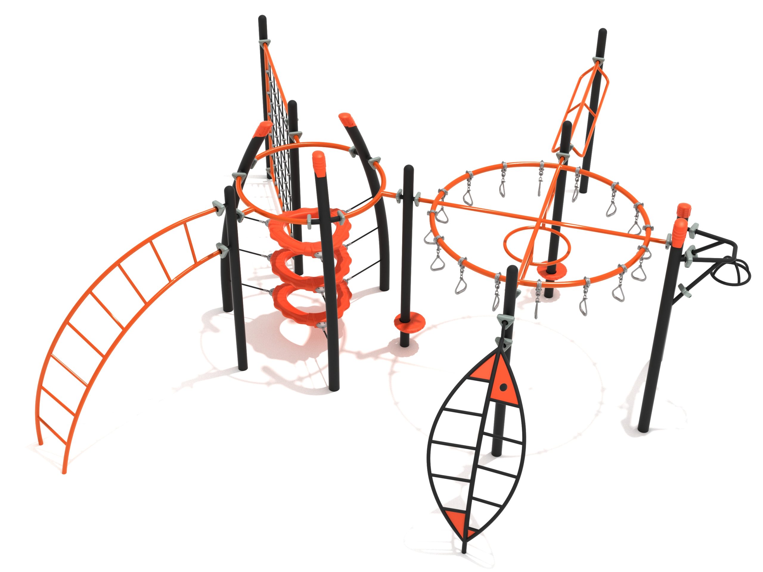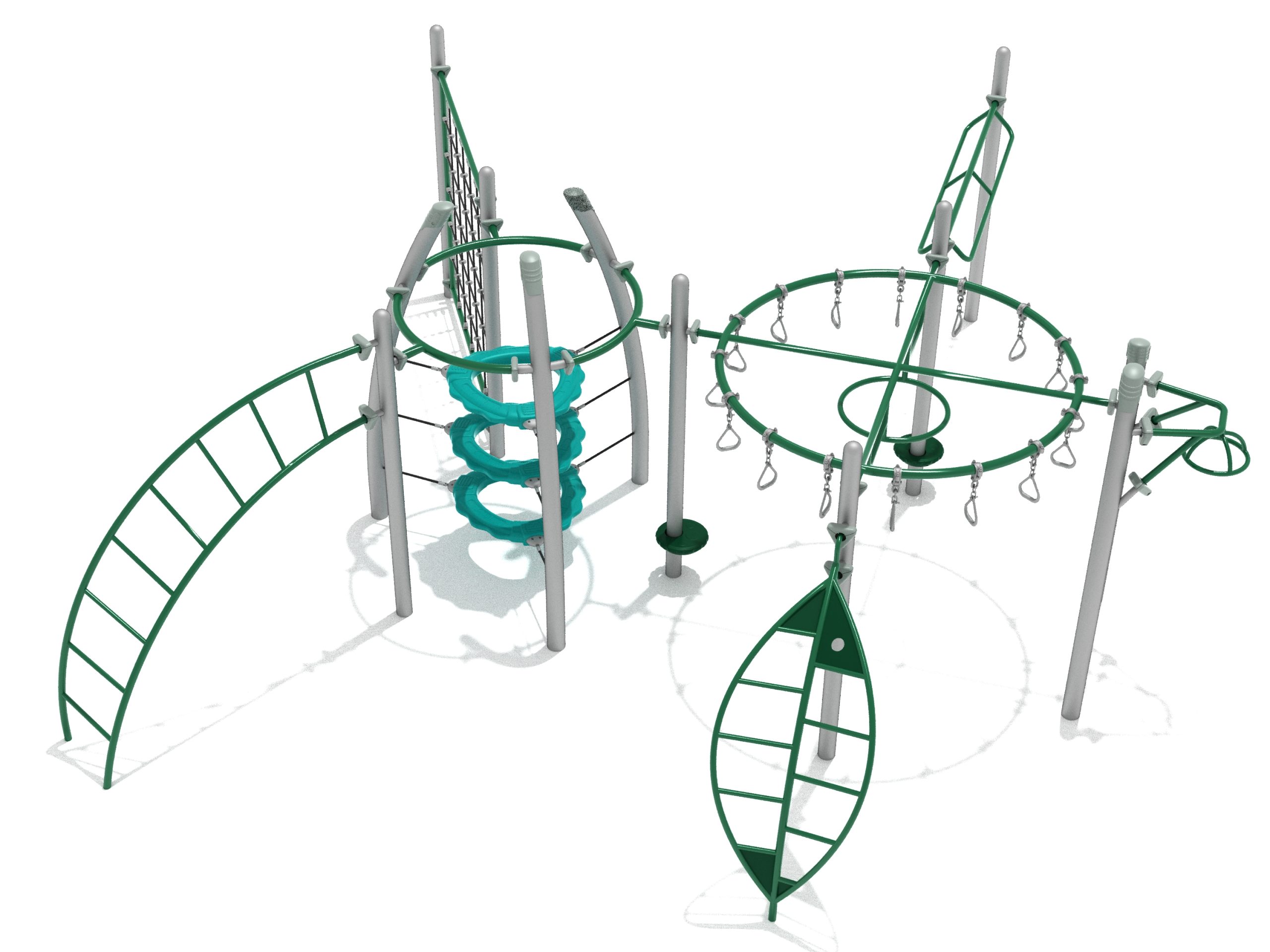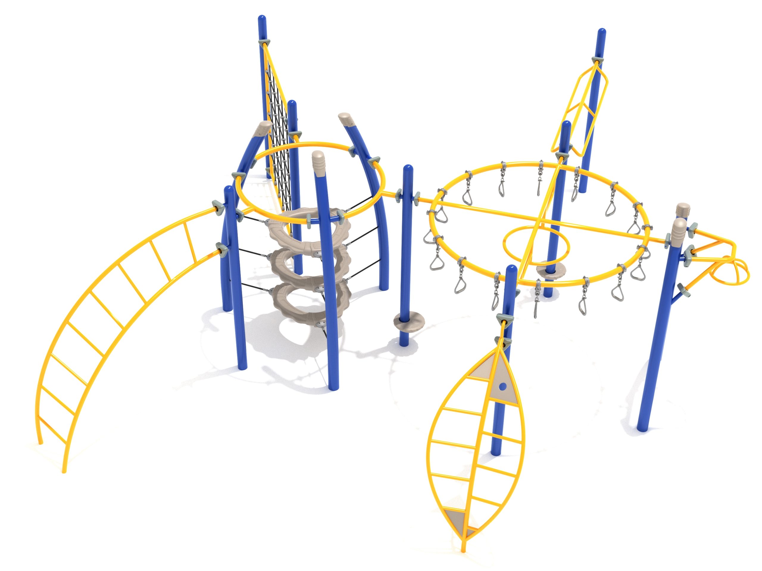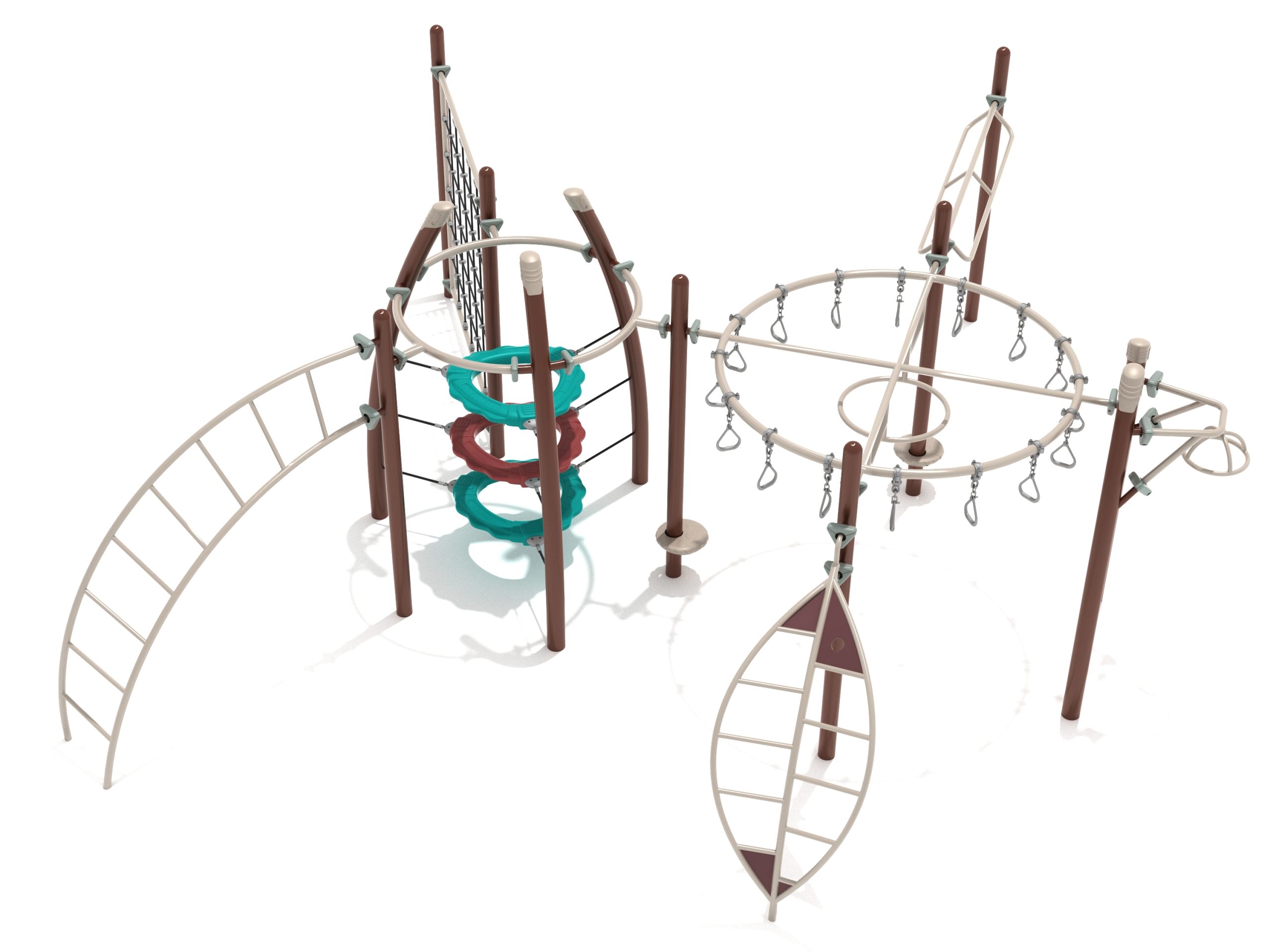 Kids will be thrilled at the opportunity to climb, swing and scramble their way across the multiple features of Gunnison Gorge which includes an Overhead Spinner to twist them round and round and a Leaf Climber that gives the best view of the playground from the top. The main attraction will of course be the Circle Overhead Swinging Ring Ladder and only the most determined children will be able to work their way around the 16 rings. Additional challenge can be found on the Overhead Parallel Bar Climber that requires children to swing in a straight line, hand to hand, like an orangutan in the jungles of Borneo. More monkey fun comes from a Tower of Rings which requires strategy to climb, and this is flanked by a tall Net Climber that can be used on both sides at the same time, and a futuristic Twisted Rung Ladder. With all of these features combined into one unit, the Gunnison Gorge is sure to bring many hours of entertainment that will ensure children sleep well after a day playing on it.