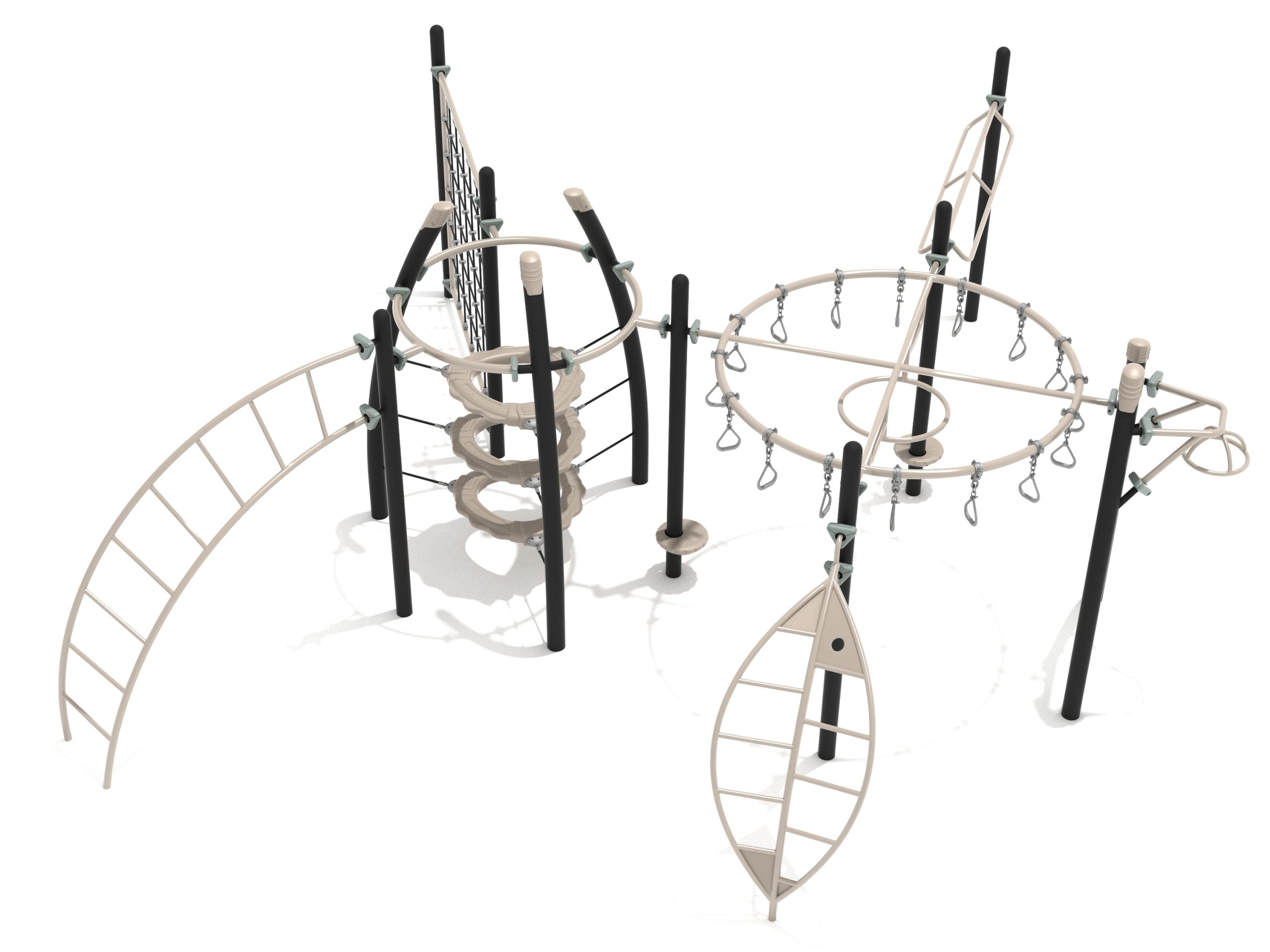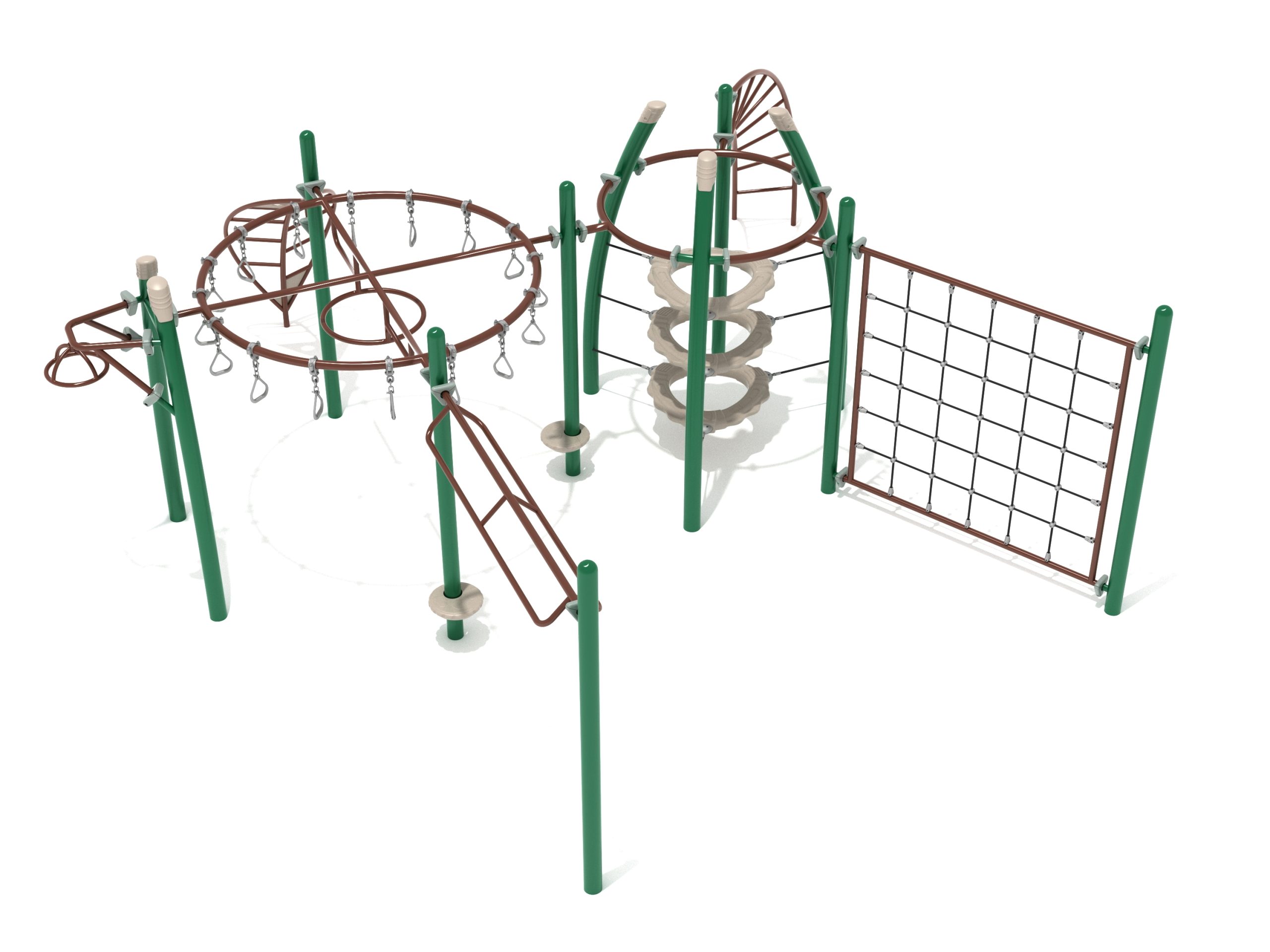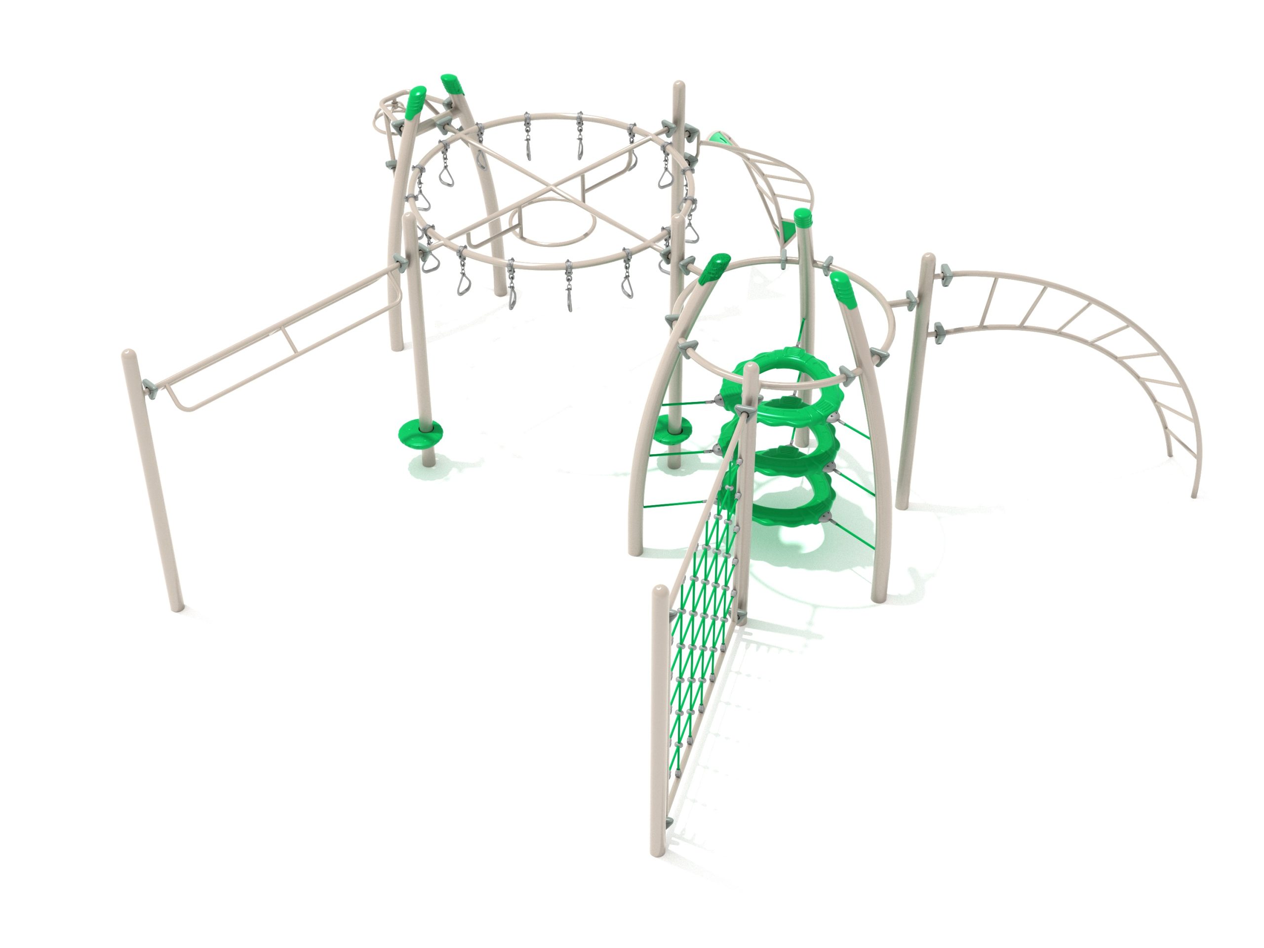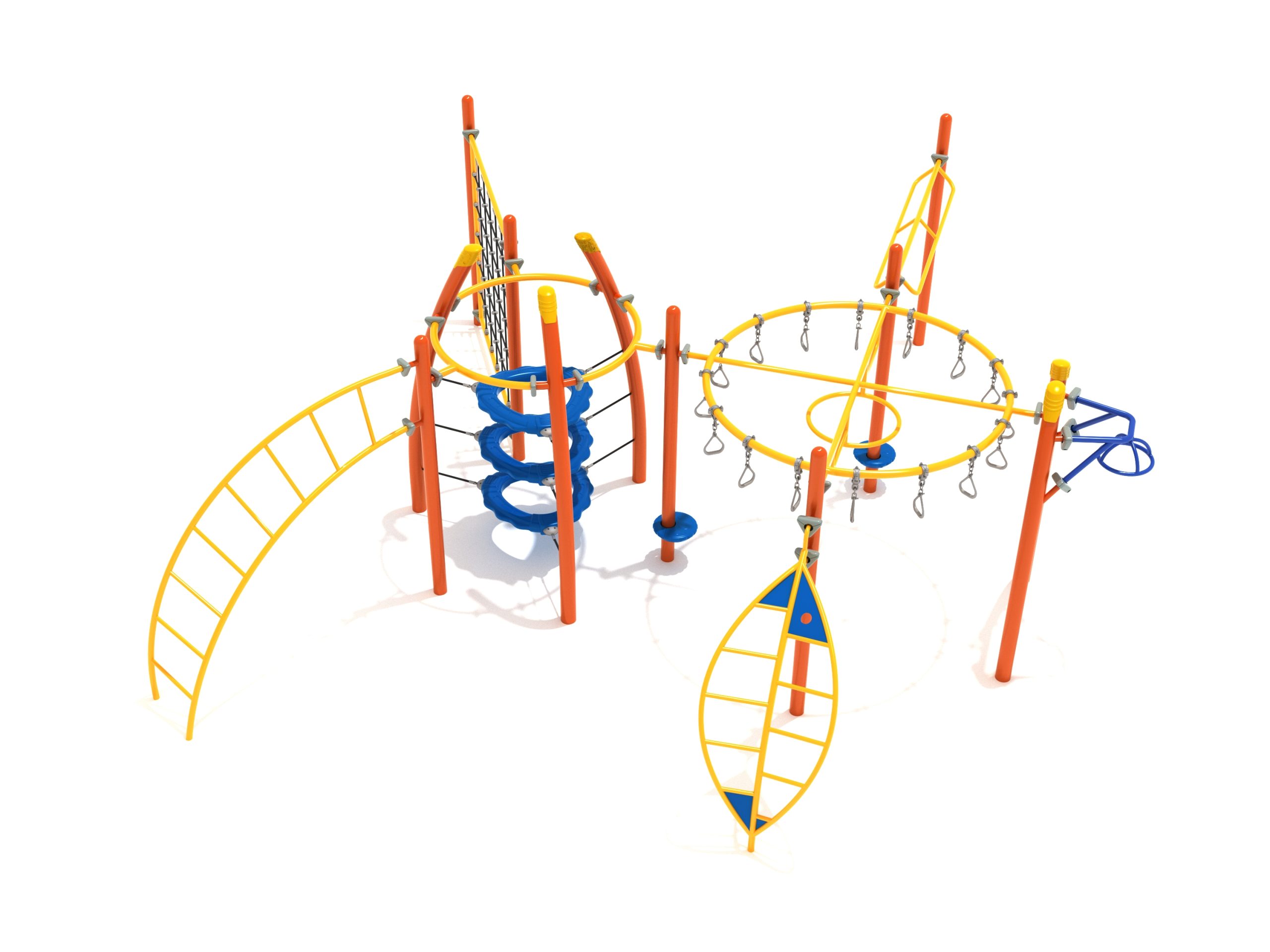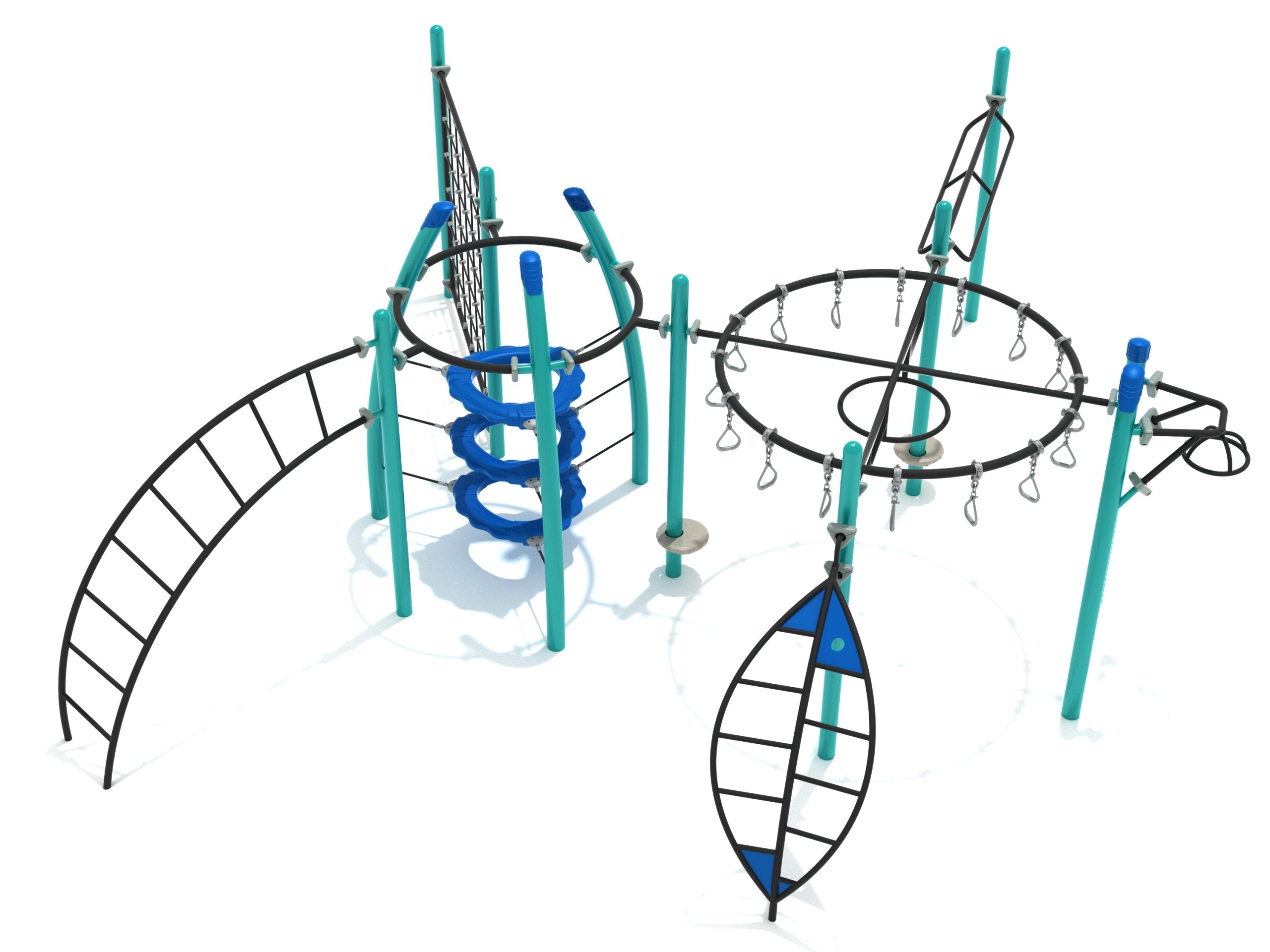 Kids will be thrilled at the opportunity to climb, swing and scramble their way across the multiple features of Gunnison Gorge which includes an Overhead Spinner to twist them round and round and a Leaf Climber that gives the best view of the playground from the top. The main attraction will of course be the Circle Overhead Swinging Ring Ladder and only the most determined children will be able to work their way around the 16 rings. Additional challenge can be found on the Overhead Parallel Bar Climber that requires children to swing in a straight line, hand to hand, like an orangutan in the jungles of Borneo. More monkey fun comes from a Tower of Rings which requires strategy to climb, and this is flanked by a tall Net Climber that can be used on both sides at the same time, and a futuristic Twisted Rung Ladder. With all of these features combined into one unit, the Gunnison Gorge is sure to bring many hours of entertainment that will ensure children sleep well after a day playing on it.
