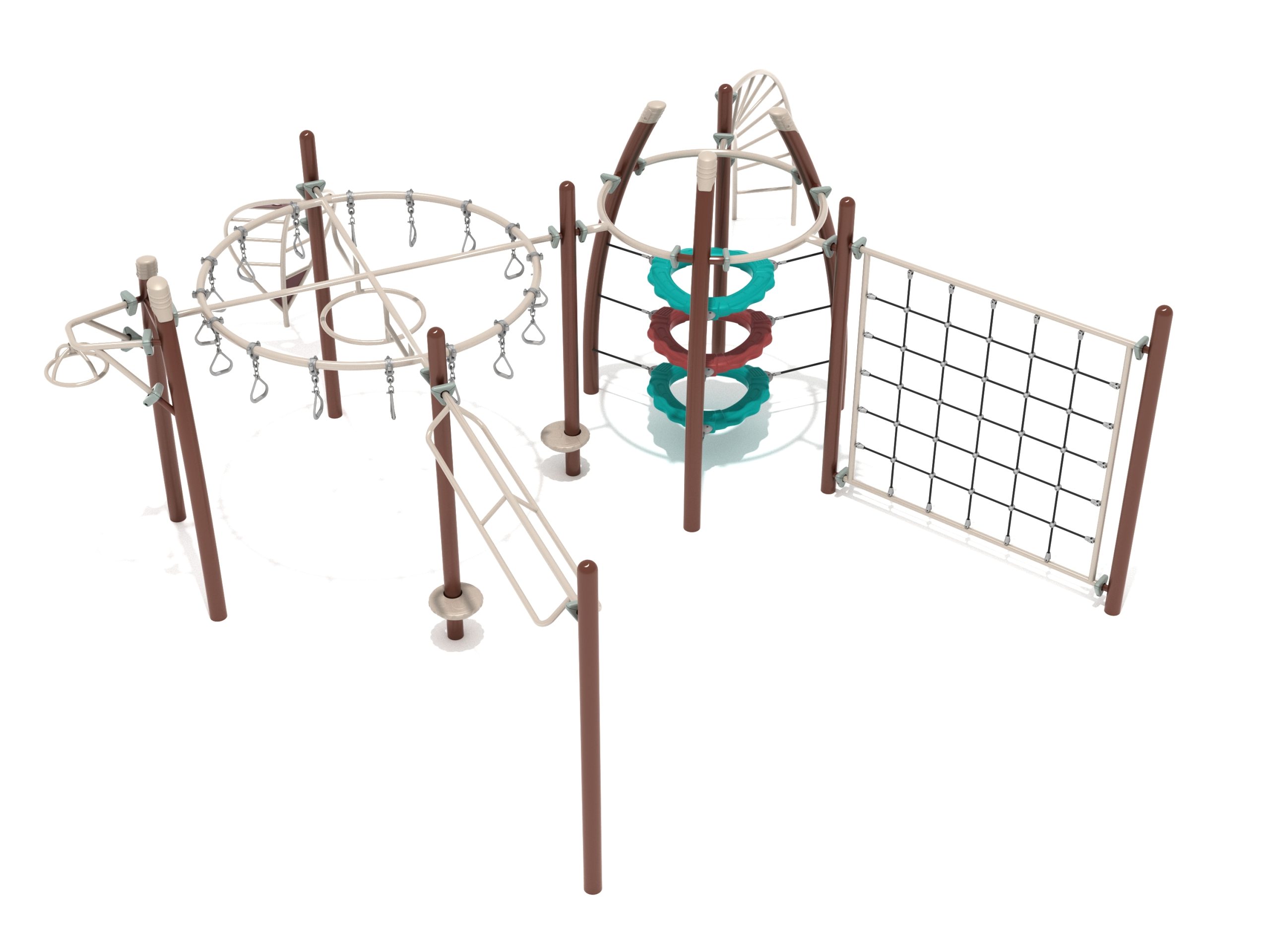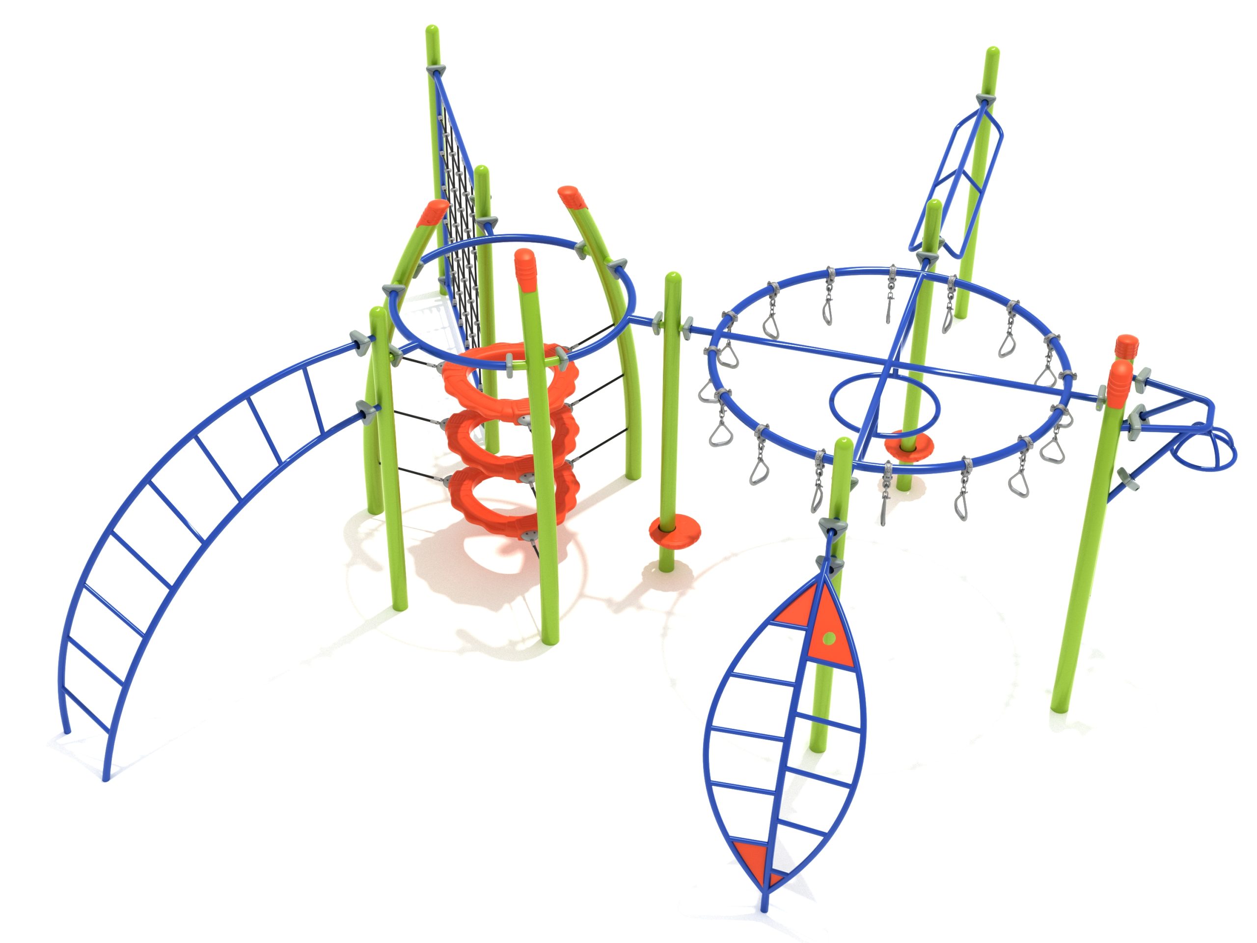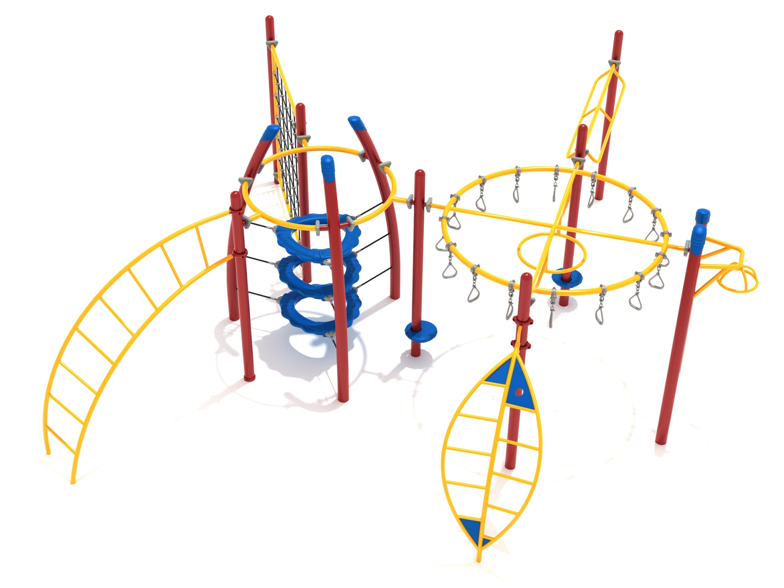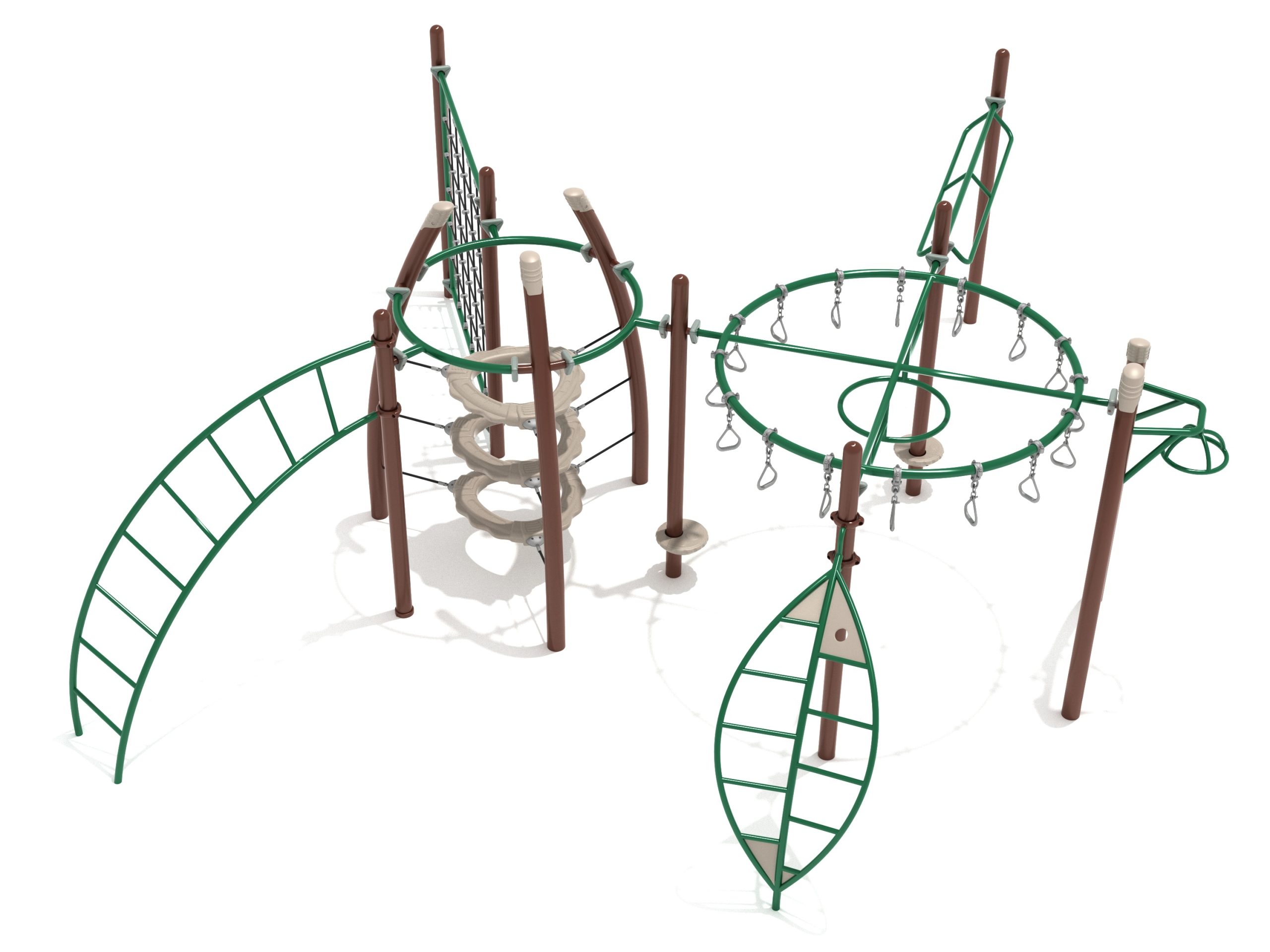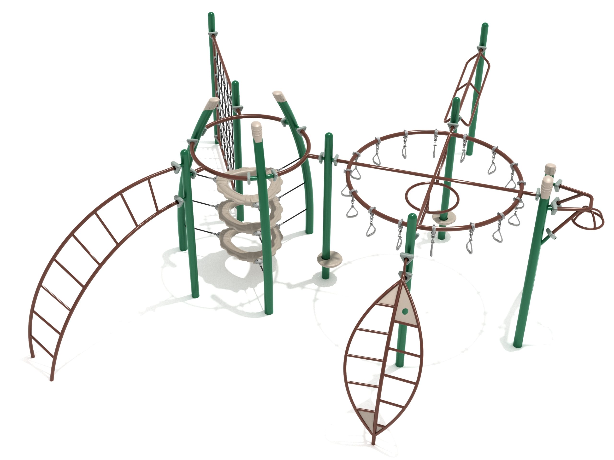 Kids will be thrilled at the opportunity to climb, swing and scramble their way across the multiple features of Gunnison Gorge which includes an Overhead Spinner to twist them round and round and a Leaf Climber that gives the best view of the playground from the top. The main attraction will of course be the Circle Overhead Swinging Ring Ladder and only the most determined children will be able to work their way around the 16 rings. Additional challenge can be found on the Overhead Parallel Bar Climber that requires children to swing in a straight line, hand to hand, like an orangutan in the jungles of Borneo. More monkey fun comes from a Tower of Rings which requires strategy to climb, and this is flanked by a tall Net Climber that can be used on both sides at the same time, and a futuristic Twisted Rung Ladder. With all of these features combined into one unit, the Gunnison Gorge is sure to bring many hours of entertainment that will ensure children sleep well after a day playing on it.