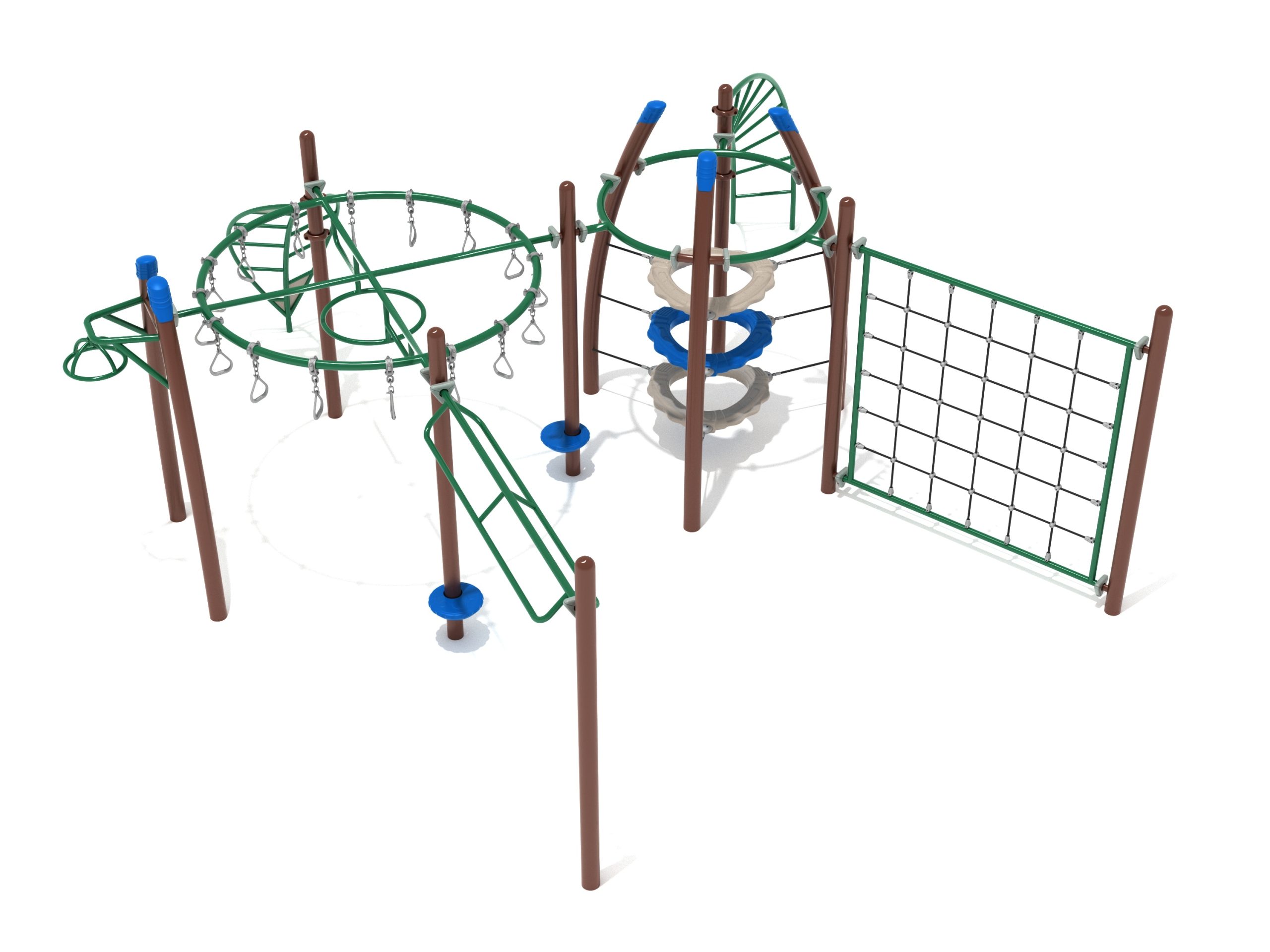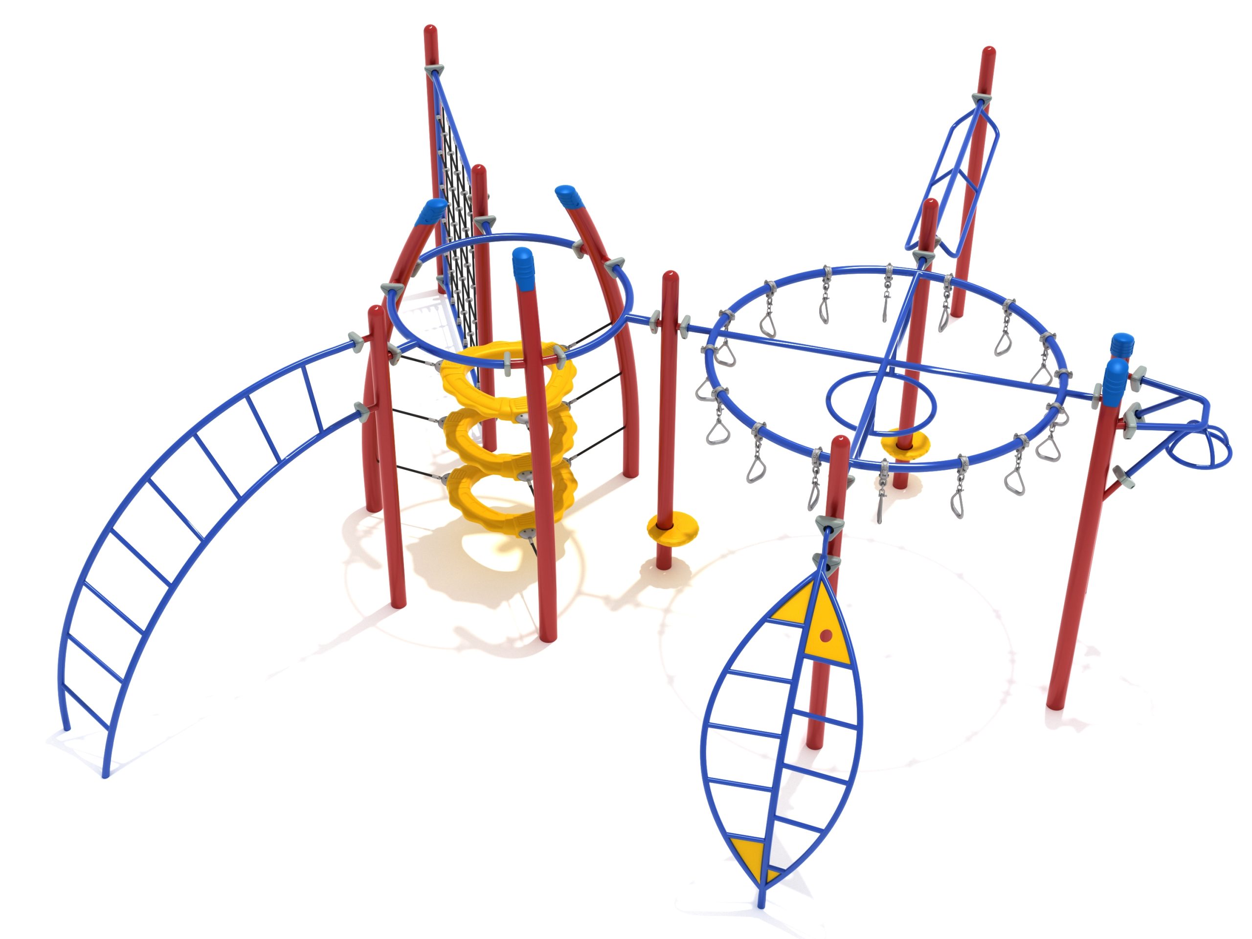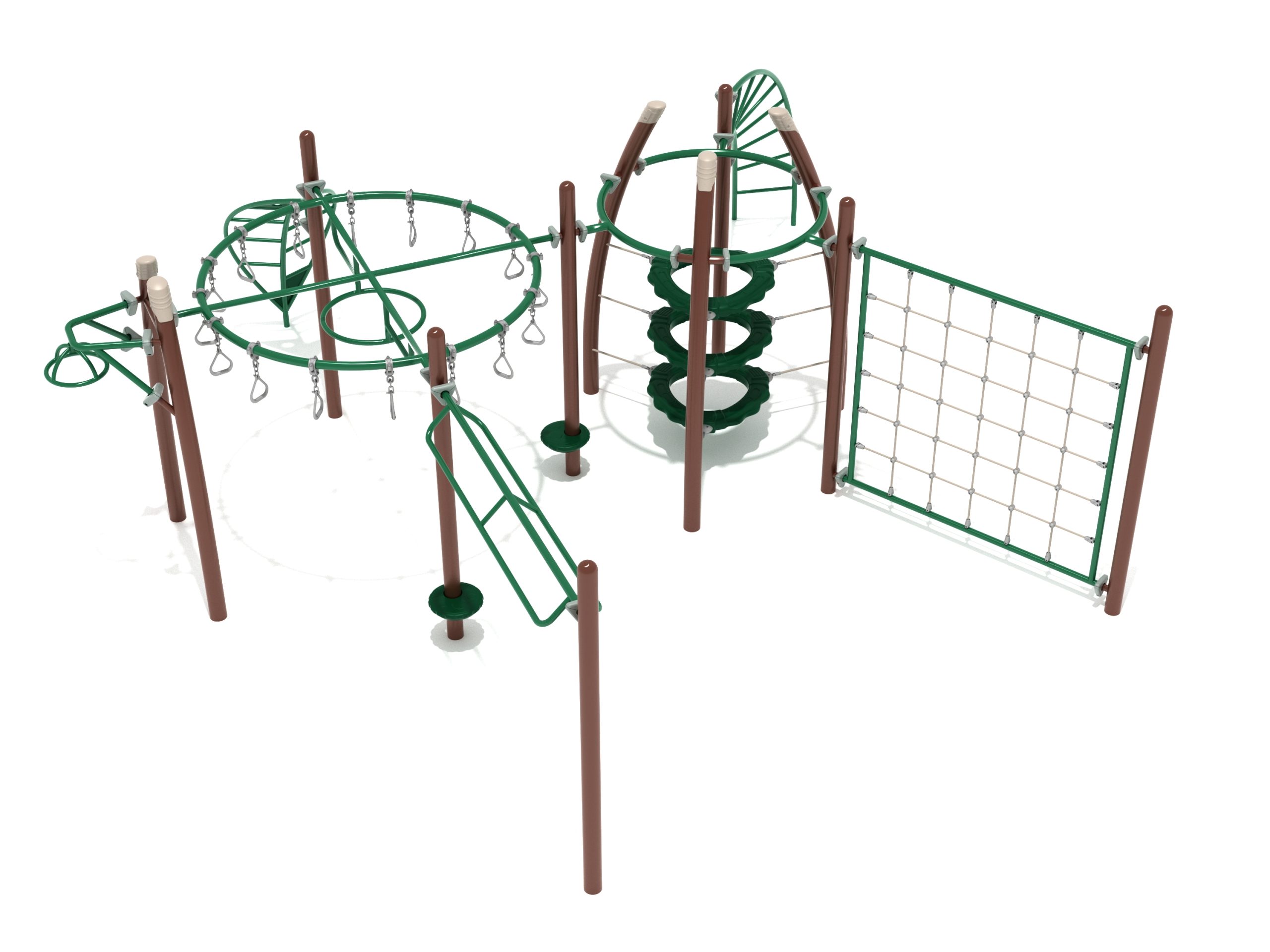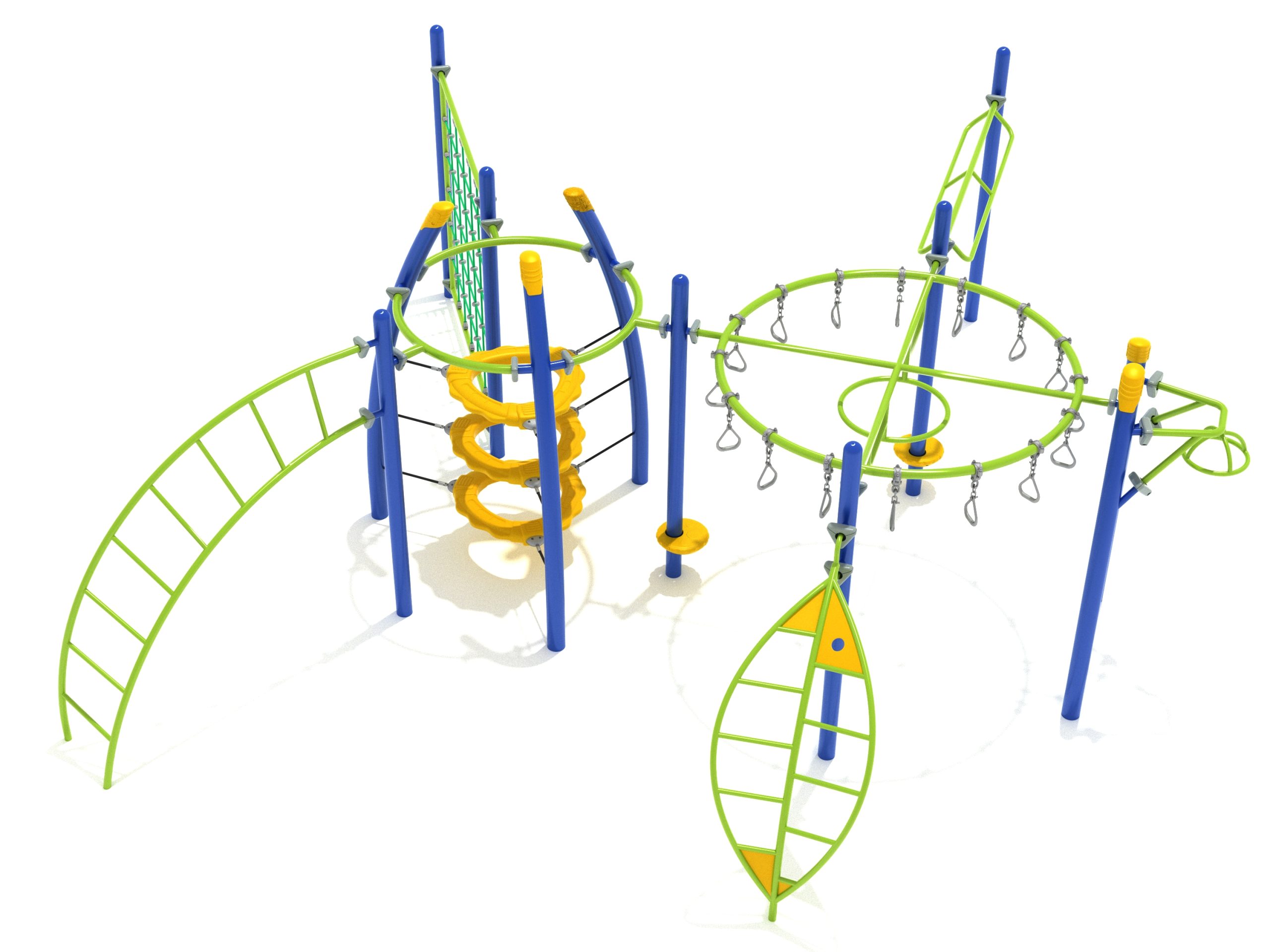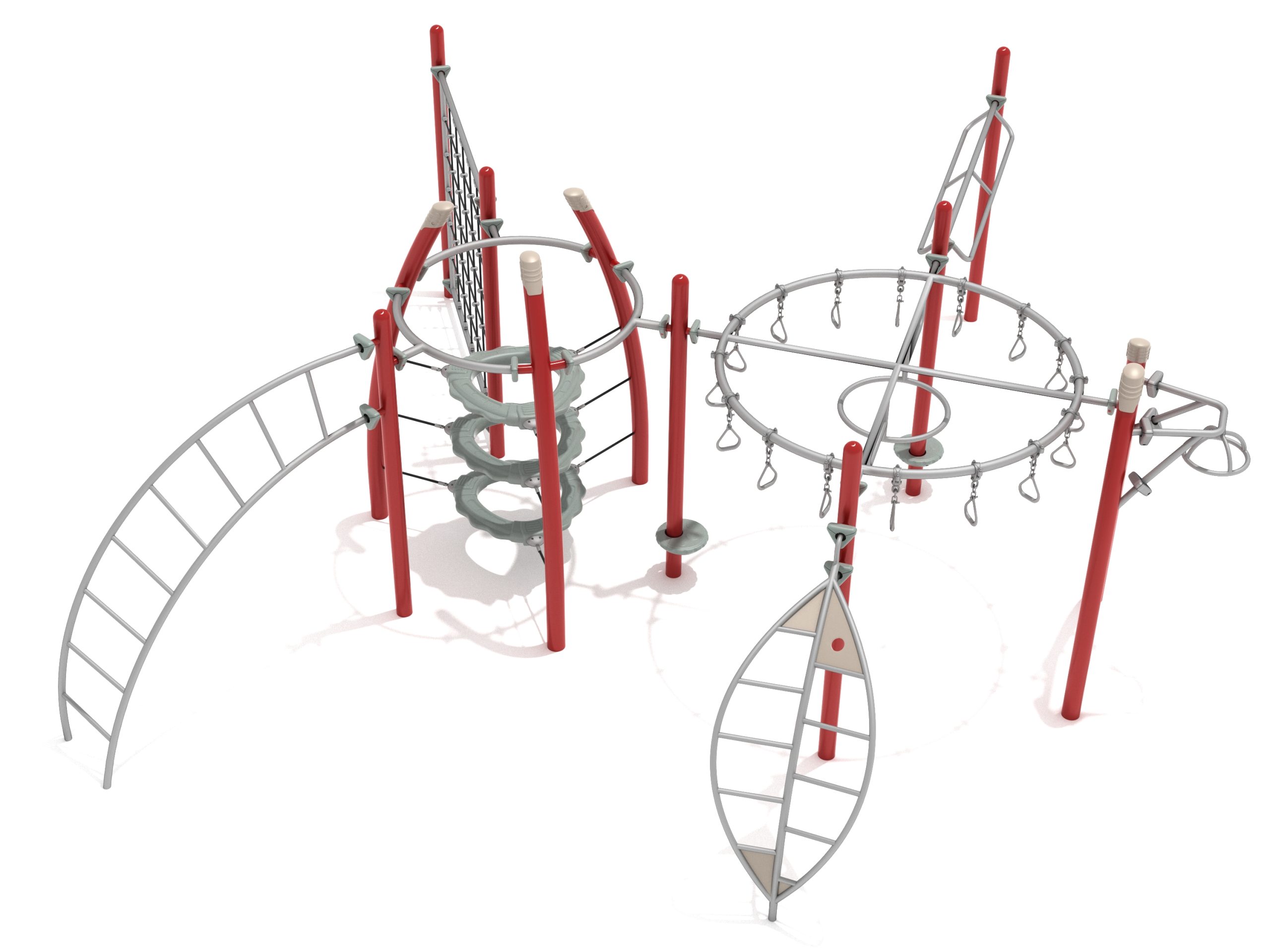 Kids will be thrilled at the opportunity to climb, swing and scramble their way across the multiple features of Gunnison Gorge which includes an Overhead Spinner to twist them round and round and a Leaf Climber that gives the best view of the playground from the top. The main attraction will of course be the Circle Overhead Swinging Ring Ladder and only the most determined children will be able to work their way around the 16 rings. Additional challenge can be found on the Overhead Parallel Bar Climber that requires children to swing in a straight line, hand to hand, like an orangutan in the jungles of Borneo. More monkey fun comes from a Tower of Rings which requires strategy to climb, and this is flanked by a tall Net Climber that can be used on both sides at the same time, and a futuristic Twisted Rung Ladder. With all of these features combined into one unit, the Gunnison Gorge is sure to bring many hours of entertainment that will ensure children sleep well after a day playing on it.