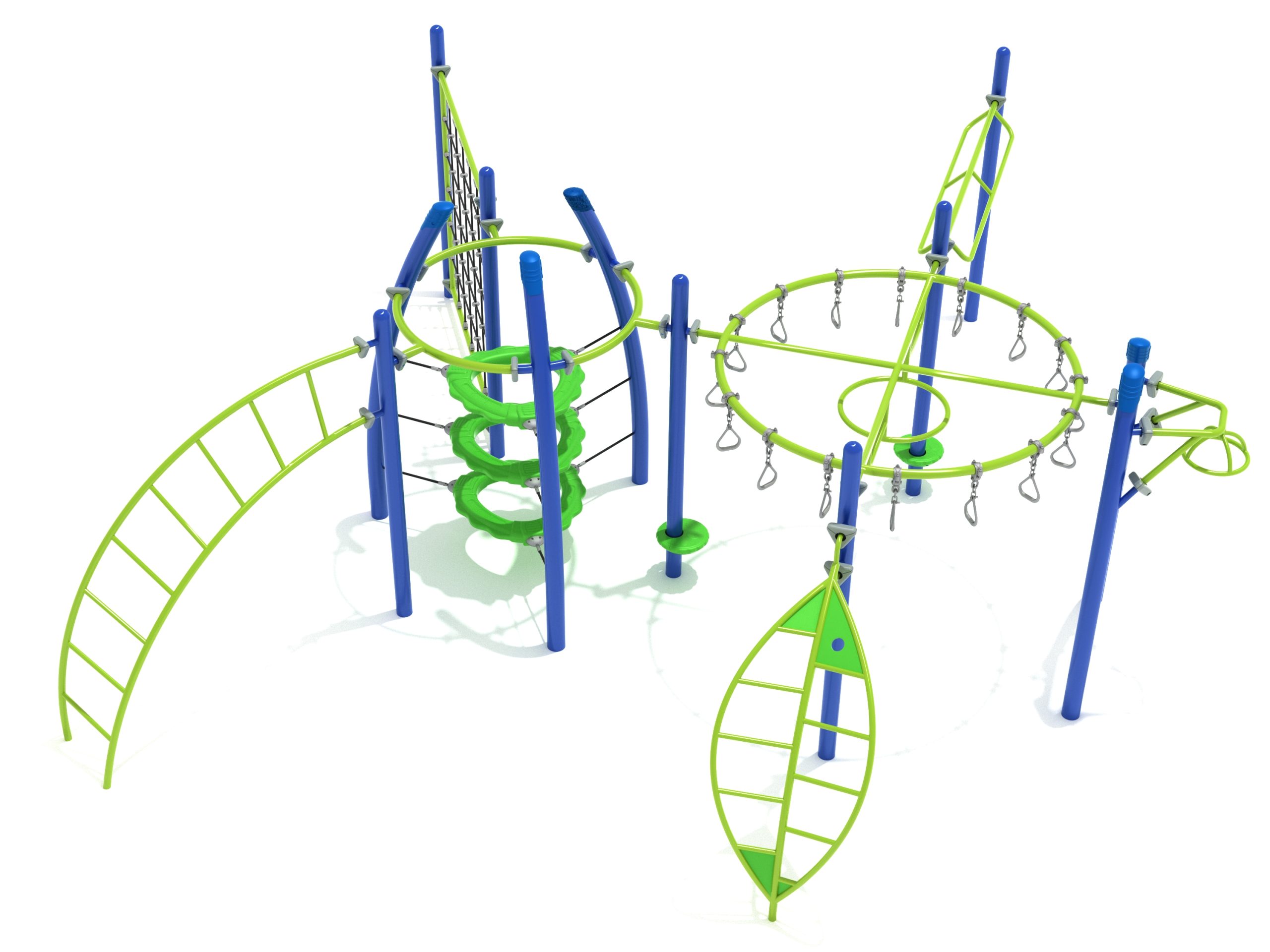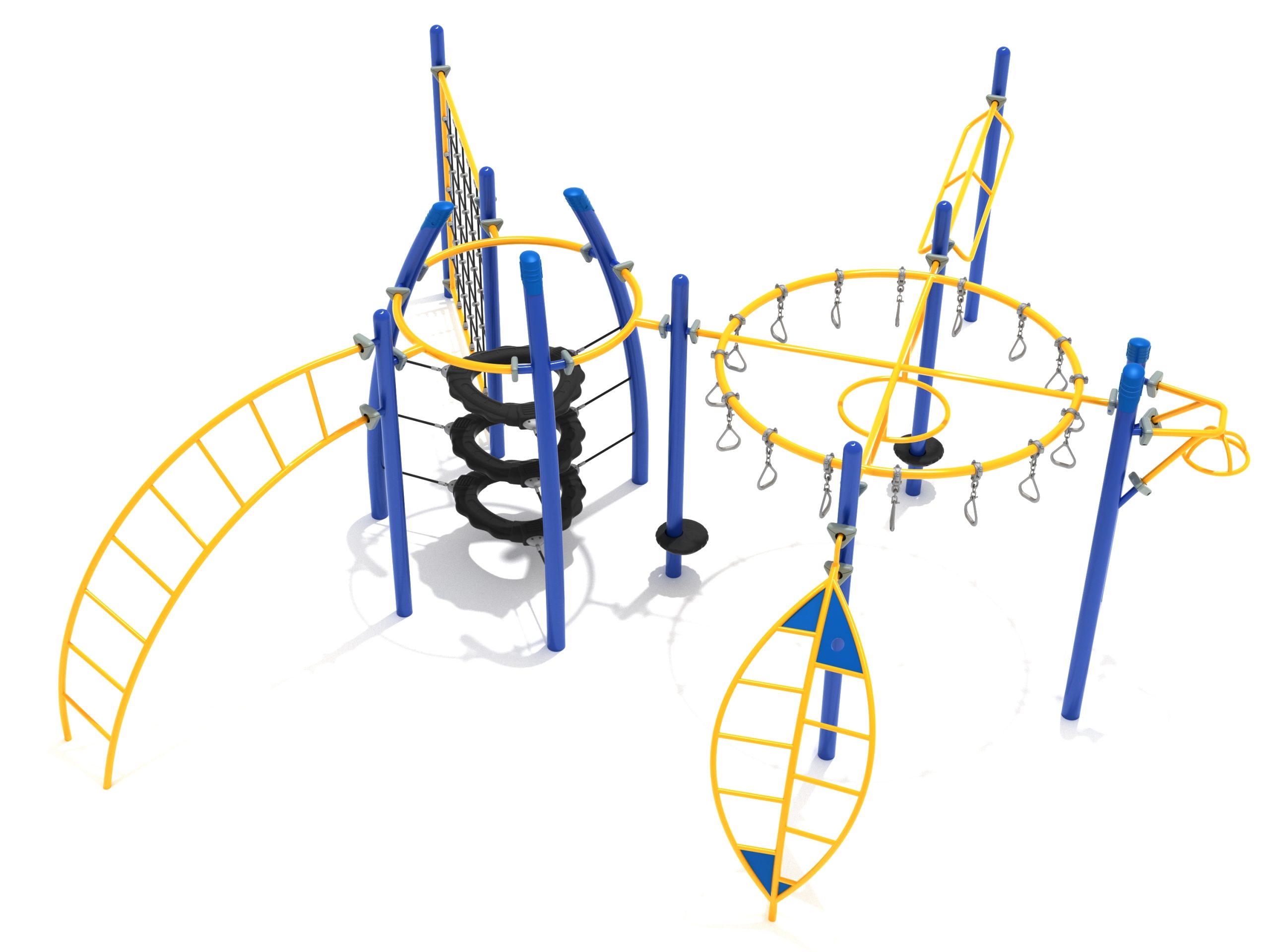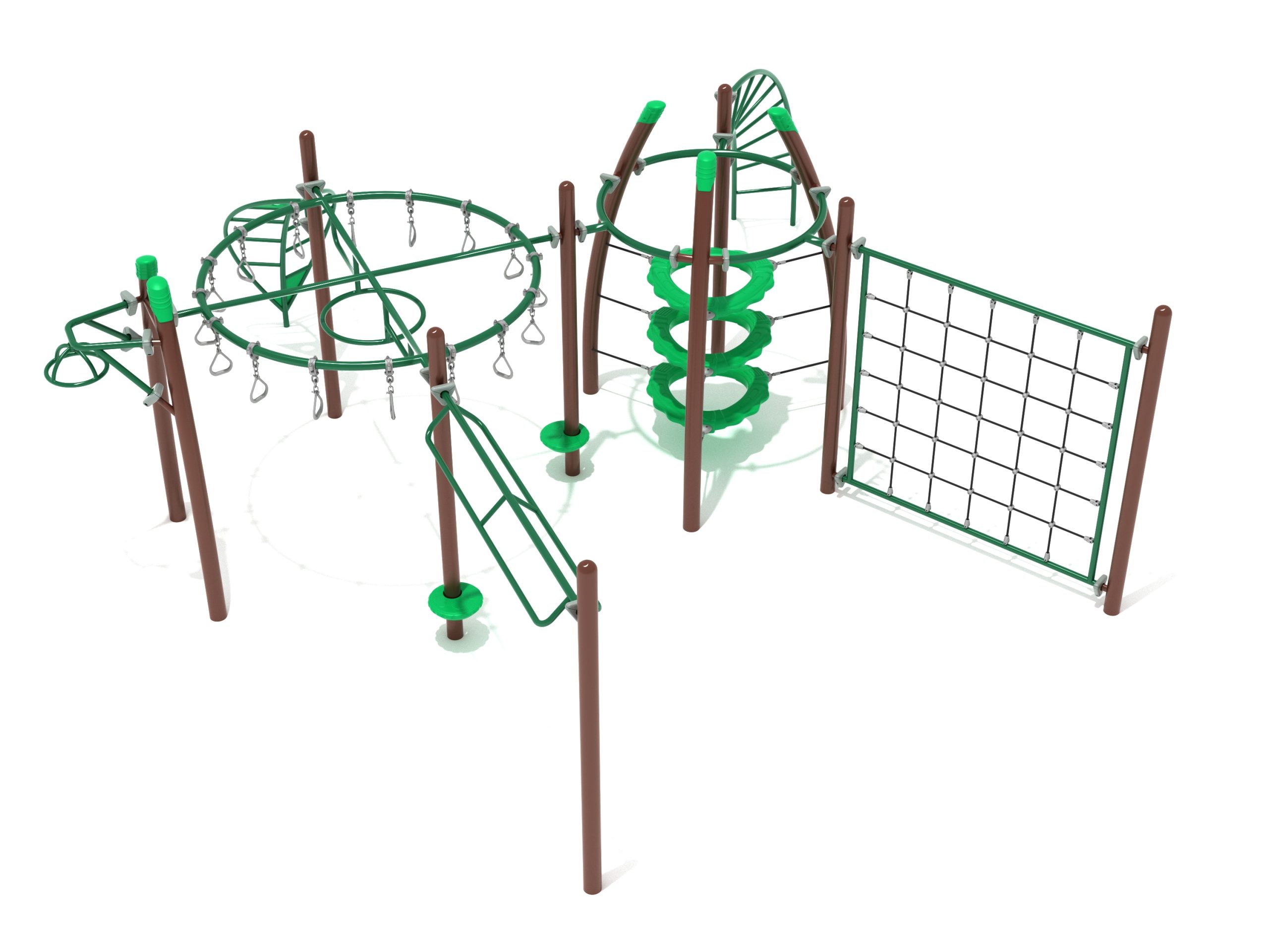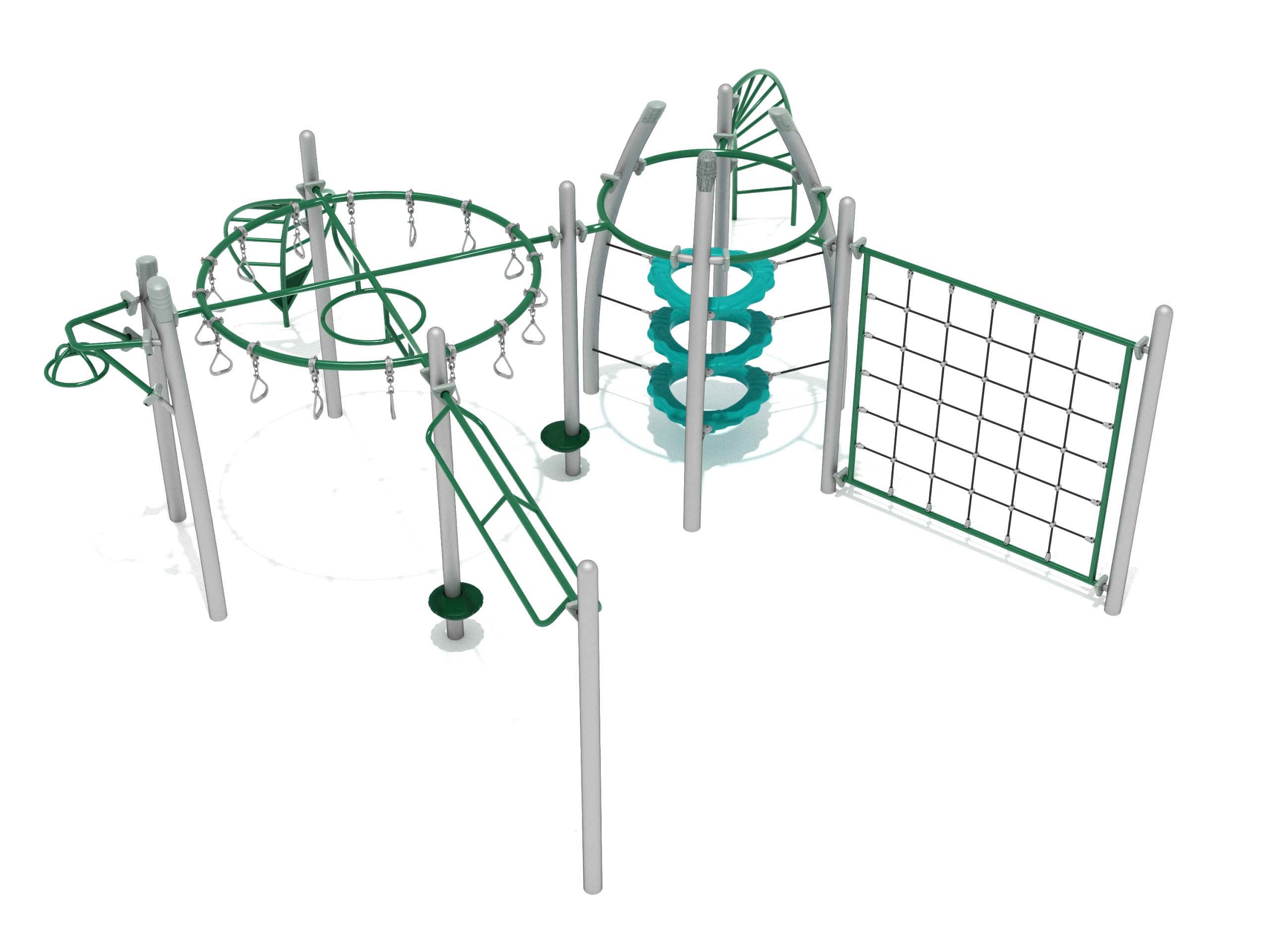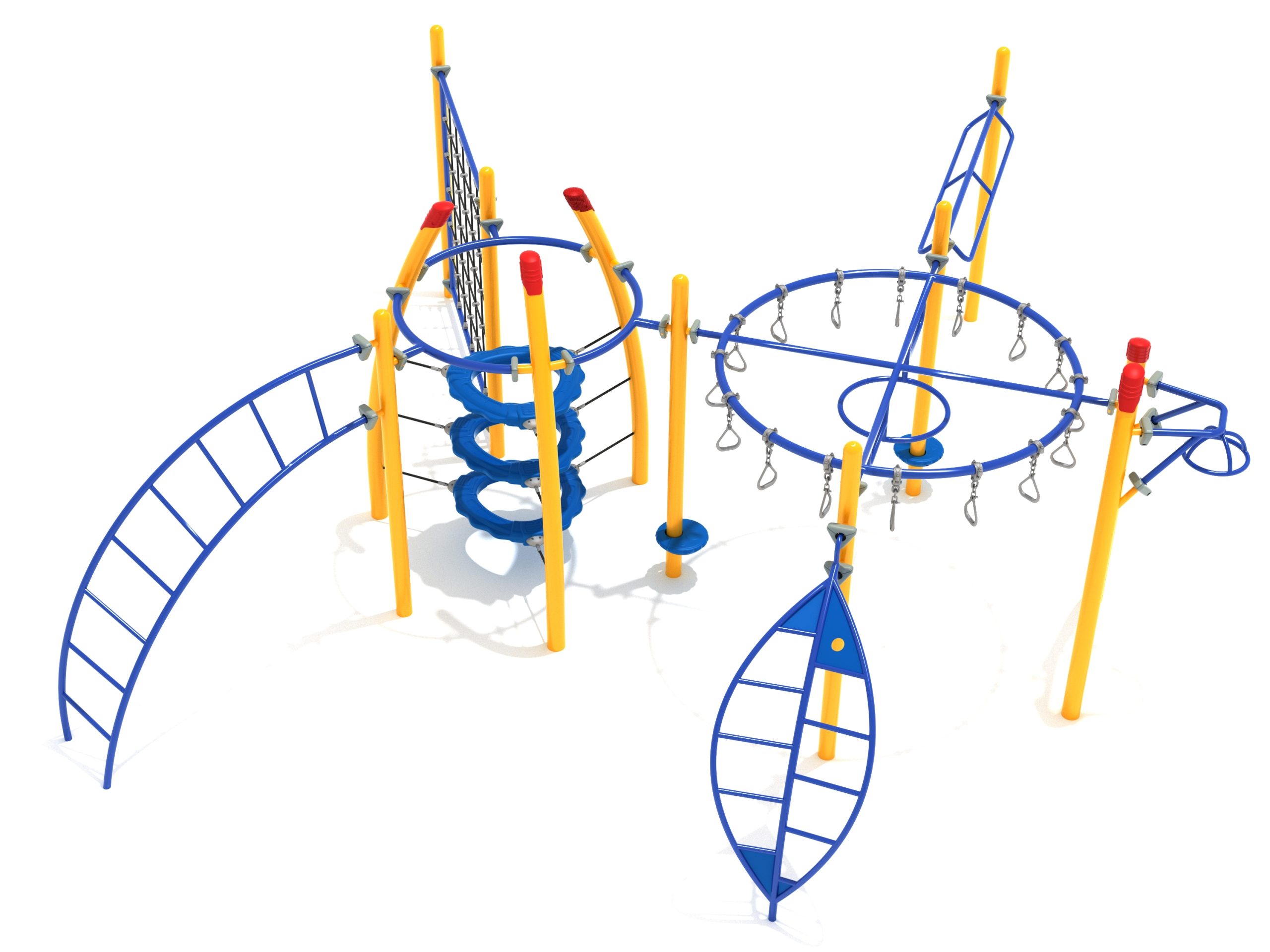 Kids will be thrilled at the opportunity to climb, swing and scramble their way across the multiple features of Gunnison Gorge which includes an Overhead Spinner to twist them round and round and a Leaf Climber that gives the best view of the playground from the top. The main attraction will of course be the Circle Overhead Swinging Ring Ladder and only the most determined children will be able to work their way around the 16 rings. Additional challenge can be found on the Overhead Parallel Bar Climber that requires children to swing in a straight line, hand to hand, like an orangutan in the jungles of Borneo. More monkey fun comes from a Tower of Rings which requires strategy to climb, and this is flanked by a tall Net Climber that can be used on both sides at the same time, and a futuristic Twisted Rung Ladder. With all of these features combined into one unit, the Gunnison Gorge is sure to bring many hours of entertainment that will ensure children sleep well after a day playing on it.