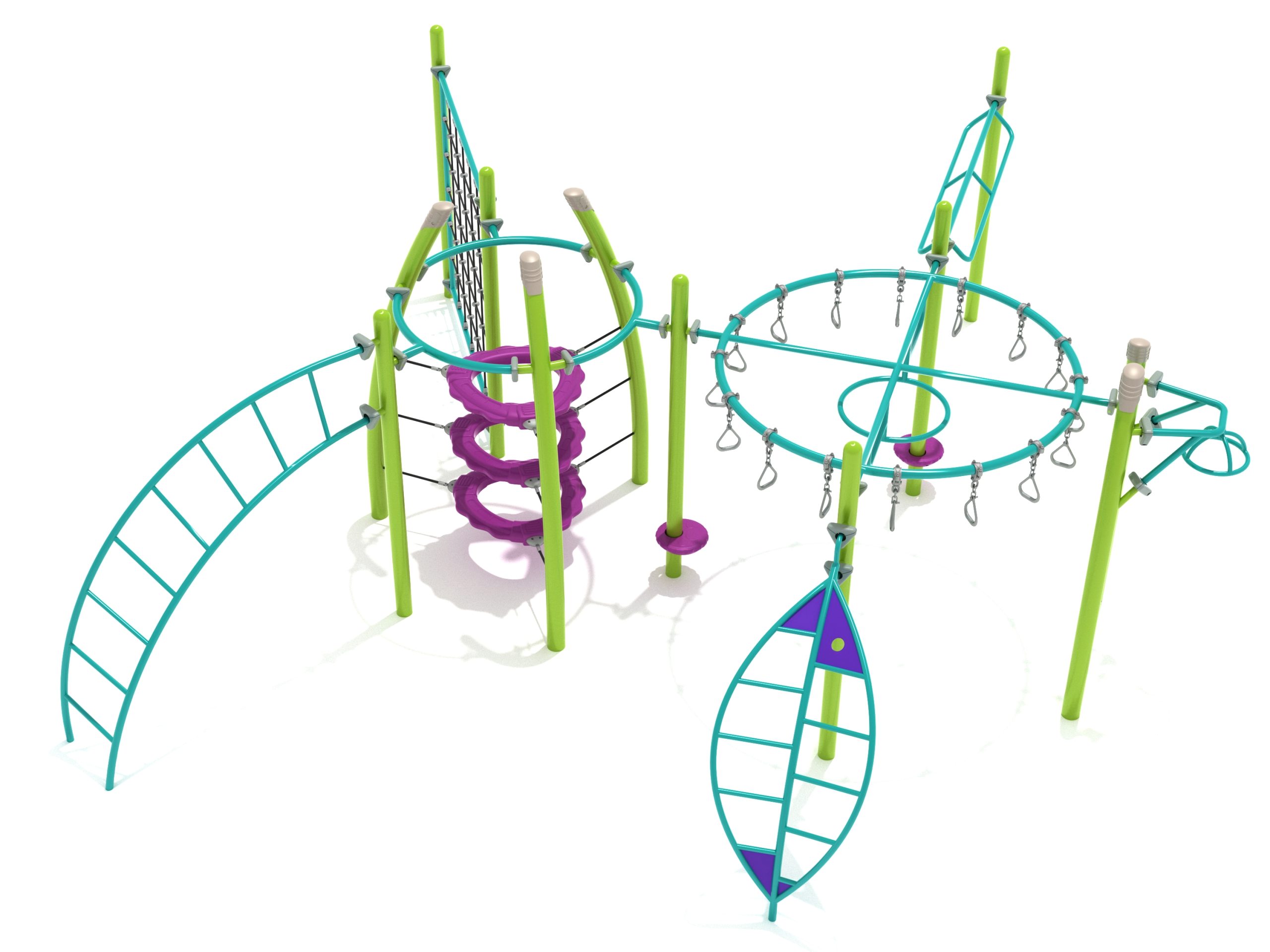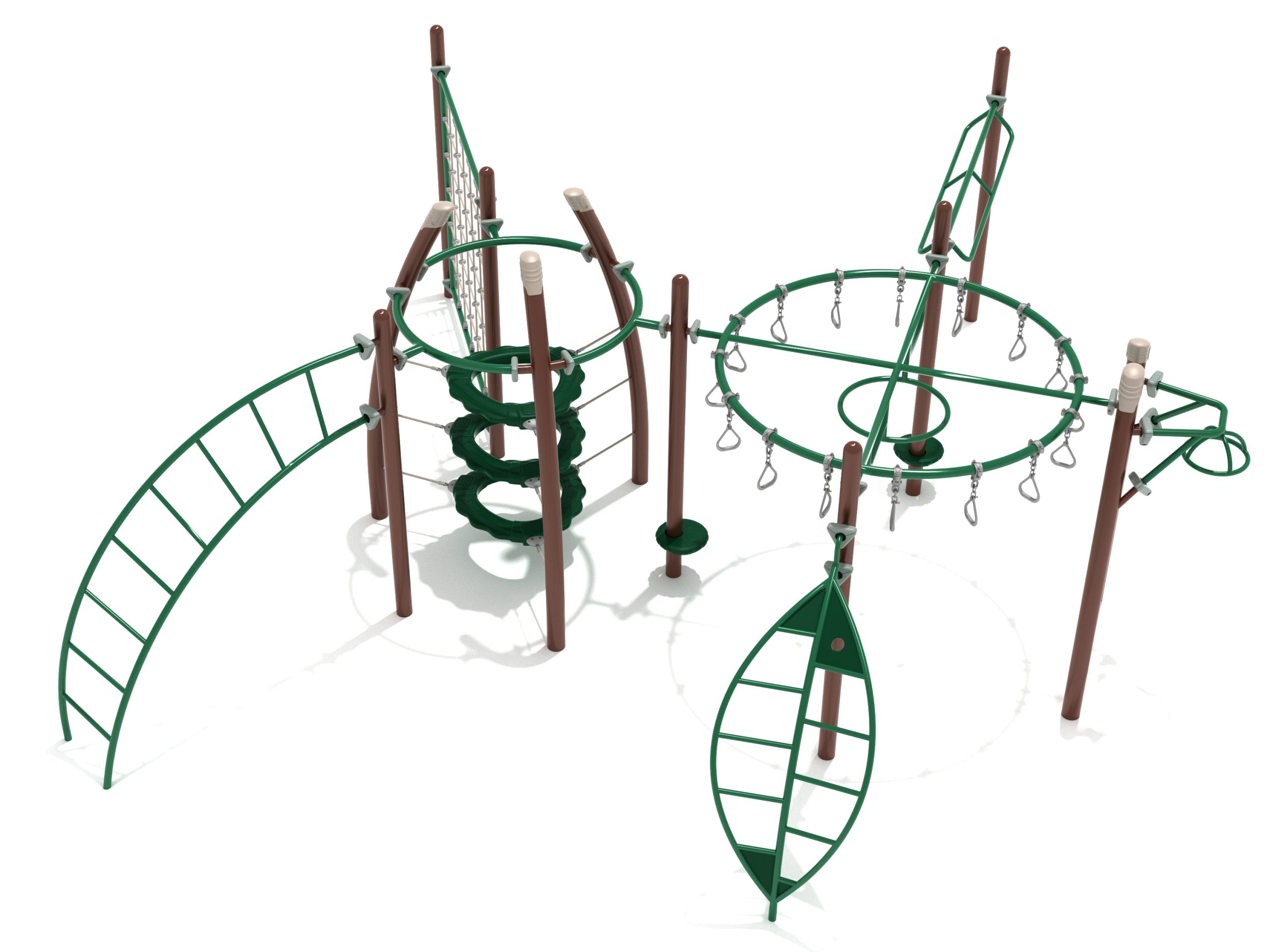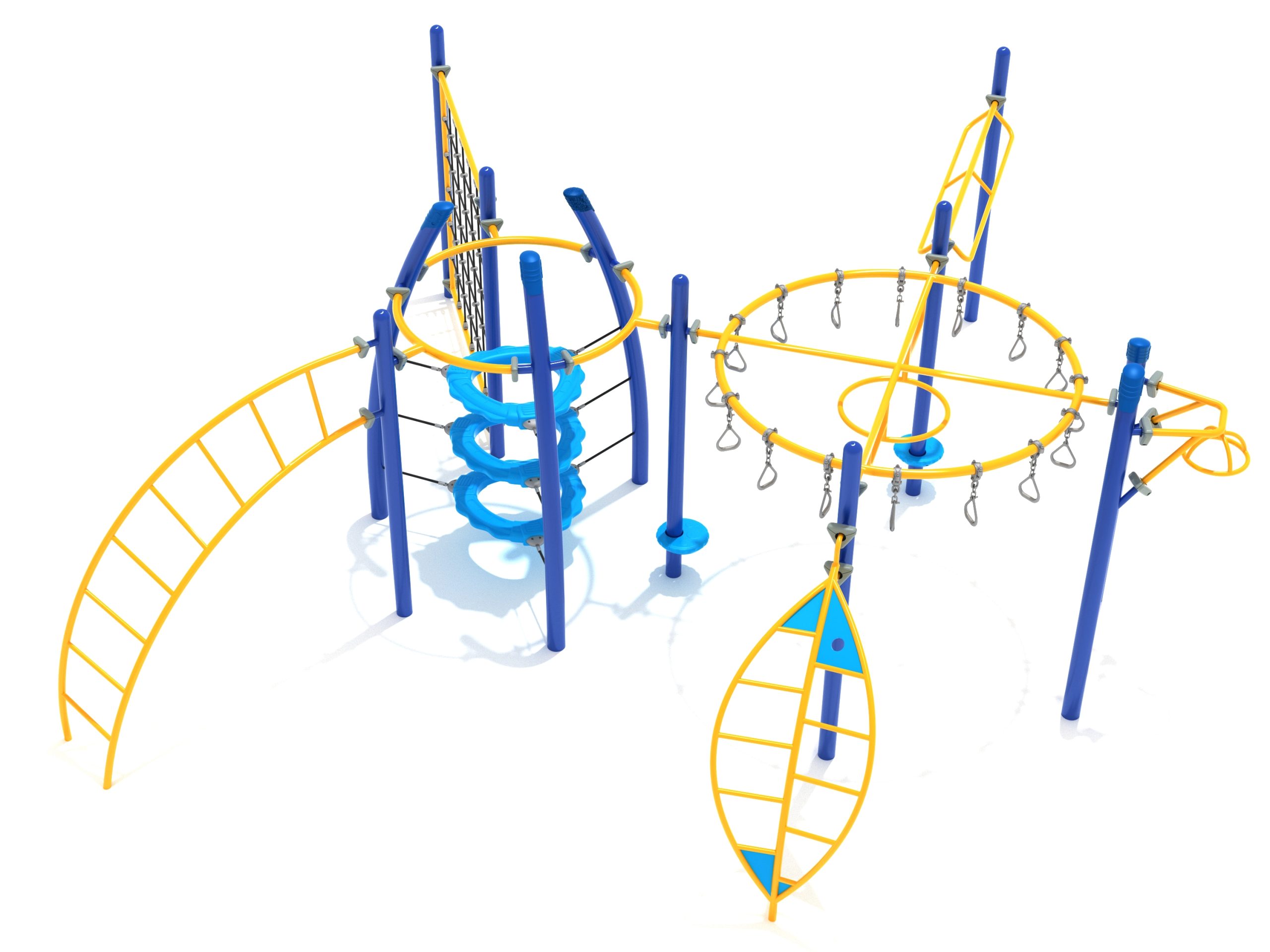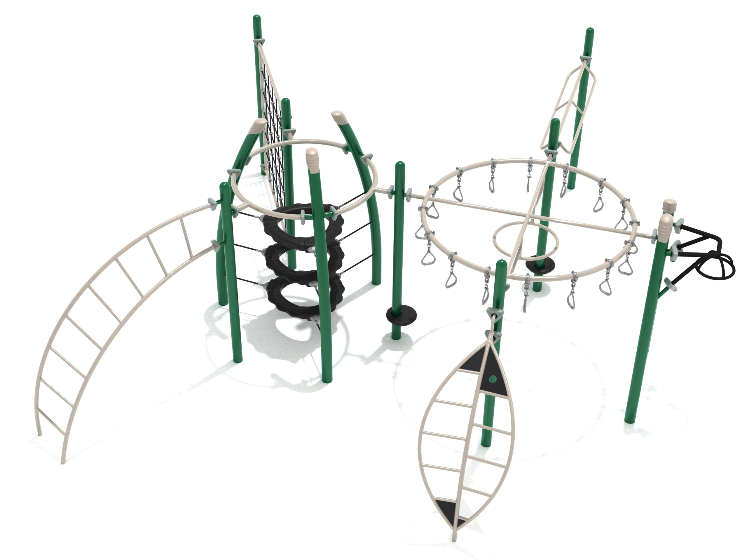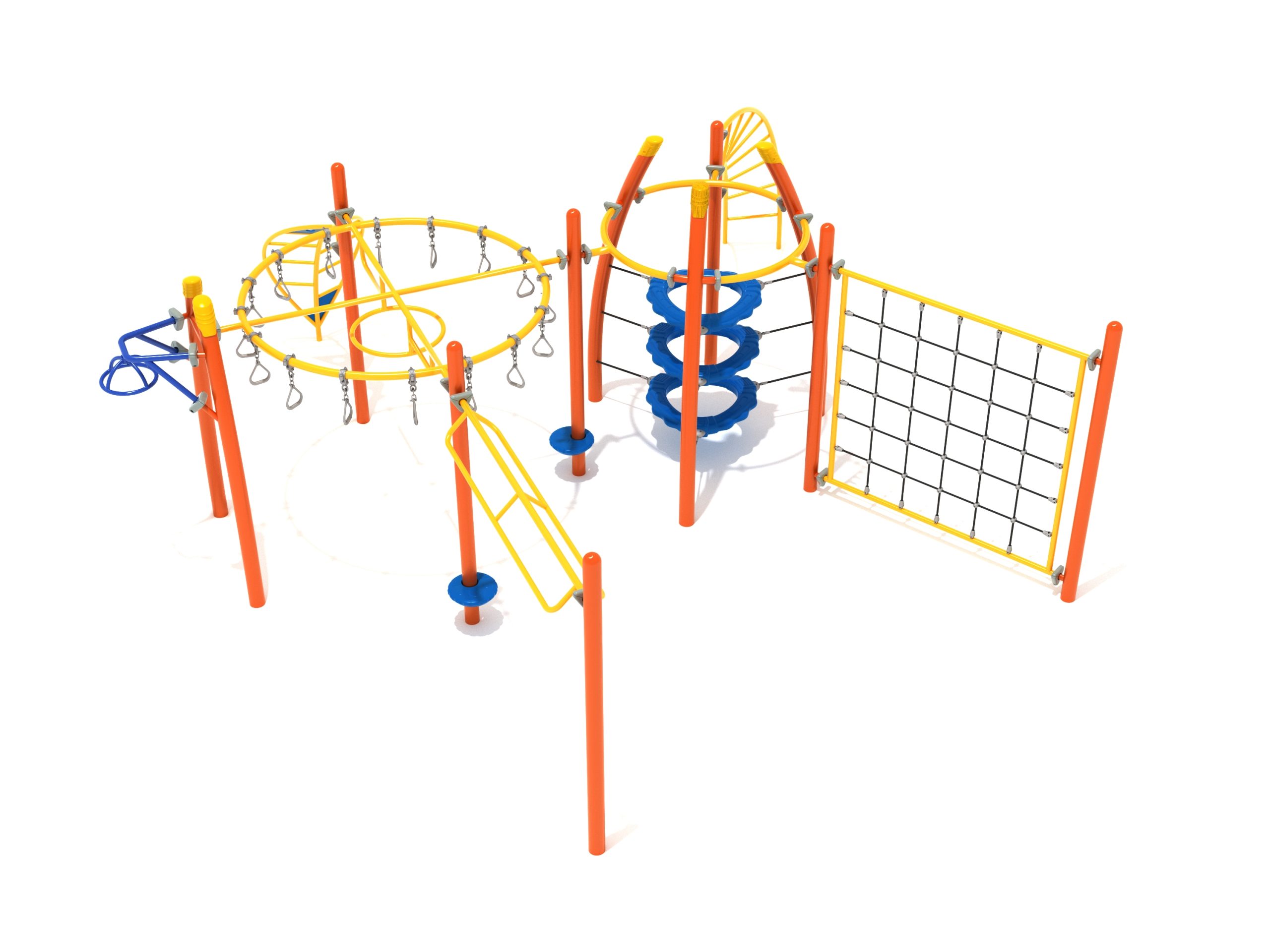 Kids will be thrilled at the opportunity to climb, swing and scramble their way across the multiple features of Gunnison Gorge which includes an Overhead Spinner to twist them round and round and a Leaf Climber that gives the best view of the playground from the top. The main attraction will of course be the Circle Overhead Swinging Ring Ladder and only the most determined children will be able to work their way around the 16 rings. Additional challenge can be found on the Overhead Parallel Bar Climber that requires children to swing in a straight line, hand to hand, like an orangutan in the jungles of Borneo. More monkey fun comes from a Tower of Rings which requires strategy to climb, and this is flanked by a tall Net Climber that can be used on both sides at the same time, and a futuristic Twisted Rung Ladder. With all of these features combined into one unit, the Gunnison Gorge is sure to bring many hours of entertainment that will ensure children sleep well after a day playing on it.