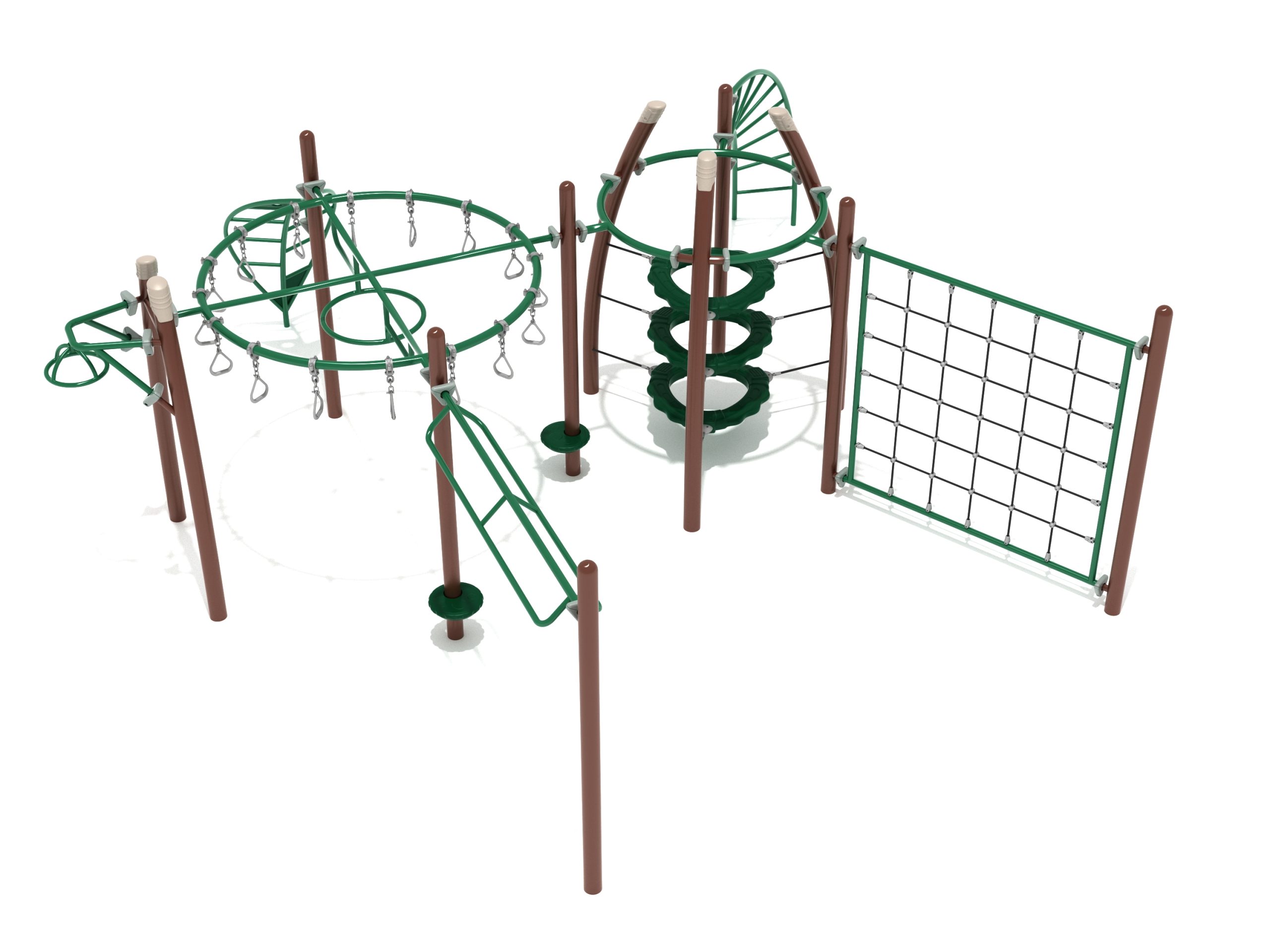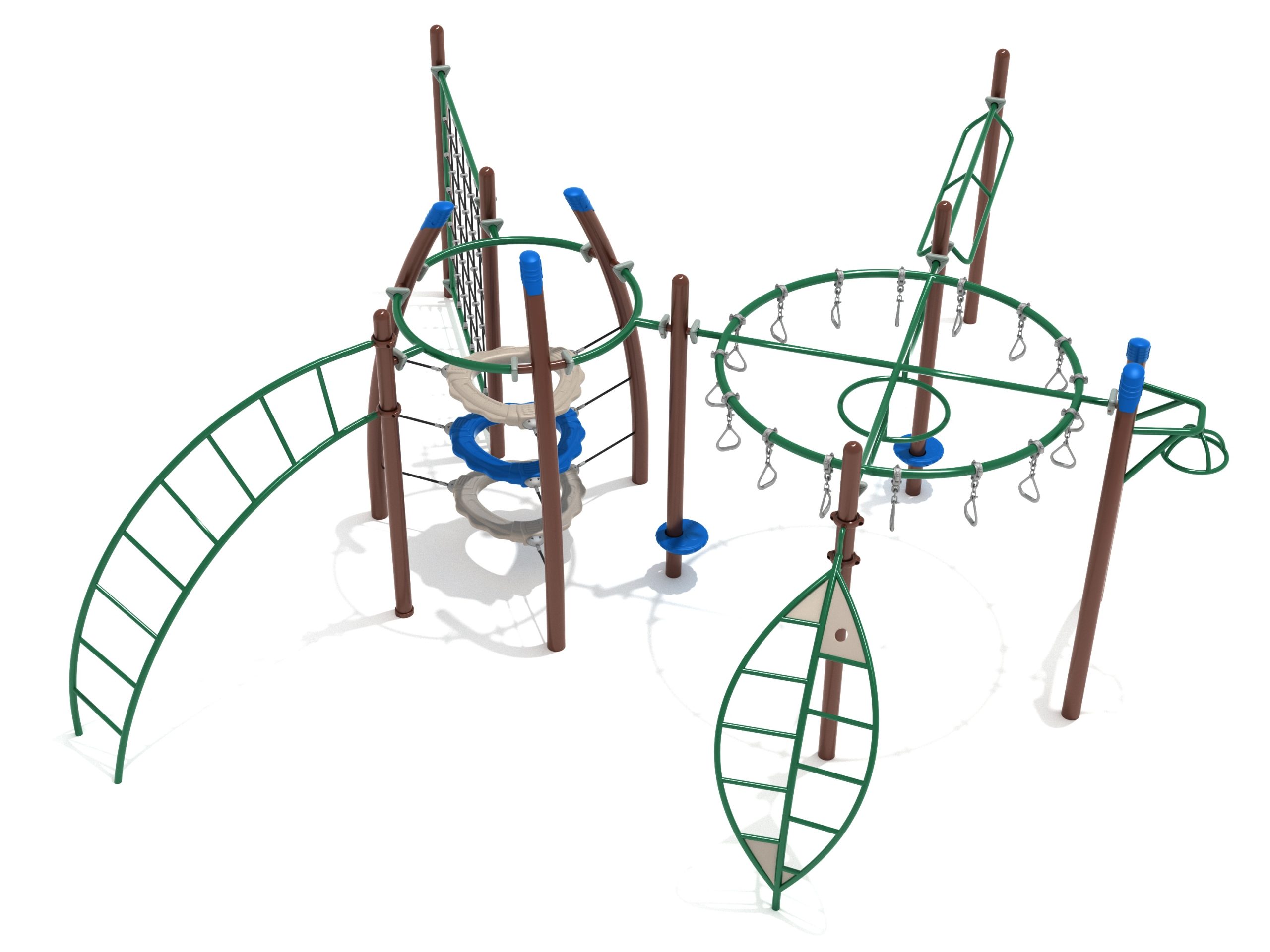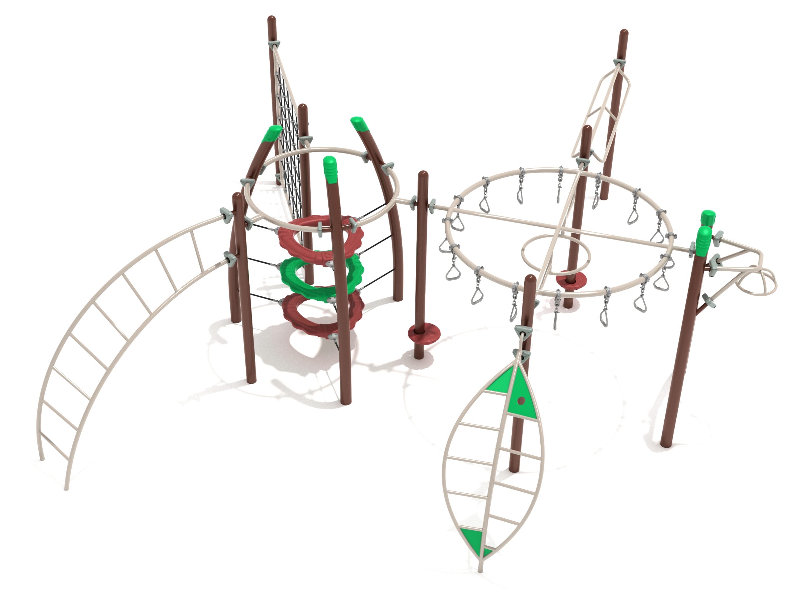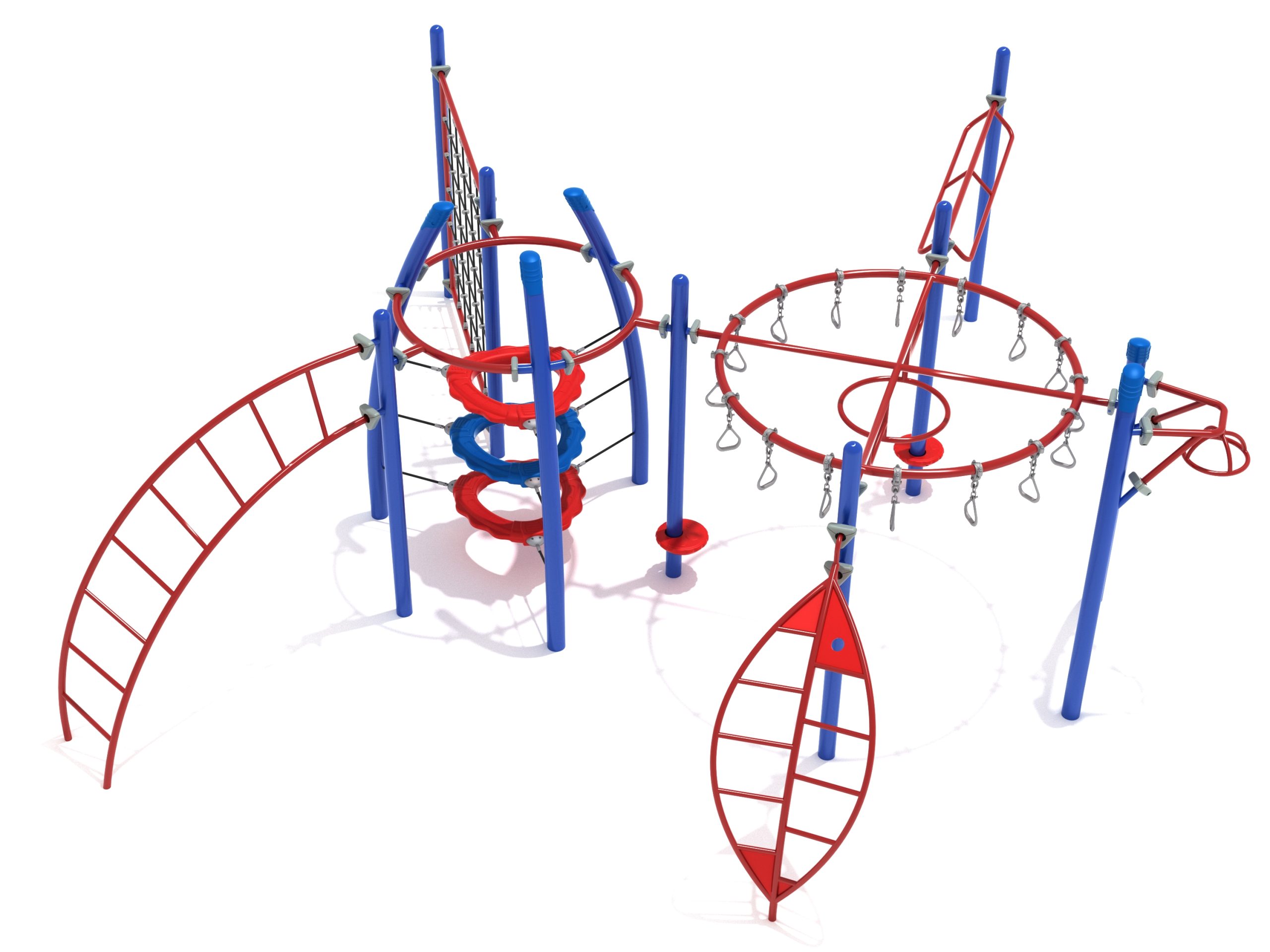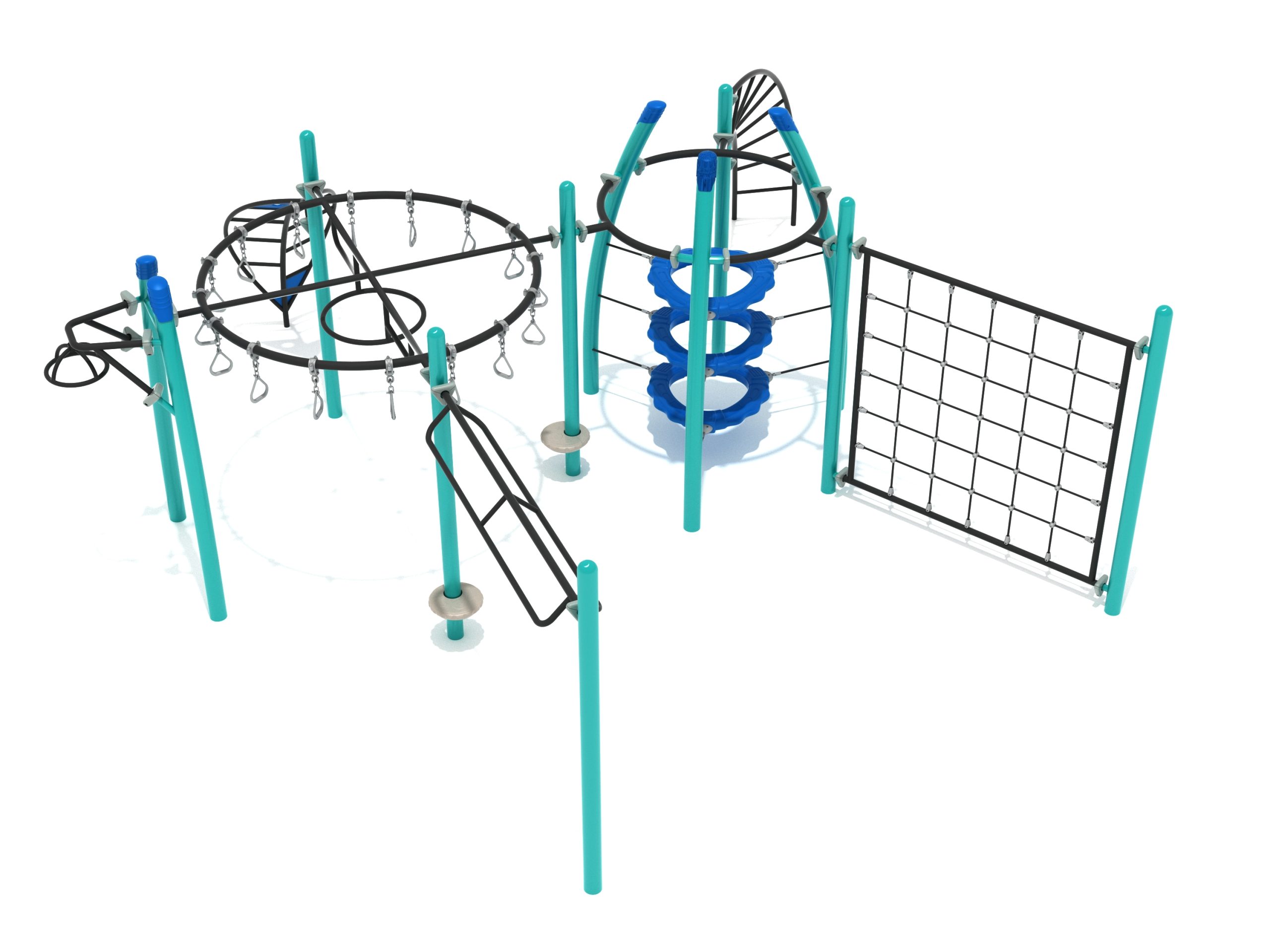 Kids will be thrilled at the opportunity to climb, swing and scramble their way across the multiple features of Gunnison Gorge which includes an Overhead Spinner to twist them round and round and a Leaf Climber that gives the best view of the playground from the top. The main attraction will of course be the Circle Overhead Swinging Ring Ladder and only the most determined children will be able to work their way around the 16 rings. Additional challenge can be found on the Overhead Parallel Bar Climber that requires children to swing in a straight line, hand to hand, like an orangutan in the jungles of Borneo. More monkey fun comes from a Tower of Rings which requires strategy to climb, and this is flanked by a tall Net Climber that can be used on both sides at the same time, and a futuristic Twisted Rung Ladder. With all of these features combined into one unit, the Gunnison Gorge is sure to bring many hours of entertainment that will ensure children sleep well after a day playing on it.