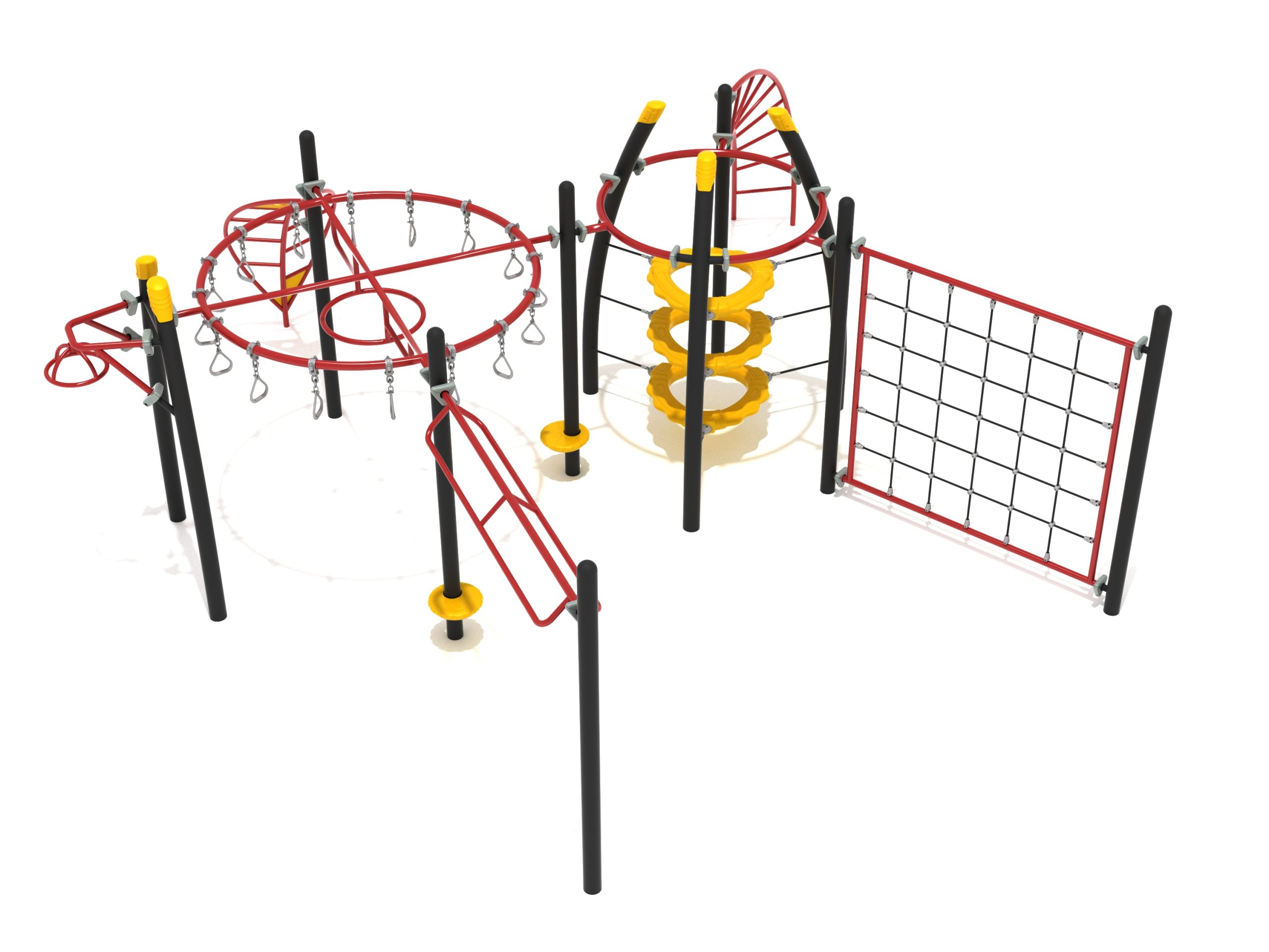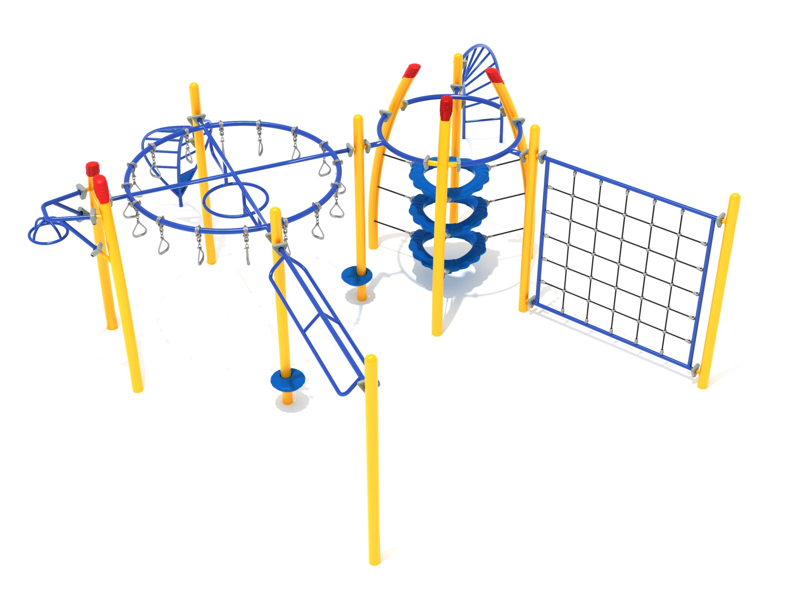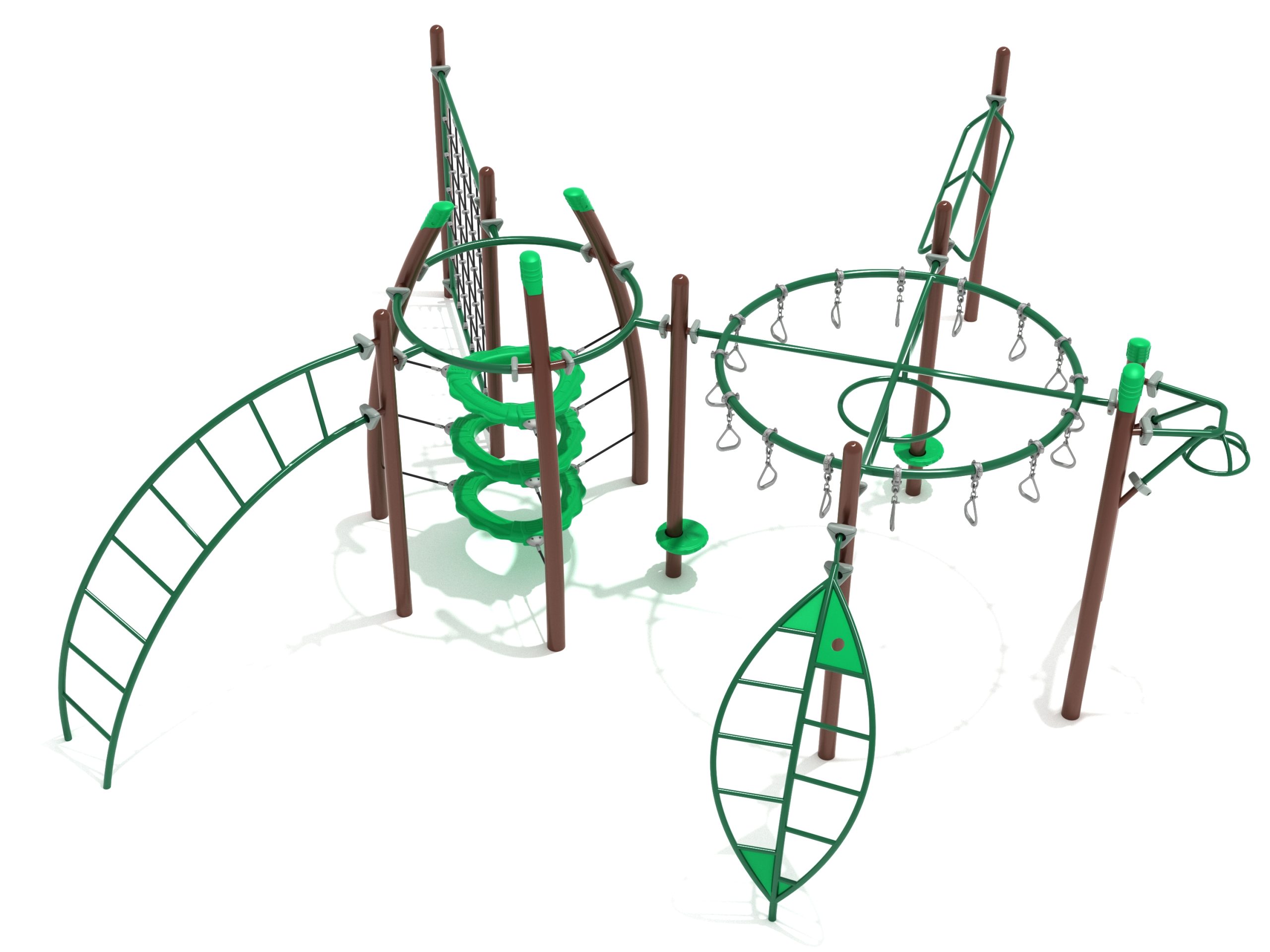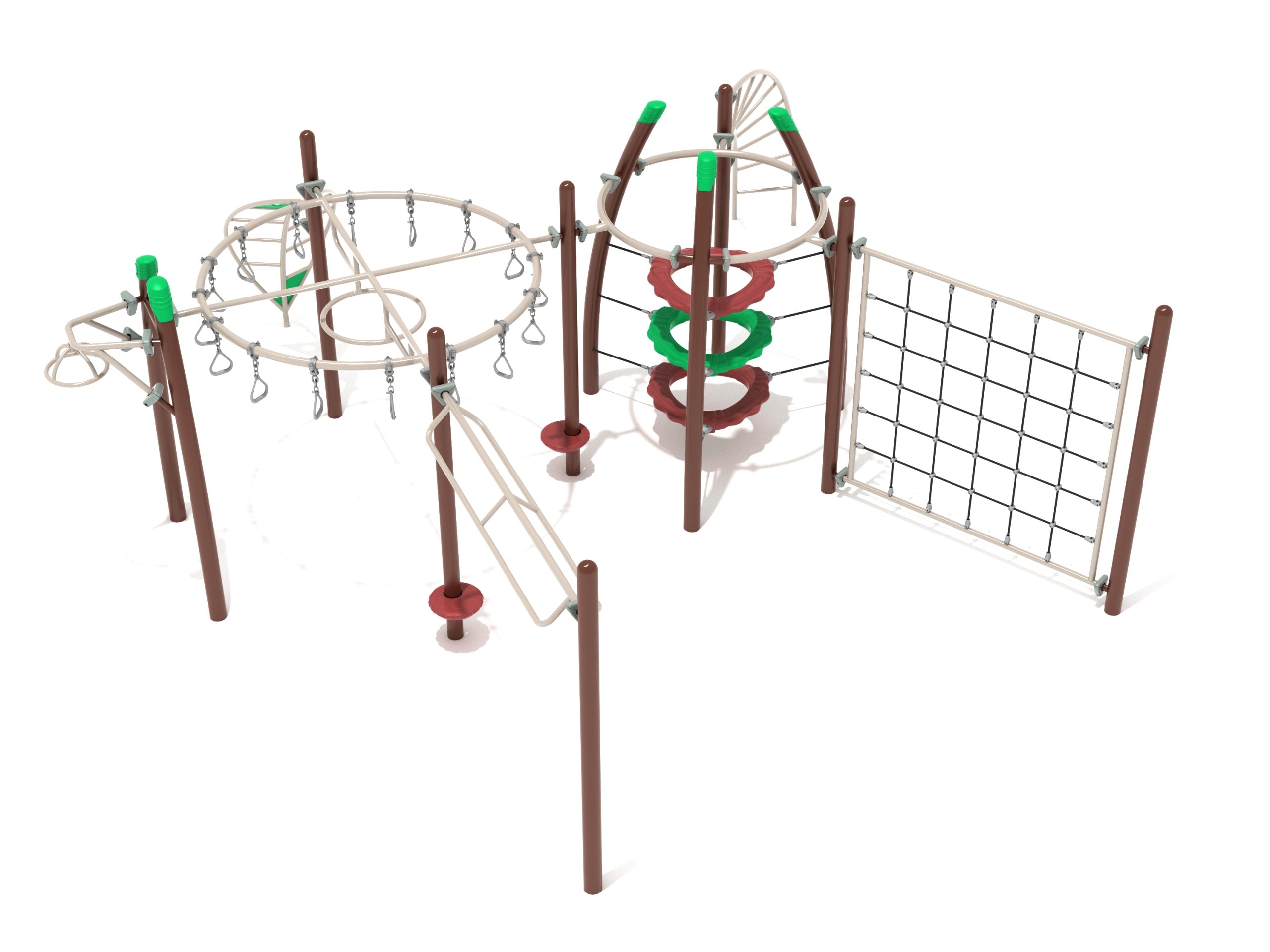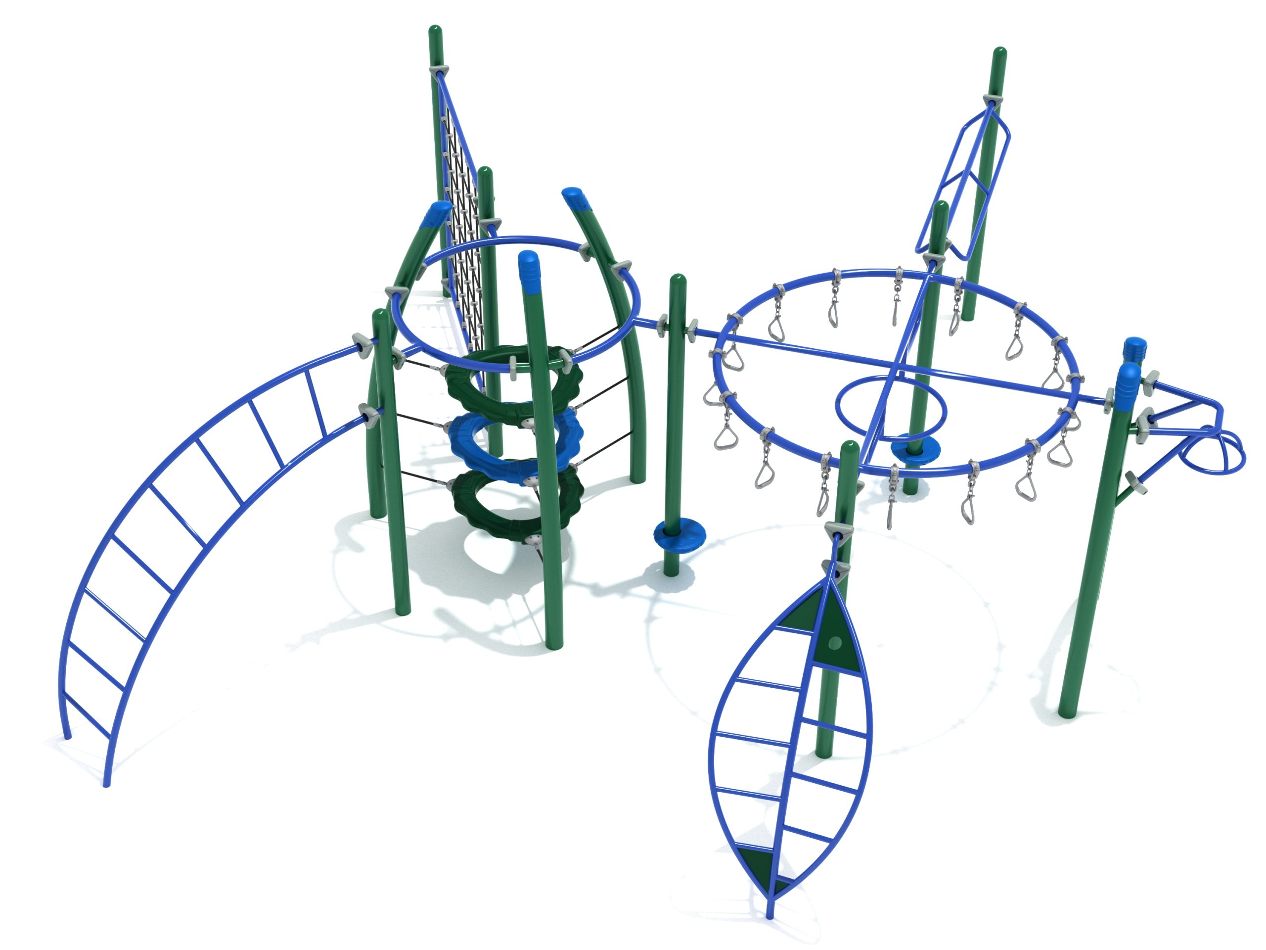 Kids will be thrilled at the opportunity to climb, swing and scramble their way across the multiple features of Gunnison Gorge which includes an Overhead Spinner to twist them round and round and a Leaf Climber that gives the best view of the playground from the top. The main attraction will of course be the Circle Overhead Swinging Ring Ladder and only the most determined children will be able to work their way around the 16 rings. Additional challenge can be found on the Overhead Parallel Bar Climber that requires children to swing in a straight line, hand to hand, like an orangutan in the jungles of Borneo. More monkey fun comes from a Tower of Rings which requires strategy to climb, and this is flanked by a tall Net Climber that can be used on both sides at the same time, and a futuristic Twisted Rung Ladder. With all of these features combined into one unit, the Gunnison Gorge is sure to bring many hours of entertainment that will ensure children sleep well after a day playing on it.