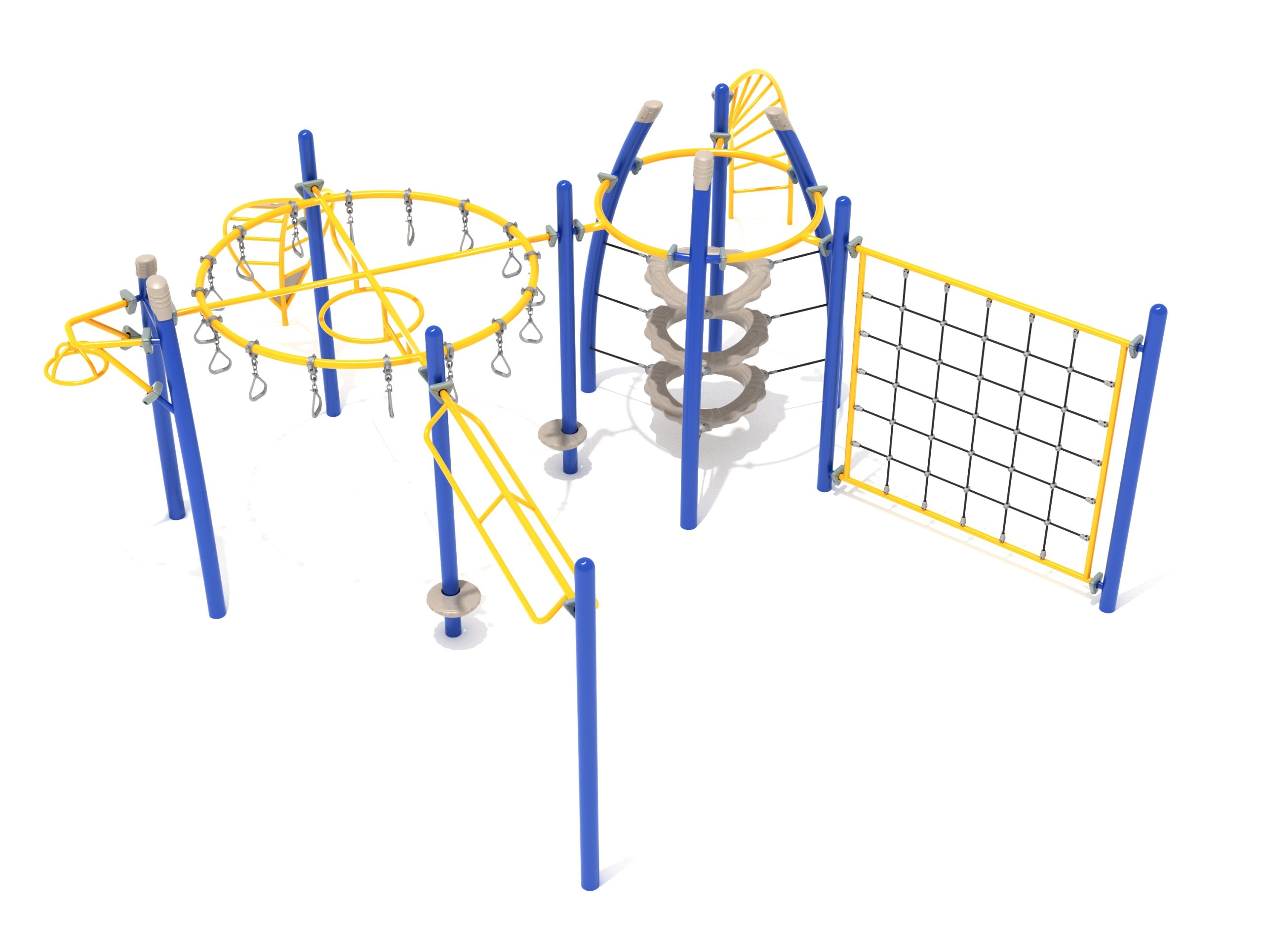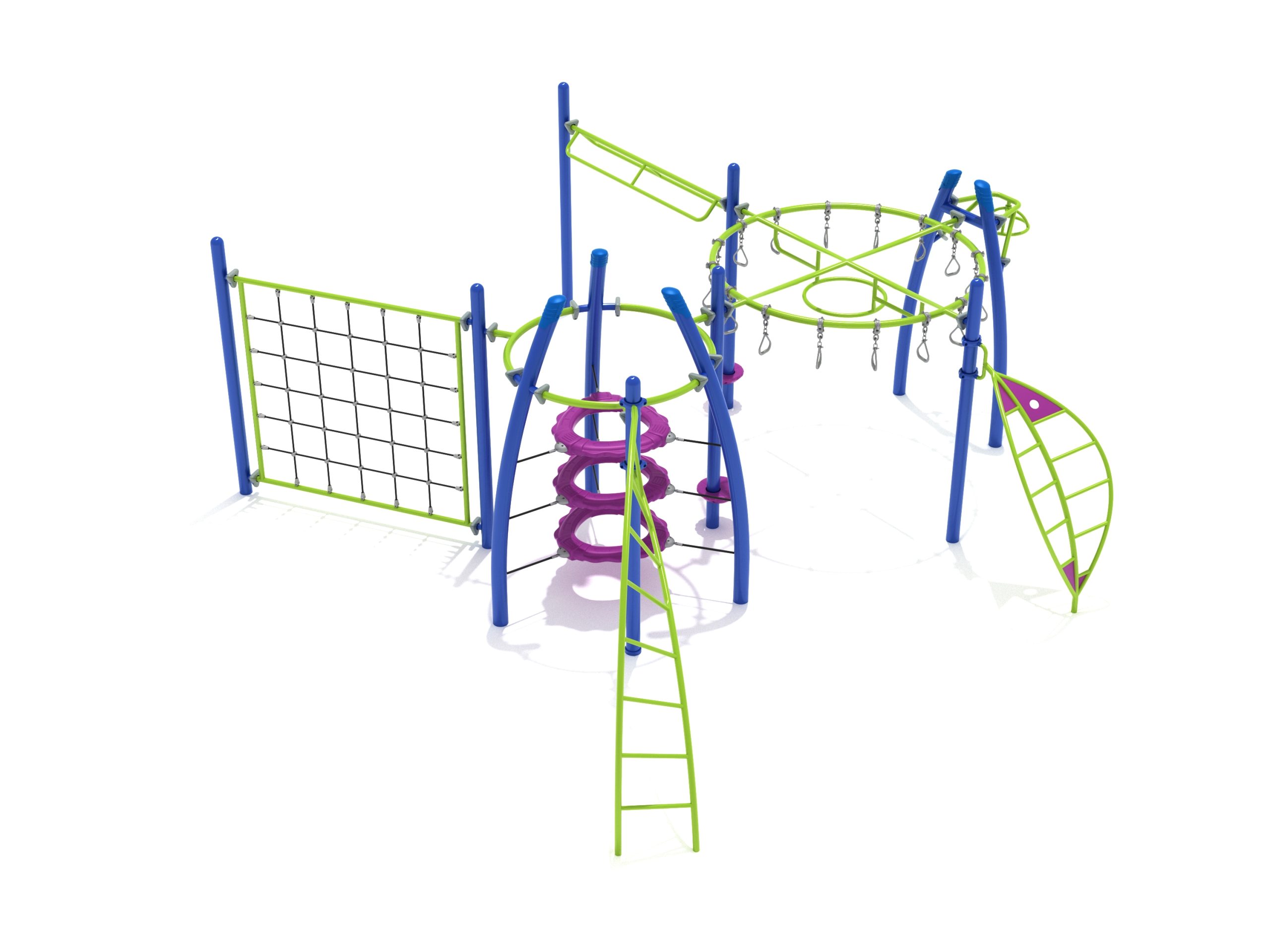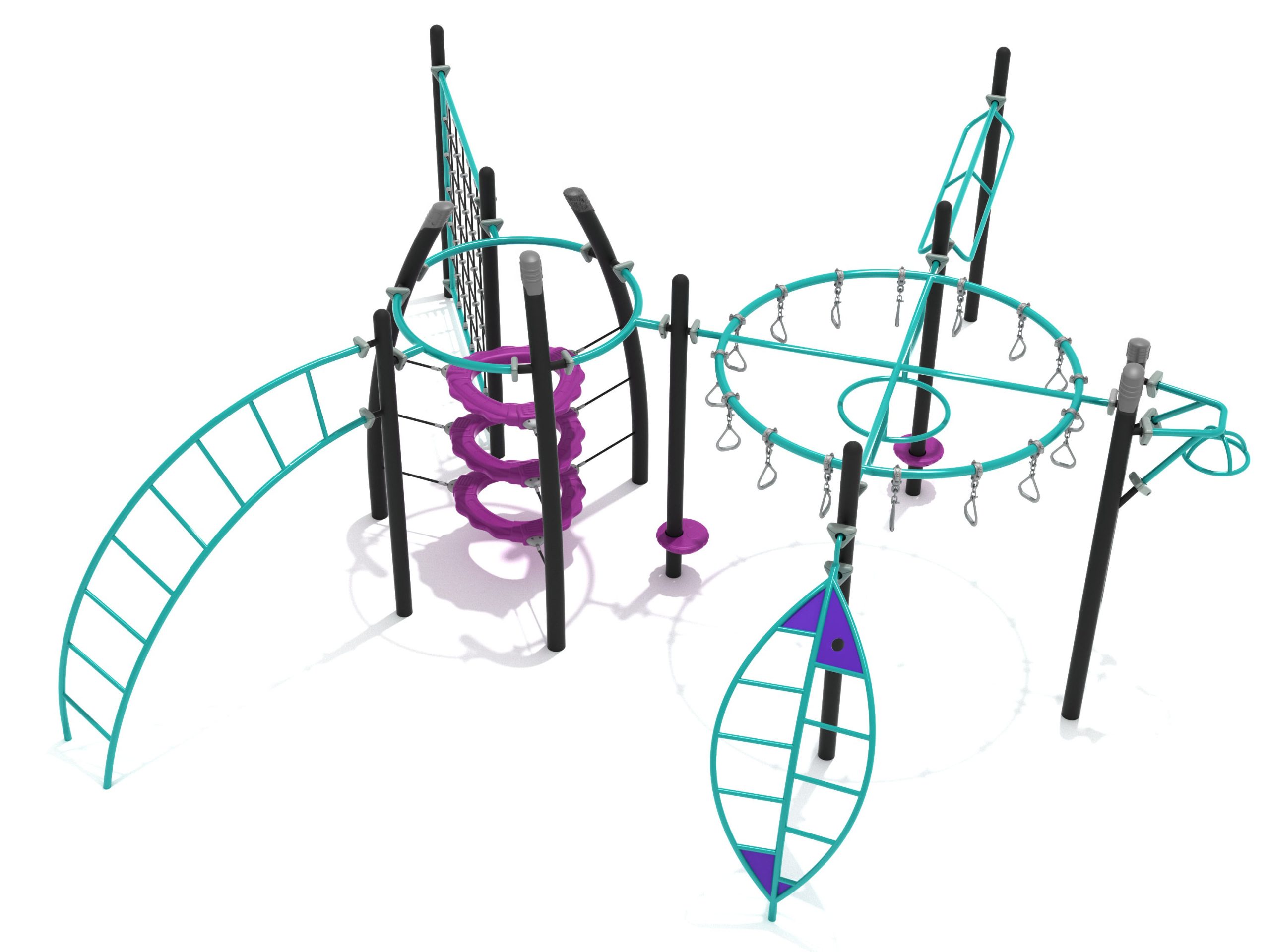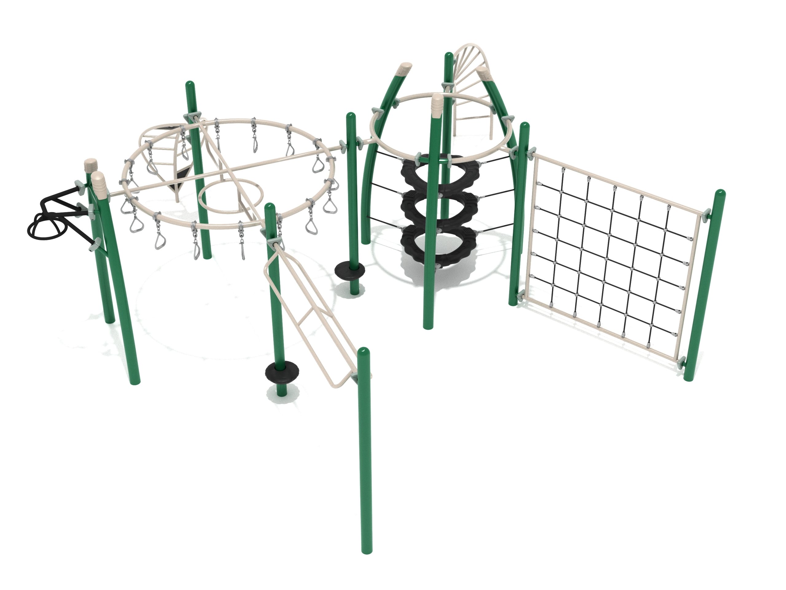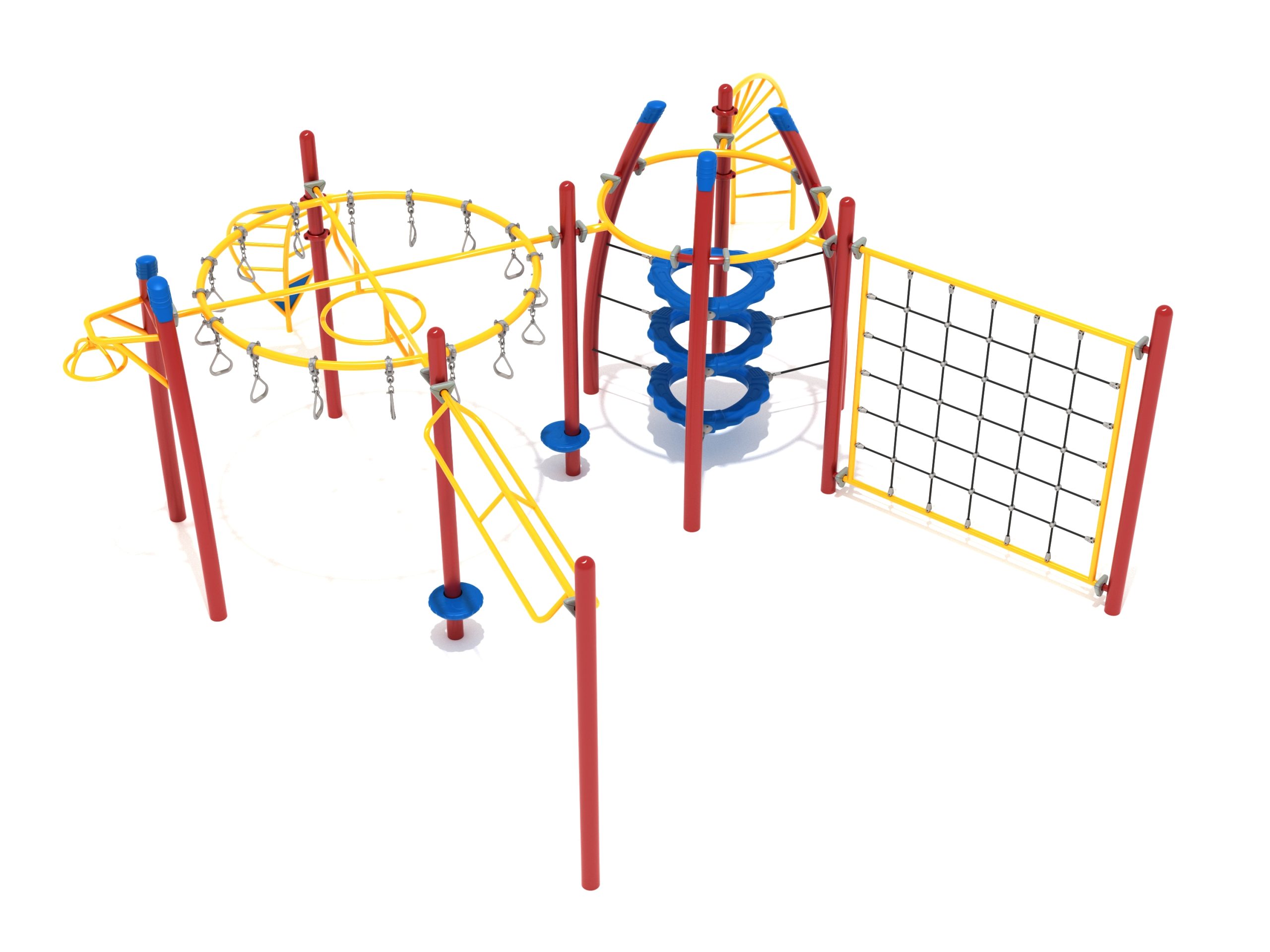 Kids will be thrilled at the opportunity to climb, swing and scramble their way across the multiple features of Gunnison Gorge which includes an Overhead Spinner to twist them round and round and a Leaf Climber that gives the best view of the playground from the top. The main attraction will of course be the Circle Overhead Swinging Ring Ladder and only the most determined children will be able to work their way around the 16 rings. Additional challenge can be found on the Overhead Parallel Bar Climber that requires children to swing in a straight line, hand to hand, like an orangutan in the jungles of Borneo. More monkey fun comes from a Tower of Rings which requires strategy to climb, and this is flanked by a tall Net Climber that can be used on both sides at the same time, and a futuristic Twisted Rung Ladder. With all of these features combined into one unit, the Gunnison Gorge is sure to bring many hours of entertainment that will ensure children sleep well after a day playing on it.