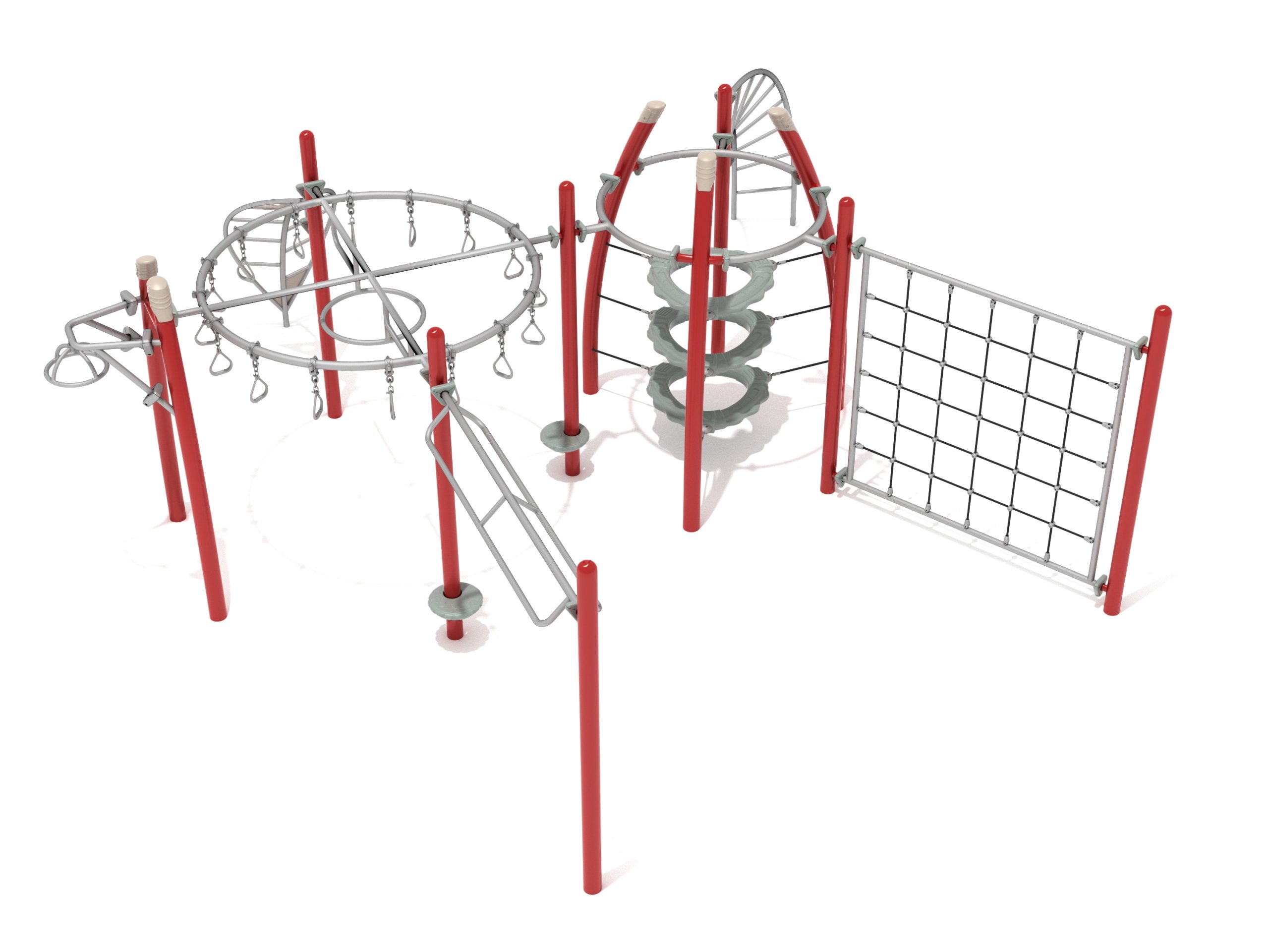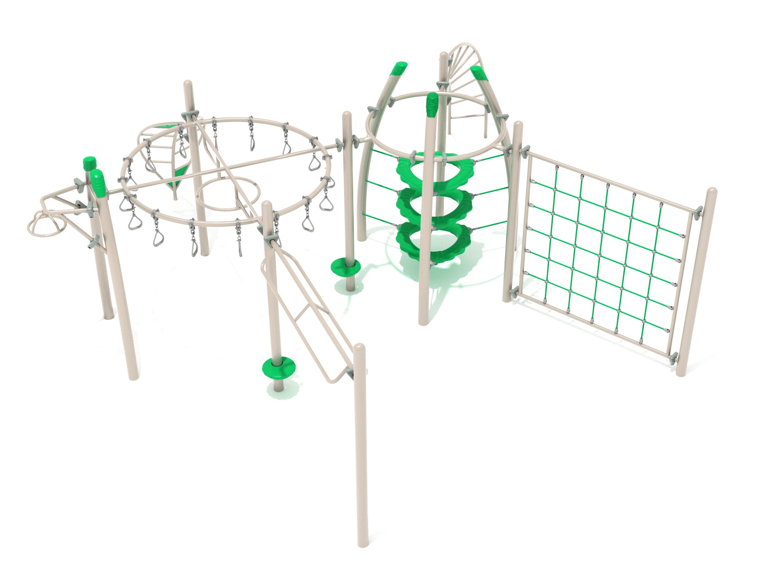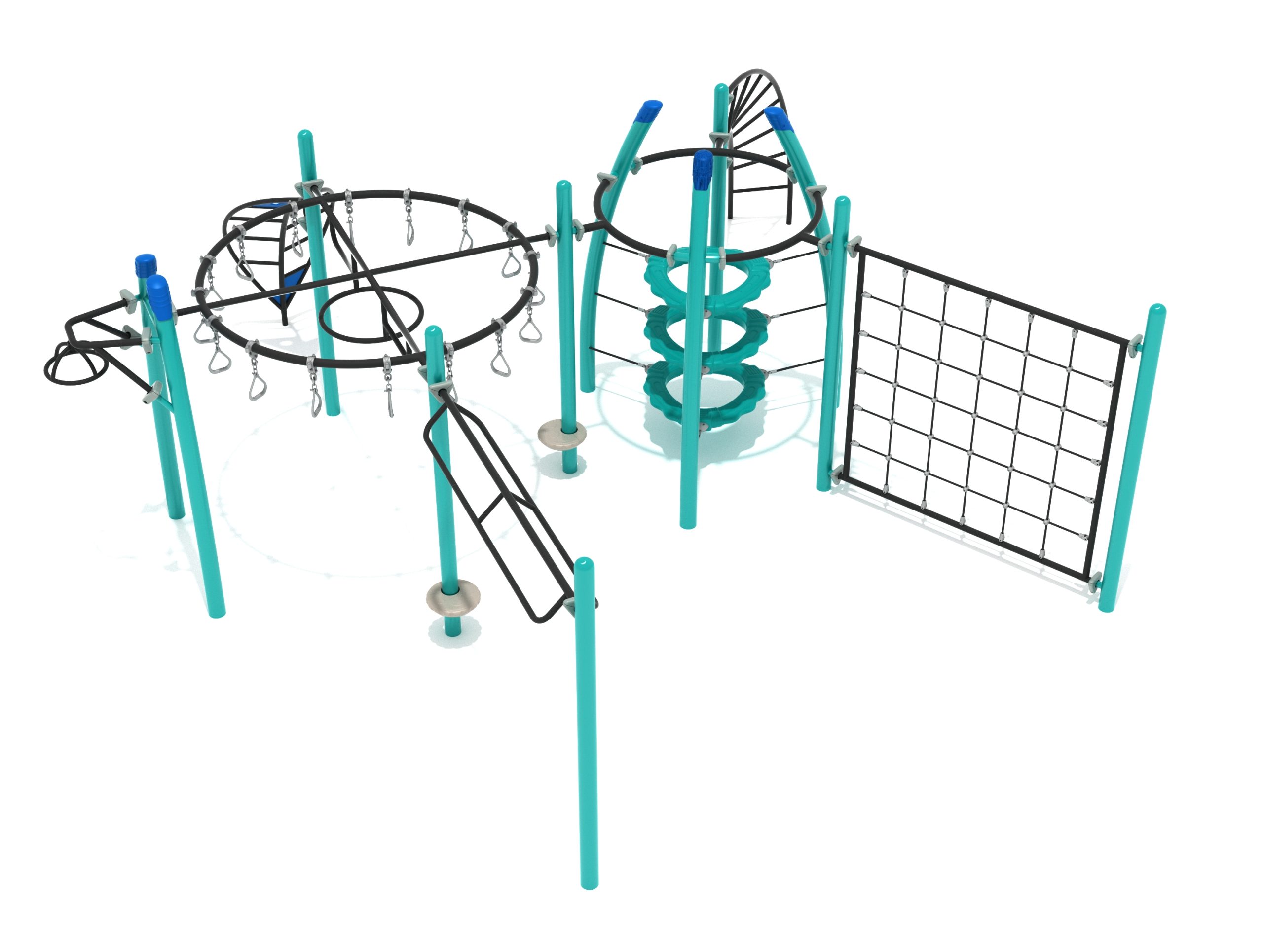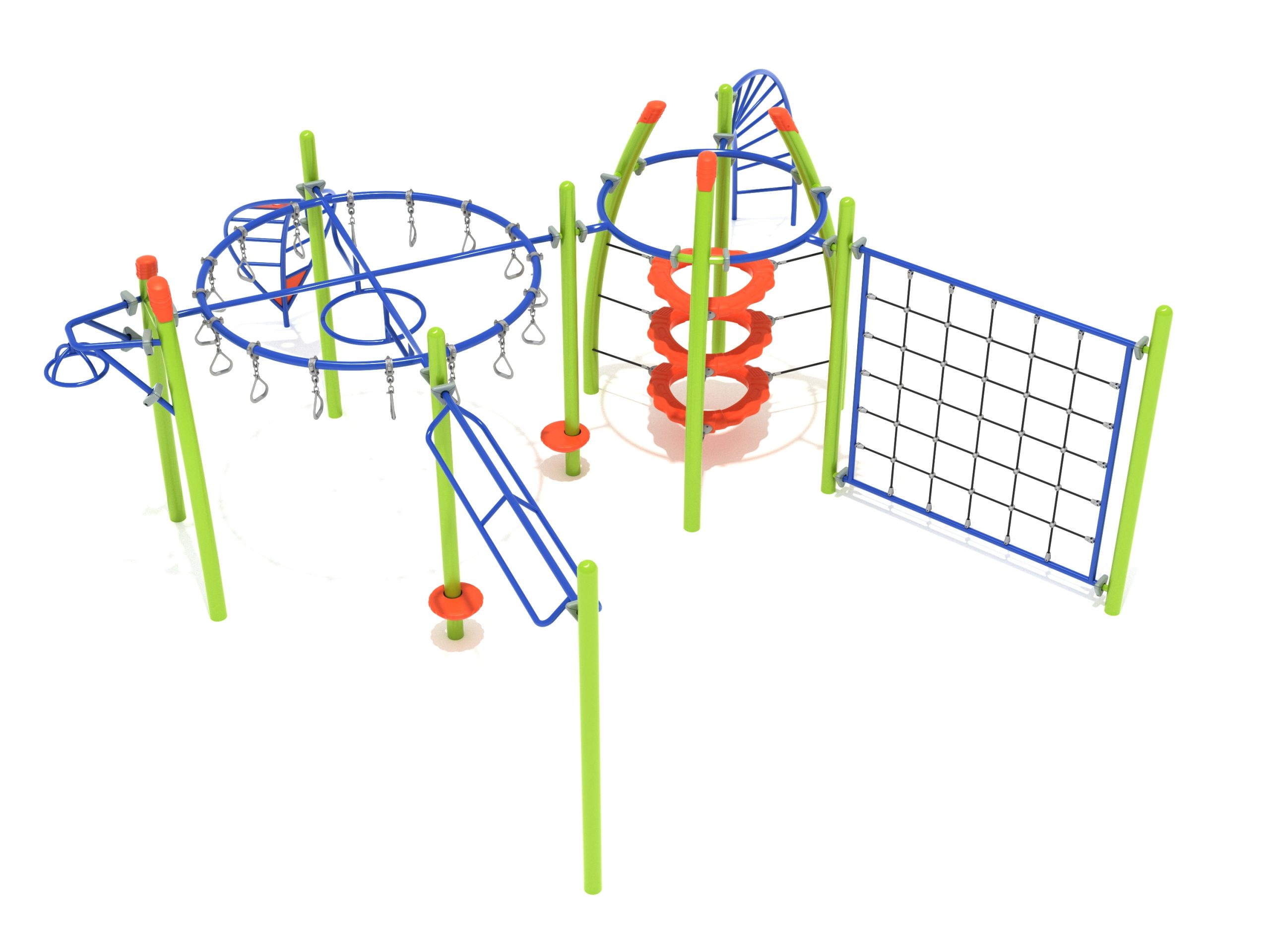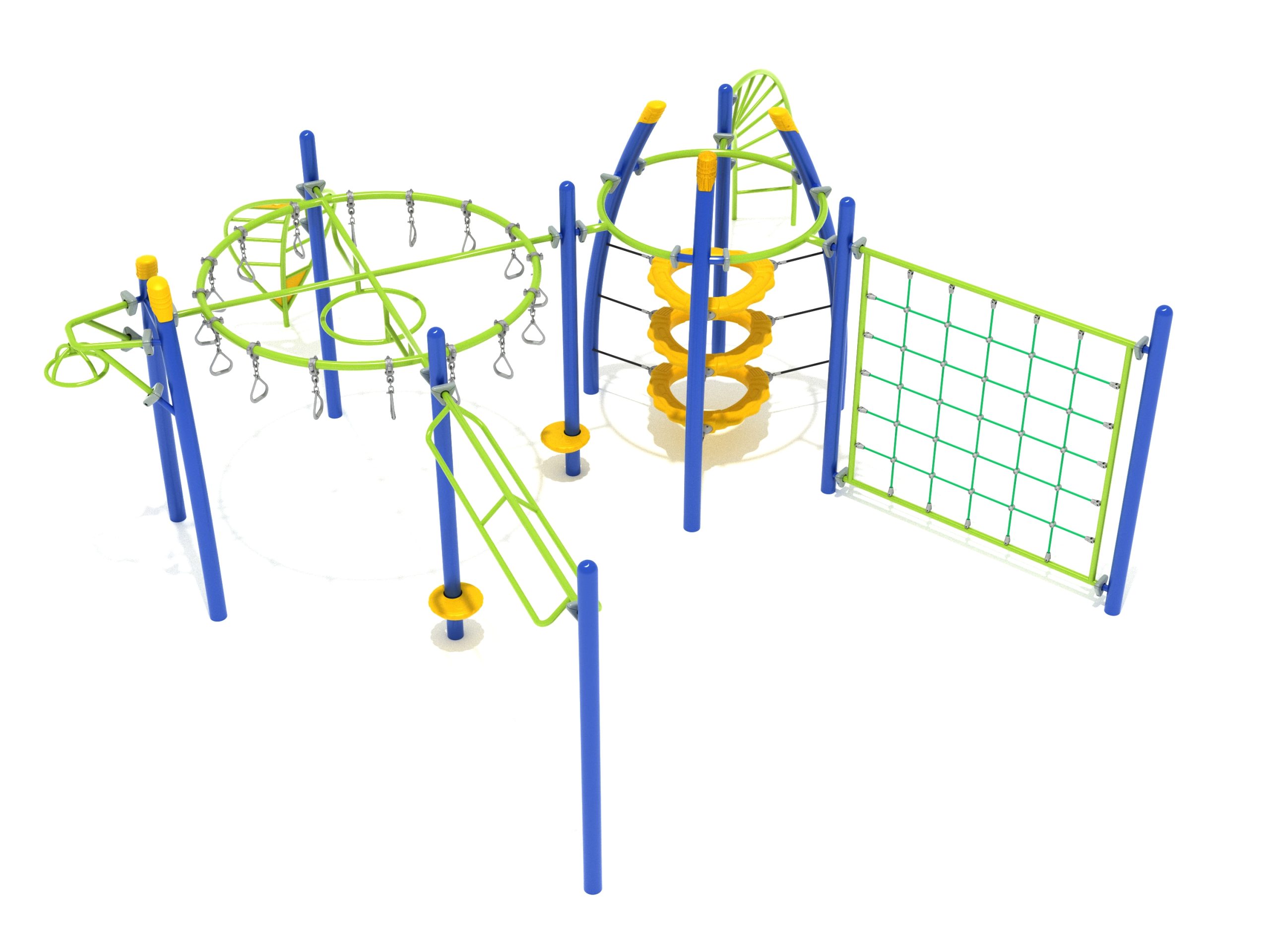 Kids will be thrilled at the opportunity to climb, swing and scramble their way across the multiple features of Gunnison Gorge which includes an Overhead Spinner to twist them round and round and a Leaf Climber that gives the best view of the playground from the top. The main attraction will of course be the Circle Overhead Swinging Ring Ladder and only the most determined children will be able to work their way around the 16 rings. Additional challenge can be found on the Overhead Parallel Bar Climber that requires children to swing in a straight line, hand to hand, like an orangutan in the jungles of Borneo. More monkey fun comes from a Tower of Rings which requires strategy to climb, and this is flanked by a tall Net Climber that can be used on both sides at the same time, and a futuristic Twisted Rung Ladder. With all of these features combined into one unit, the Gunnison Gorge is sure to bring many hours of entertainment that will ensure children sleep well after a day playing on it.