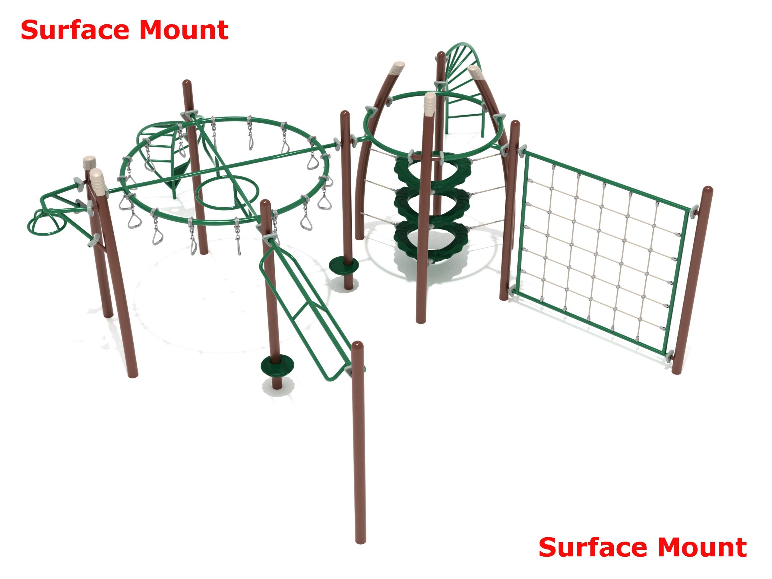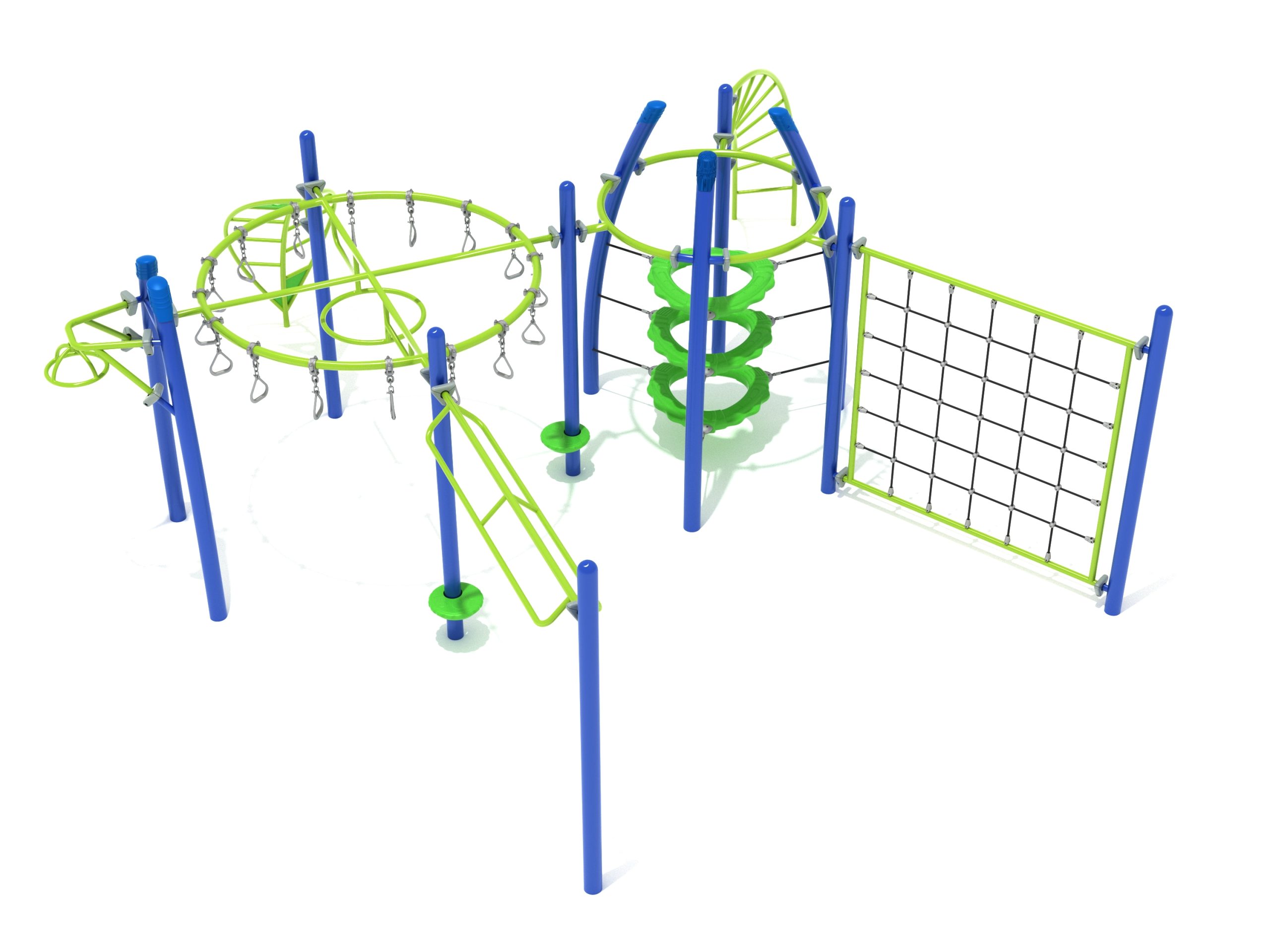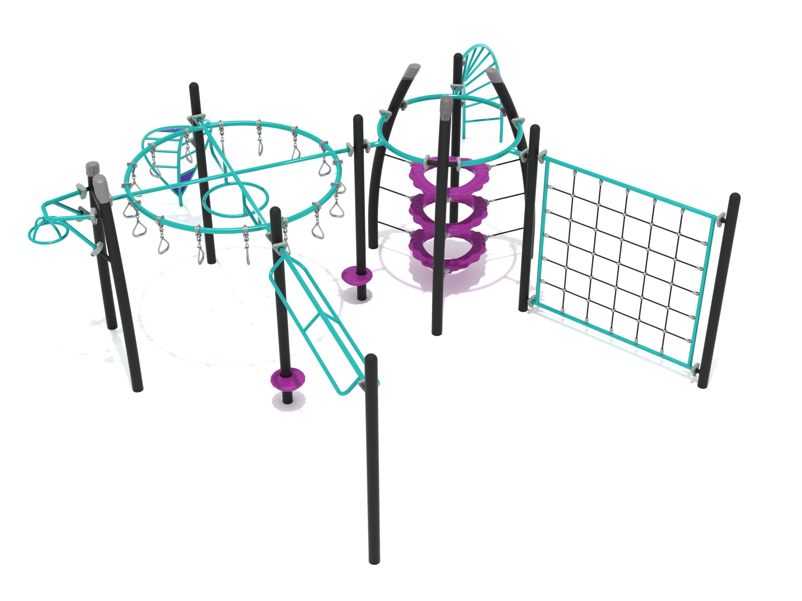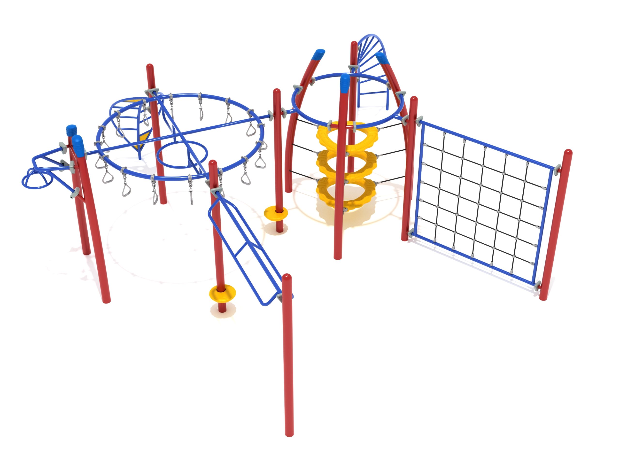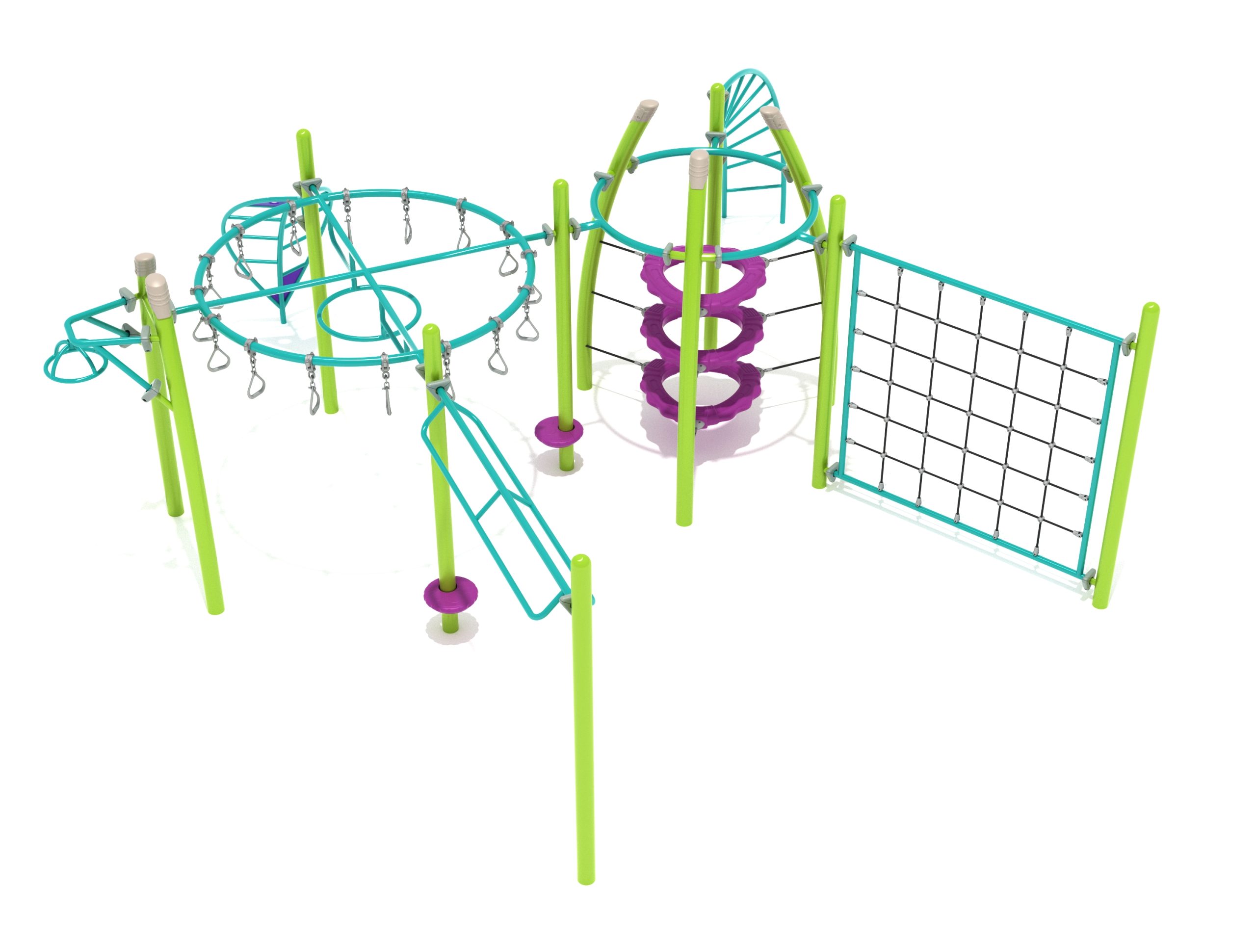 Kids will be thrilled at the opportunity to climb, swing and scramble their way across the multiple features of Gunnison Gorge which includes an Overhead Spinner to twist them round and round and a Leaf Climber that gives the best view of the playground from the top. The main attraction will of course be the Circle Overhead Swinging Ring Ladder and only the most determined children will be able to work their way around the 16 rings. Additional challenge can be found on the Overhead Parallel Bar Climber that requires children to swing in a straight line, hand to hand, like an orangutan in the jungles of Borneo. More monkey fun comes from a Tower of Rings which requires strategy to climb, and this is flanked by a tall Net Climber that can be used on both sides at the same time, and a futuristic Twisted Rung Ladder. With all of these features combined into one unit, the Gunnison Gorge is sure to bring many hours of entertainment that will ensure children sleep well after a day playing on it.