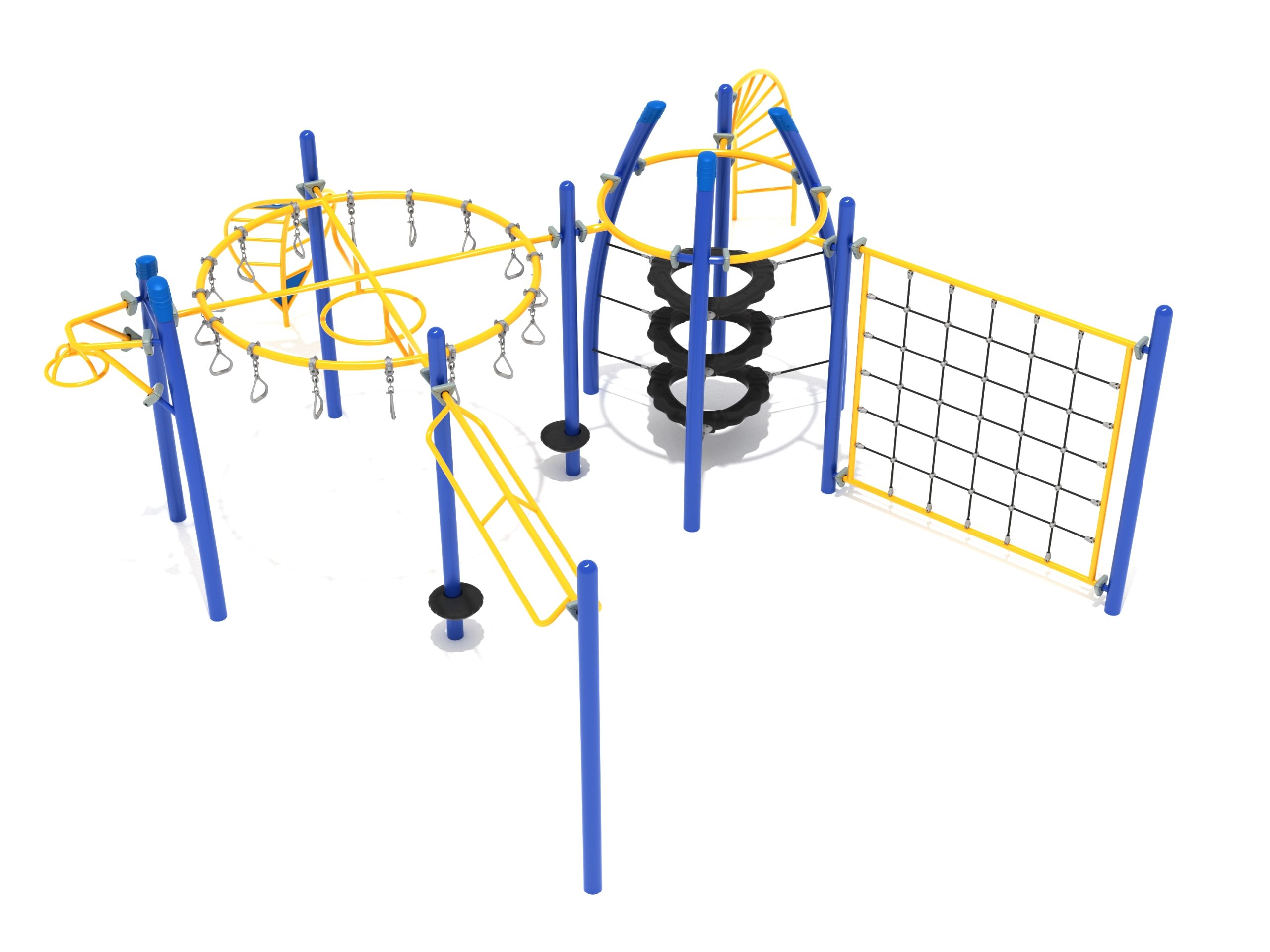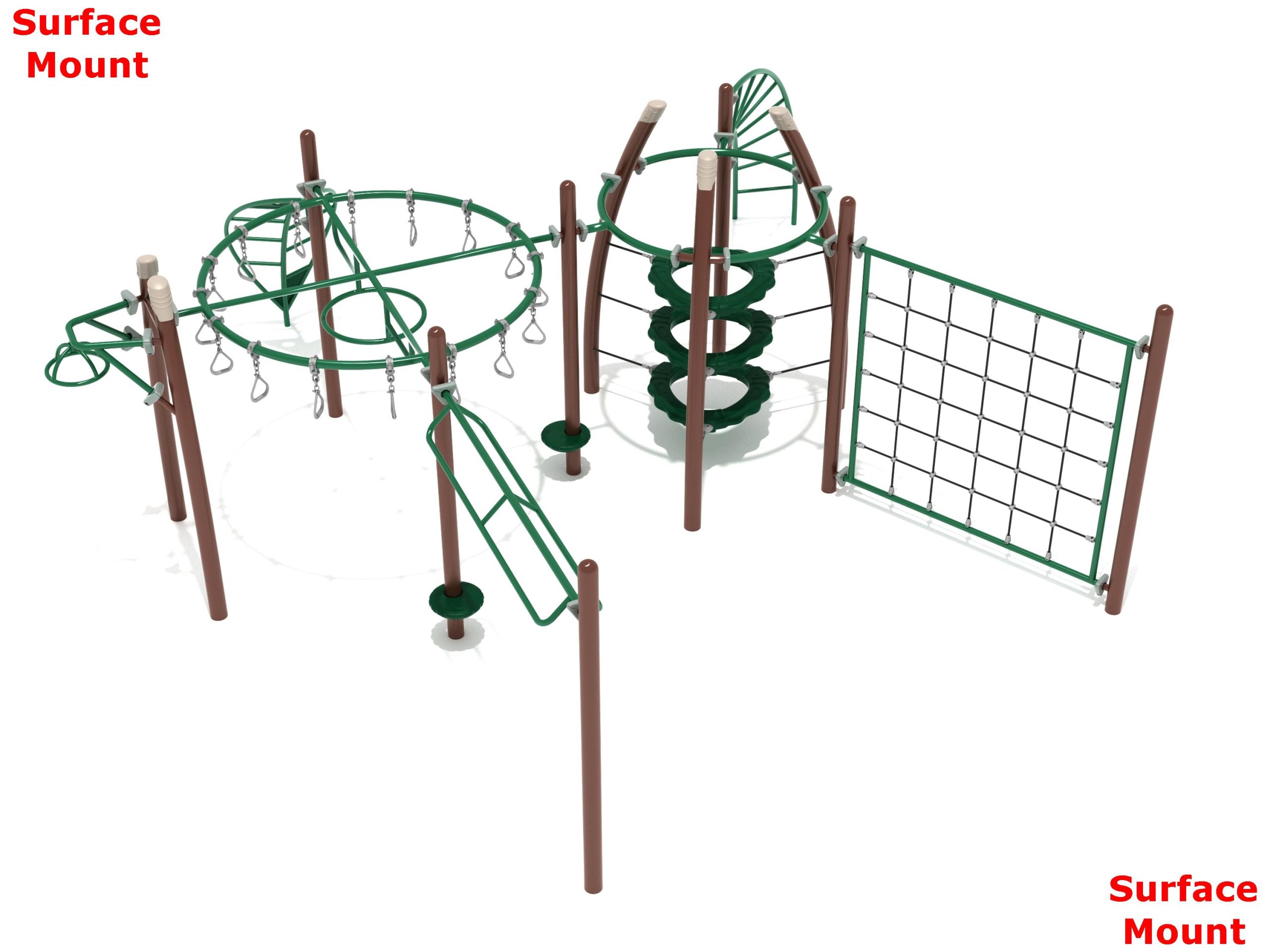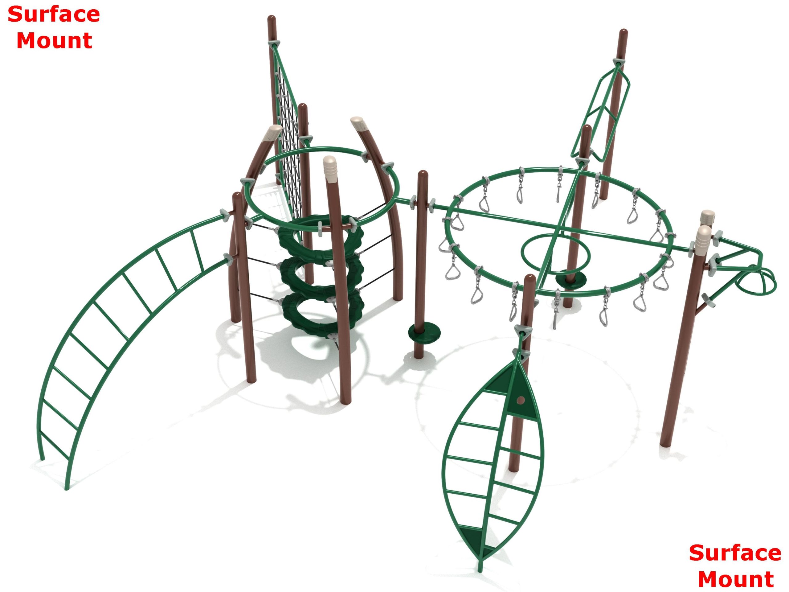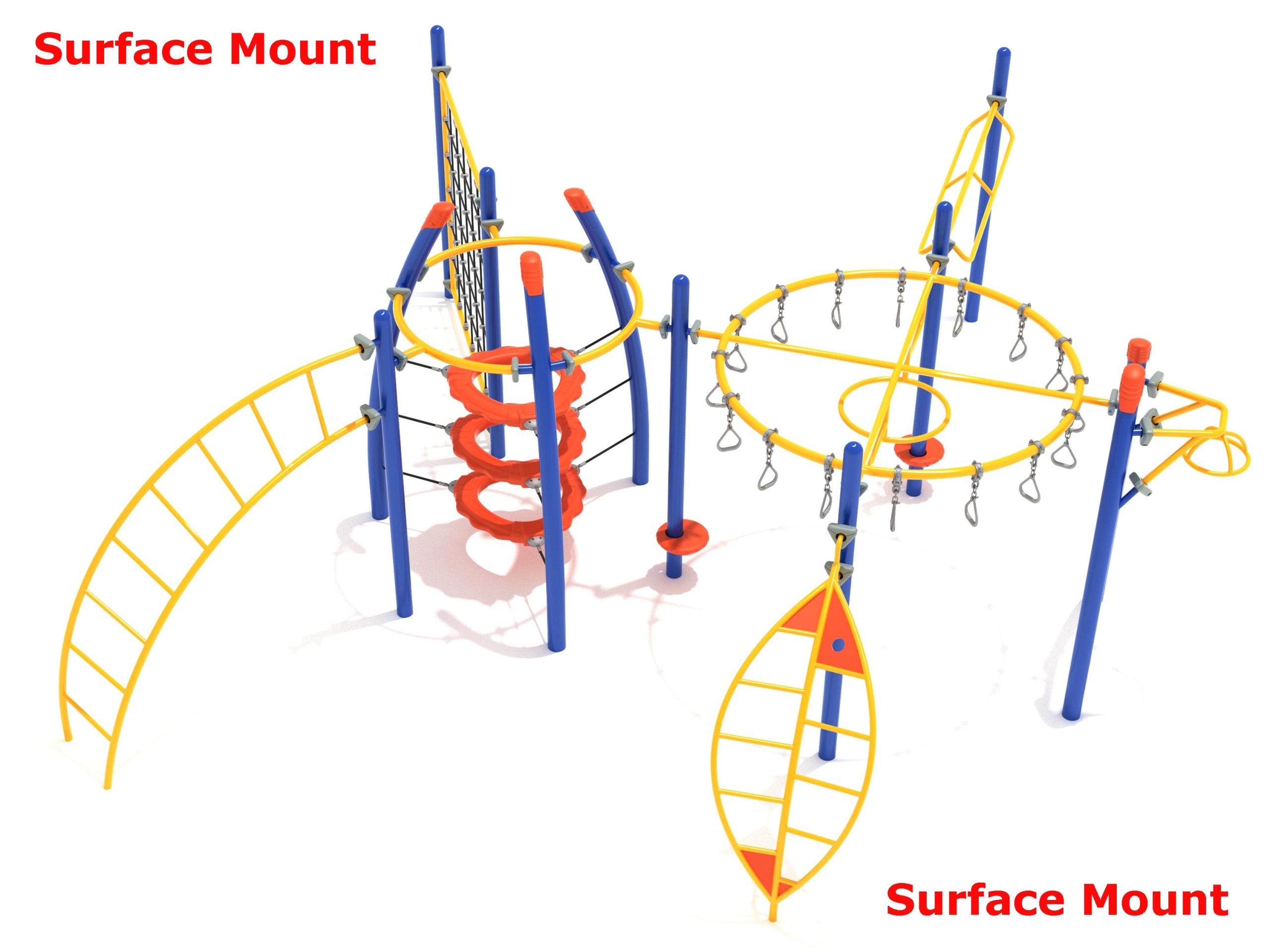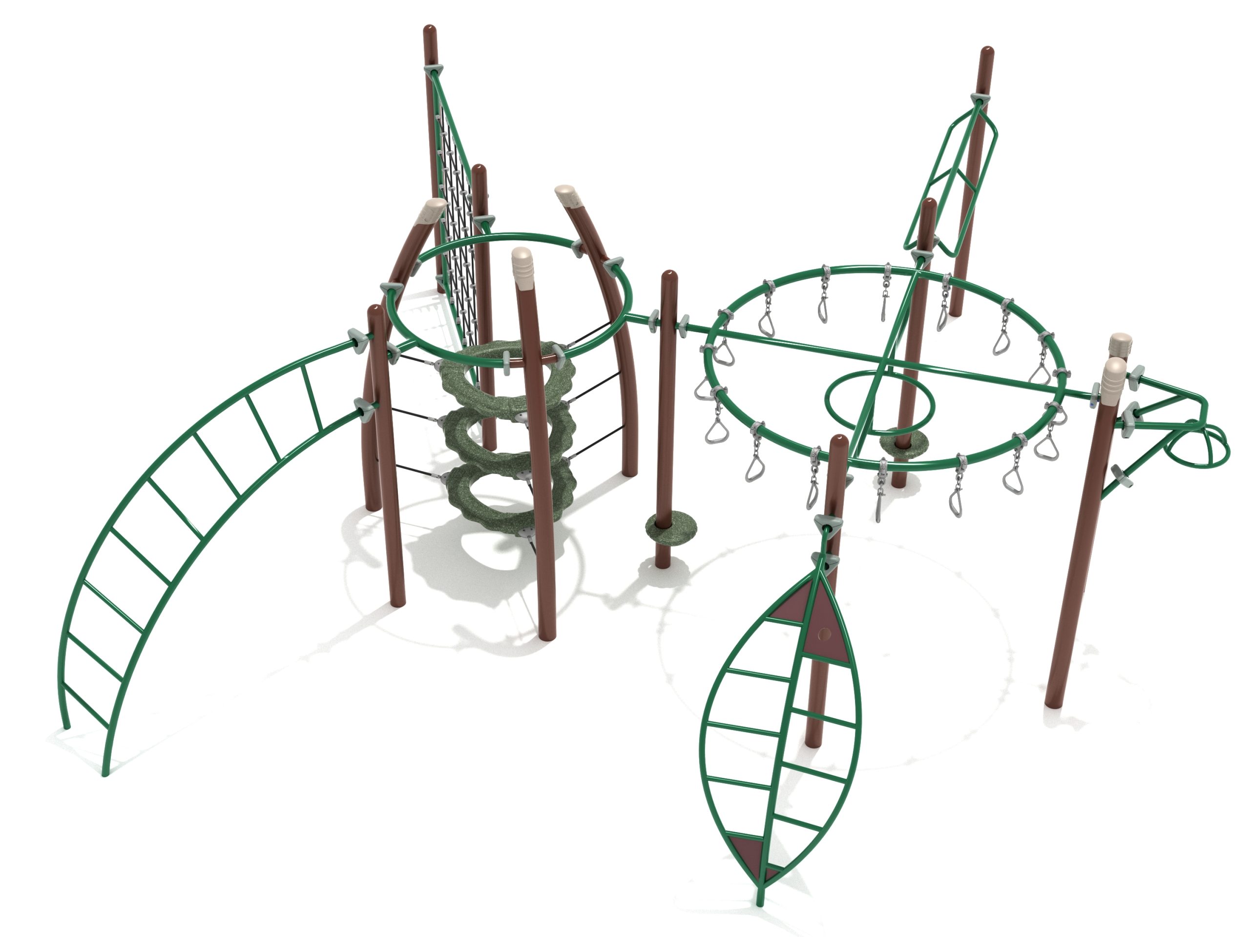 Kids will be thrilled at the opportunity to climb, swing and scramble their way across the multiple features of Gunnison Gorge which includes an Overhead Spinner to twist them round and round and a Leaf Climber that gives the best view of the playground from the top. The main attraction will of course be the Circle Overhead Swinging Ring Ladder and only the most determined children will be able to work their way around the 16 rings. Additional challenge can be found on the Overhead Parallel Bar Climber that requires children to swing in a straight line, hand to hand, like an orangutan in the jungles of Borneo. More monkey fun comes from a Tower of Rings which requires strategy to climb, and this is flanked by a tall Net Climber that can be used on both sides at the same time, and a futuristic Twisted Rung Ladder. With all of these features combined into one unit, the Gunnison Gorge is sure to bring many hours of entertainment that will ensure children sleep well after a day playing on it.