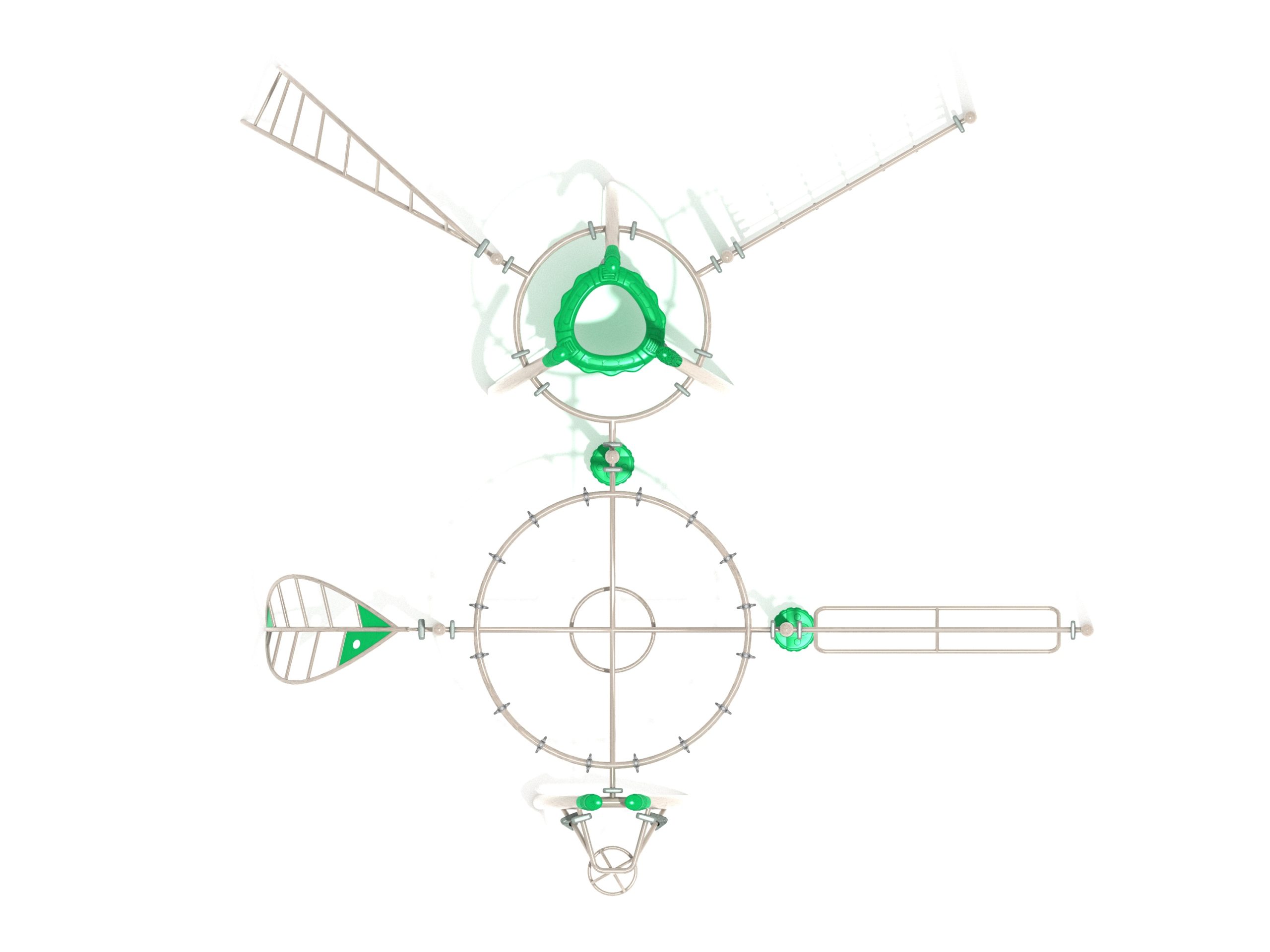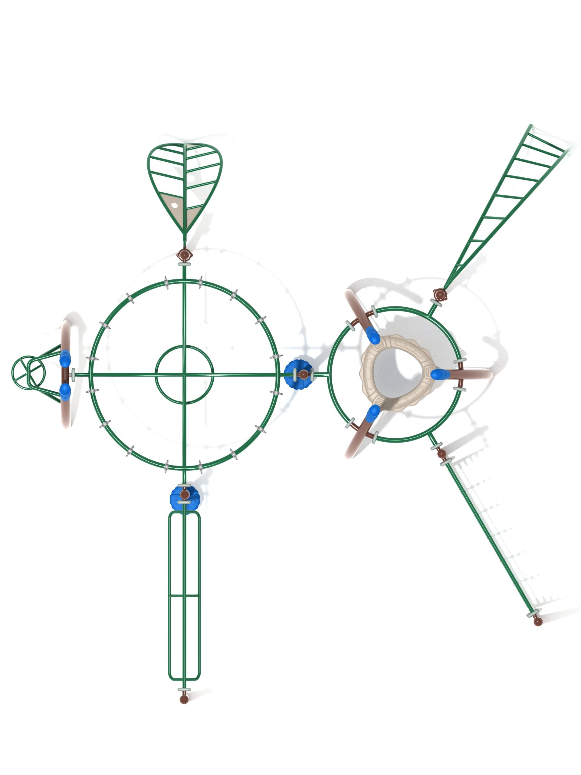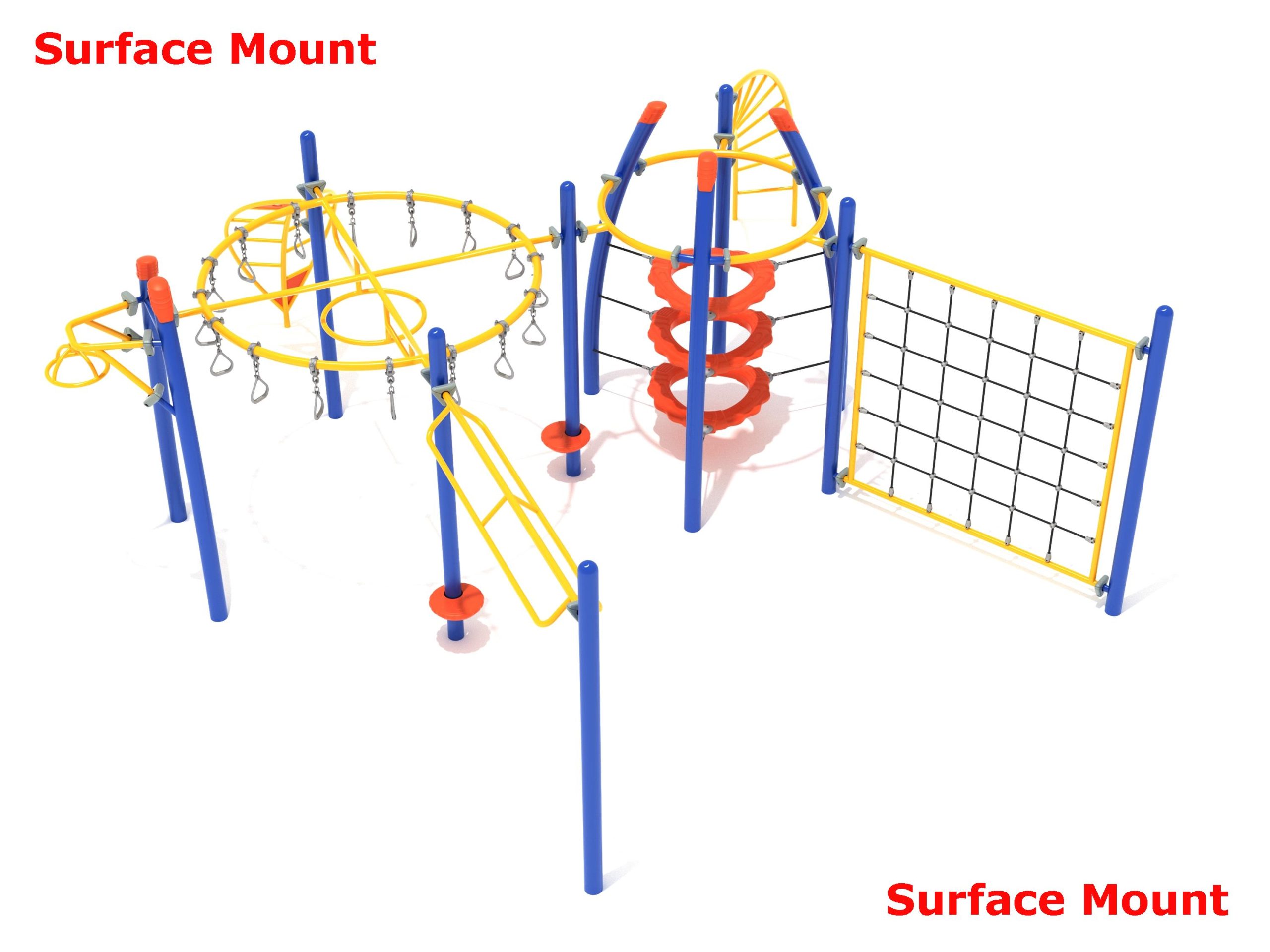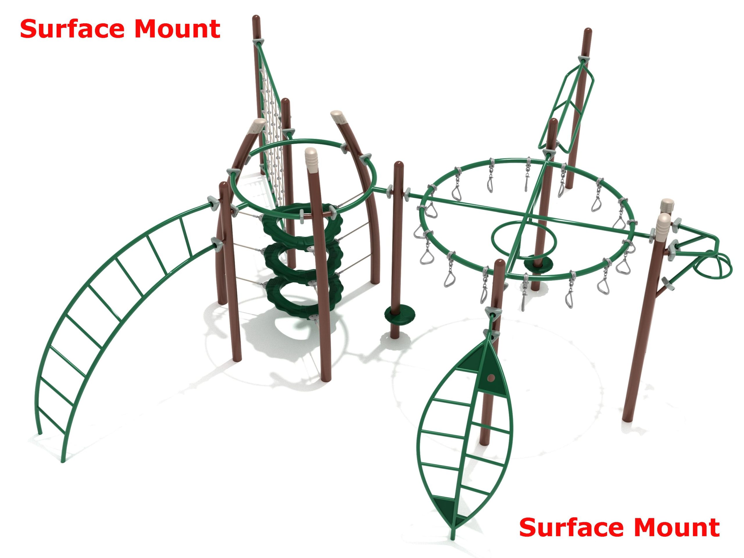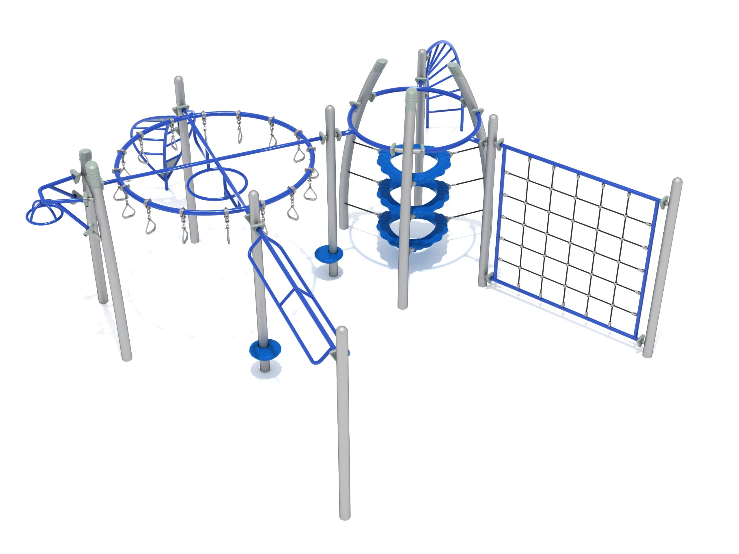 Kids will be thrilled at the opportunity to climb, swing and scramble their way across the multiple features of Gunnison Gorge which includes an Overhead Spinner to twist them round and round and a Leaf Climber that gives the best view of the playground from the top. The main attraction will of course be the Circle Overhead Swinging Ring Ladder and only the most determined children will be able to work their way around the 16 rings. Additional challenge can be found on the Overhead Parallel Bar Climber that requires children to swing in a straight line, hand to hand, like an orangutan in the jungles of Borneo. More monkey fun comes from a Tower of Rings which requires strategy to climb, and this is flanked by a tall Net Climber that can be used on both sides at the same time, and a futuristic Twisted Rung Ladder. With all of these features combined into one unit, the Gunnison Gorge is sure to bring many hours of entertainment that will ensure children sleep well after a day playing on it.