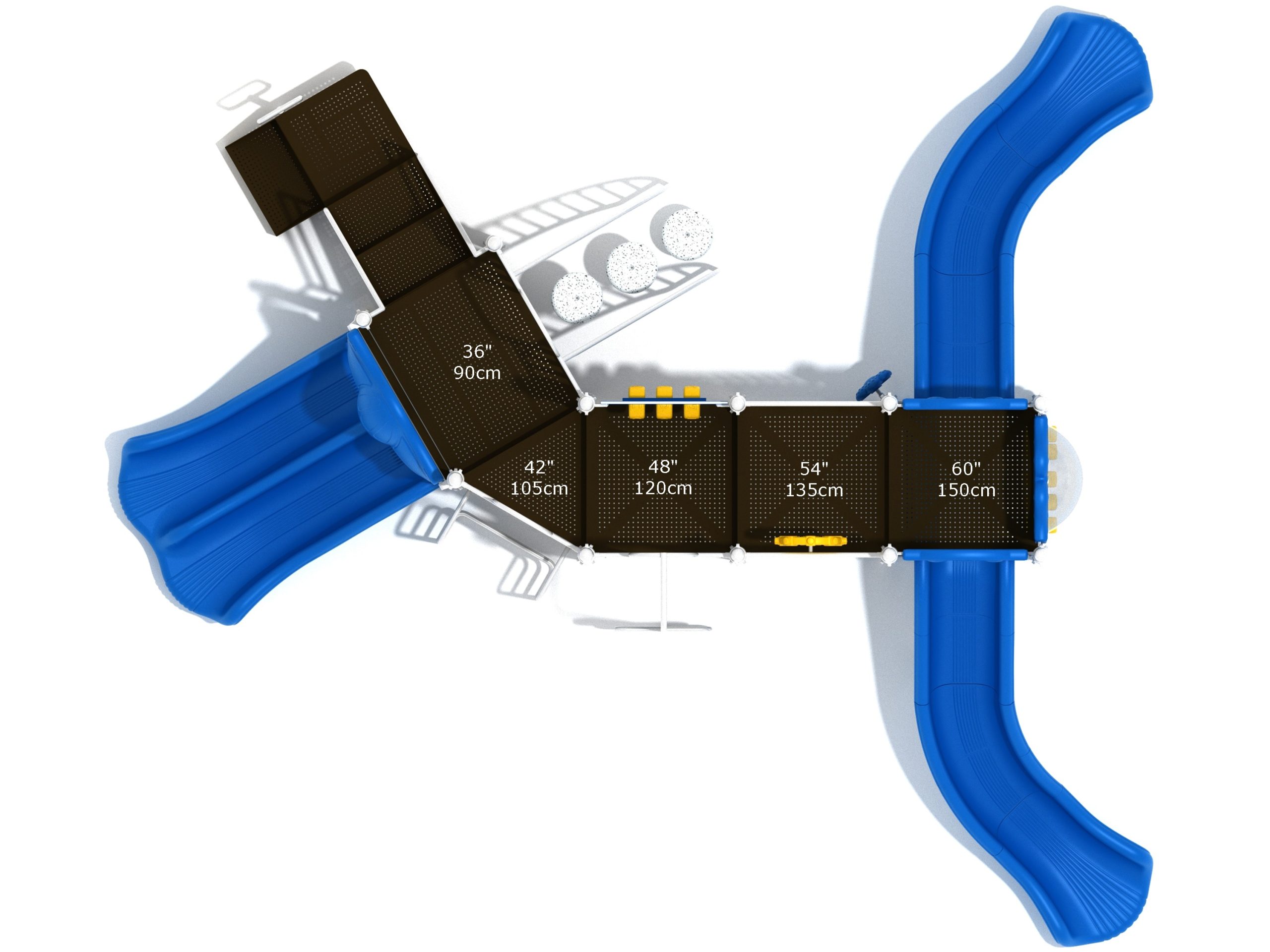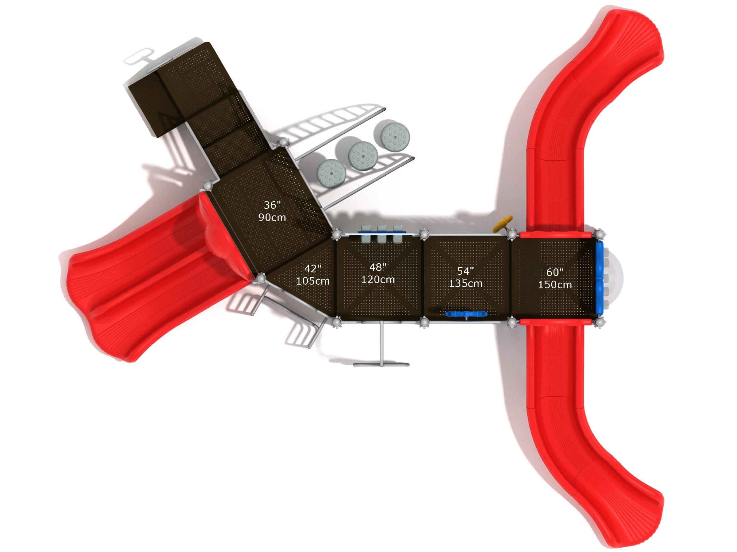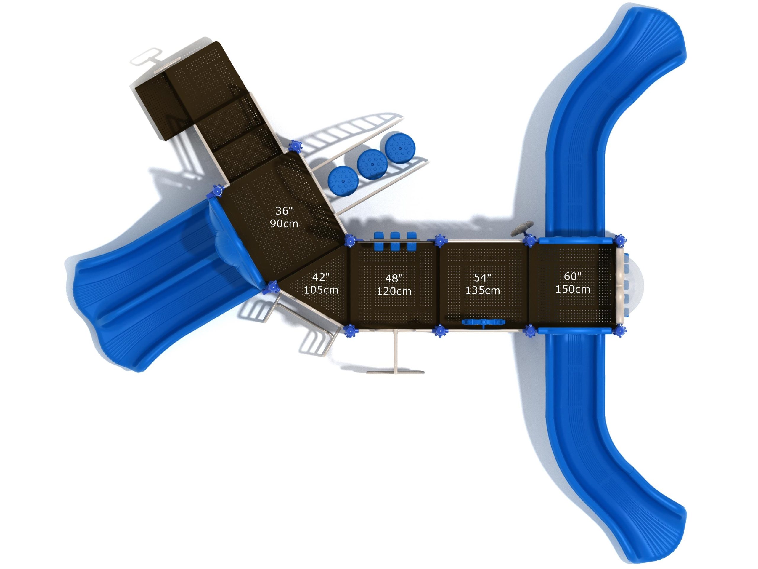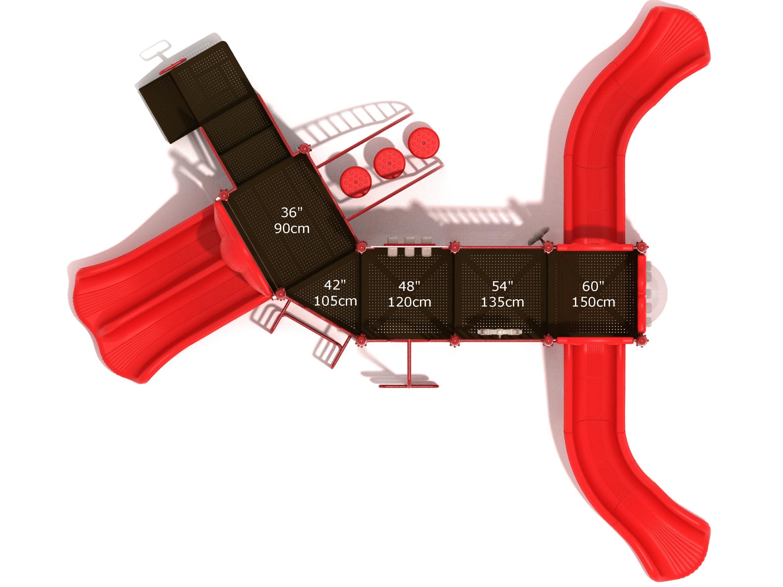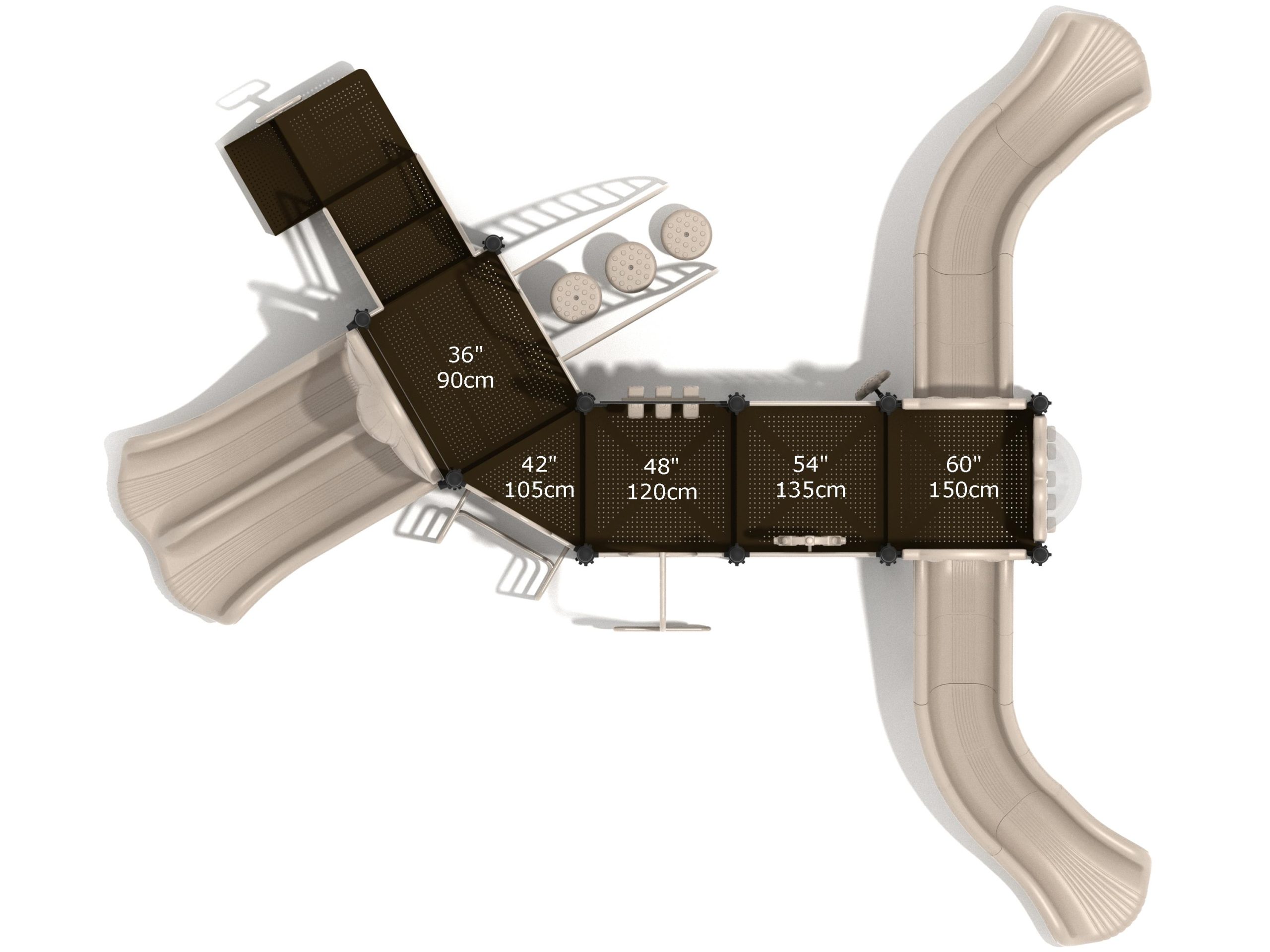 The Henderson play system might not be as challenging as our other play systems, but it certainly does not lack in the fun department at all. It has several entry points like the easiest Transfer Station, a Pebble Climber, a Snake Climber, and a Staright Vertical Ladder. Kids can race towards any of them to reach the deck. Once they are up, there’s a Spelling Panel to keep them company while teaching basic 3-word spellings like CAT and DOG. If they move further along the deck, they will see a Ship Wheel, which is perfect for them to play pretend games with their friends. On top of everything, the Henderson play system consists of four slides in total to let kids have the sliding experience of their lives. Once they are done with climbing and sliding, they can come down beneath the structure where a little club house consisting of Store and Half Math Panel is waiting for them.