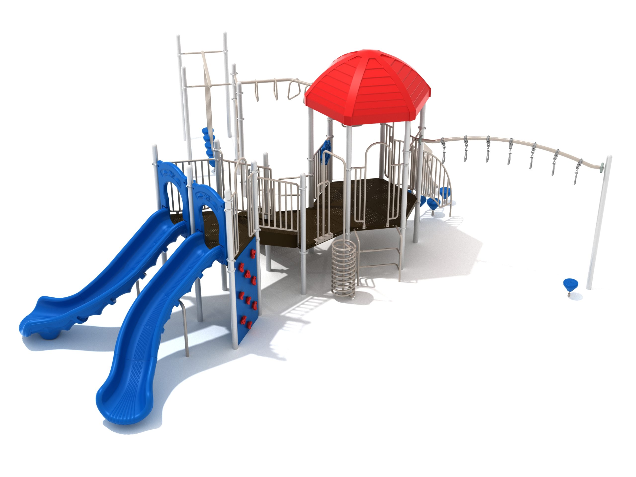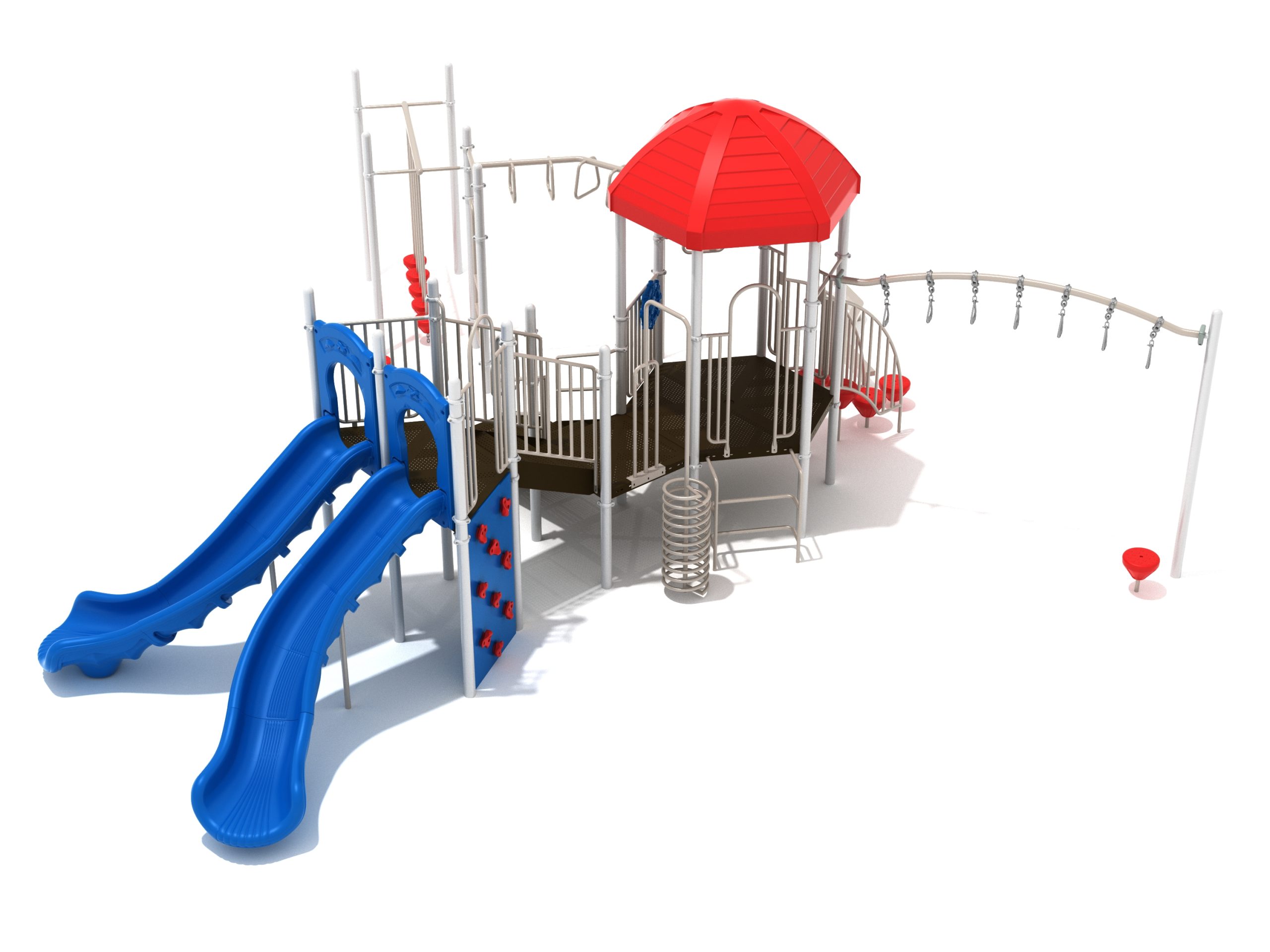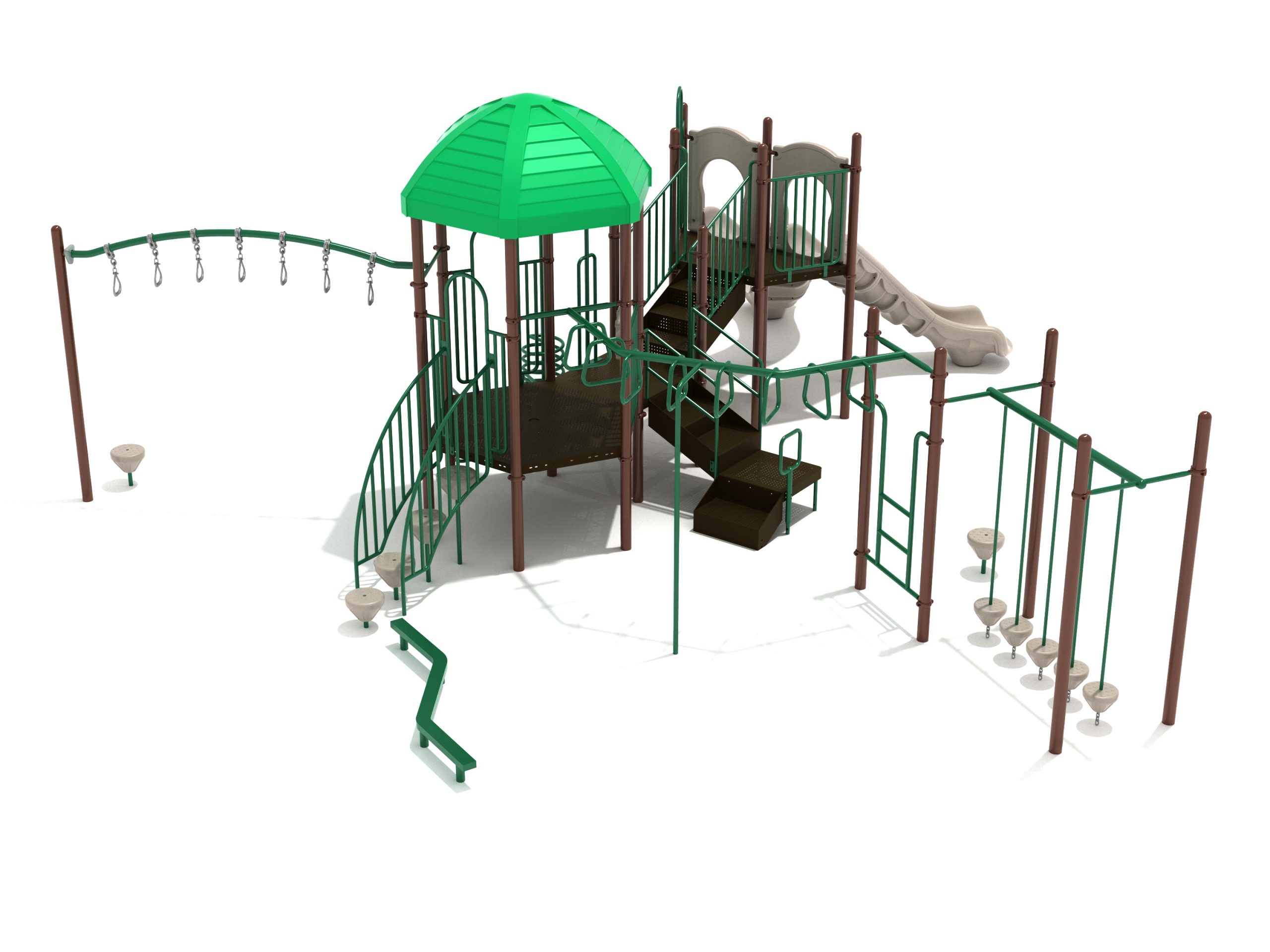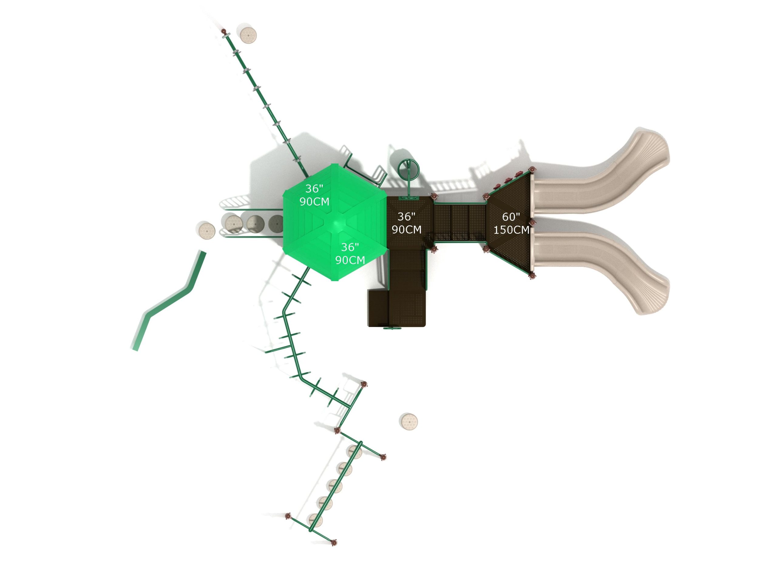 A play system should be the spot where kids can test their skills, make friends, and have fun. The Humphrey Creek Play System covers all the bases. Designed to be large but space-efficient, it can accommodate many children at once. The best part? It’s packed with exciting challenges! The multiple entry and exit points make it perfect for the little adventurers who love exploring new pathways. Humphrey Creek allows the kids to access the peak point through various options, including a Vertical Ladder, Pebble Climber Steps, and a Trapezoid Loop Ladder. Albeit challenging, the destination to the top is worth it. All climbers lead to the hexagonal hub at the top, which is the ideal place to rest or chat with friends. Kids can pick their own challenges based on their strongest suits, whether that’s perfect balance or agility. The Humphree Creek Play System fulfills every requirement for the ideal playground. With so many opportunities for fun, it’s a go-to spot for fun for every kid!
