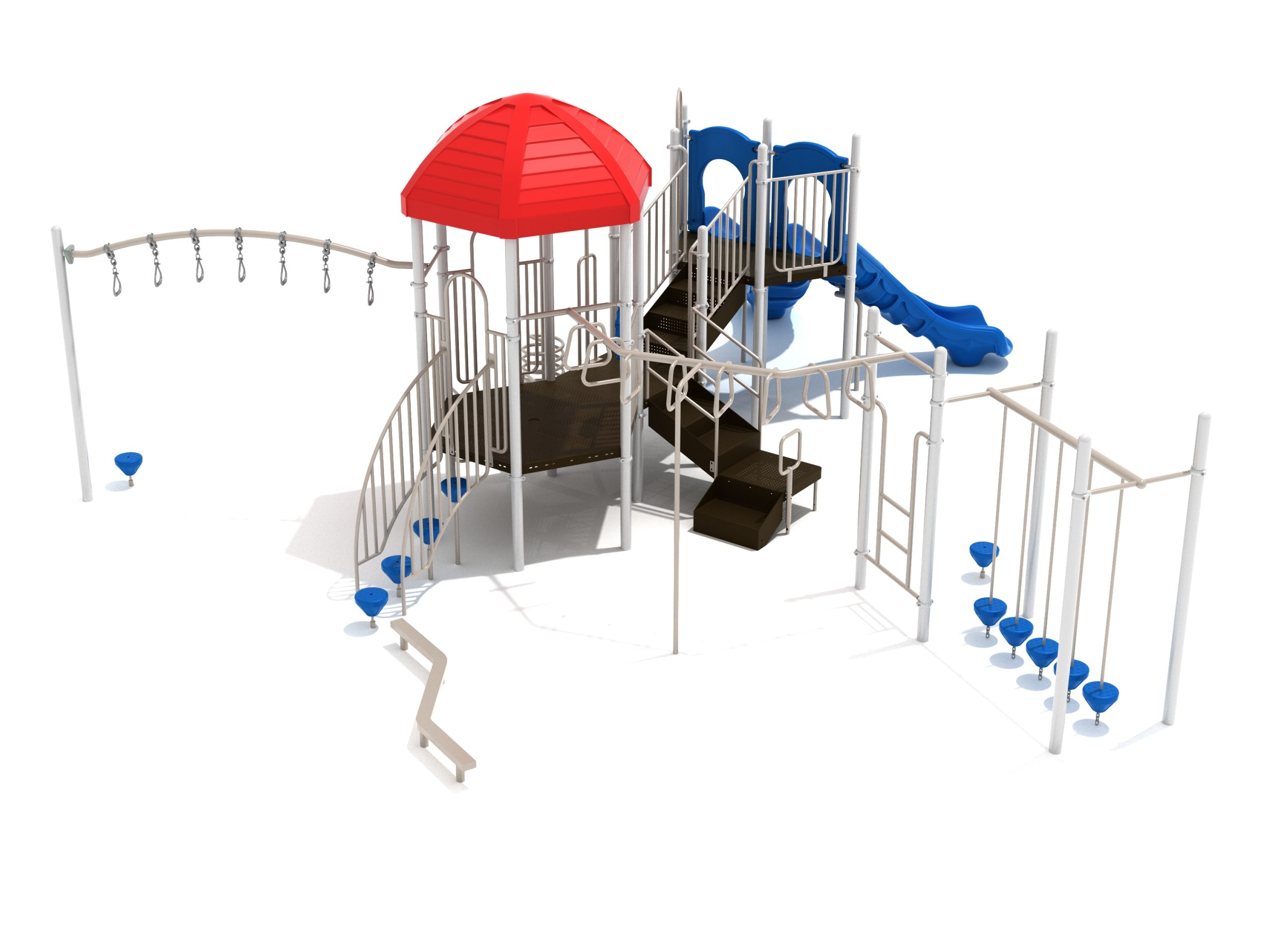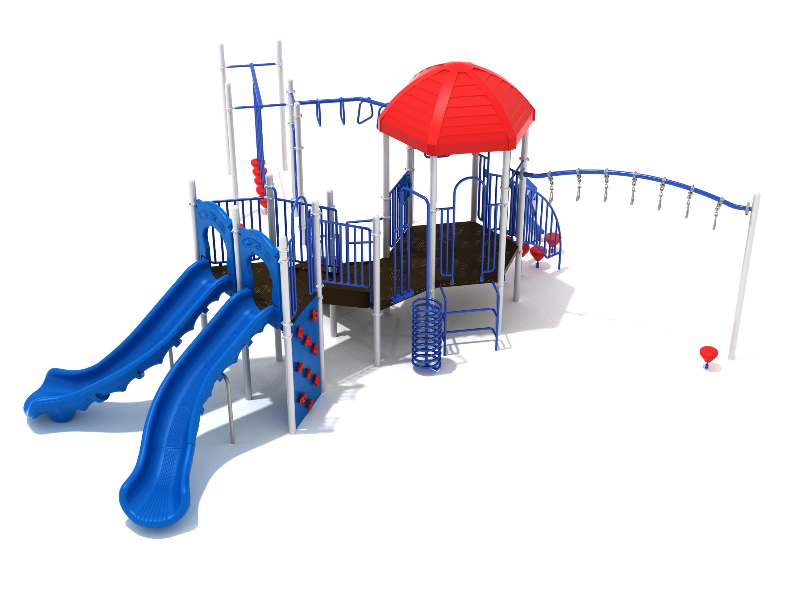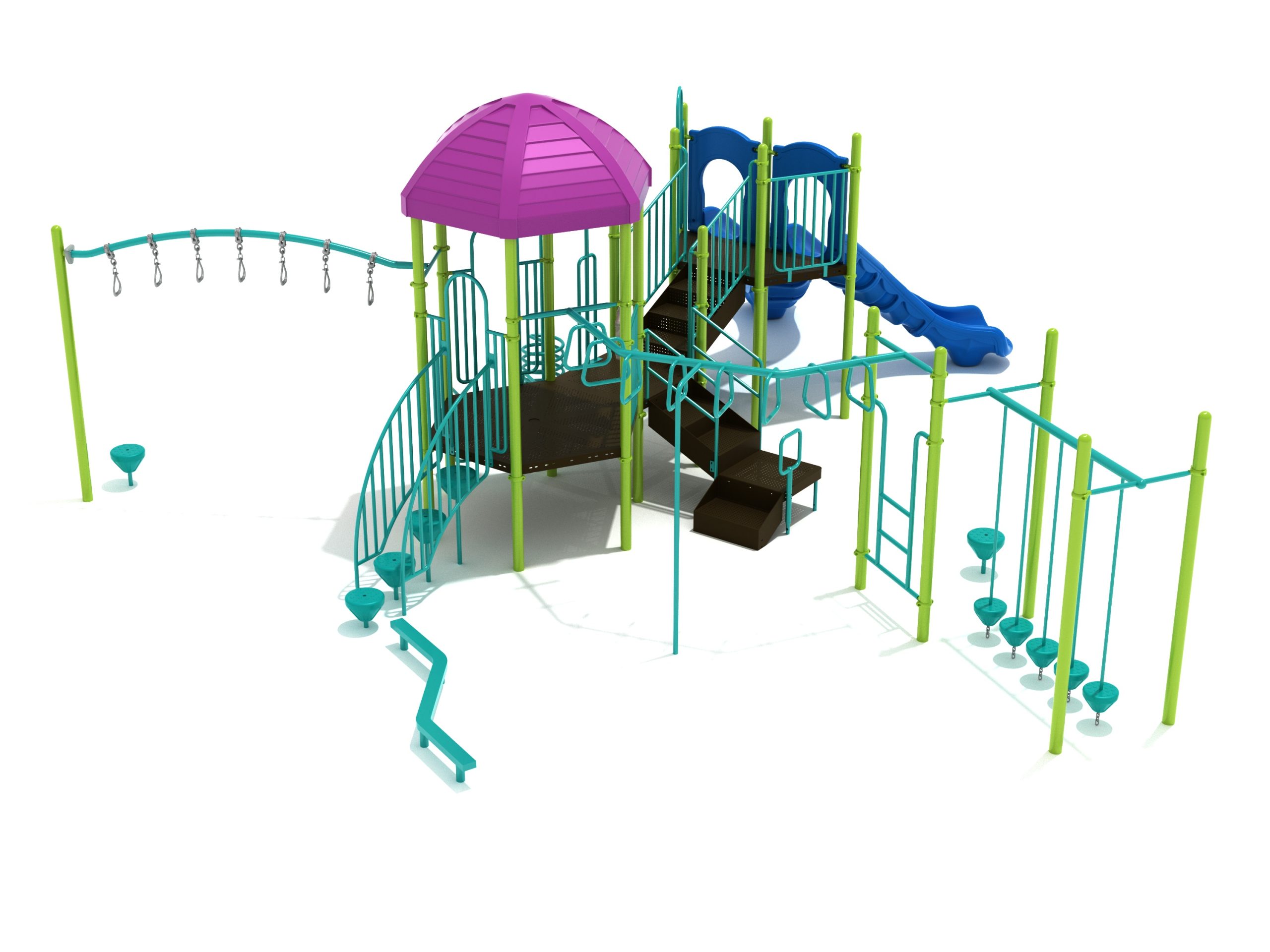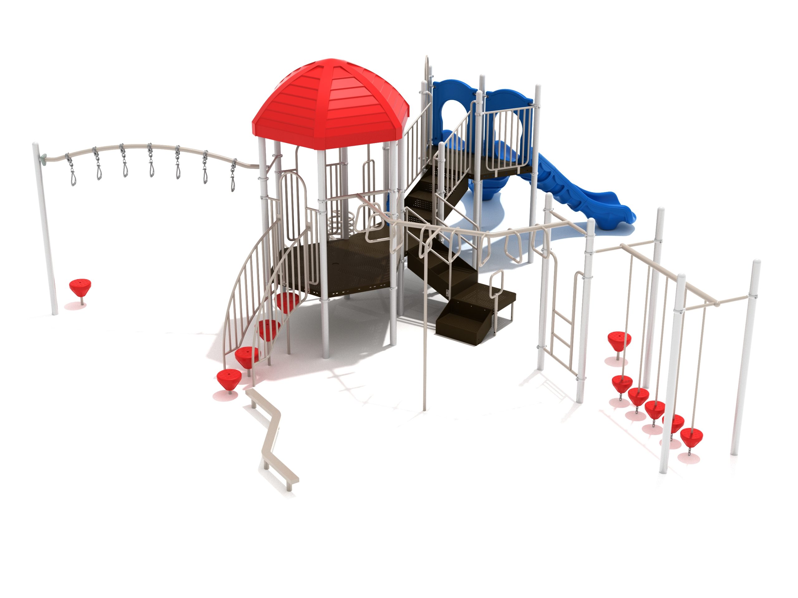 A play system should be the spot where kids can test their skills, make friends, and have fun. The Humphrey Creek Play System covers all the bases. Designed to be large but space-efficient, it can accommodate many children at once. The best part? It’s packed with exciting challenges! The multiple entry and exit points make it perfect for the little adventurers who love exploring new pathways. Humphrey Creek allows the kids to access the peak point through various options, including a Vertical Ladder, Pebble Climber Steps, and a Trapezoid Loop Ladder. Albeit challenging, the destination to the top is worth it. All climbers lead to the hexagonal hub at the top, which is the ideal place to rest or chat with friends. Kids can pick their own challenges based on their strongest suits, whether that’s perfect balance or agility. The Humphree Creek Play System fulfills every requirement for the ideal playground. With so many opportunities for fun, it’s a go-to spot for fun for every kid!