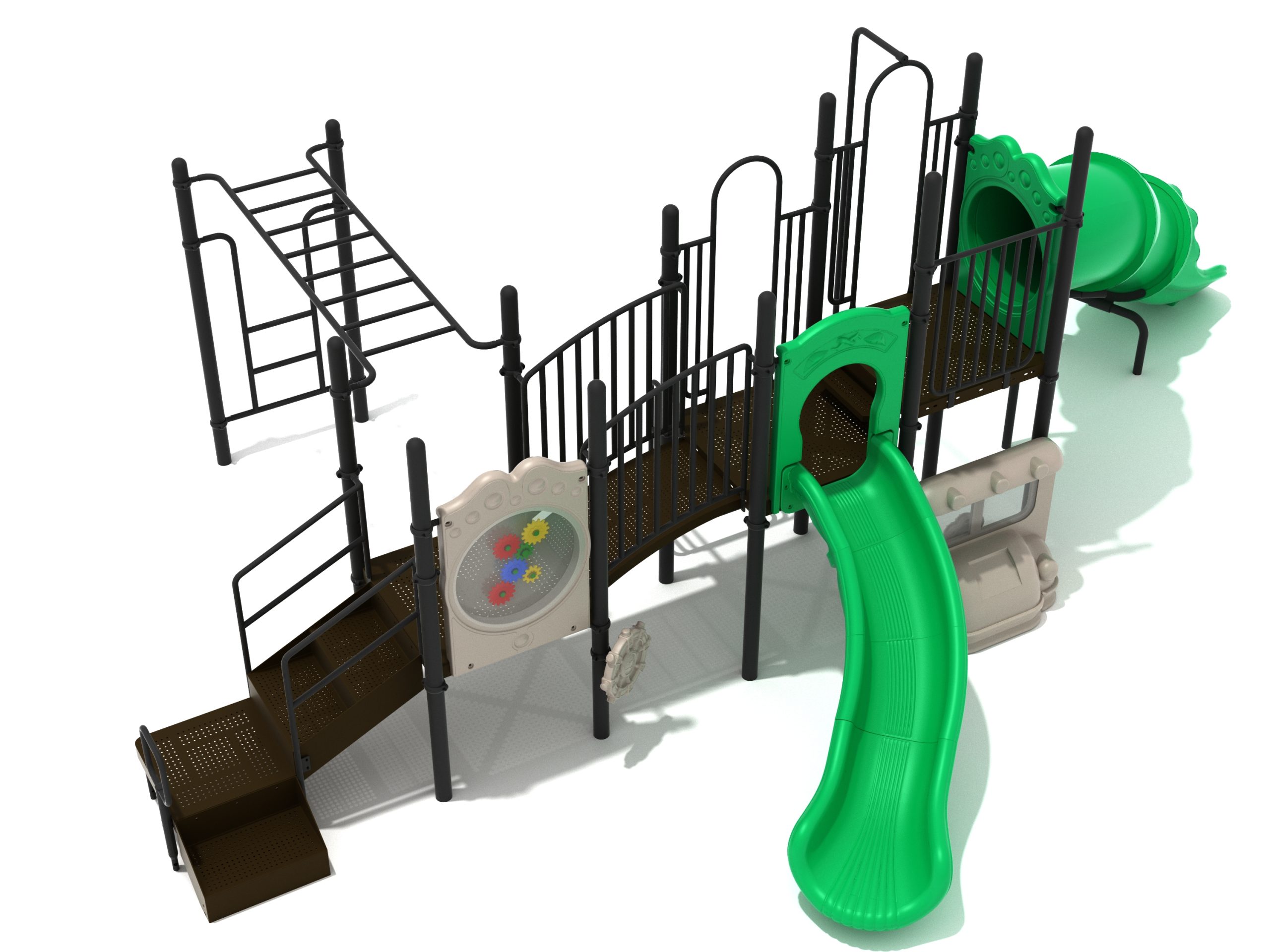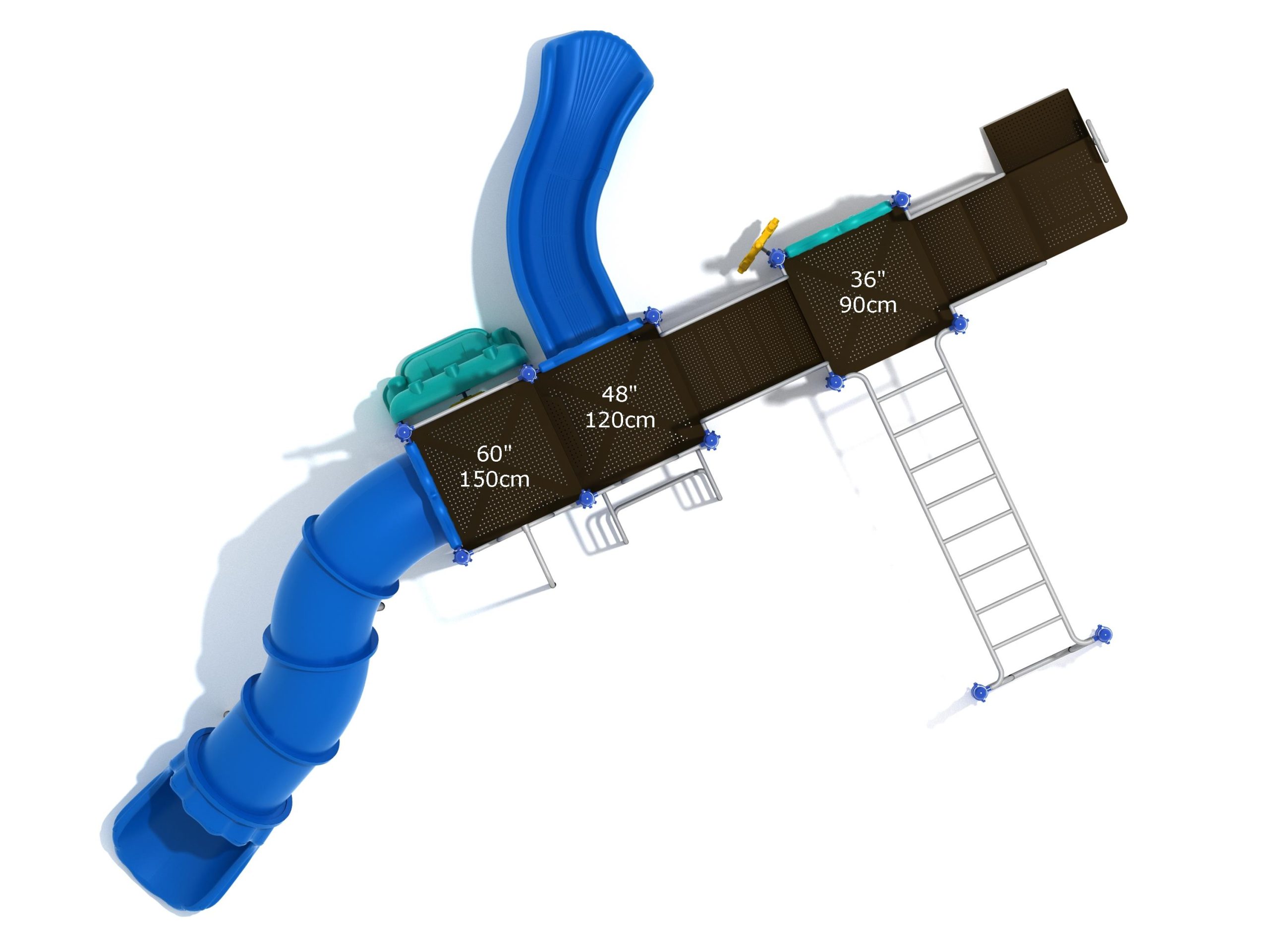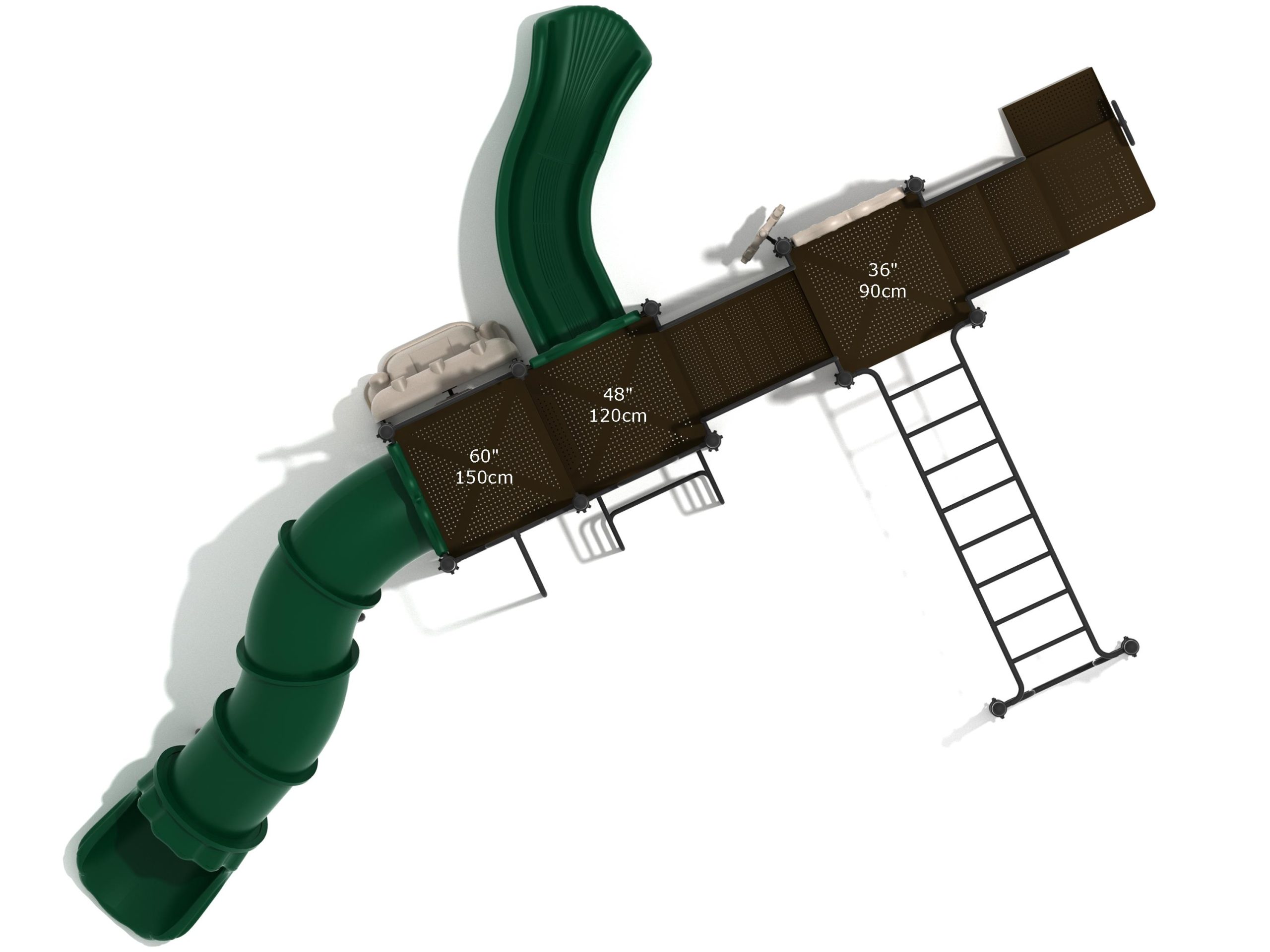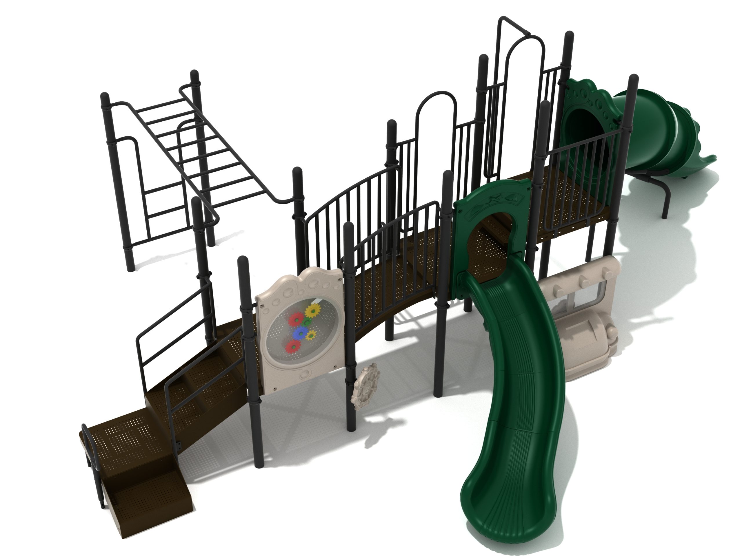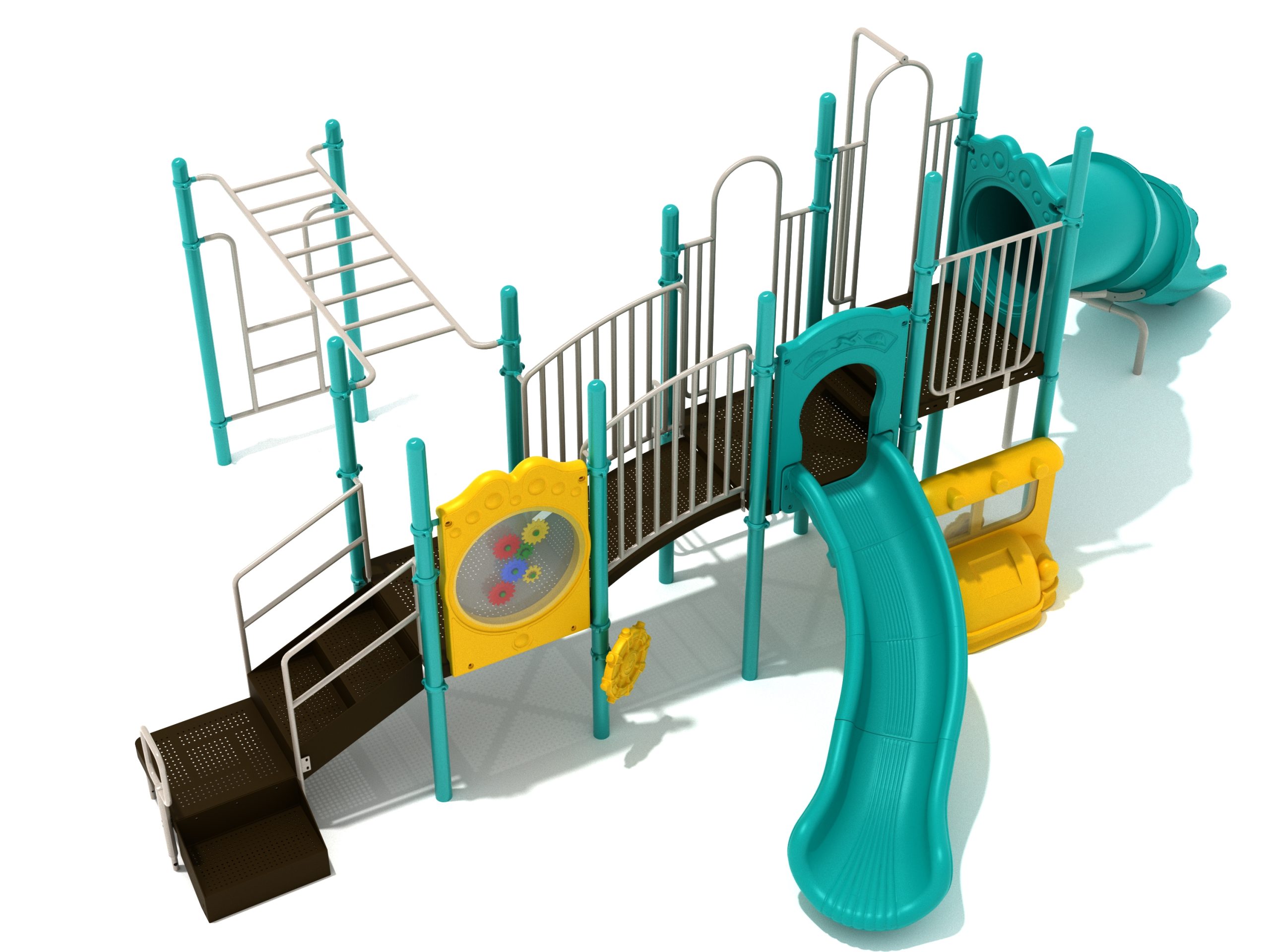 While Lake Geneva may appear minimalistic, it has the right set of slides, climbers, and activity panels to keep it interesting. There are two easy ways to climb the platform, through the Transfer Station staircase and a little testing Vertical Ladder. But if these experiences are too bland for some kids, they can test their grip strength and eye-hand coordination on the hard-to-cross Overhead Straight Rung Horizontal Ladder. On top of the platform, four activities are waiting to draw the attention of kids. First, they’ll impatiently want to ride any of the less-intense Right Turn Slide or the tall but safe Curved Tube Slide. Once they’ve experienced these, you’ll see them either glued to the interactive Gear Panel or sliding down the exciting fireman pole. The fun won’t stop even on the ground, as they’ll be pretending to drive a car using the Car Panel or steering the Ship’s Wheel as if they’re actually sailing on Lake Geneva. As a result, every kid will have something to do on the Lake Geneva play set.