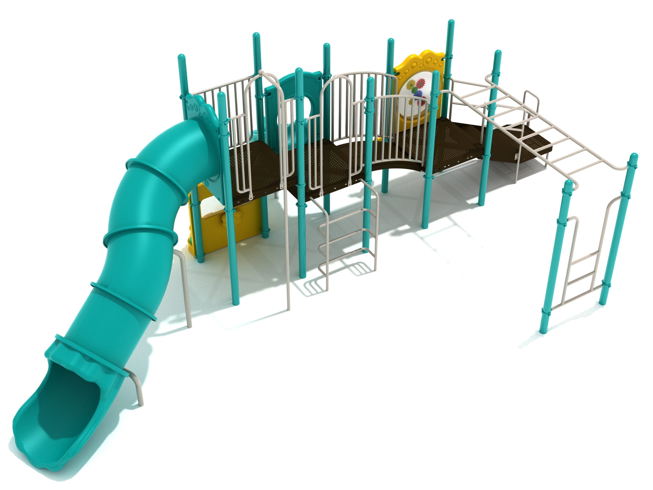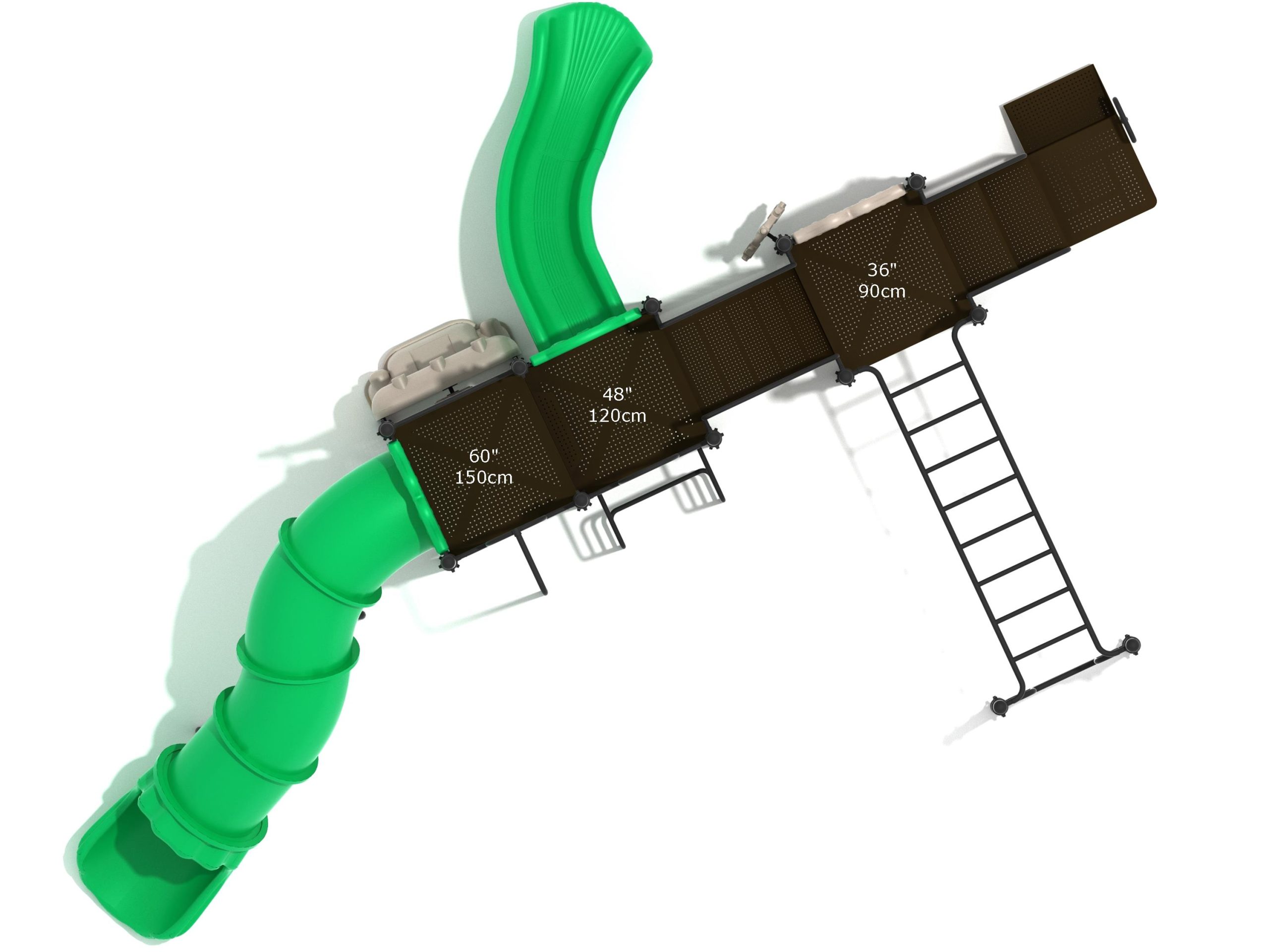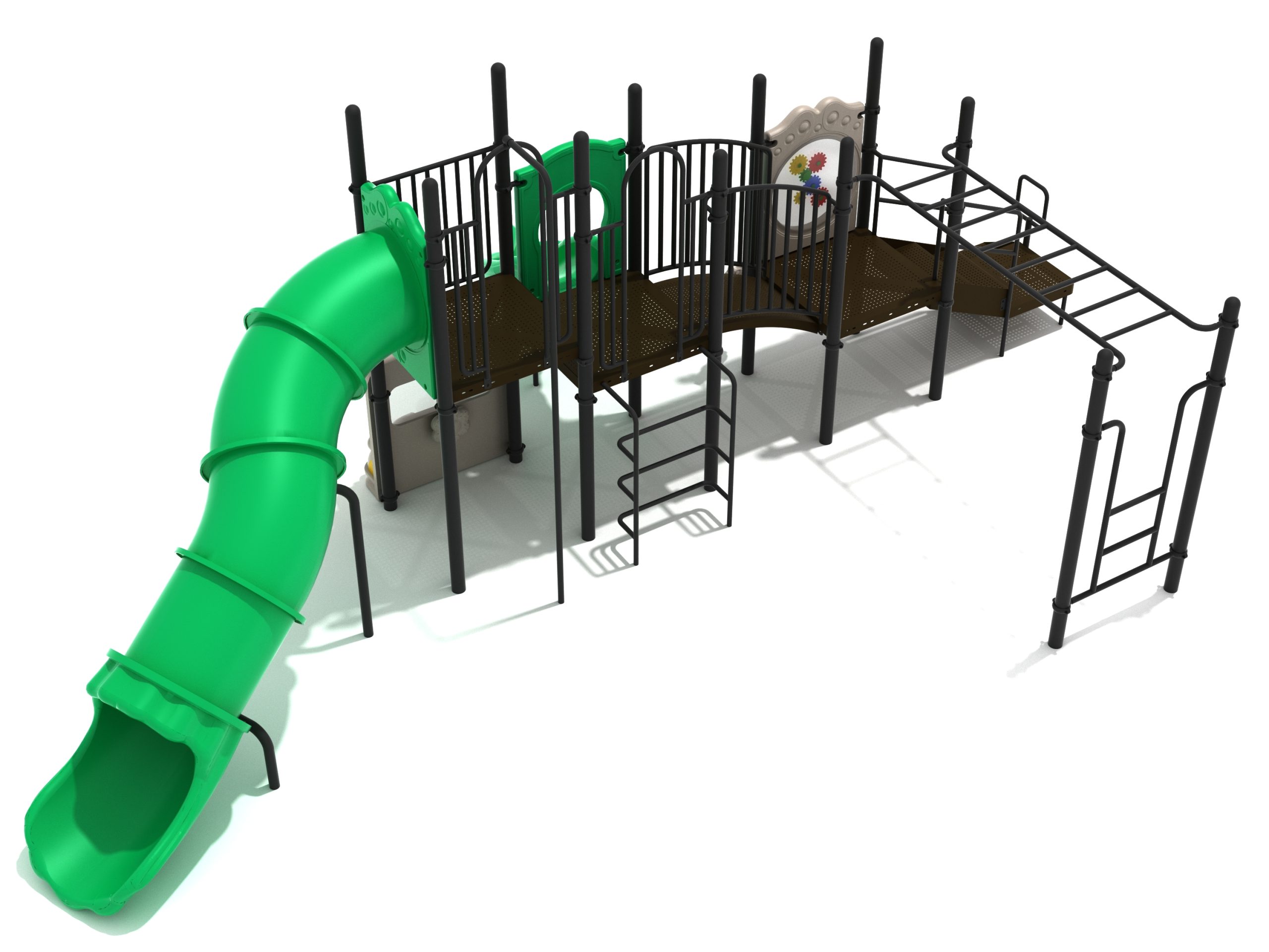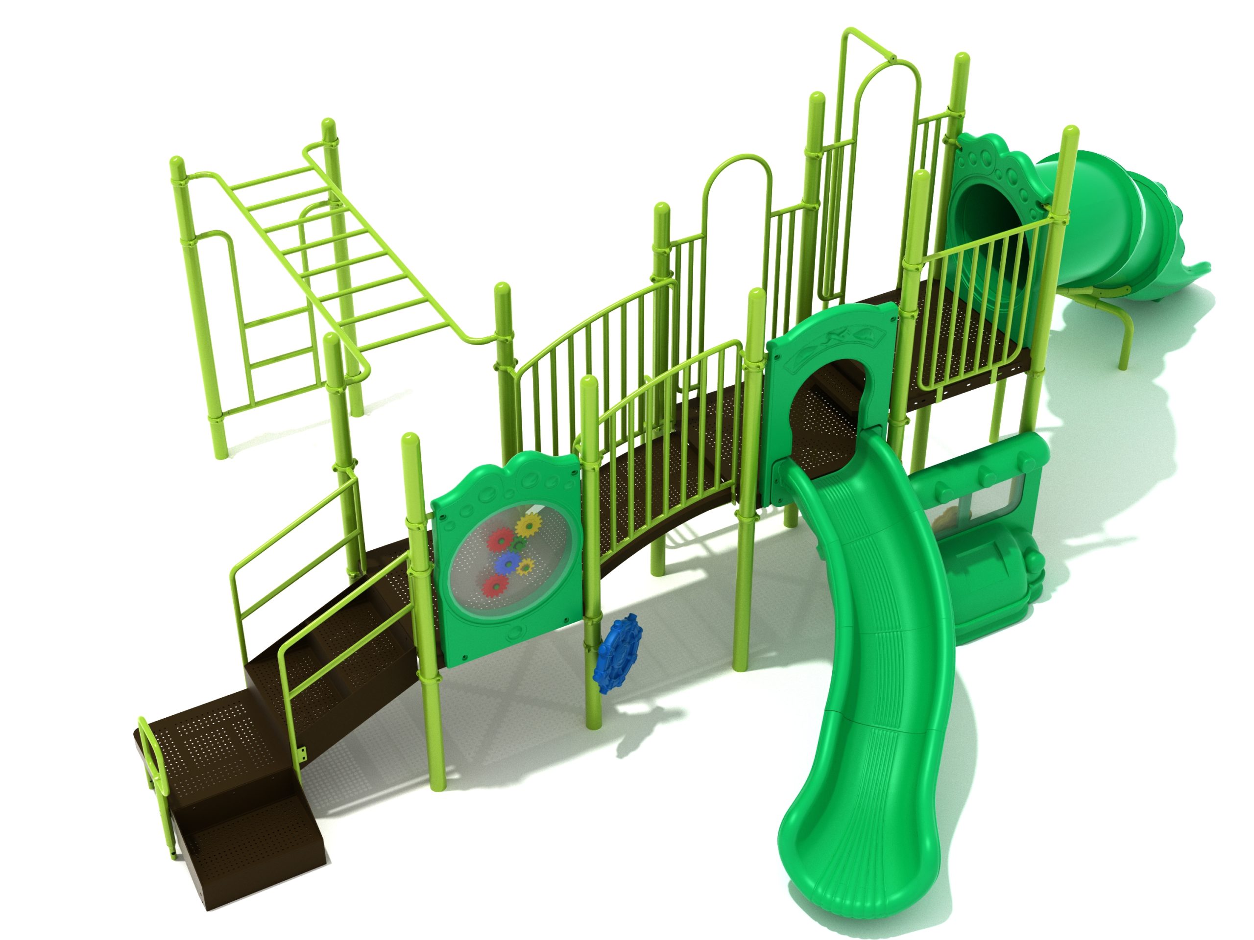 While Lake Geneva may appear minimalistic, it has the right set of slides, climbers, and activity panels to keep it interesting. There are two easy ways to climb the platform, through the Transfer Station staircase and a little testing Vertical Ladder. But if these experiences are too bland for some kids, they can test their grip strength and eye-hand coordination on the hard-to-cross Overhead Straight Rung Horizontal Ladder. On top of the platform, four activities are waiting to draw the attention of kids. First, they’ll impatiently want to ride any of the less-intense Right Turn Slide or the tall but safe Curved Tube Slide. Once they’ve experienced these, you’ll see them either glued to the interactive Gear Panel or sliding down the exciting fireman pole. The fun won’t stop even on the ground, as they’ll be pretending to drive a car using the Car Panel or steering the Ship’s Wheel as if they’re actually sailing on Lake Geneva. As a result, every kid will have something to do on the Lake Geneva play set.