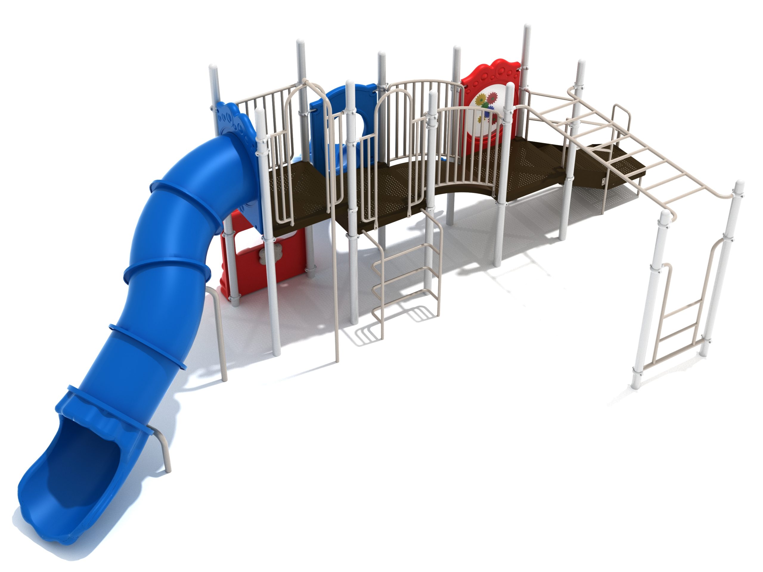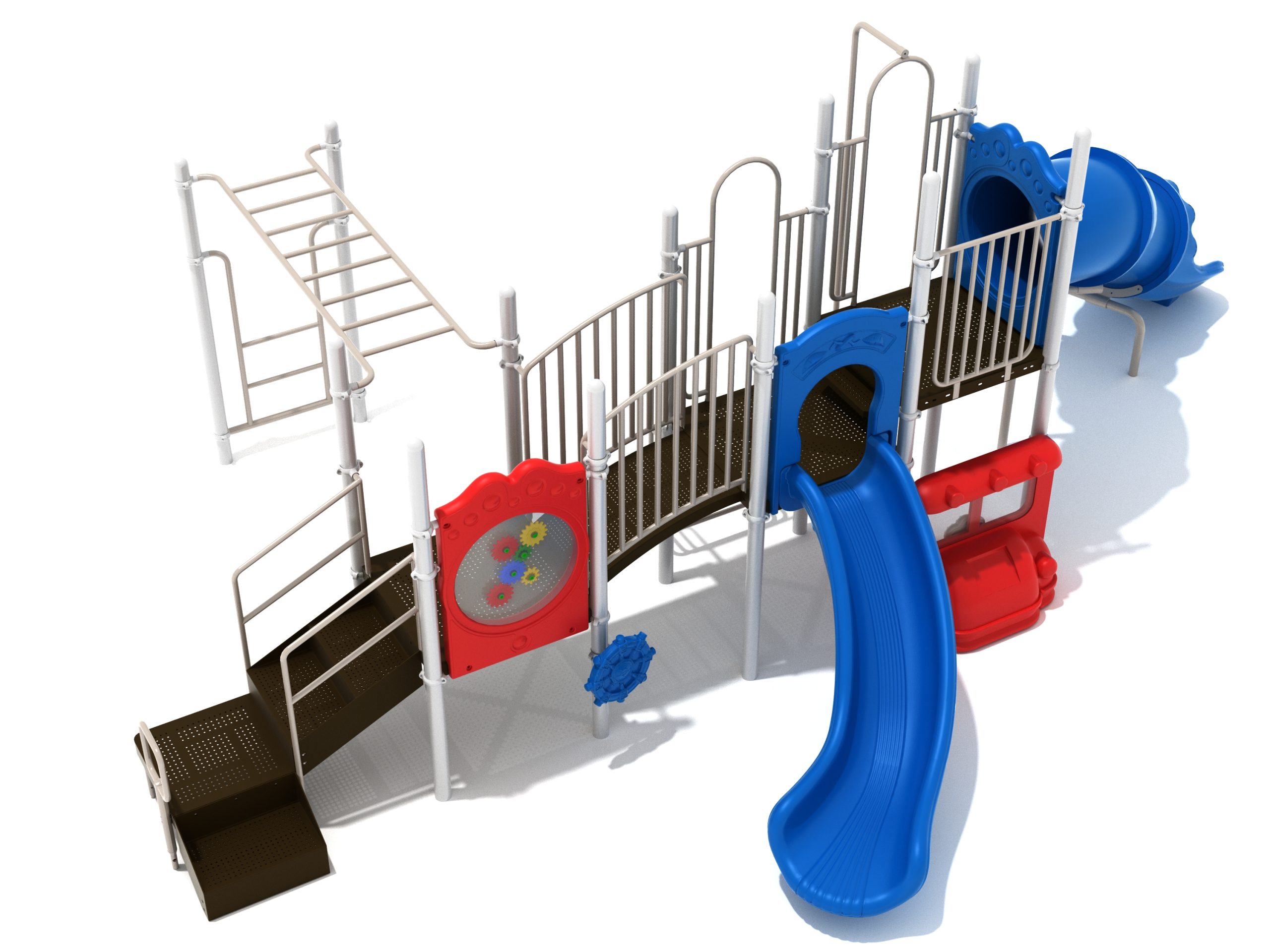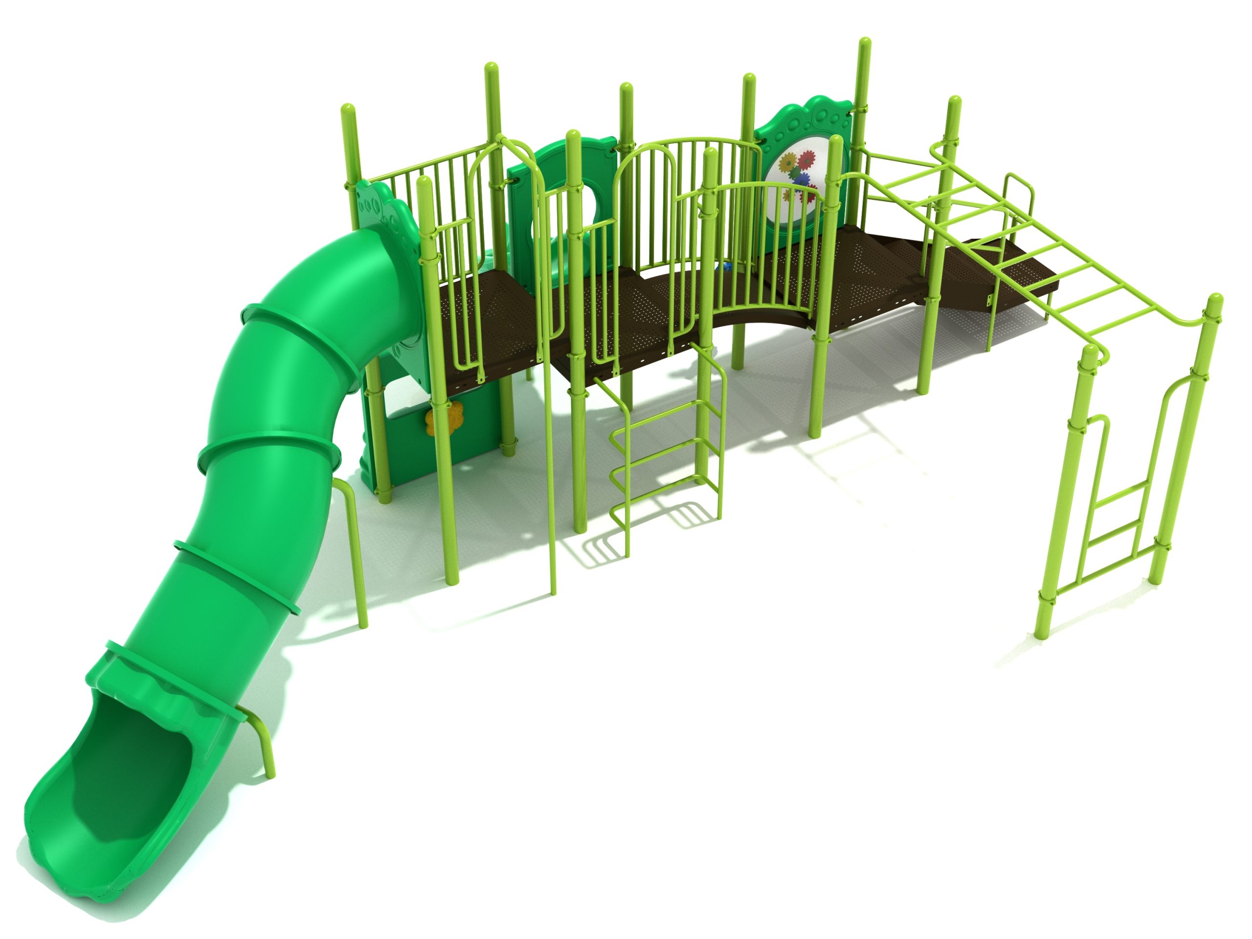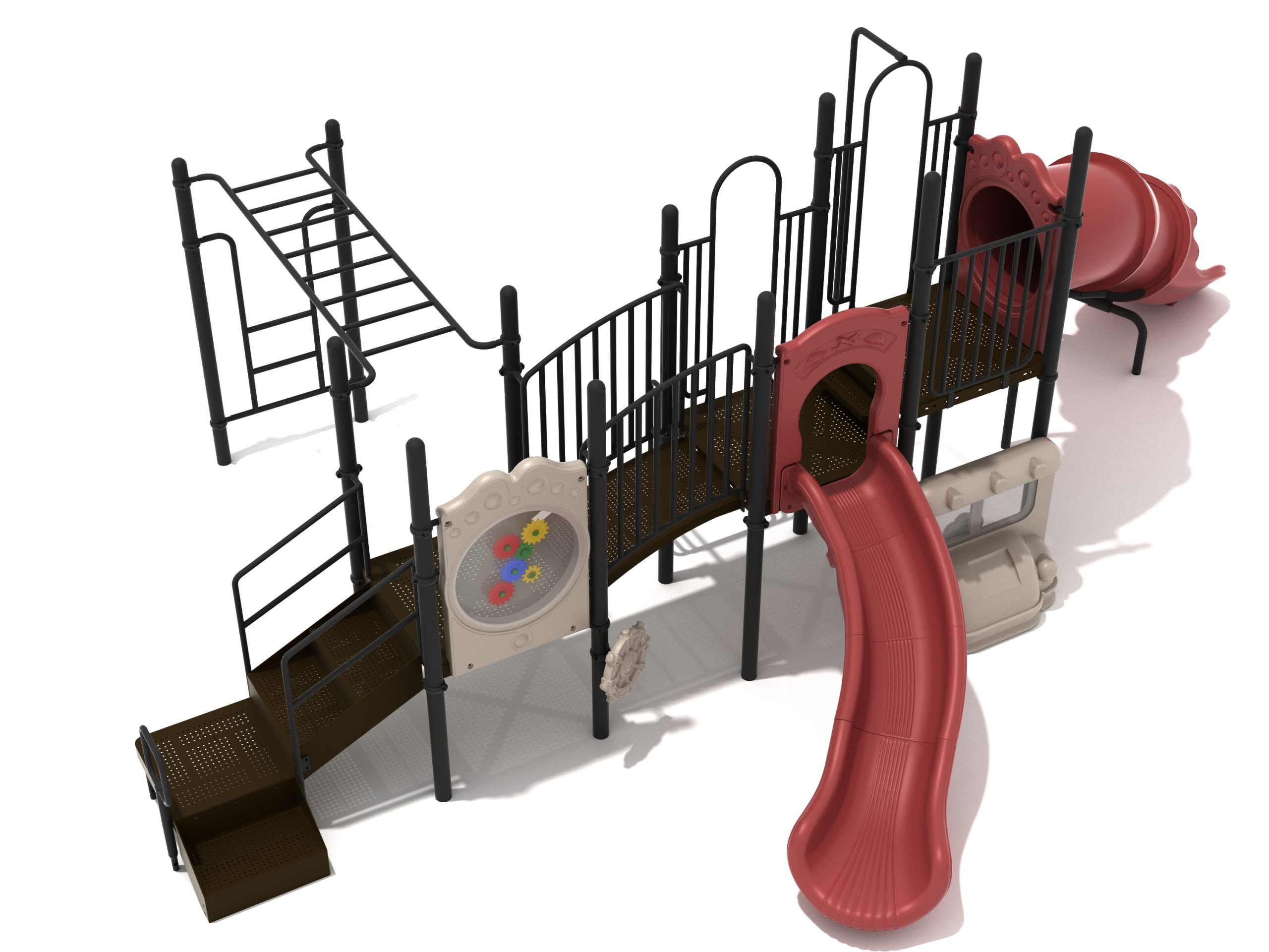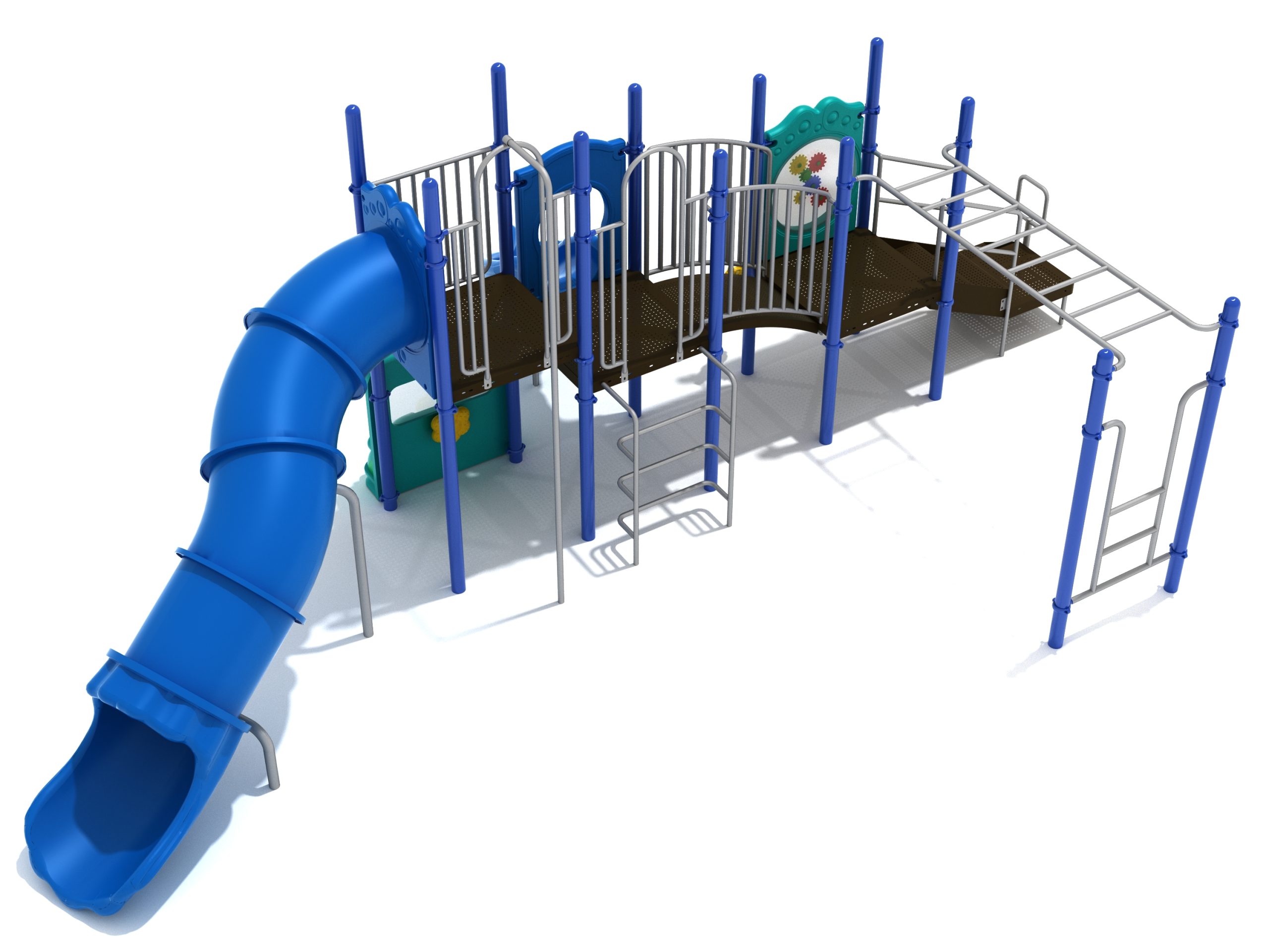 While Lake Geneva may appear minimalistic, it has the right set of slides, climbers, and activity panels to keep it interesting. There are two easy ways to climb the platform, through the Transfer Station staircase and a little testing Vertical Ladder. But if these experiences are too bland for some kids, they can test their grip strength and eye-hand coordination on the hard-to-cross Overhead Straight Rung Horizontal Ladder. On top of the platform, four activities are waiting to draw the attention of kids. First, they’ll impatiently want to ride any of the less-intense Right Turn Slide or the tall but safe Curved Tube Slide. Once they’ve experienced these, you’ll see them either glued to the interactive Gear Panel or sliding down the exciting fireman pole. The fun won’t stop even on the ground, as they’ll be pretending to drive a car using the Car Panel or steering the Ship’s Wheel as if they’re actually sailing on Lake Geneva. As a result, every kid will have something to do on the Lake Geneva play set.