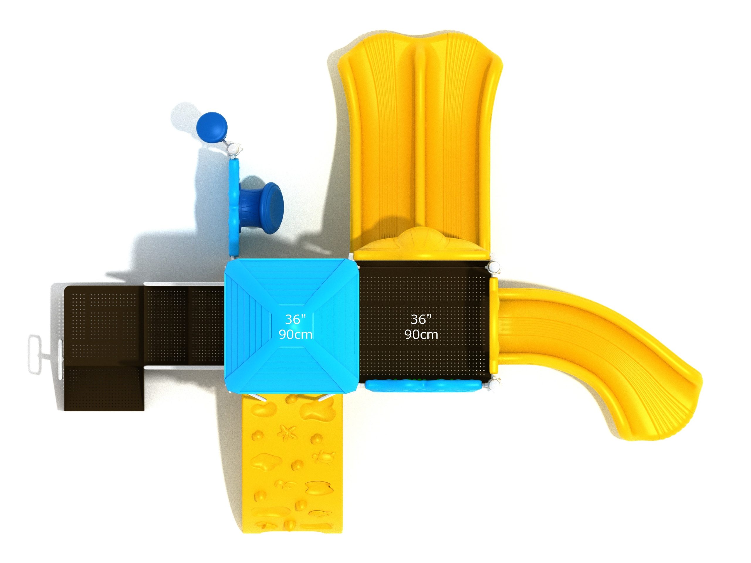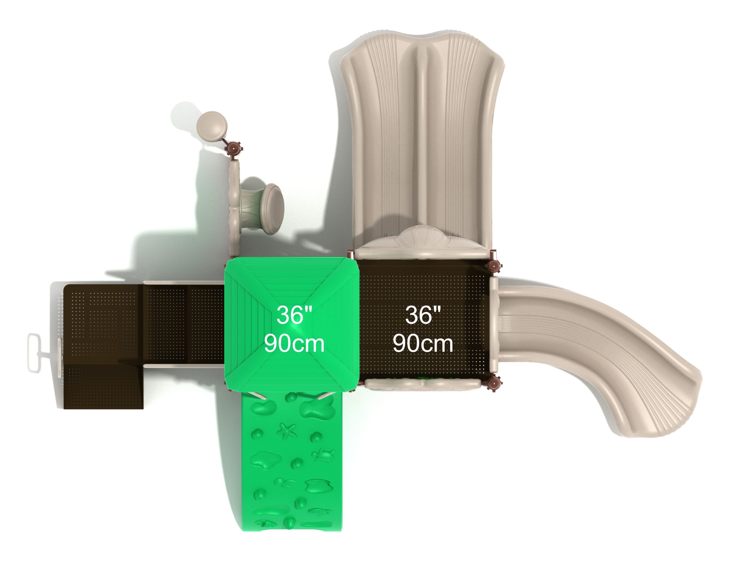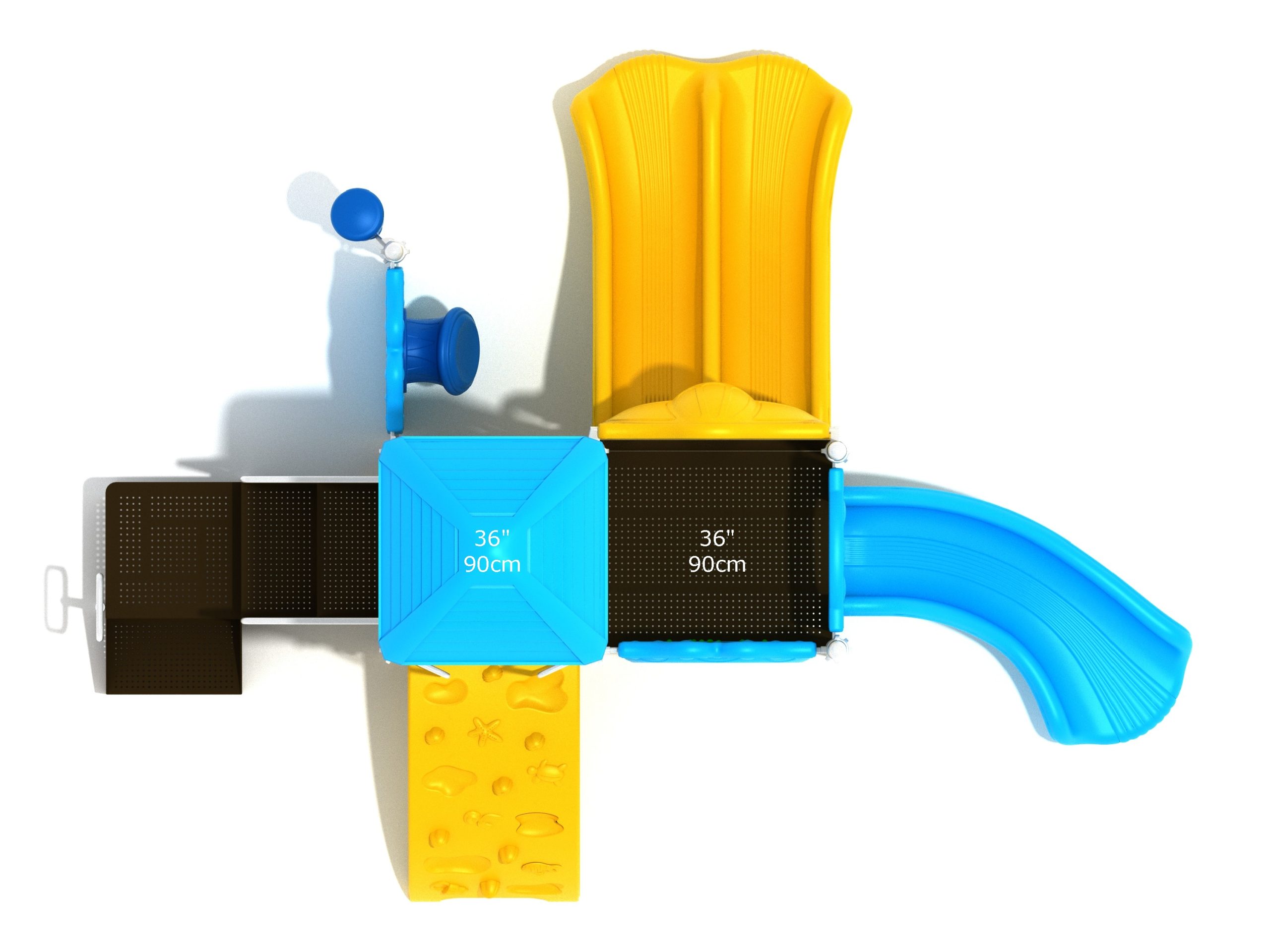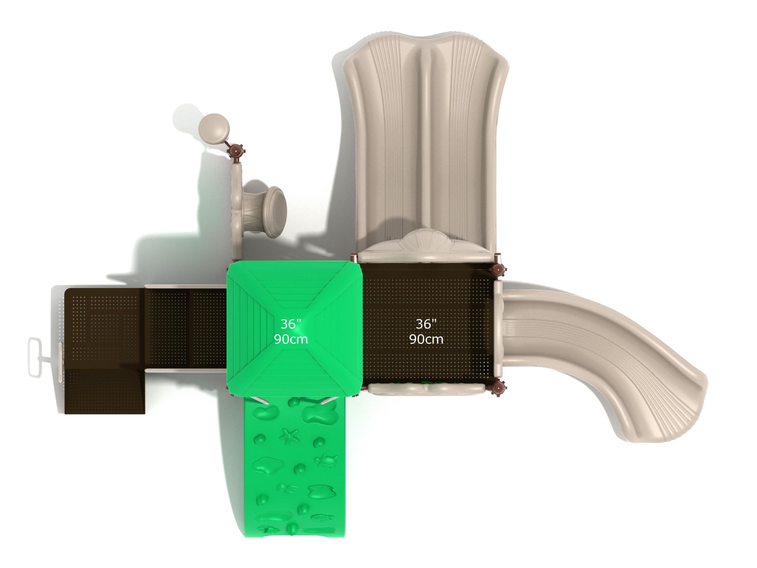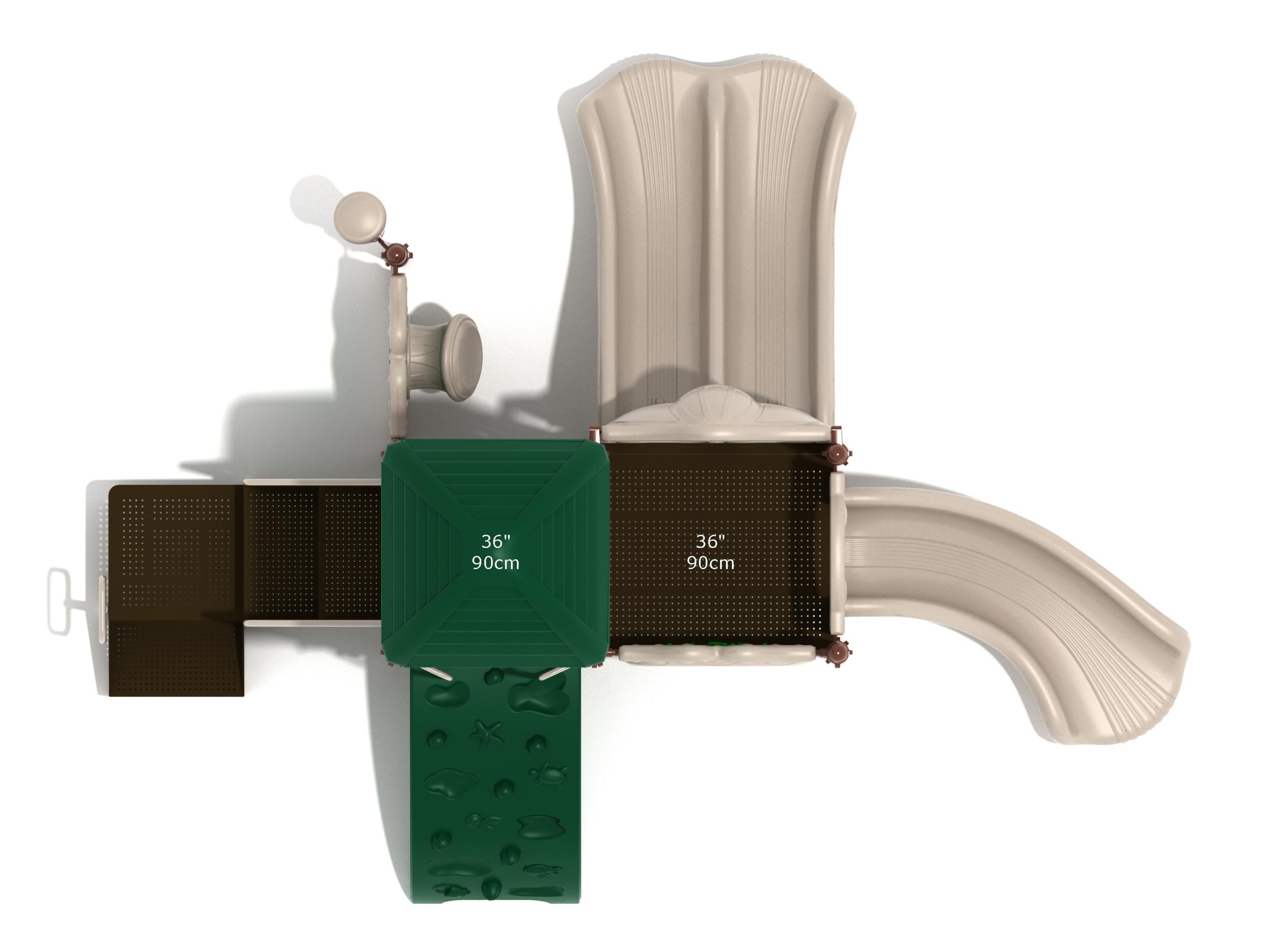 Whether kids enter the Lincoln play structure via the Transfer Station or by exploring underwater worlds on the Sea Creature Climber complete with 3D fish and shells, they’ll enjoy flying down one of the two slides on offer heading off in opposite directions. The Right Turn Slide provides a gentle curve which requires children to maintain their balance with core strength, and the Double Slide is perfect for engaging in healthy competition with their peers to see who can land first. And you can be sure they’ll be racing back to the top to try it again and again. There’s a Gear Panel to experience on the upper level alongside a Ship’s Wheel on a metal railing to give them a great view of the playground as they chart a course over choppy seas. The Single Drum and larger Drum Panel encourage musical ability from a young age and creates a sensory backdrop to the screams of laughter guaranteed on the Lincoln play center.