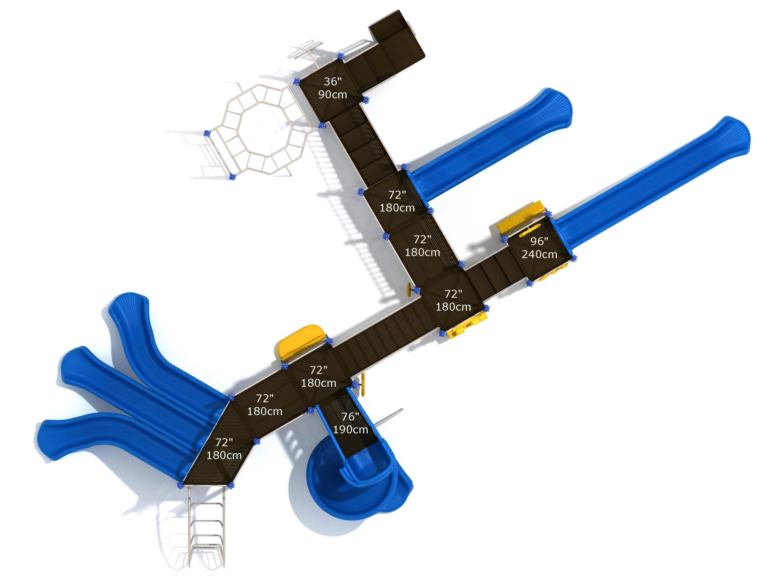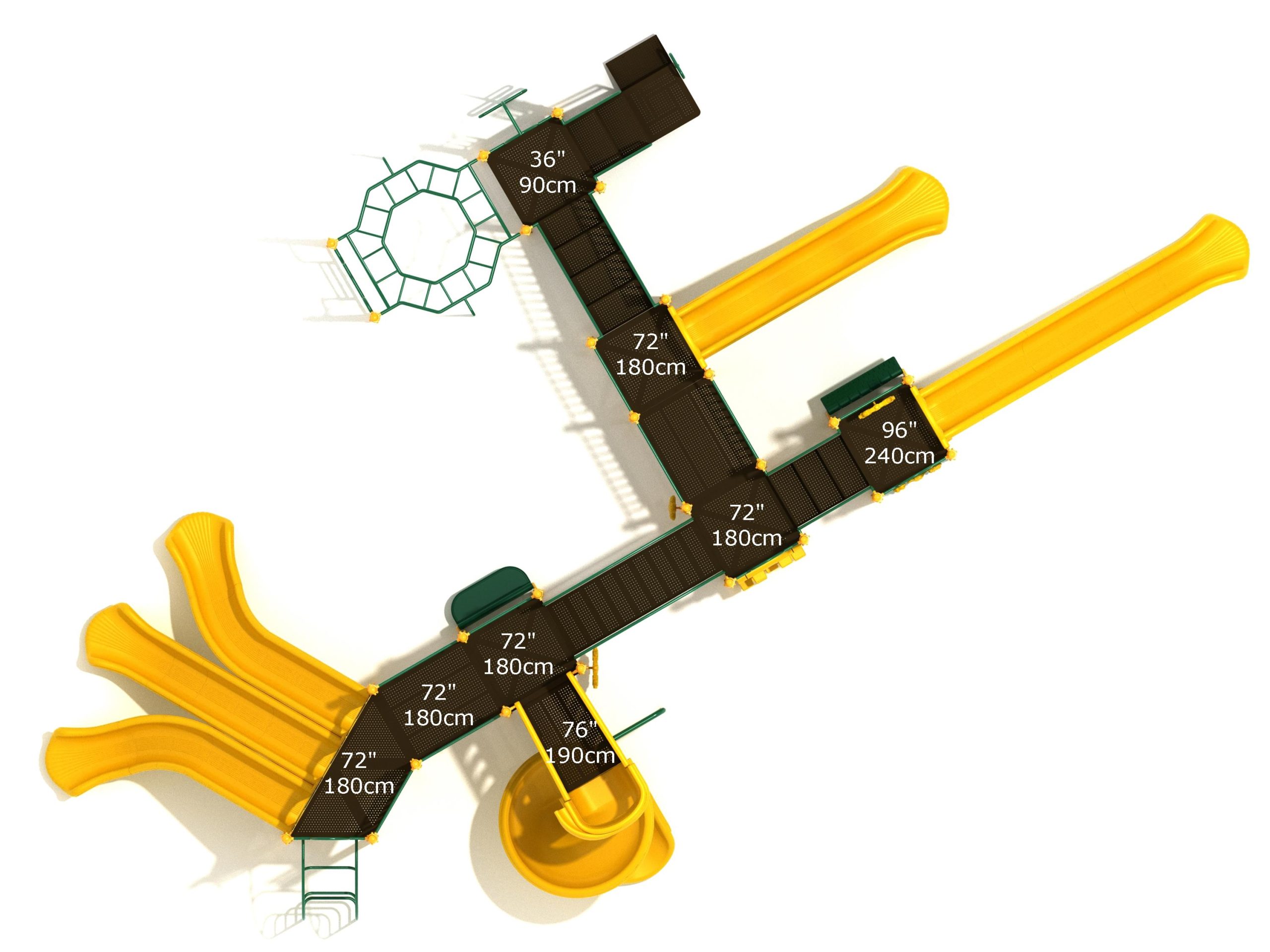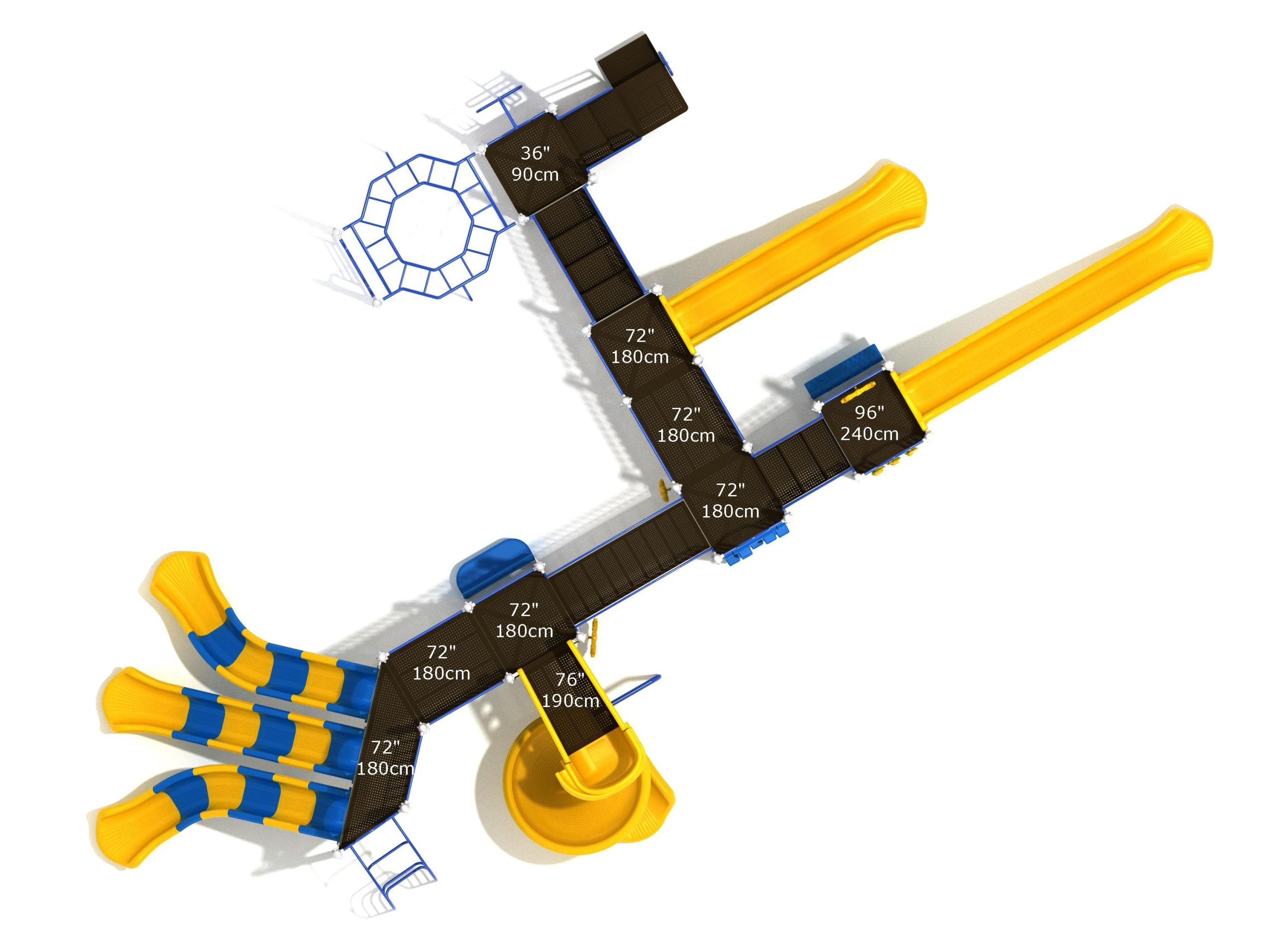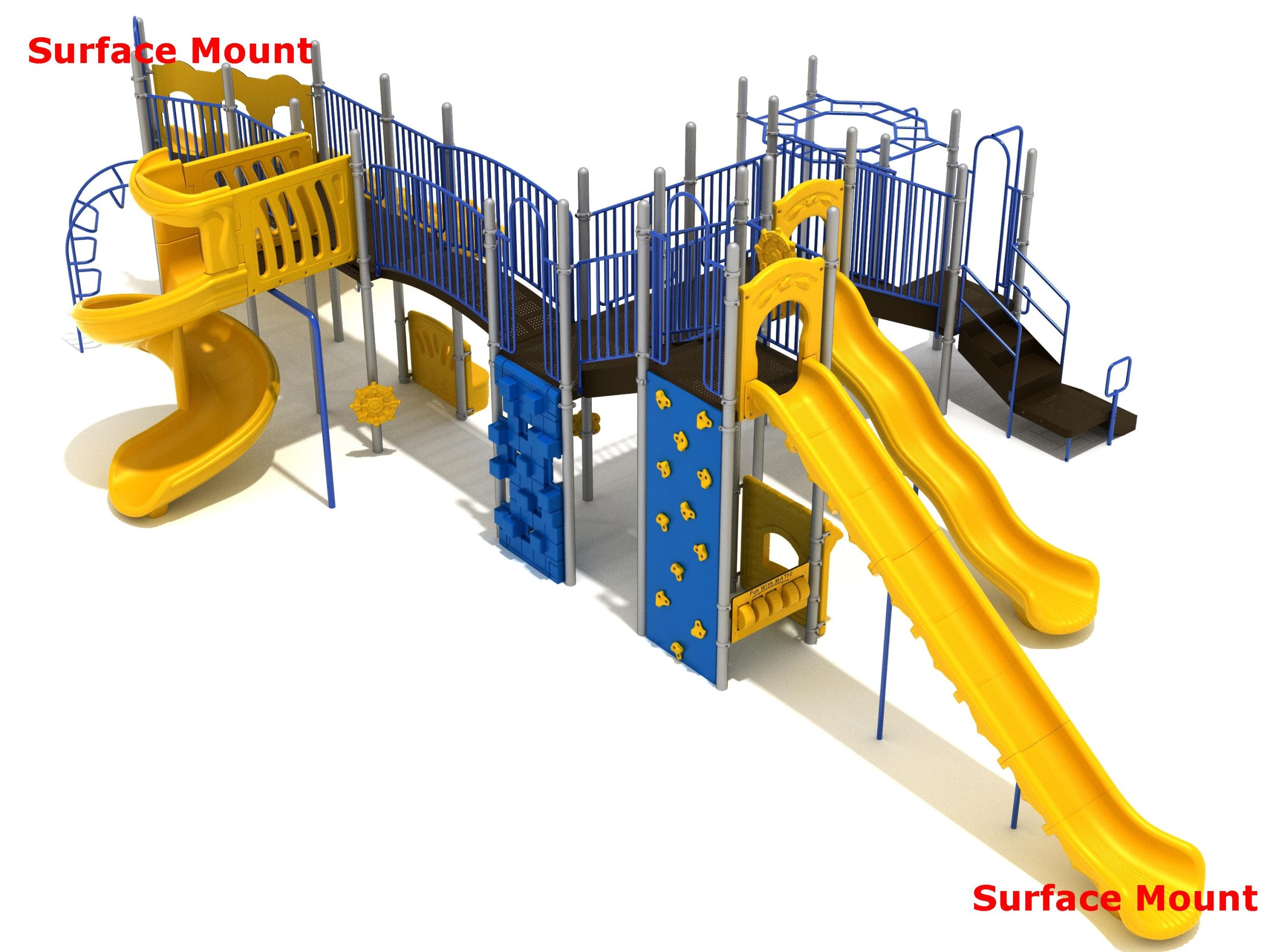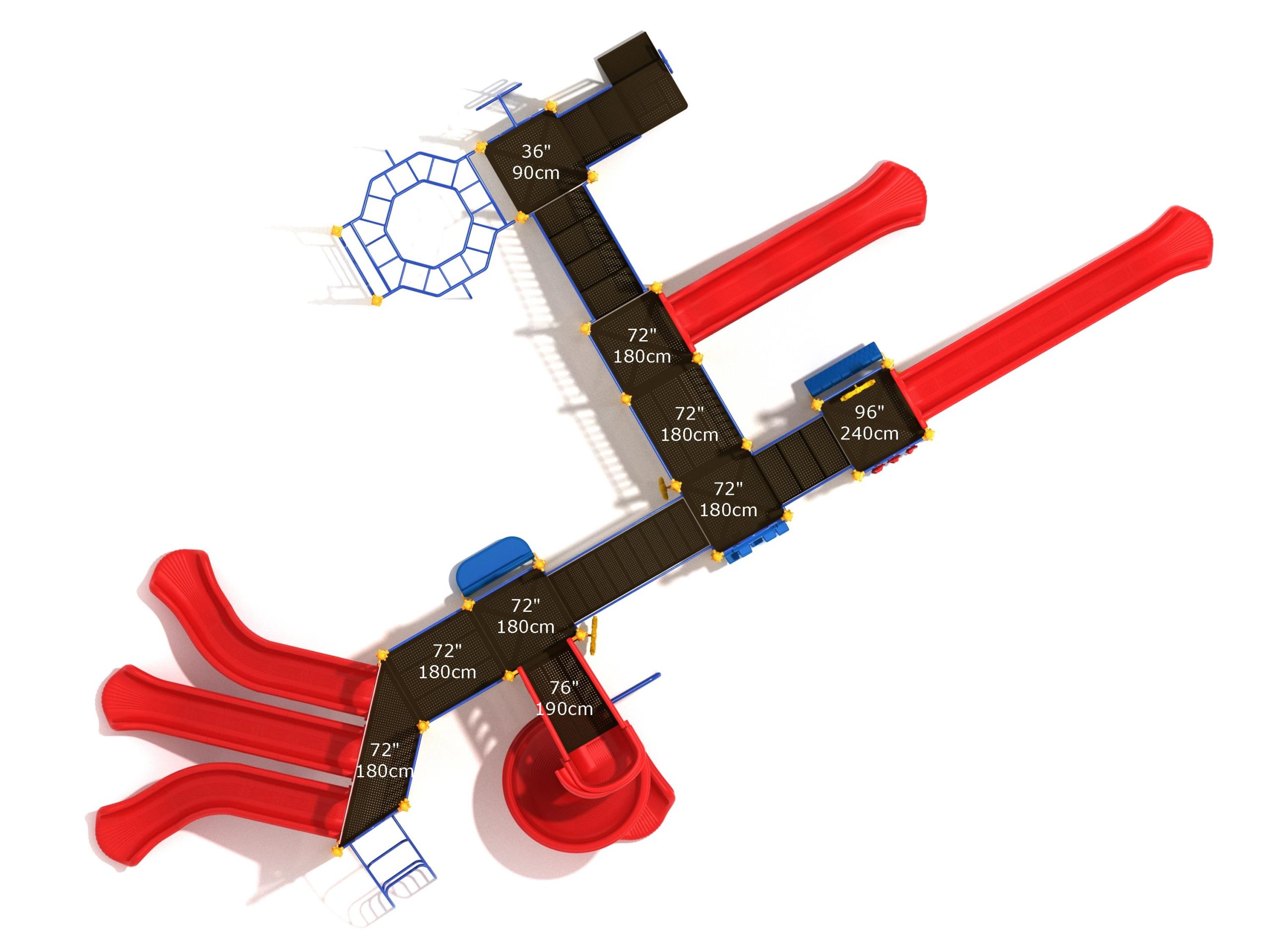 Loveland is a slide city with a number of challenging climbers of different types and difficulties. The only easy way up the Loveland is through the Transfer Station staircase. But if kids want some physical activity before rewarding themselves with slides, they can try any of the tough climbers depending on their willpower. The Snake Climber is good for beginners, followed by the fairly harder and taller Inverted Arch Ladder. If beating the fear of heights is the goal, the tallest Vertical PE Rock Climbing Wall, along with the slightly shorter Pixel Climber, also offers a challenging rock-climbing experience. A good number will also be seen swinging across the Octagon straight-rung horizontal Ladder. Once on top, the only way down is through slides like the bumpy Wave Slide, the Trio of Right Turn, Left Turn and Straight Slide, and crazy Spiral Slide or the whopping 8-foot Straight Slide. The activity Panels and Ship and Rain Wheel will also keep kids busy on the ground level.