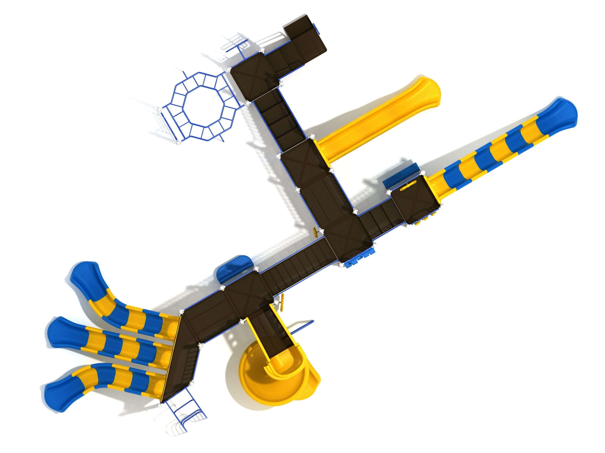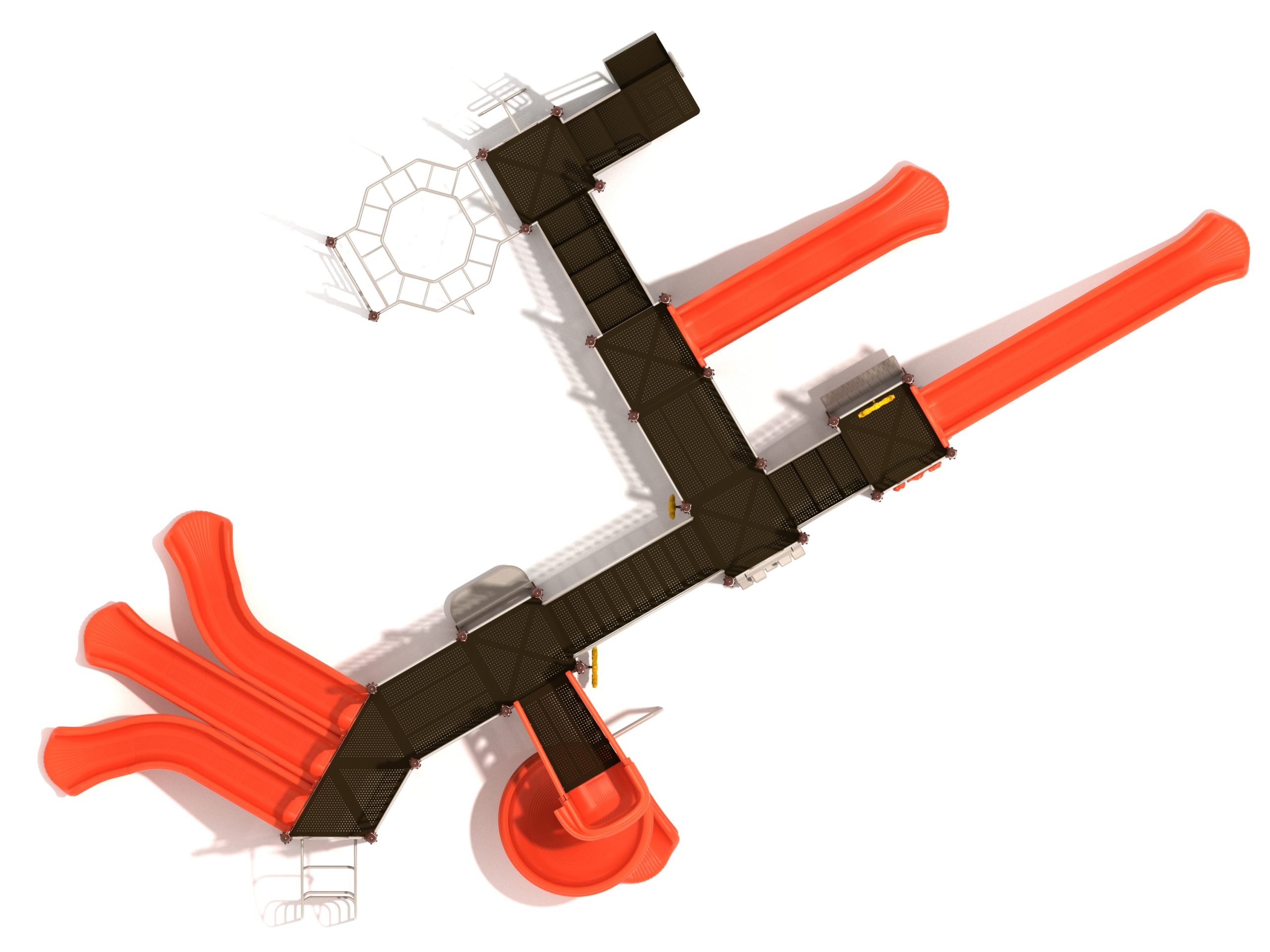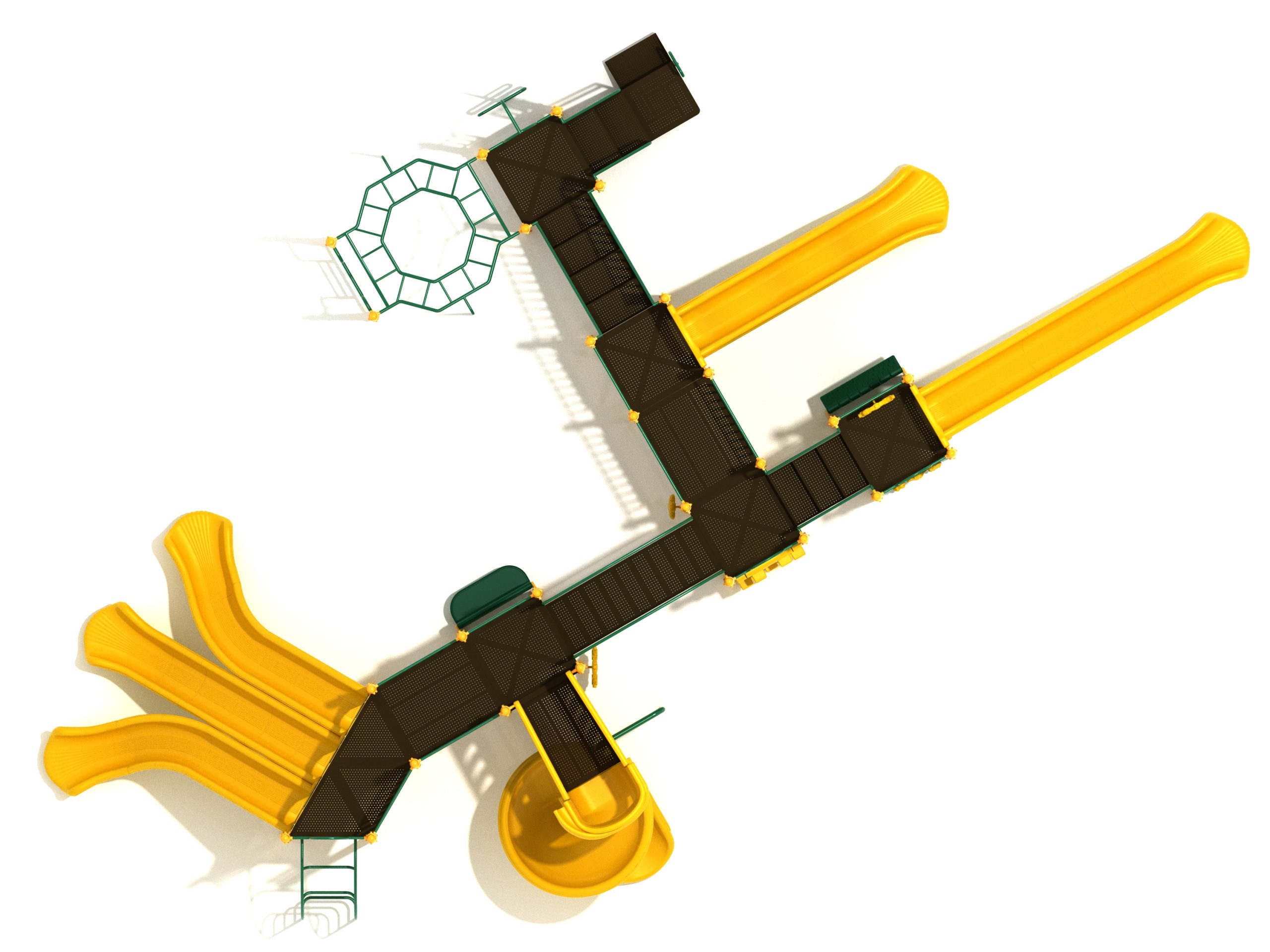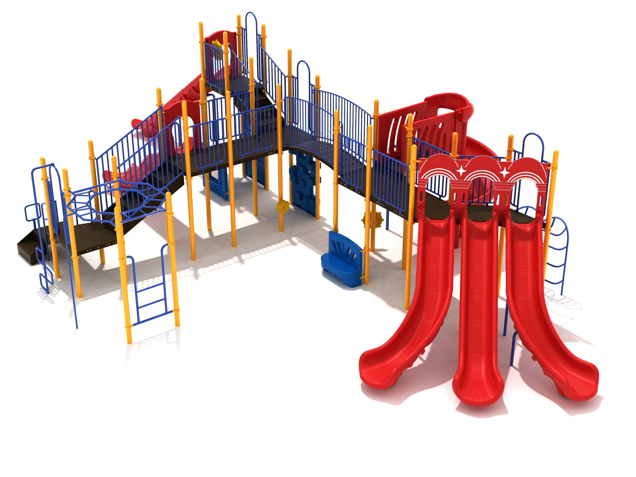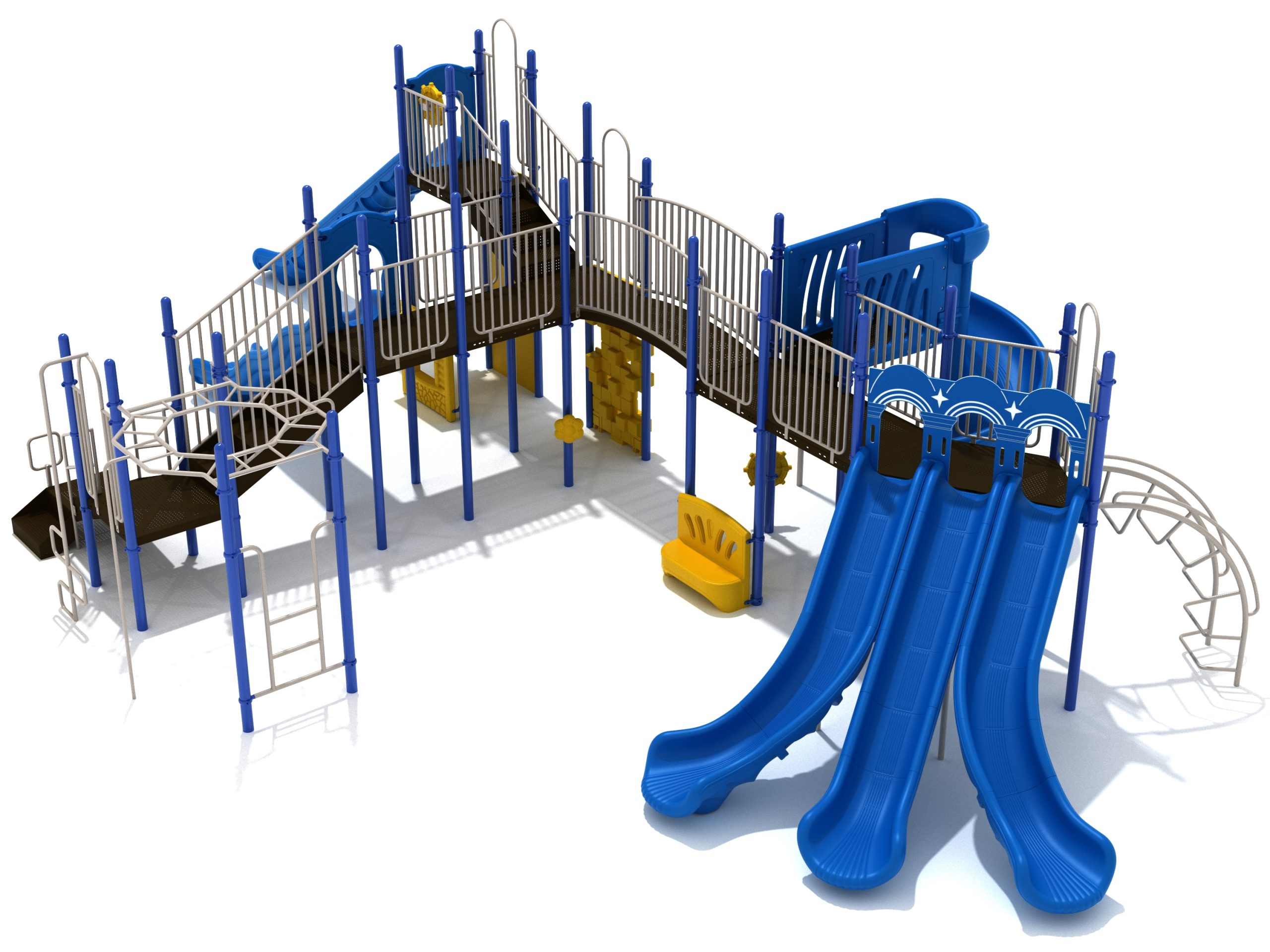Loveland is a slide city with a number of challenging climbers of different types and difficulties. The only easy way up the Loveland is through the Transfer Station staircase. But if kids want some physical activity before rewarding themselves with slides, they can try any of the tough climbers depending on their willpower. The Snake Climber is good for beginners, followed by the fairly harder and taller Inverted Arch Ladder. If beating the fear of heights is the goal, the tallest Vertical PE Rock Climbing Wall, along with the slightly shorter Pixel Climber, also offers a challenging rock-climbing experience. A good number will also be seen swinging across the Octagon straight-rung horizontal Ladder. Once on top, the only way down is through slides like the bumpy Wave Slide, the Trio of Right Turn, Left Turn and Straight Slide, and crazy Spiral Slide or the whopping 8-foot Straight Slide. The activity Panels and Ship and Rain Wheel will also keep kids busy on the ground level.