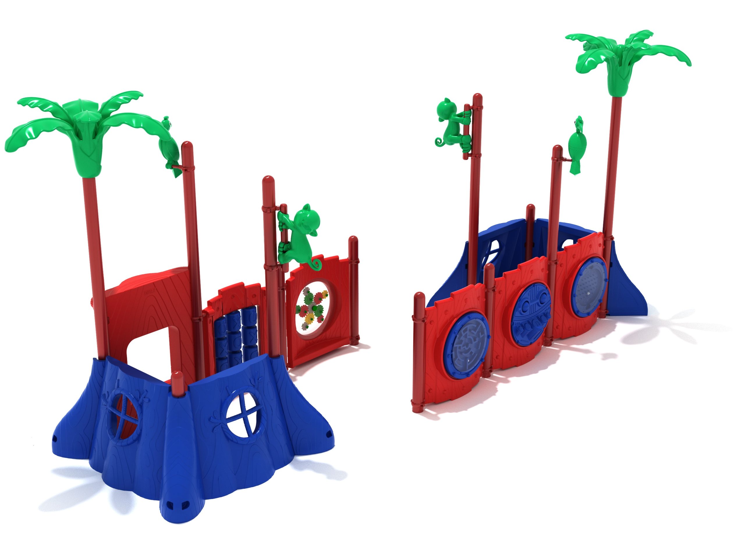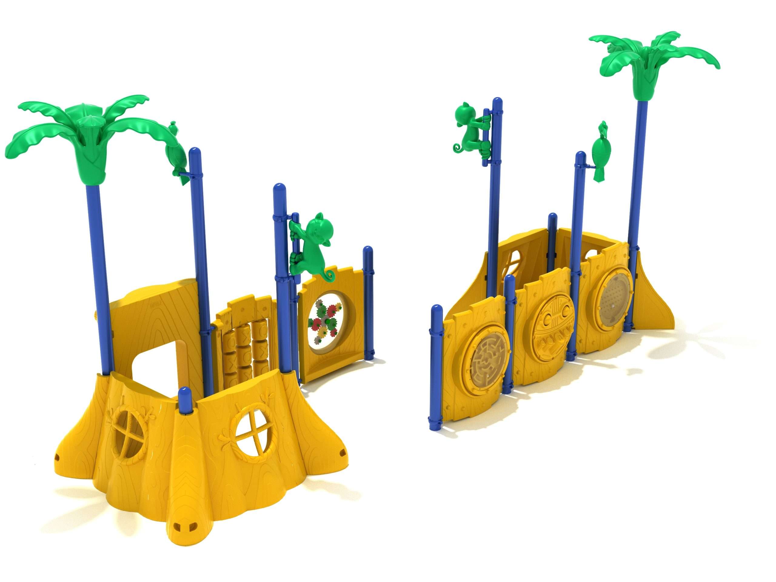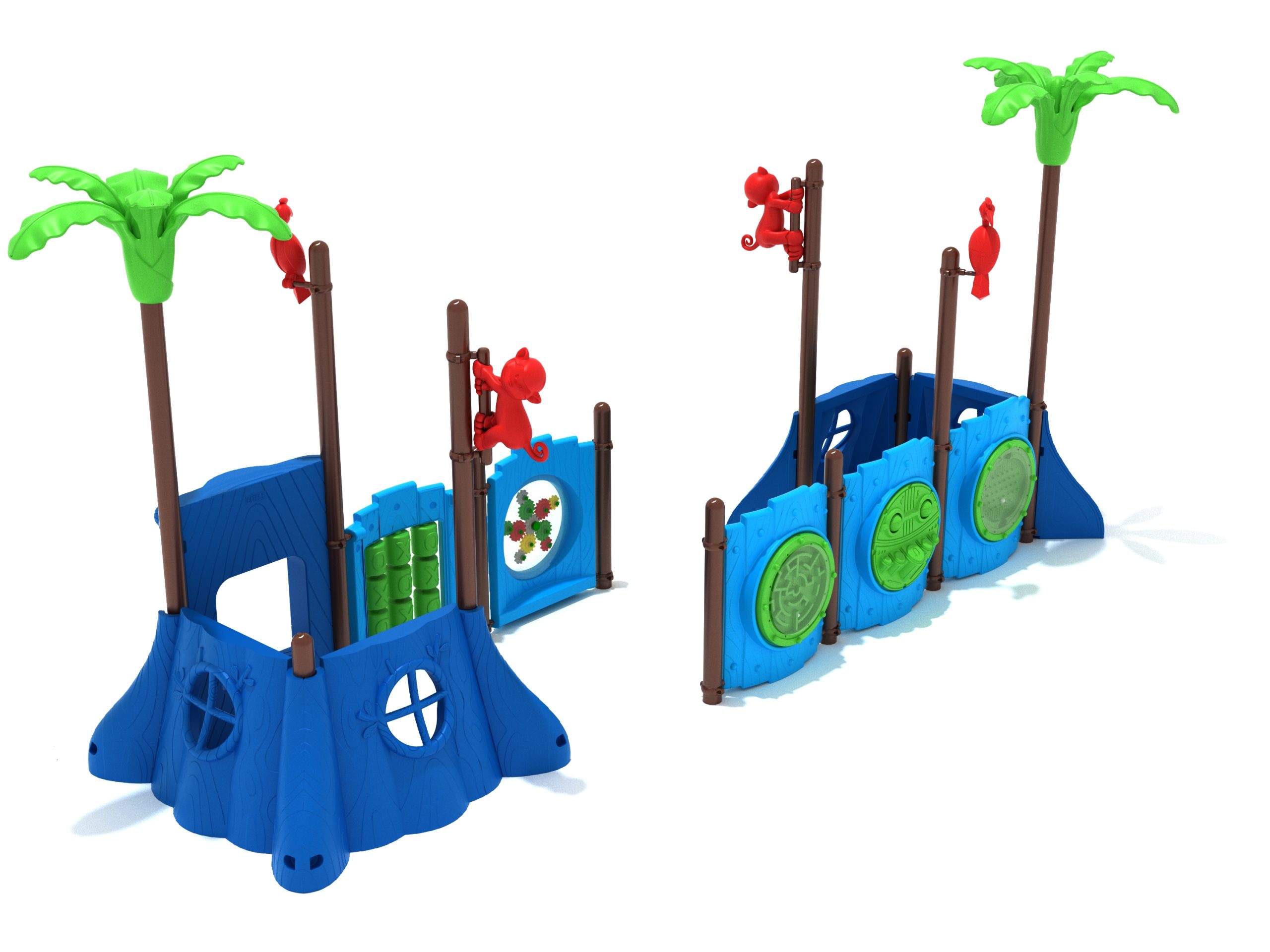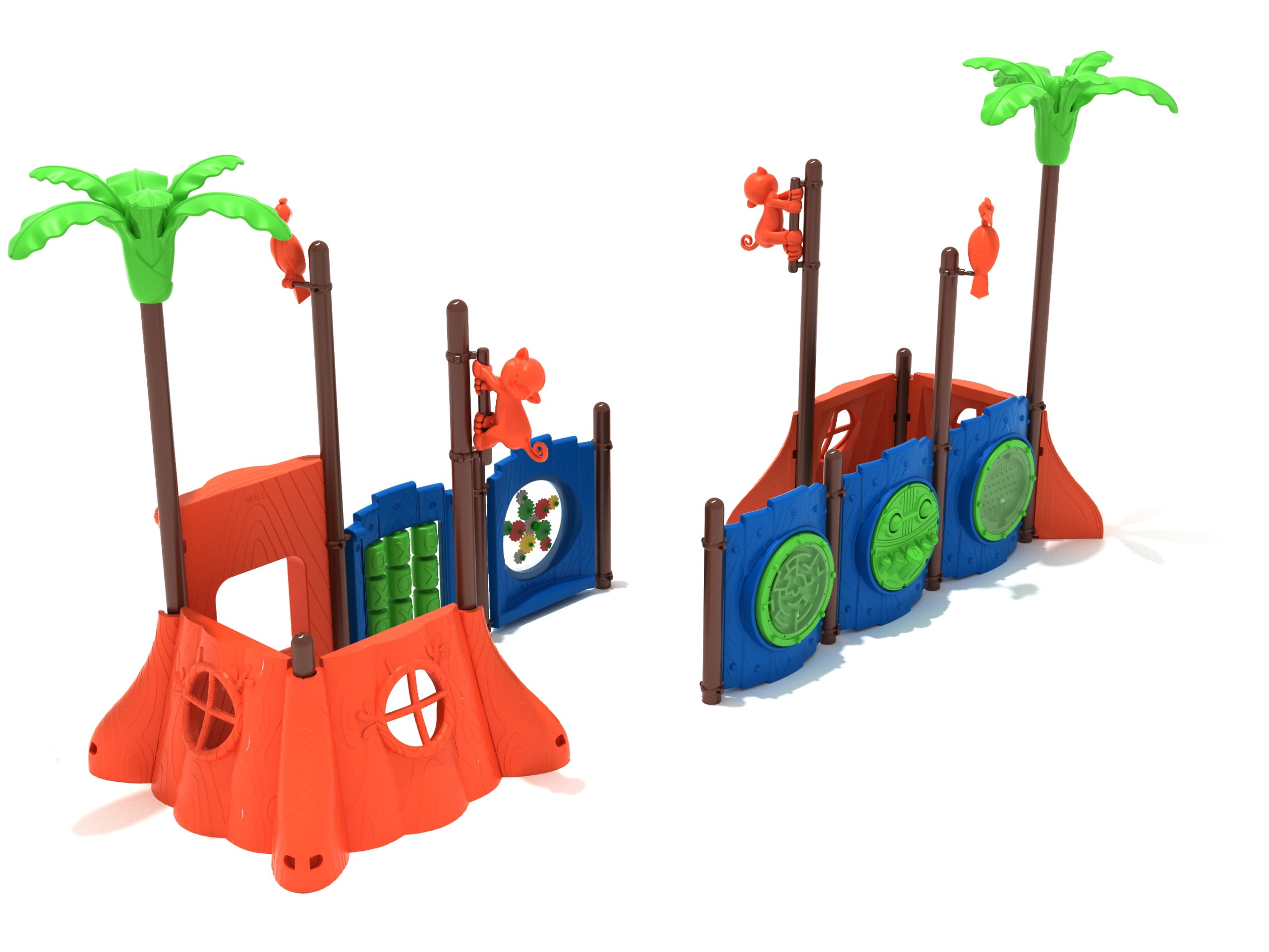 Lots of play structures are designed for older children, but younger children ages 2 and under have specialist needs when it comes to their development. The Mighty Monkey helps them achieve these goals with the variety of activities all on the ground level. Two separate sections house different panels, but both have a Palm Tree Topper, Monkey Topper and a Parrot Topper to bring a fun jungle vibe. The Stump Window Panels let children make believe they are looking out from the trunk of a tree as it has great wood detailing, and the Stump Store is a great place for imaginative roleplay as they sell their woodland goods. The Tic Tac Toe Panel introduces children to the basics of gameplay so they can develop strategic thinking, and the Gear Panel is great to let children see the cause and effect relationship between the cogs. Music can be made on the Percussion Panel featuring multiple drums, and a Ball Maze Panel allows children to develop lateral thinking as the ball bounces around the maze as it’s turned.